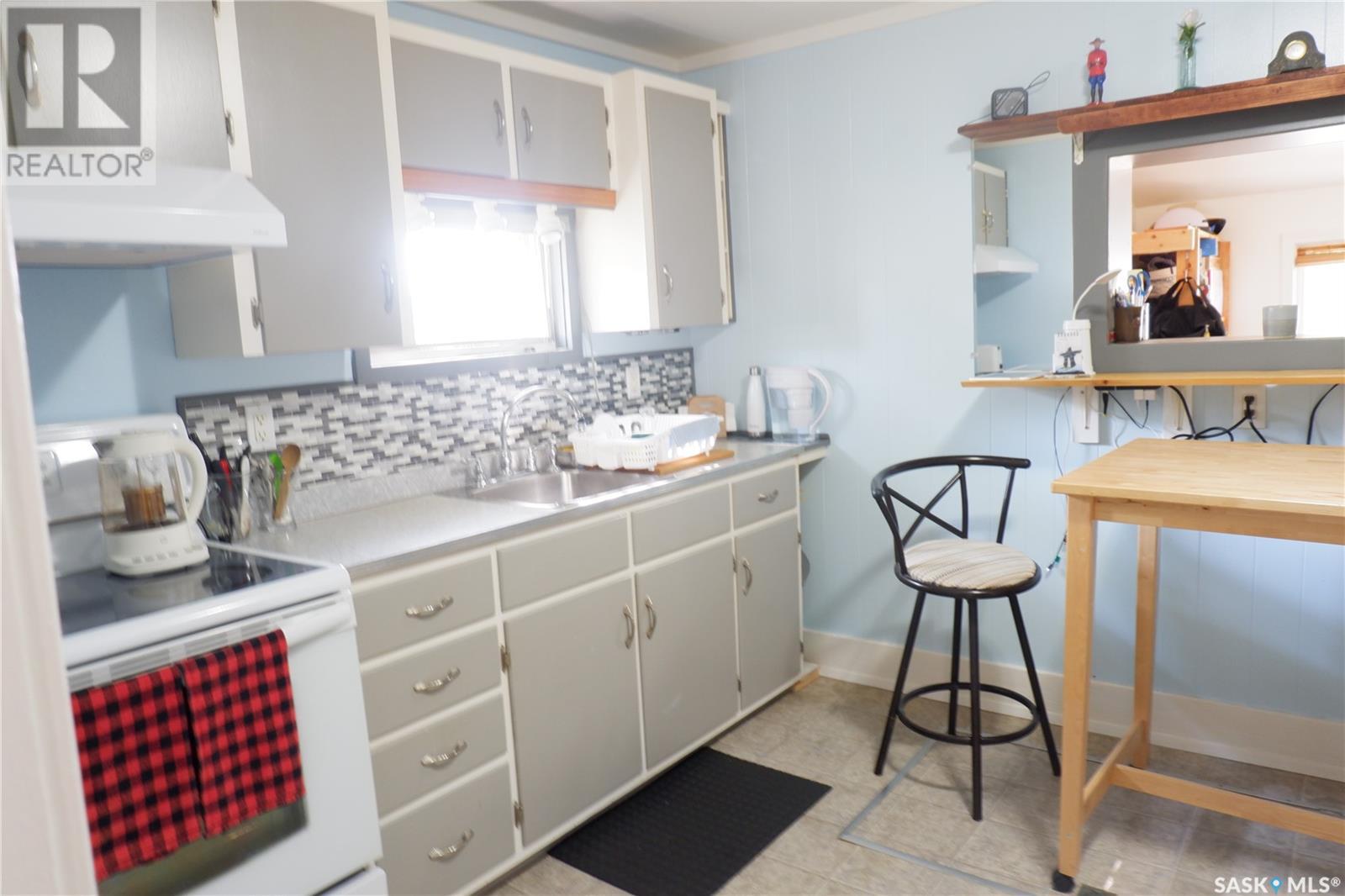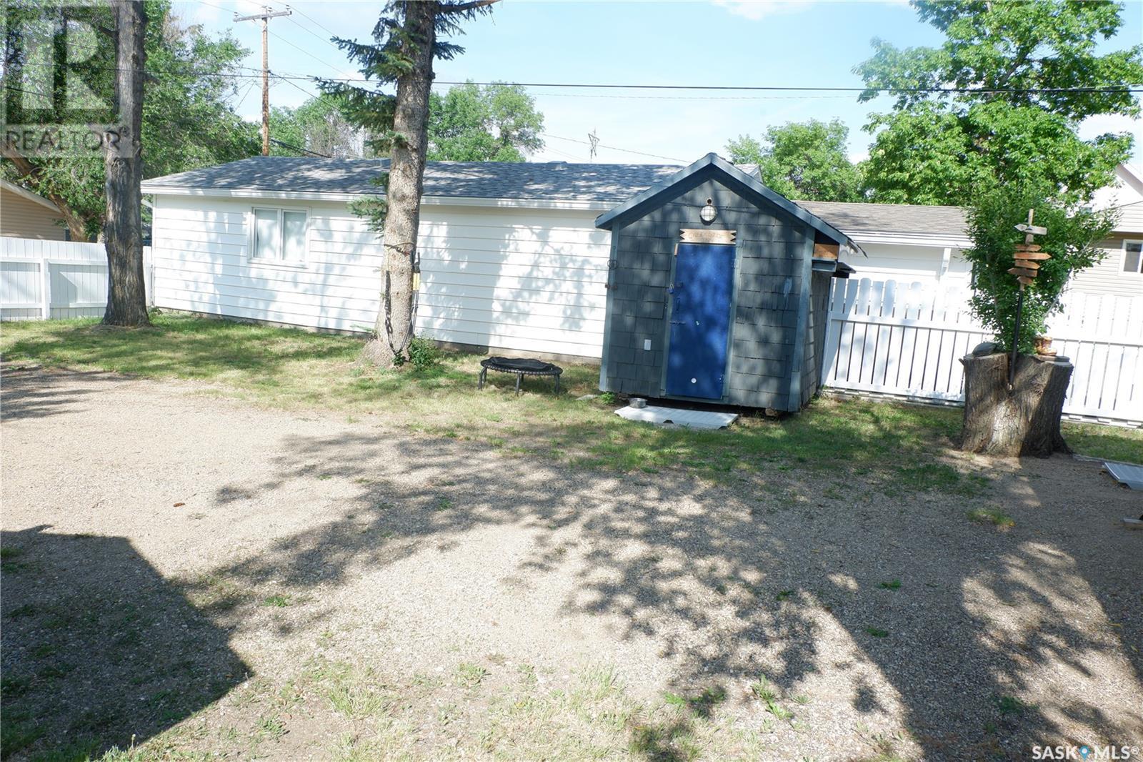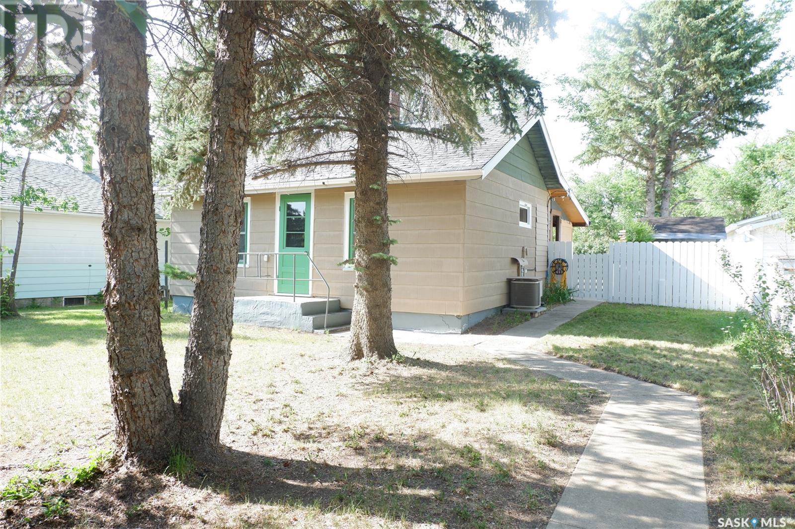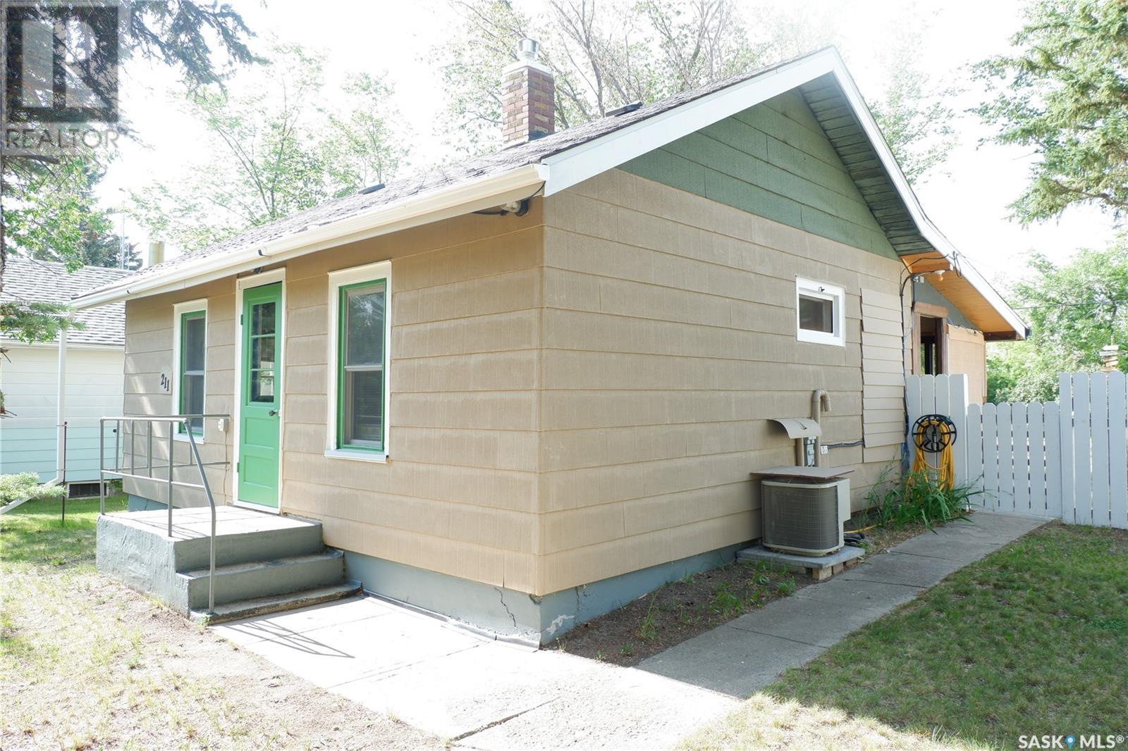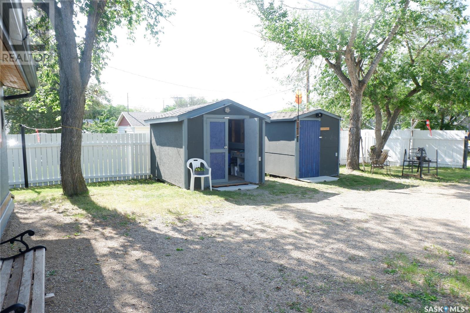 Located in the Town of Mossbank. This is a quaint house on a large lot in a great location. There are 3 storage sheds in the back yard, as well as lots of room to park. The house features an enclosed sunroom on the back, great for enjoyment with no misquitos. Enter through this room to the porch and access to the second bedroom. The kitchen is in the centre of the home and provides access to the 4-piece bath including a laundry area and to the living room. The primary bedroom is in the front of the house and it features a large closet. Access to the crawl space is in the kitchen. This area has the furnace and water heater that have both been replaced. The electrical panel as also been upgraded. There is also the added comfort of central air conditioning! The exterior of the house has been repainted. Mossbank is a vibrant community with a K-12 school, grogery store, insurance agency, accountany agency, gift shop, restaurant, bar, skating and curling ice beside the outdoor pool Mossbank has the best water in southern Saskatchewan! Come have a look! (id:43042)