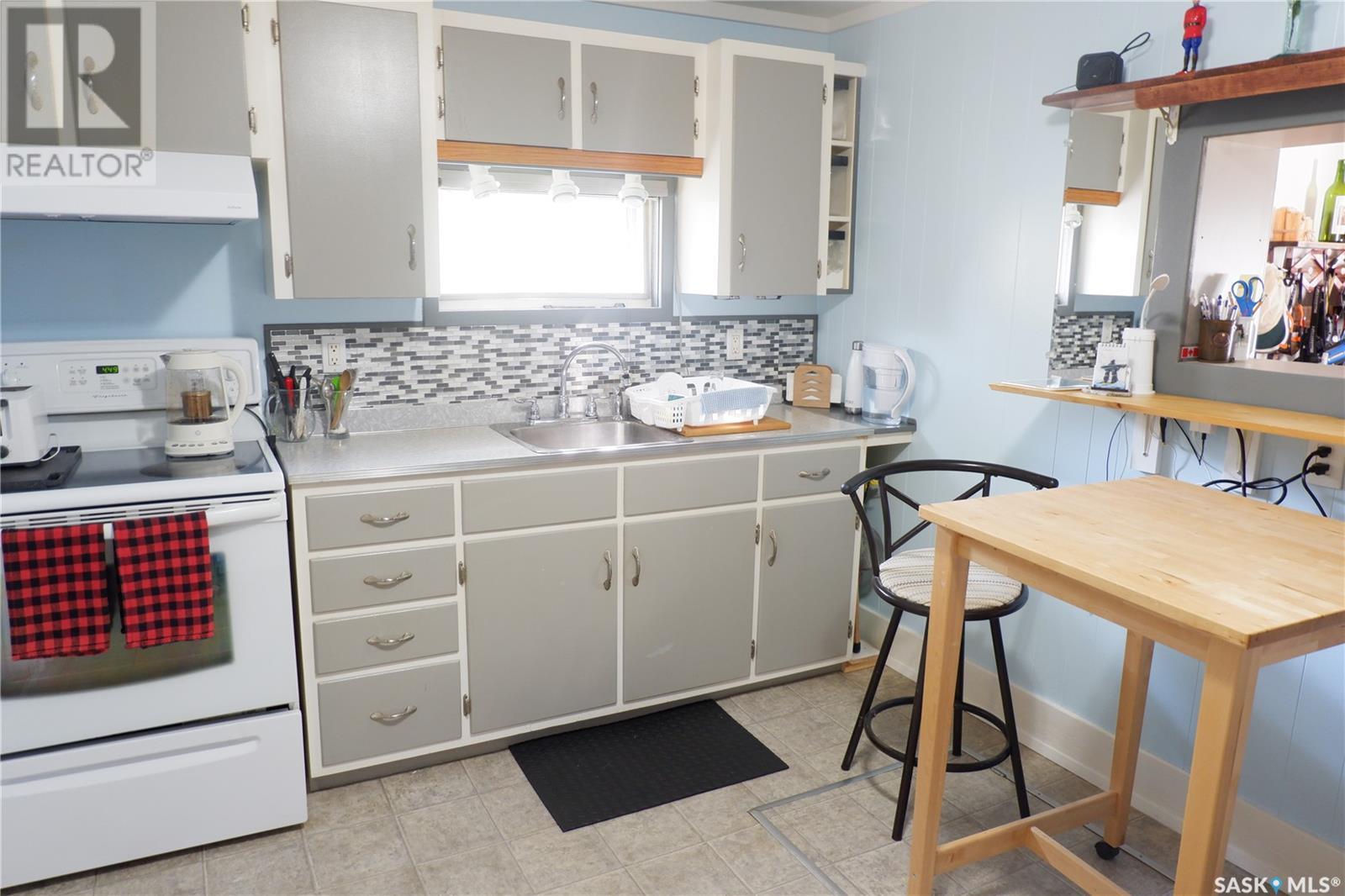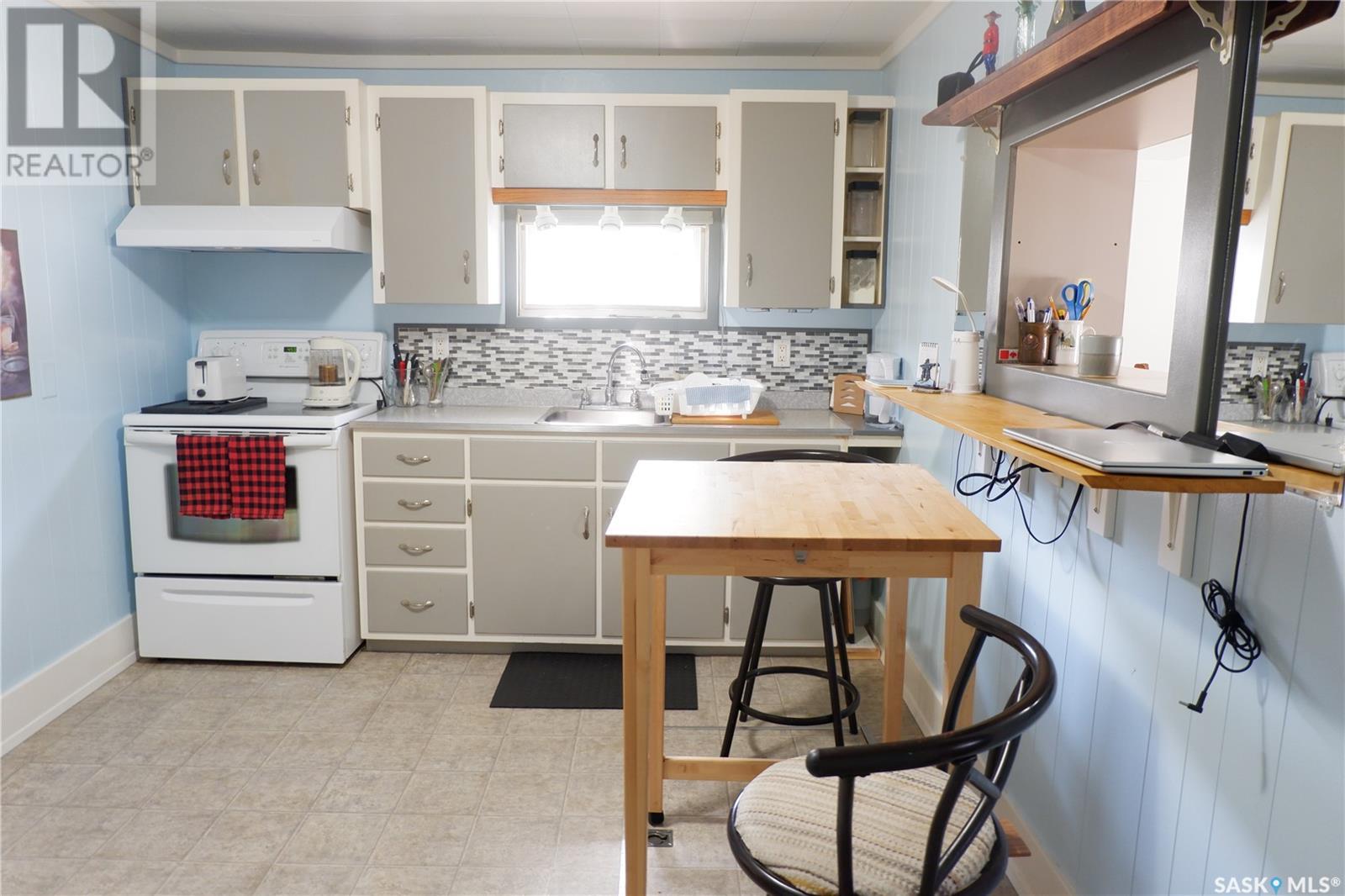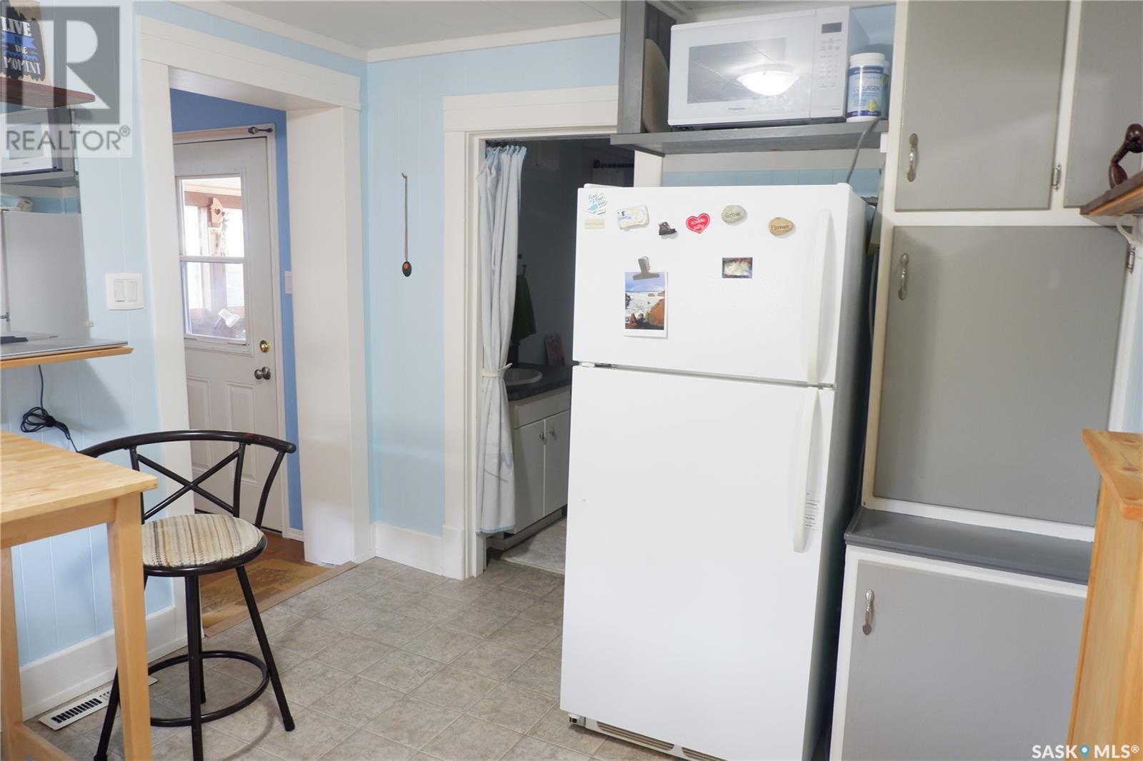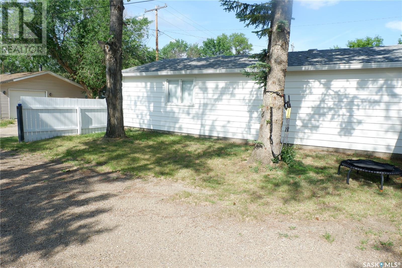 Located in the Town of Mossbank. This is a quaint house on a large lot in a great location. There are 3 storage sheds in the back yard, as well as lots of room to park. The house features an enclosed sunroom on the back, great for enjoyment with no misquitos. Enter through this room to the porch and access to the second bedroom. The kitchen is in the centre of the home and provides access to the 4-piece bath including a laundry area and to the living room. The primary bedroom is in the front of the house and it features a large closet. Access to the crawl space is in the kitchen. This area has the furnace and water heater that have both been replaced. The electrical panel as also been upgraded. There is also the added comfort of central air conditioning! The exterior of the house has been repainted. Mossbank is a vibrant community with a K-12 school, grogery store, insurance agency, accountany agency, gift shop, restaurant, bar, skating and curling ice beside the outdoor pool Mossbank has the best water in southern Saskatchewan! Come have a look! (id:43042)