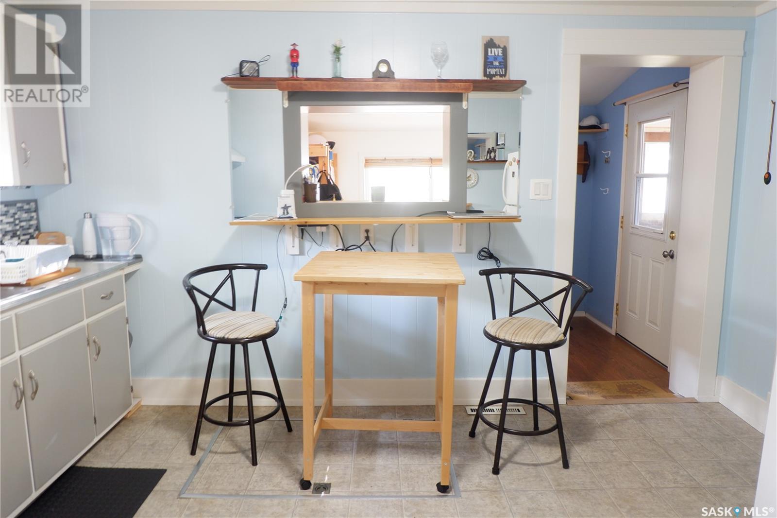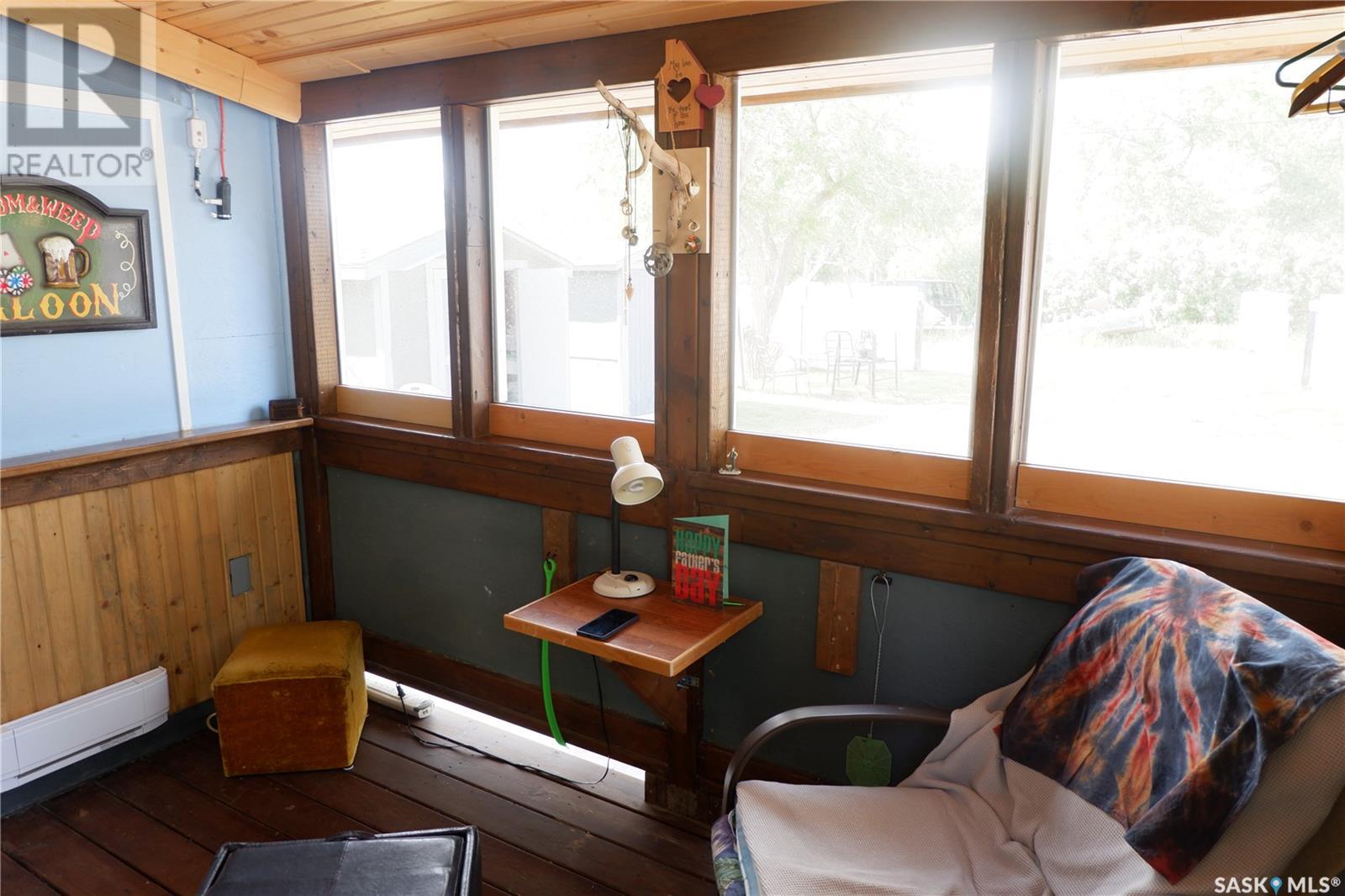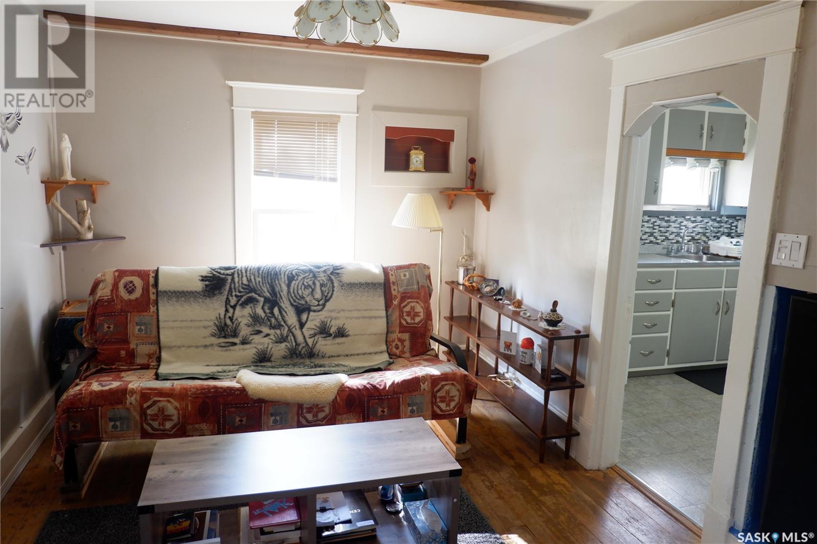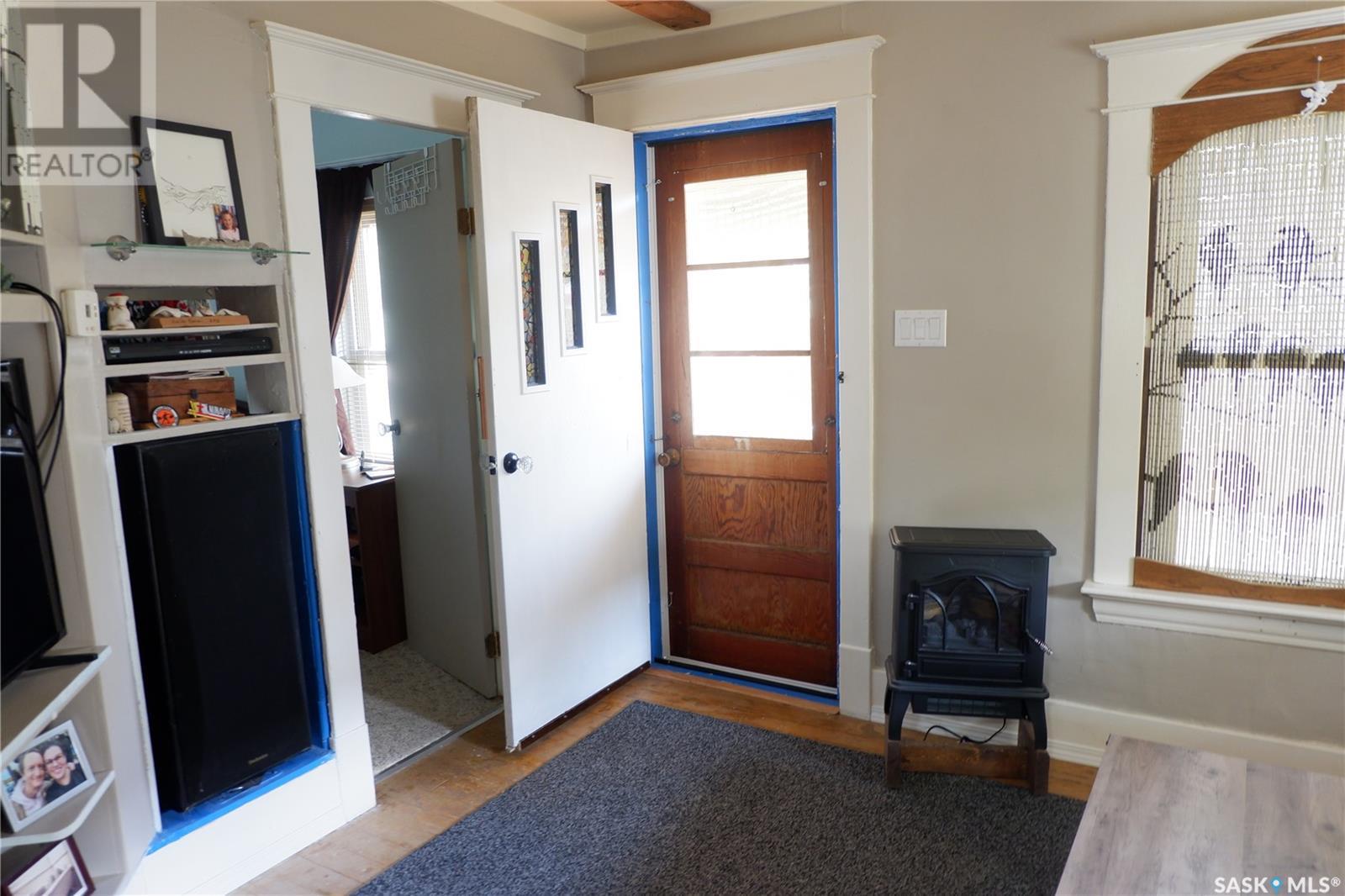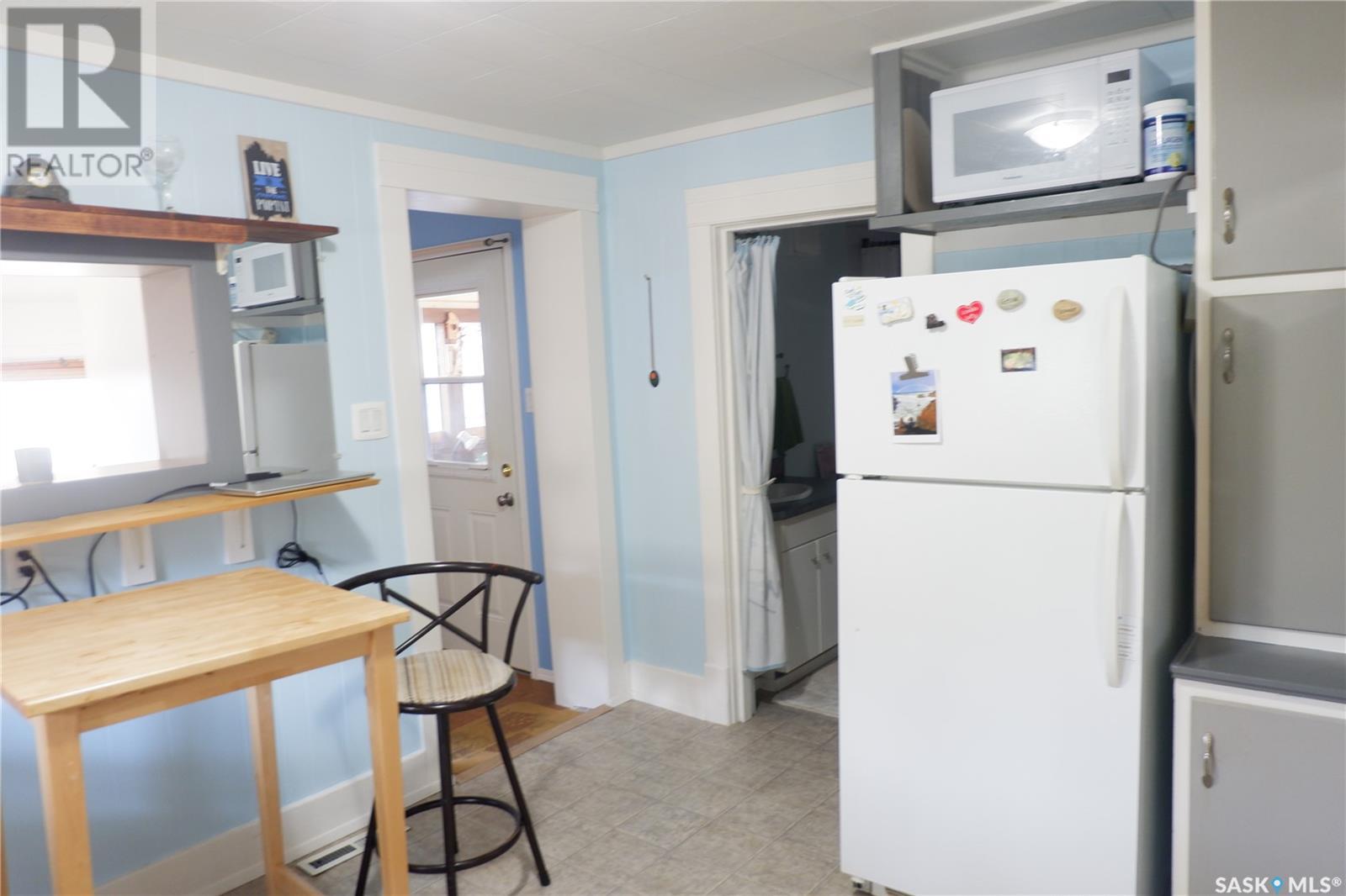 Located in the Town of Mossbank. This is a quaint house on a large lot in a great location. There are 3 storage sheds in the back yard, as well as lots of room to park. The house features an enclosed sunroom on the back, great for enjoyment with no misquitos. Enter through this room to the porch and access to the second bedroom. The kitchen is in the centre of the home and provides access to the 4-piece bath including a laundry area and to the living room. The primary bedroom is in the front of the house and it features a large closet. Access to the crawl space is in the kitchen. This area has the furnace and water heater that have both been replaced. The electrical panel as also been upgraded. There is also the added comfort of central air conditioning! The exterior of the house has been repainted. Mossbank is a vibrant community with a K-12 school, grogery store, insurance agency, accountany agency, gift shop, restaurant, bar, skating and curling ice beside the outdoor pool Mossbank has the best water in southern Saskatchewan! Come have a look! (id:43042)
