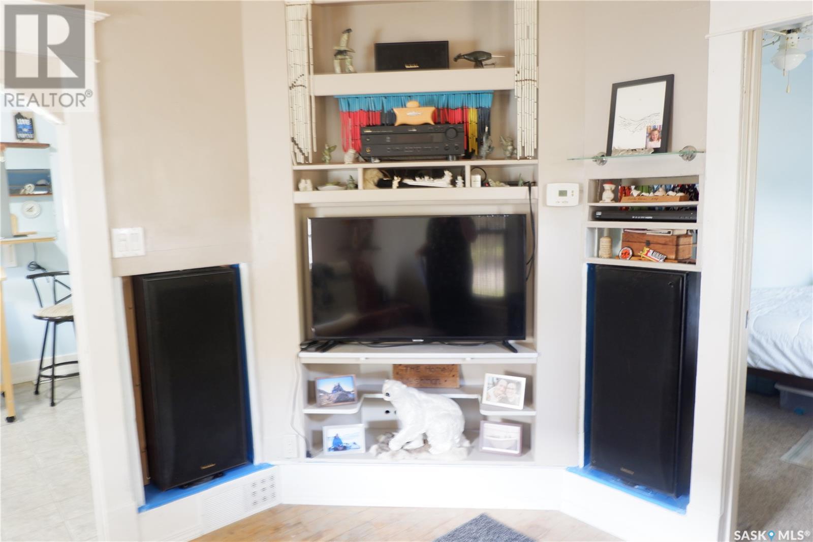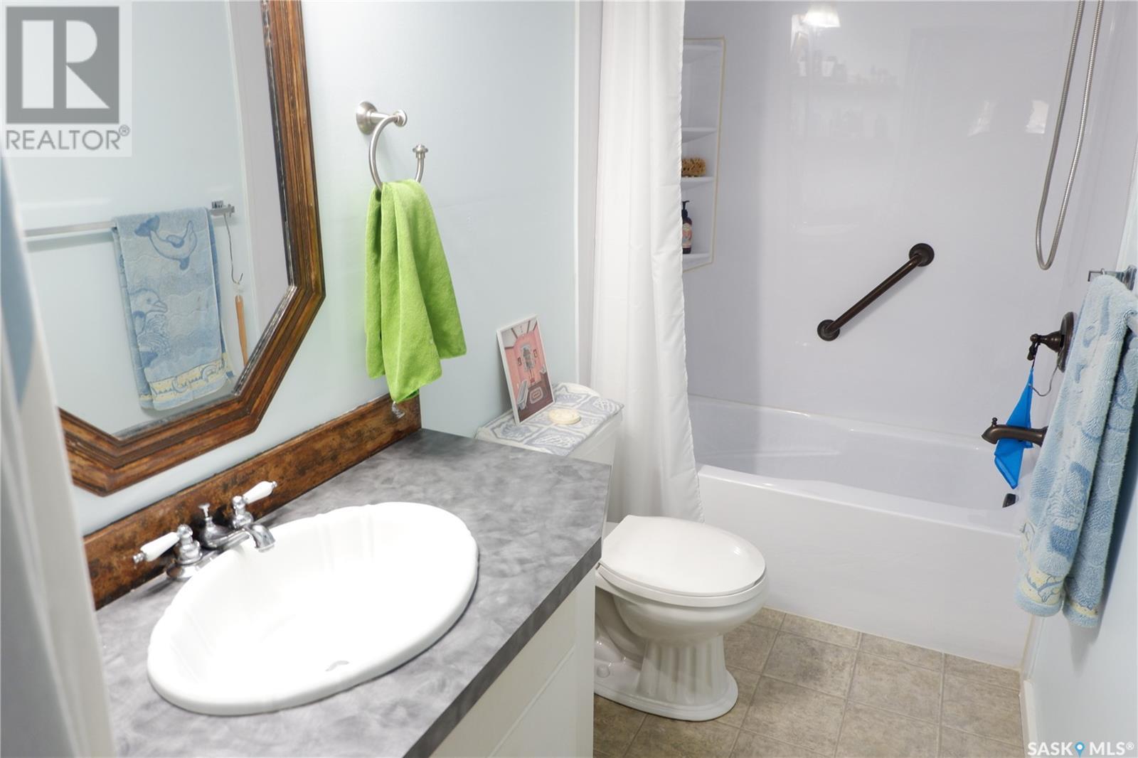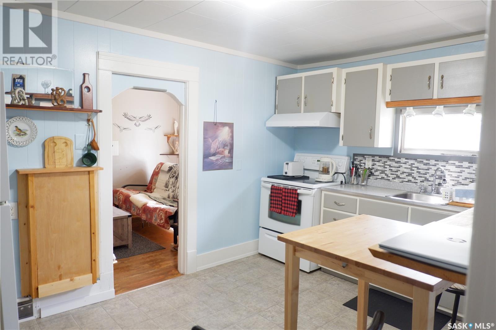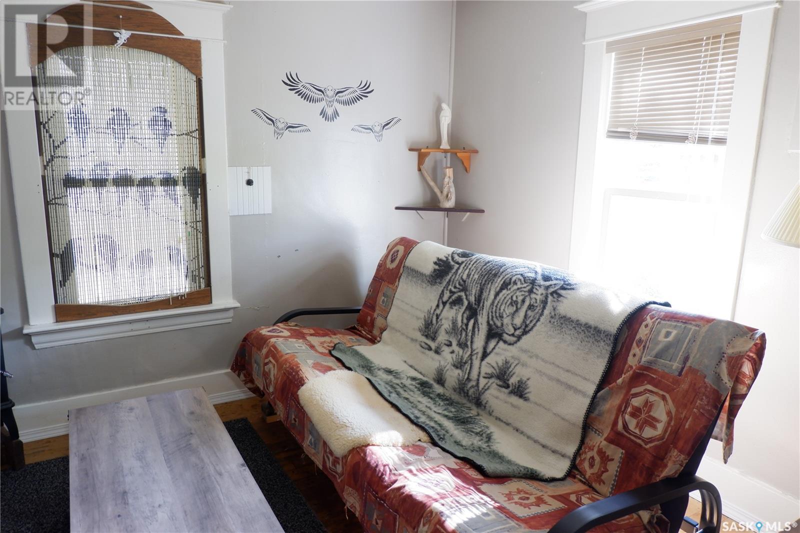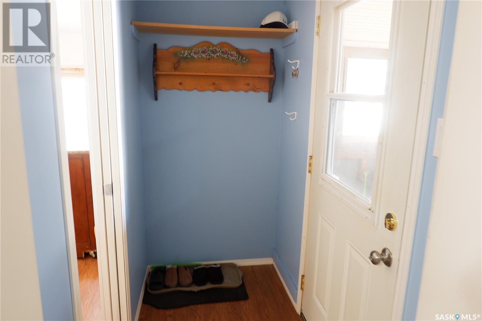 Located in the Town of Mossbank. This is a quaint house on a large lot in a great location. There are 3 storage sheds in the back yard, as well as lots of room to park. The house features an enclosed sunroom on the back, great for enjoyment with no misquitos. Enter through this room to the porch and access to the second bedroom. The kitchen is in the centre of the home and provides access to the 4-piece bath including a laundry area and to the living room. The primary bedroom is in the front of the house and it features a large closet. Access to the crawl space is in the kitchen. This area has the furnace and water heater that have both been replaced. The electrical panel as also been upgraded. There is also the added comfort of central air conditioning! The exterior of the house has been repainted. Mossbank is a vibrant community with a K-12 school, grogery store, insurance agency, accountany agency, gift shop, restaurant, bar, skating and curling ice beside the outdoor pool Mossbank has the best water in southern Saskatchewan! Come have a look! (id:43042)