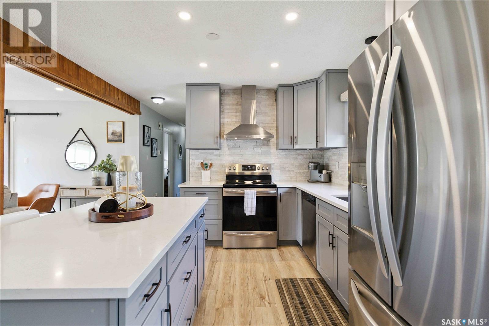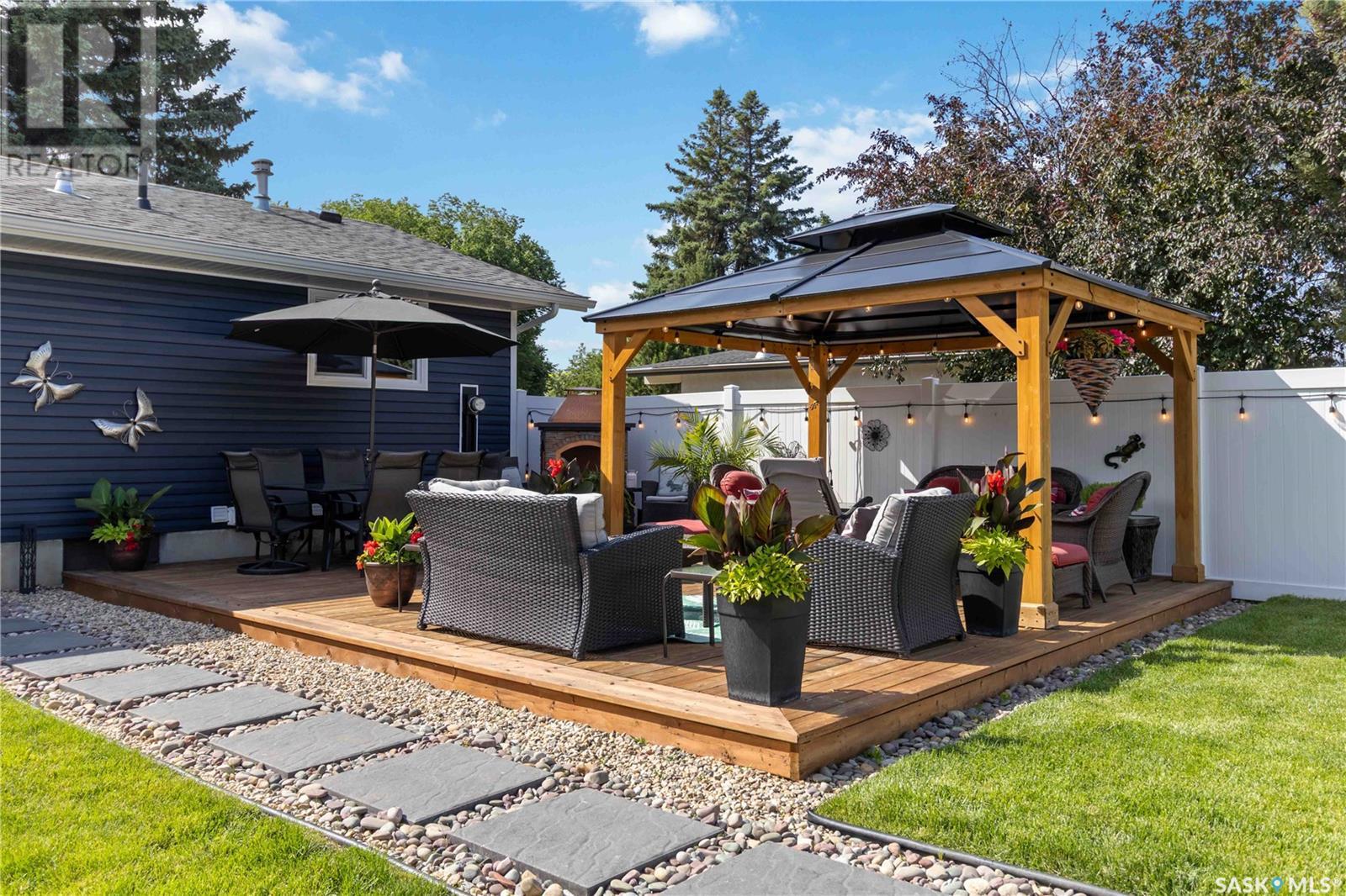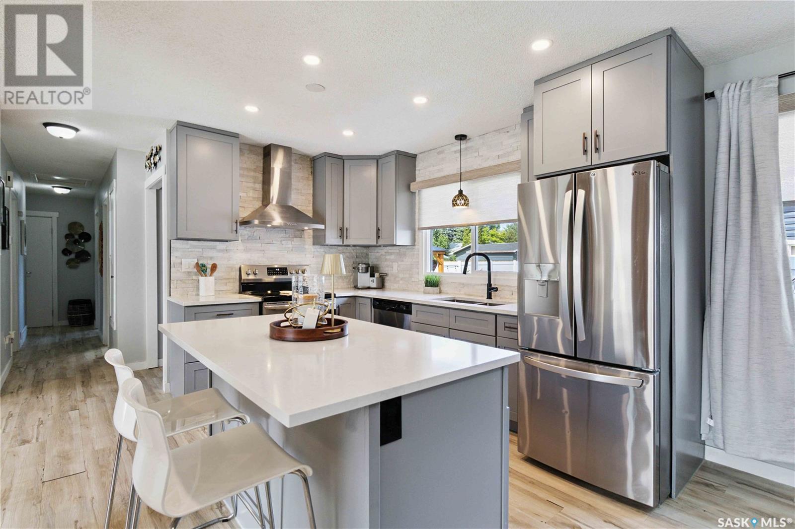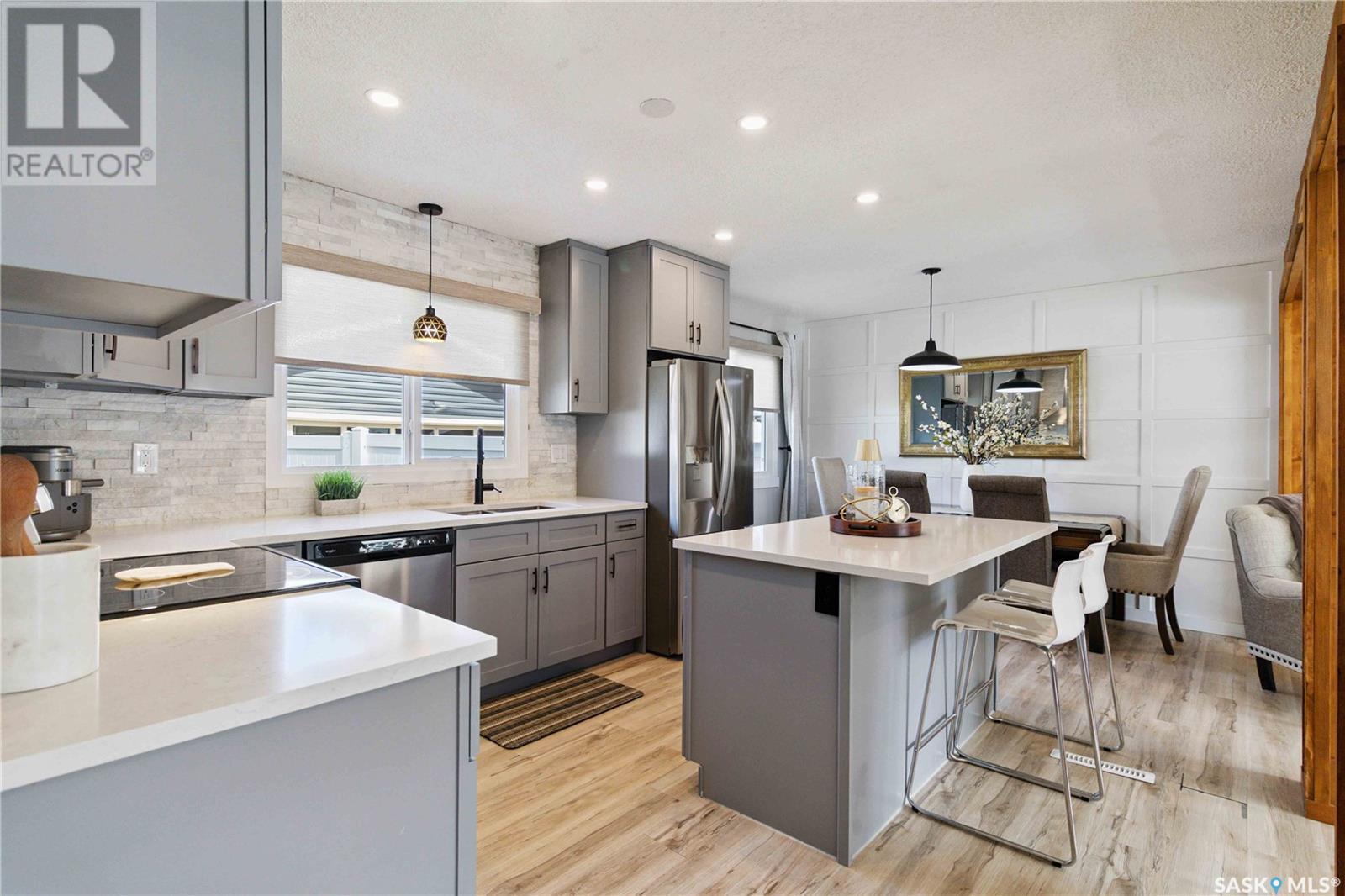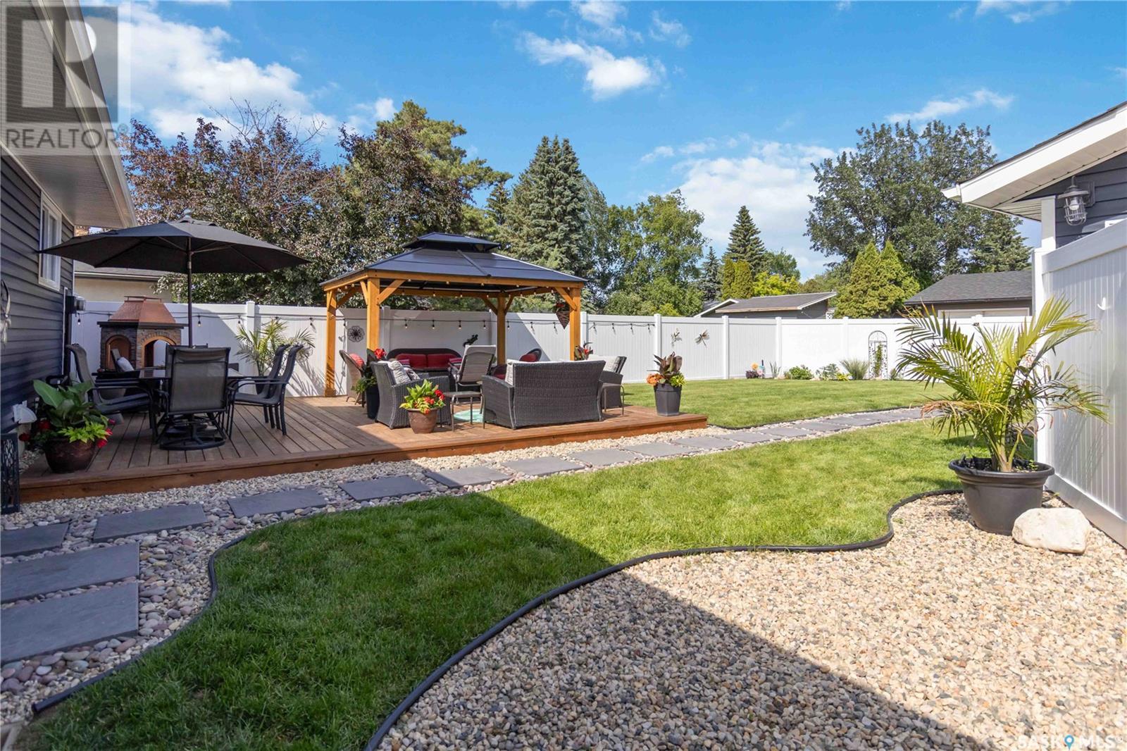 Nestled in the heart of a friendly Saskatoon community, 2125 Easthill presents an inviting opportunity for families and professionals seeking a harmonious balance of comfort and convenience. This delightful 1,056 sqft bungalow, standing proudly on a sprawling 6,843 sqft lot, offers a modern and upgraded living experience with its four comfortably sized bedrooms and two bathrooms. As you step inside, the open concept main floor unfurls, revealing bright living areas bathed in natural light, perfect for creating cherished family memories or entertaining guests. The heart of the home, a sleek and contemporary kitchen, boasts an island with breakfast bar, seamlessly blending functionality with sociable space. The property has enjoyed a plethora of enhancements, including the installation of central air in August 2022, new siding and roofing in 2021, and a vinyl fence in 2023. Furthermore, the spacious 24 x 28 heated garage adds a touch of luxury and practicality to this already impressive home. Outdoor living is catered for with a newly stained 24X20 deck, alongside a beautifully landscaped yard, featuring a pergola, deck, and fire pit area – all fully fenced with dual alley access. Strategically located, this property is a stone's throw from schools, parks, and Circle Centre Mall, with swift connections to Stonebridge, Circle Drive, and the University of Saskatchewan. An impeccable choice for those who value community, quality, and convenience, 2125 Easthill is more than a house – it's the key to your new lifestyle, embraced by great neighbours and a sense of belonging. (id:43042)