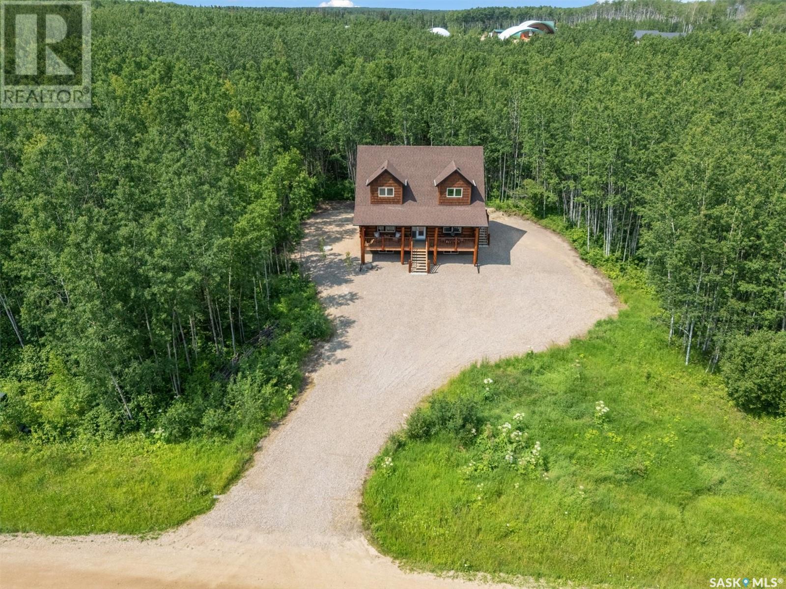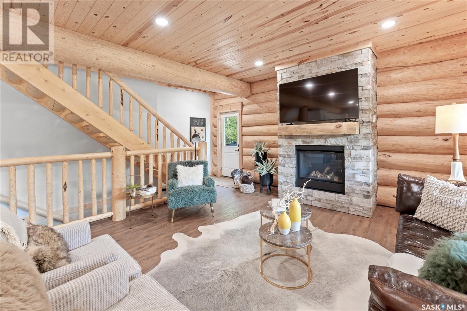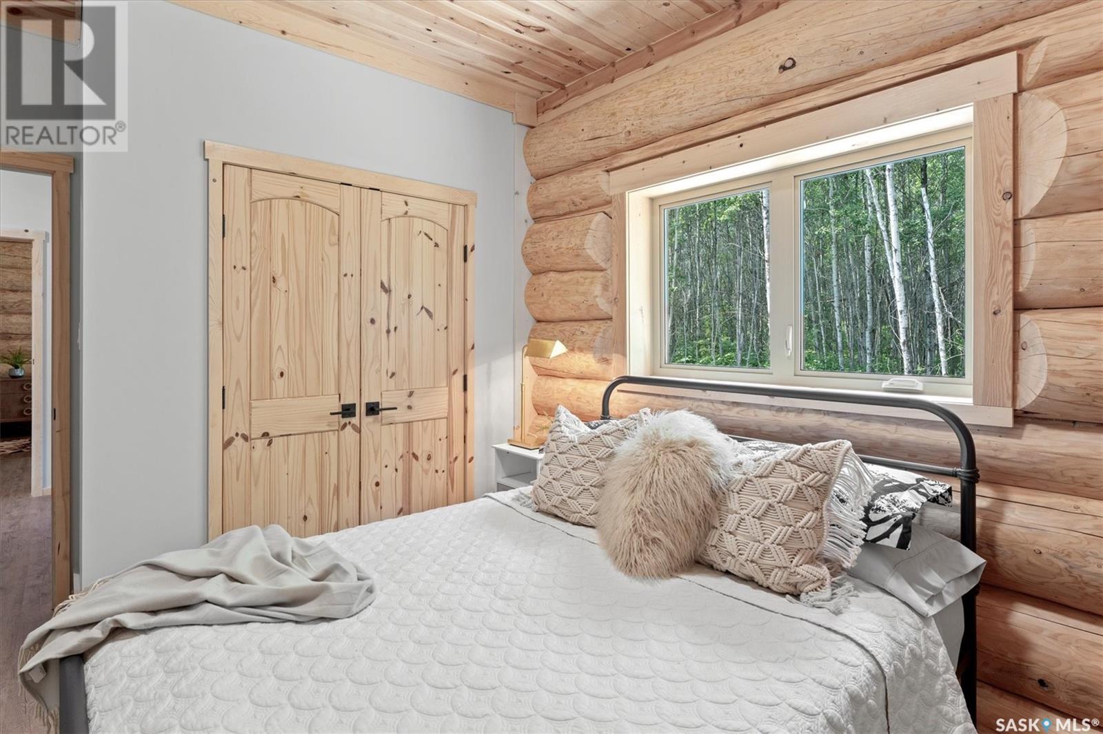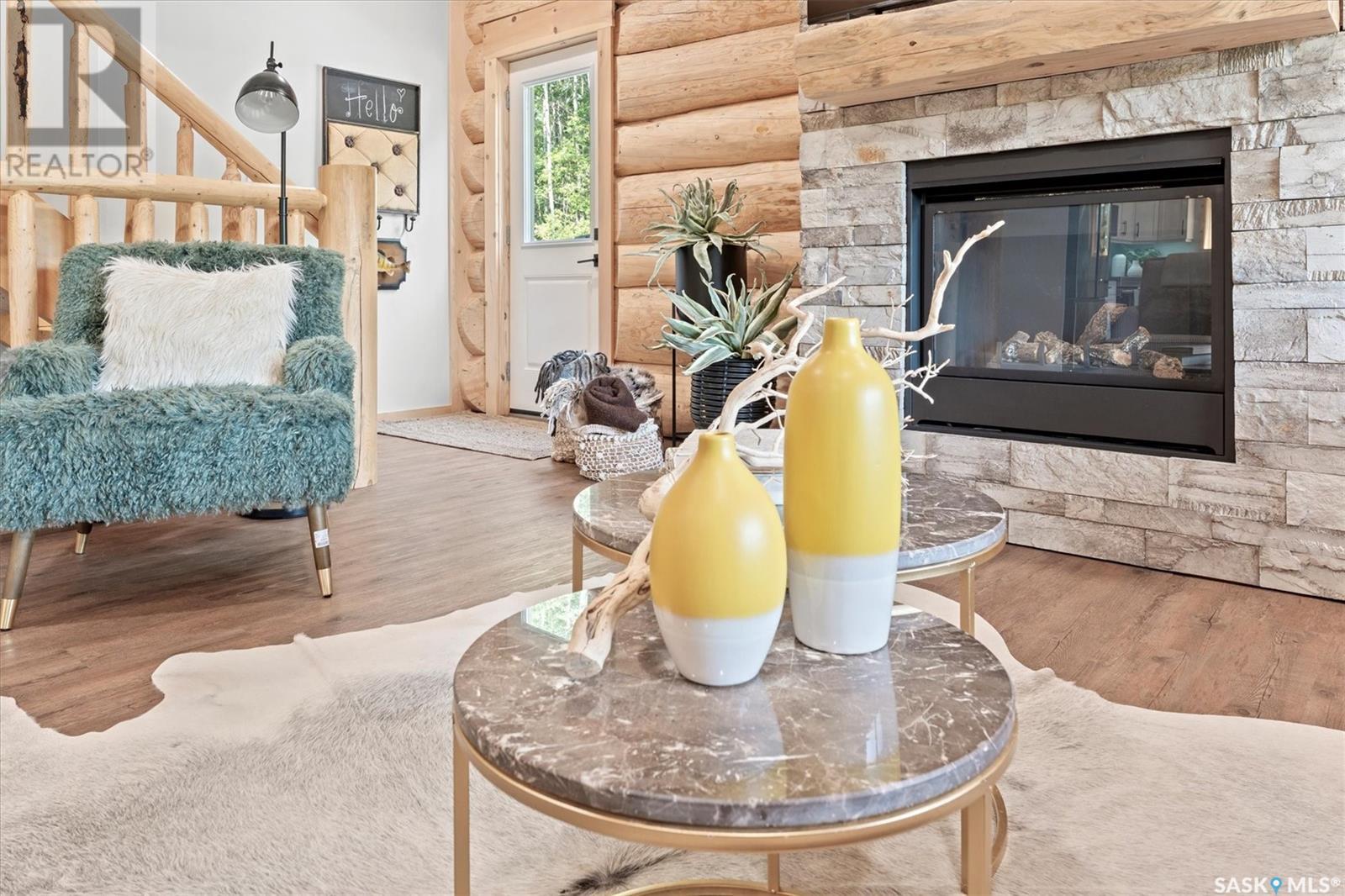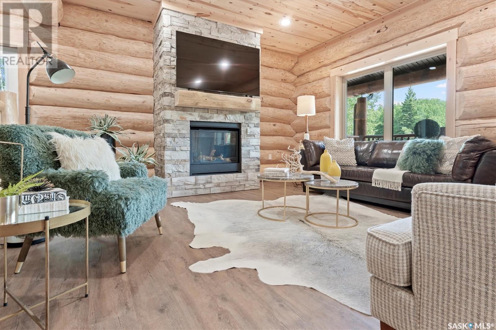 Stunning Authentic Four-Season Log Home by Lakeland Log & Timber – 2.4 Acres at Emma Lake! Welcome to Timber Estates. This exceptional log home, built by the renowned Lakeland Log & Timber, is nestled on a private landscaped 2.4-acre lot, just steps from Murray Point and the marina. Surrounded by mature forest in a manicured enclave, this is Emma Lake living at its best. 1,808 sq ft custom-built home features 3 beds, 2 full baths, an impressive bonus room retreat, and a raised basement with large windows and tall ceilings. A covered front porch with timber details welcomes you into an open-concept main floor featuring a spacious kitchen, dining, and great room – anchored by a stone fireplace and log mantle, with log walls and exposed timber beams throughout. The kitchen features classic white shaker cabinetry, stainless steel appliances, and a spacious dining area that opens into the living room, making it perfect for cozy lake evenings. Durable, natural-look vinyl plank flooring and pine-clad ceilings throughout main; in addition two spacious main-floor bedrooms w/ log accent walls and a 4pc bathroom. A floating log staircase leads to the second floor. 2nd level features a spectacular bonus room with peaked/vaulted ceiling, timber beams/posts, dormer window nook, and pine-clad ceiling, providing a unique additional lounge and entertaining space. The 2nd flr primary suite has vaulted pine ceilings, a sitting area, custom walk-in closet, and a 4pc ensuite. Additional highlights: Four-season construction with incredible craftsmanship by LAKELAND LOG AND TIMBER Large water tank, sump pump, and weeping tile. Landscaped low maintenance cleared yard and drive, surrounded by forest. Located in prestigious Timber Estates, among other luxury log homes, a well-managed, quiet estate community. Minutes to Marina, Beach and all the recreation of Emma Lake. A rare opportunity to own a spectacular, timeless log home with exceptional traditional craftsmanship. (id:43042)