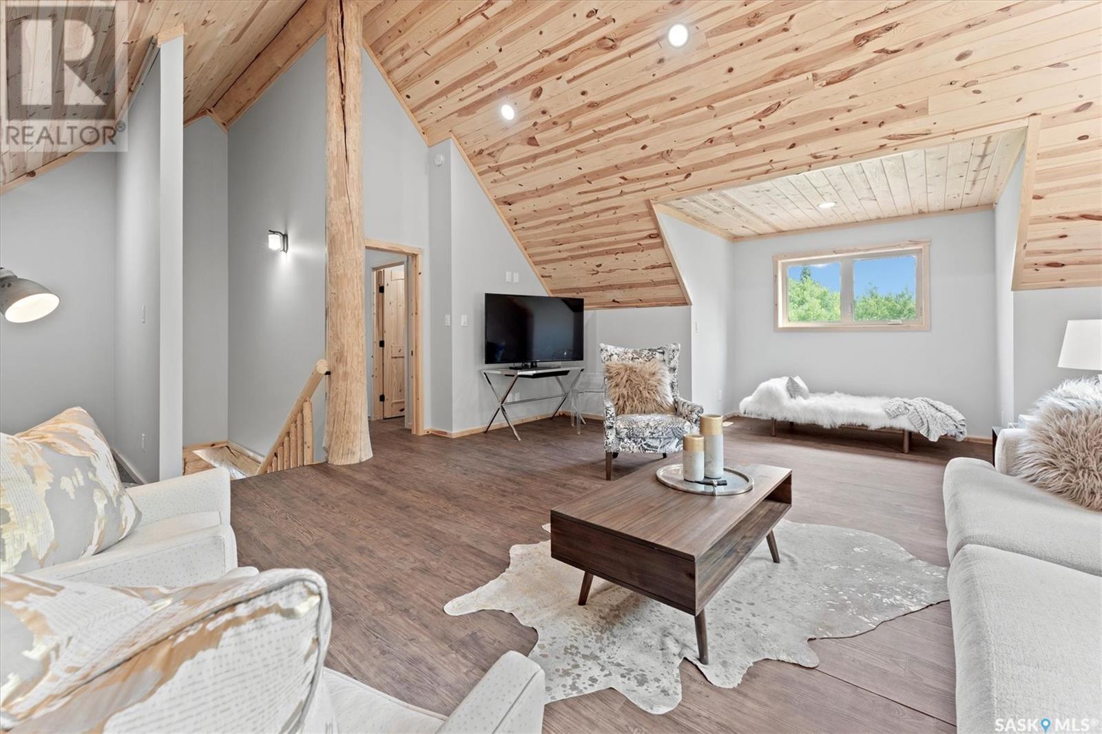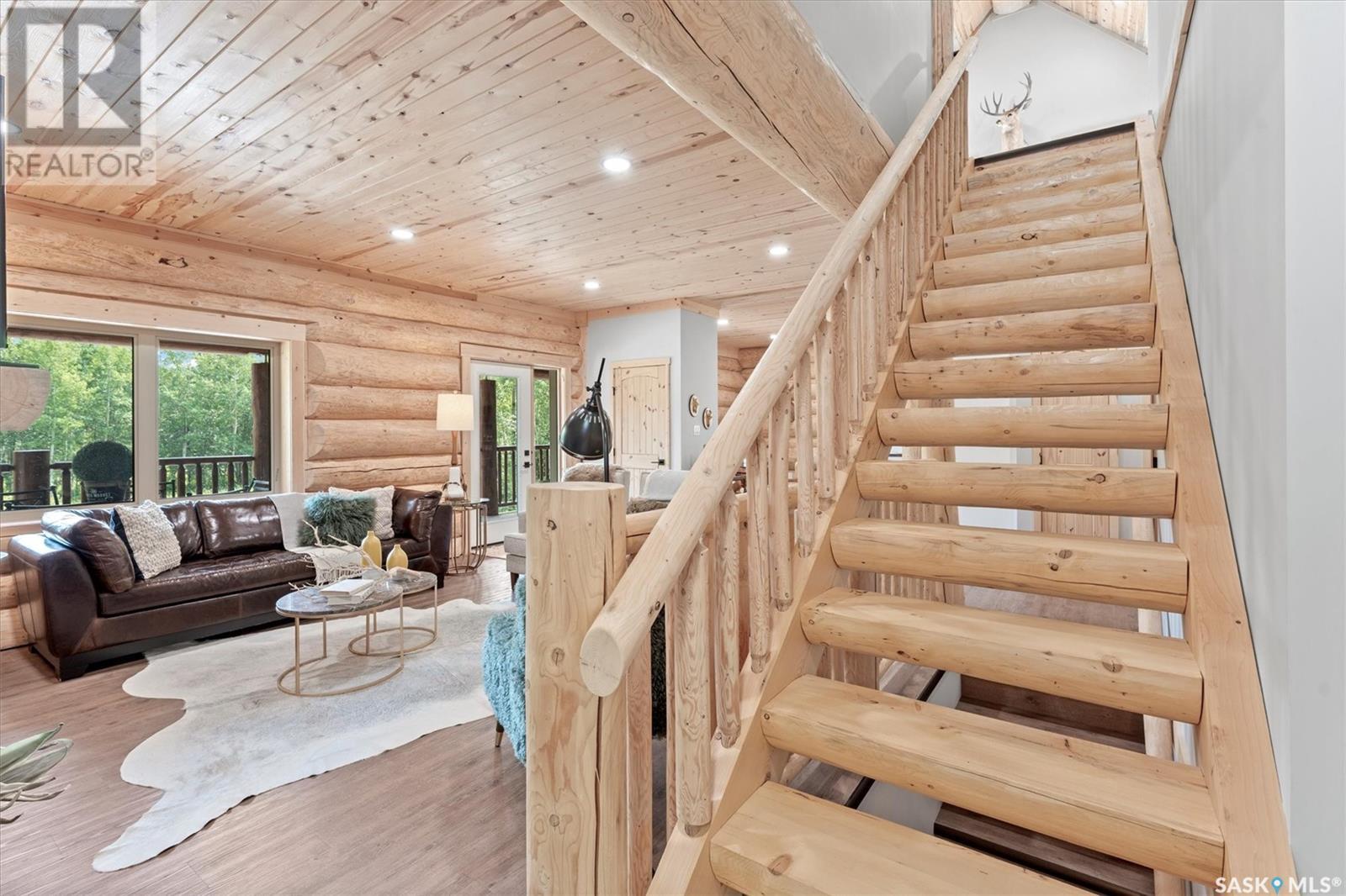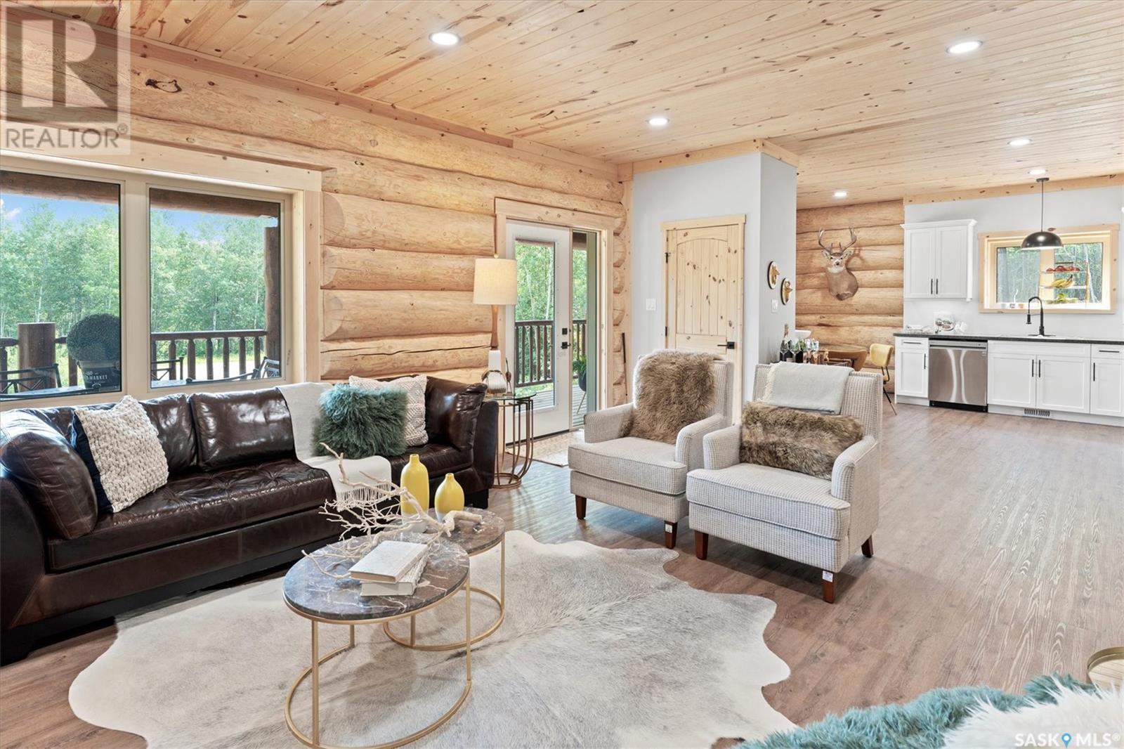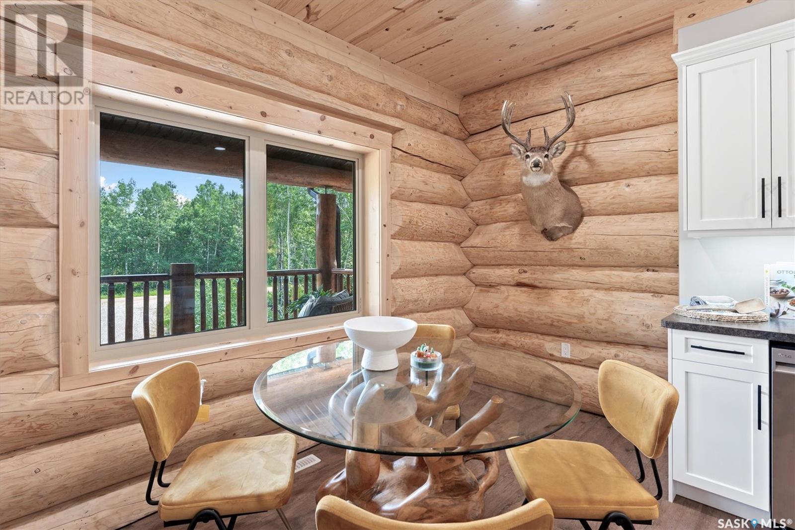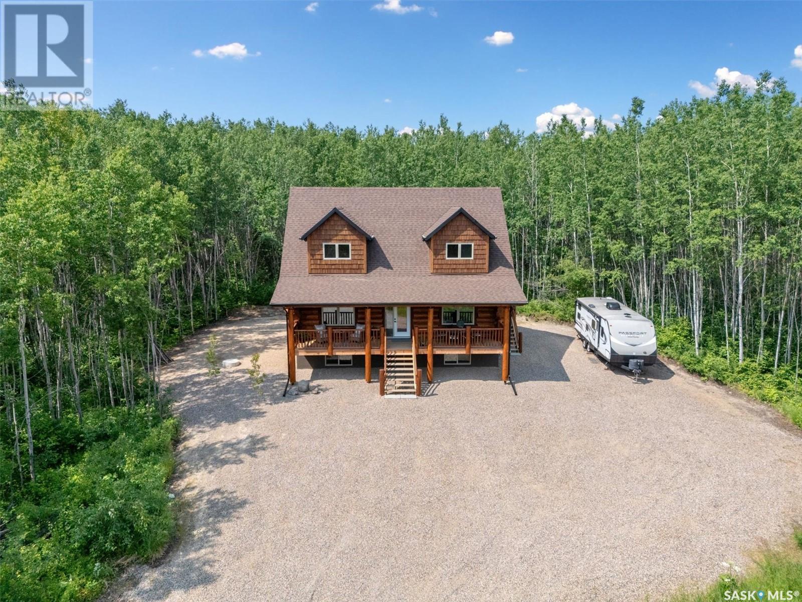 Stunning Authentic Four-Season Log Home by Lakeland Log & Timber – 2.4 Acres at Emma Lake! Welcome to Timber Estates. This exceptional log home, built by the renowned Lakeland Log & Timber, is nestled on a private landscaped 2.4-acre lot, just steps from Murray Point and the marina. Surrounded by mature forest in a manicured enclave, this is Emma Lake living at its best. 1,808 sq ft custom-built home features 3 beds, 2 full baths, an impressive bonus room retreat, and a raised basement with large windows and tall ceilings. A covered front porch with timber details welcomes you into an open-concept main floor featuring a spacious kitchen, dining, and great room – anchored by a stone fireplace and log mantle, with log walls and exposed timber beams throughout. The kitchen features classic white shaker cabinetry, stainless steel appliances, and a spacious dining area that opens into the living room, making it perfect for cozy lake evenings. Durable, natural-look vinyl plank flooring and pine-clad ceilings throughout main; in addition two spacious main-floor bedrooms w/ log accent walls and a 4pc bathroom. A floating log staircase leads to the second floor. 2nd level features a spectacular bonus room with peaked/vaulted ceiling, timber beams/posts, dormer window nook, and pine-clad ceiling, providing a unique additional lounge and entertaining space. The 2nd flr primary suite has vaulted pine ceilings, a sitting area, custom walk-in closet, and a 4pc ensuite. Additional highlights: Four-season construction with incredible craftsmanship by LAKELAND LOG AND TIMBER Large water tank, sump pump, and weeping tile. Landscaped low maintenance cleared yard and drive, surrounded by forest. Located in prestigious Timber Estates, among other luxury log homes, a well-managed, quiet estate community. Minutes to Marina, Beach and all the recreation of Emma Lake. A rare opportunity to own a spectacular, timeless log home with exceptional traditional craftsmanship. (id:43042)