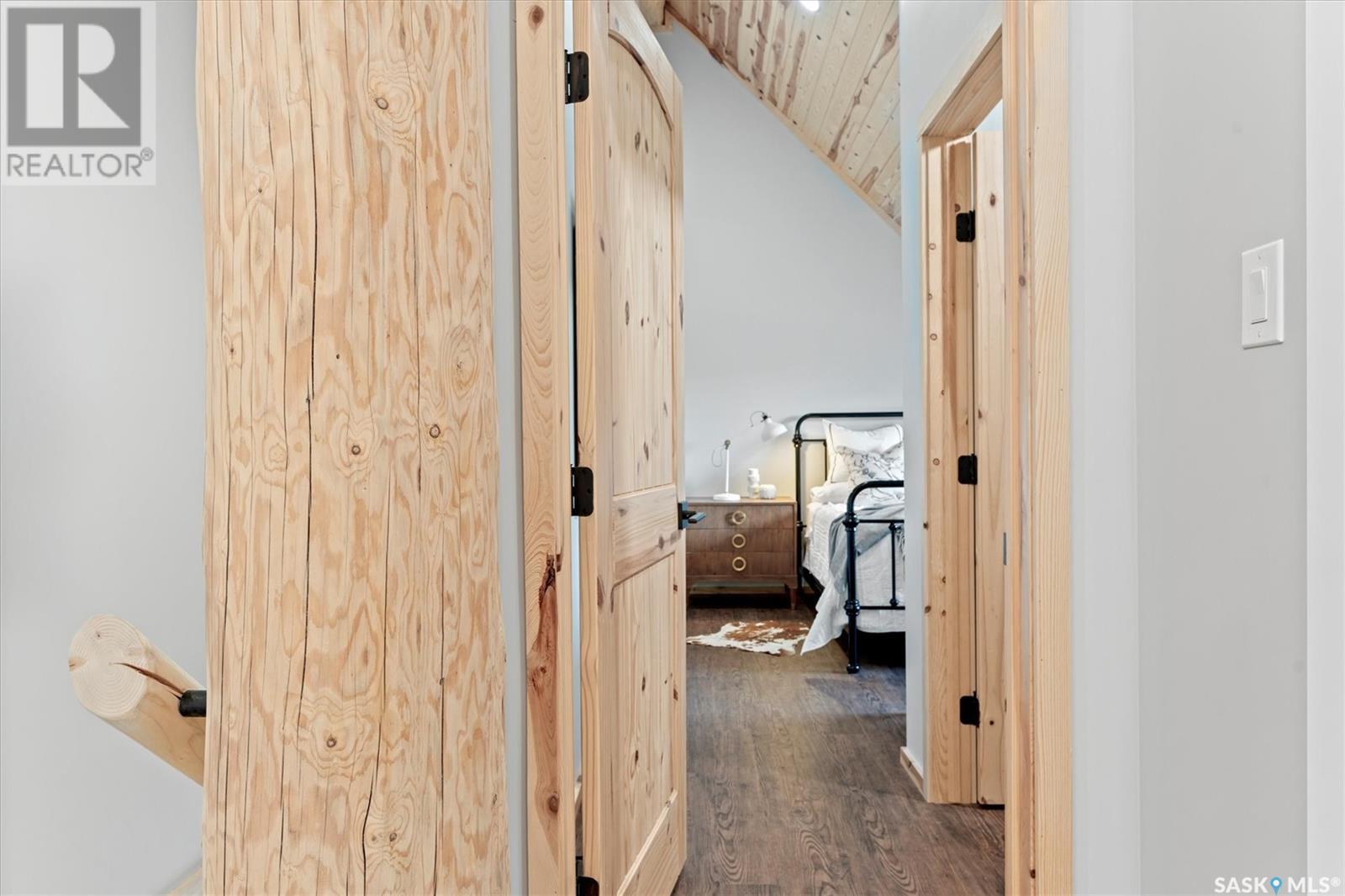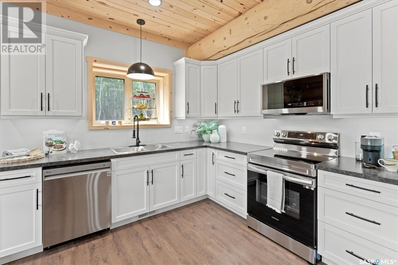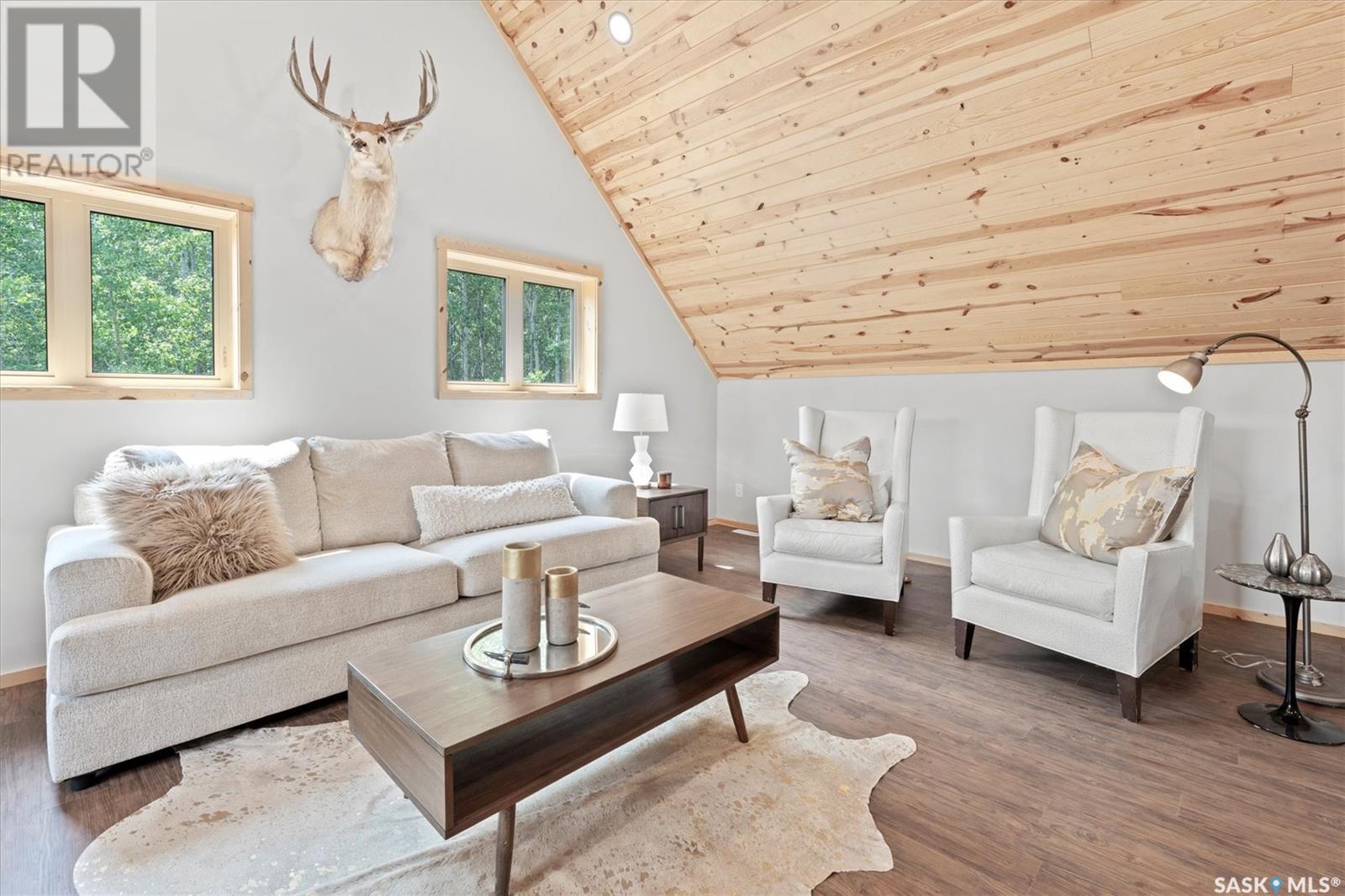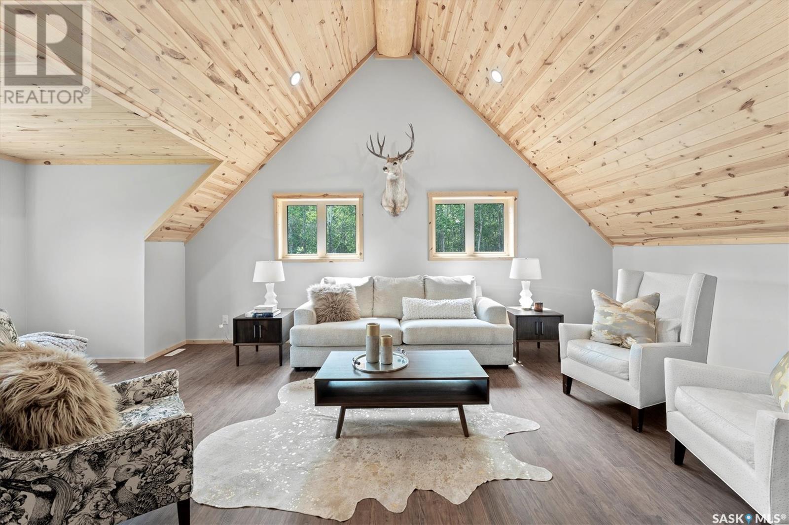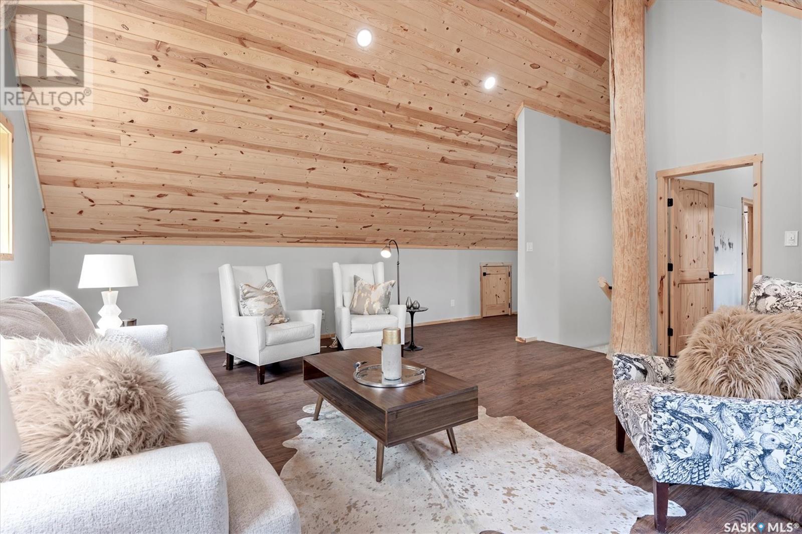 Stunning Authentic Four-Season Log Home by Lakeland Log & Timber – 2.4 Acres at Emma Lake! Welcome to Timber Estates. This exceptional log home, built by the renowned Lakeland Log & Timber, is nestled on a private landscaped 2.4-acre lot, just steps from Murray Point and the marina. Surrounded by mature forest in a manicured enclave, this is Emma Lake living at its best. 1,808 sq ft custom-built home features 3 beds, 2 full baths, an impressive bonus room retreat, and a raised basement with large windows and tall ceilings. A covered front porch with timber details welcomes you into an open-concept main floor featuring a spacious kitchen, dining, and great room – anchored by a stone fireplace and log mantle, with log walls and exposed timber beams throughout. The kitchen features classic white shaker cabinetry, stainless steel appliances, and a spacious dining area that opens into the living room, making it perfect for cozy lake evenings. Durable, natural-look vinyl plank flooring and pine-clad ceilings throughout main; in addition two spacious main-floor bedrooms w/ log accent walls and a 4pc bathroom. A floating log staircase leads to the second floor. 2nd level features a spectacular bonus room with peaked/vaulted ceiling, timber beams/posts, dormer window nook, and pine-clad ceiling, providing a unique additional lounge and entertaining space. The 2nd flr primary suite has vaulted pine ceilings, a sitting area, custom walk-in closet, and a 4pc ensuite. Additional highlights: Four-season construction with incredible craftsmanship by LAKELAND LOG AND TIMBER Large water tank, sump pump, and weeping tile. Landscaped low maintenance cleared yard and drive, surrounded by forest. Located in prestigious Timber Estates, among other luxury log homes, a well-managed, quiet estate community. Minutes to Marina, Beach and all the recreation of Emma Lake. A rare opportunity to own a spectacular, timeless log home with exceptional traditional craftsmanship. (id:43042)