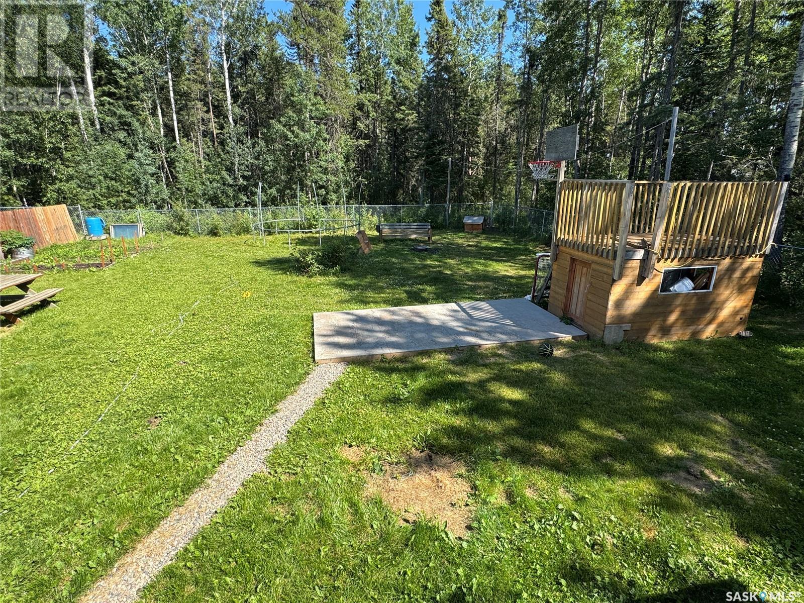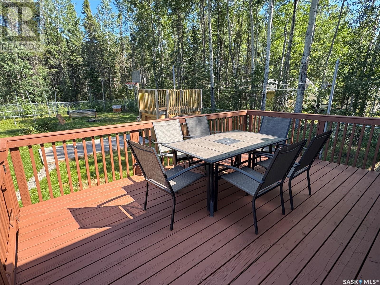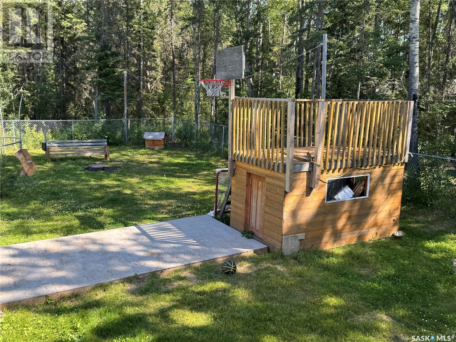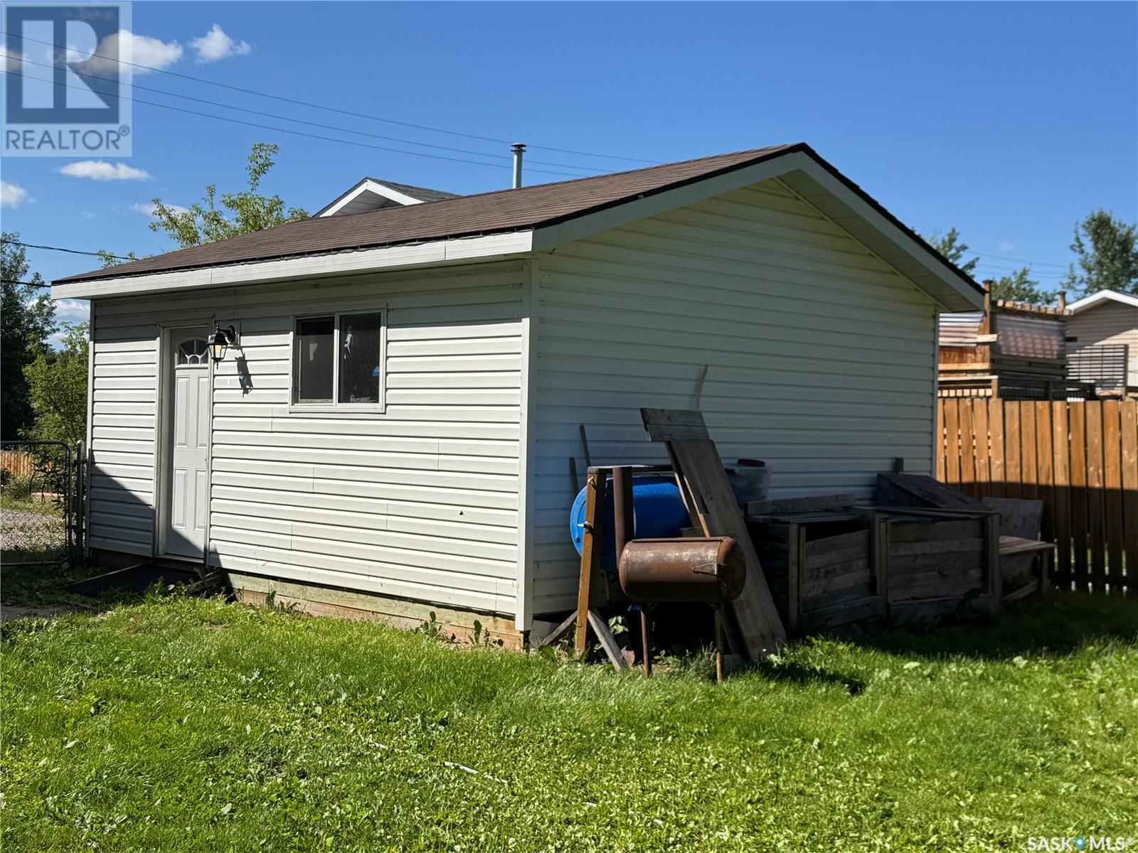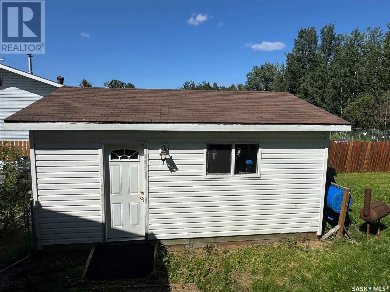 This move in ready home is waiting for you! Situated on a large lot in Air Ronge, this 4 bedroom & 2 bathroom home has everything a family needs! The white kitchen features a large window looking out to your beautiful backyard and includes a Bosch dishwasher and microwave hood fan that is vented outside. There are two bedrooms on the main level and a lovely bathroom that was recently renovated top to bottom. Downstairs you will find a massive family room, 2 more spacious bedrooms with brand new egress windows and another full bathroom with recent upgrades. The shingles are only about 10 years old and the natural gas furnace was replaced in 2024. The sale will also include a GenerLink and generator - so handy for short or long power outages. Almost a garage, the oversized storage shed is 16x20 and has room for all of your toys - quad/snowmobile/bikes - they will all fit through the overhead door no proble. With a brand new back door, you step out from your dining room on your back deck that is perfect for entertaining! The massive fenced backyard includes a garden area, fire pit, clothesline, and kids playhouse. With no neighbours behind you and an easement to your right, you could create the private backyard oasis of your dreams. You are only a block away from the spray park, outdoor rink, and soccer fields in one direction and one block from the Montreal River in the other, this house is perfectly located in Air Ronge to enjoy all Village life has to offer. There isn't a thing you need to do to this house - just move in and enjoy! (id:43042)