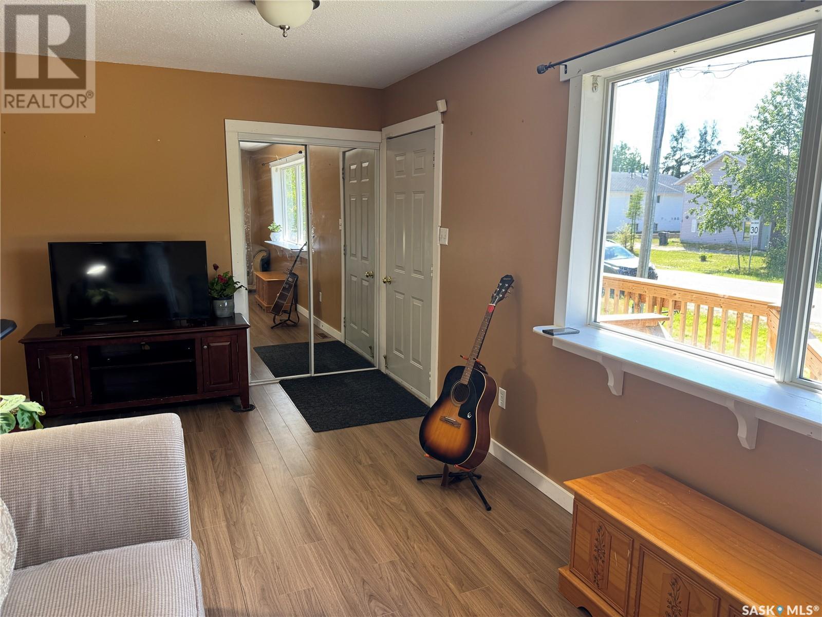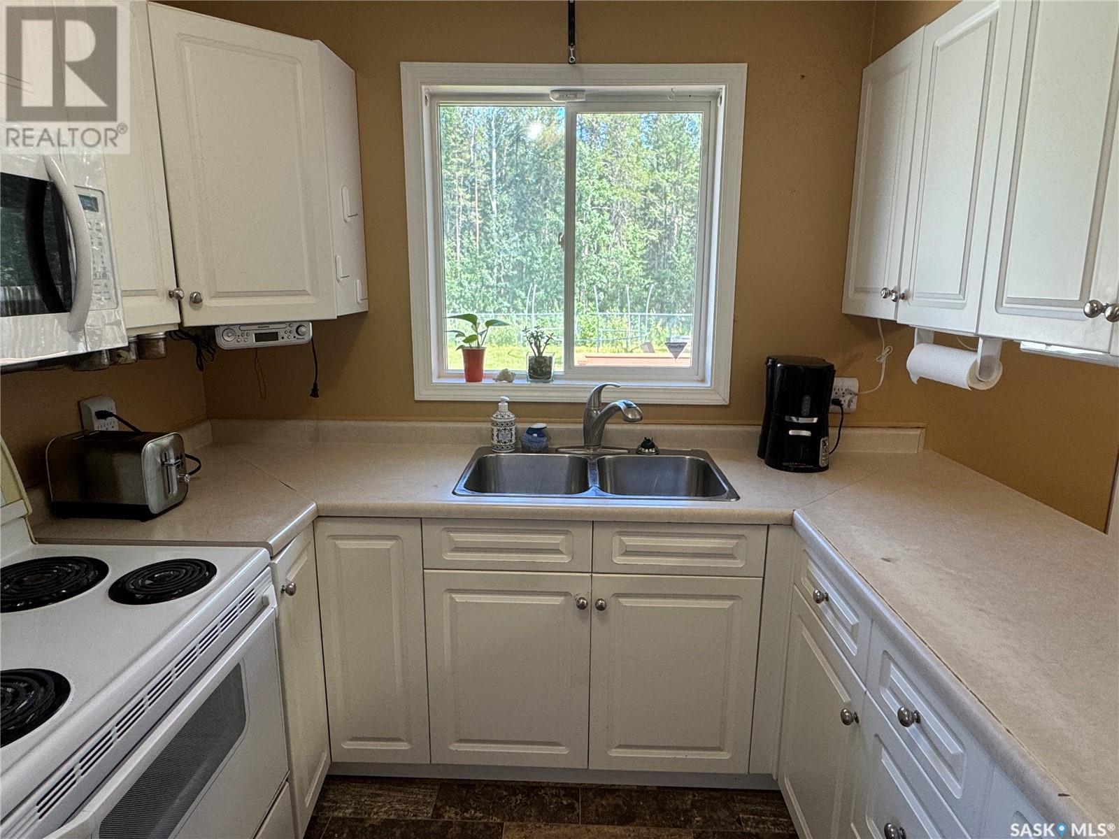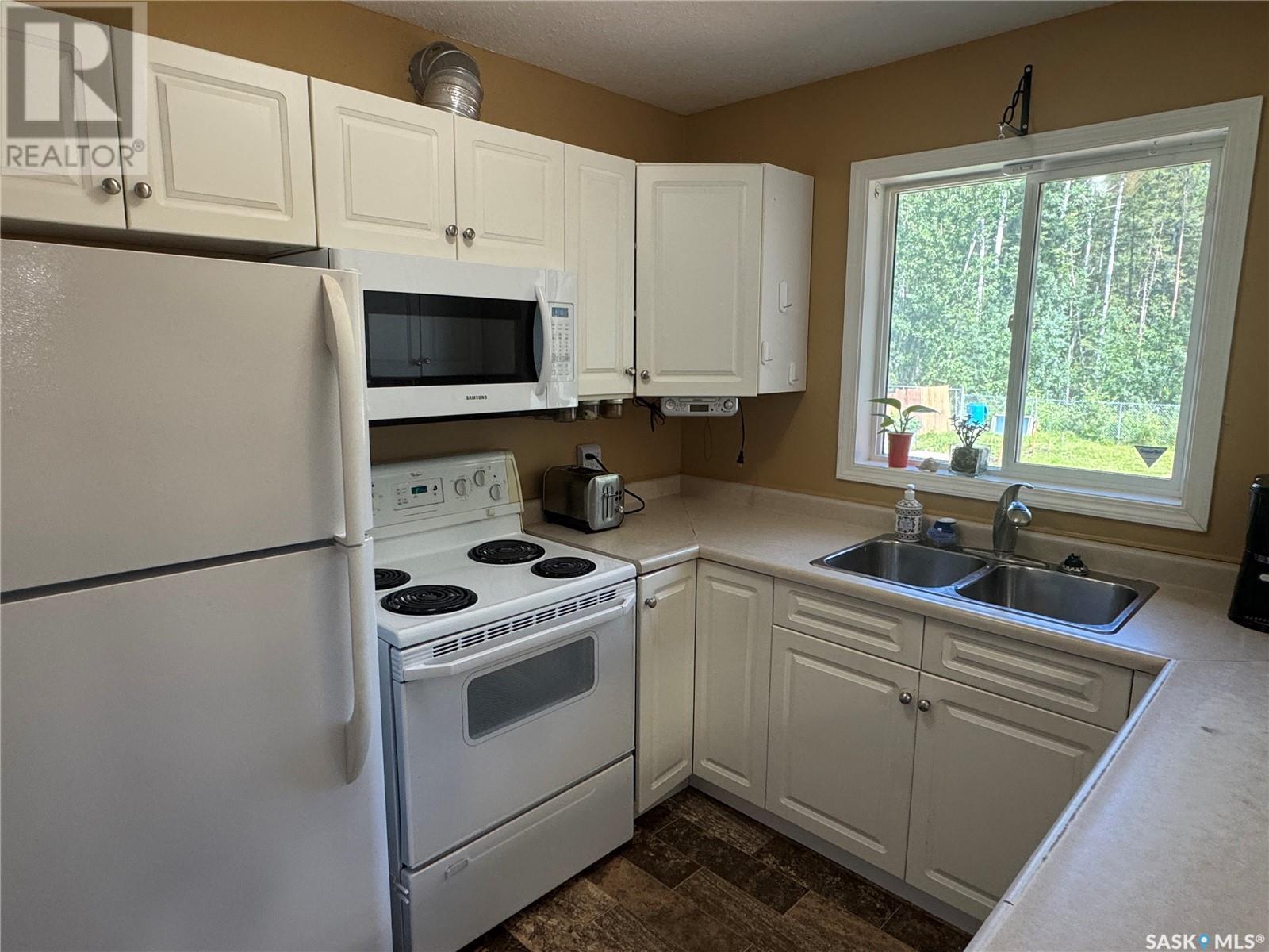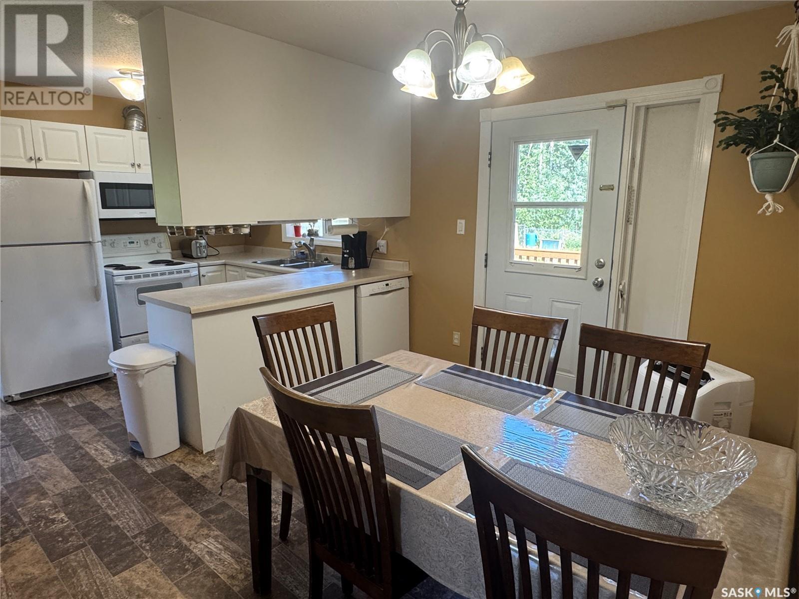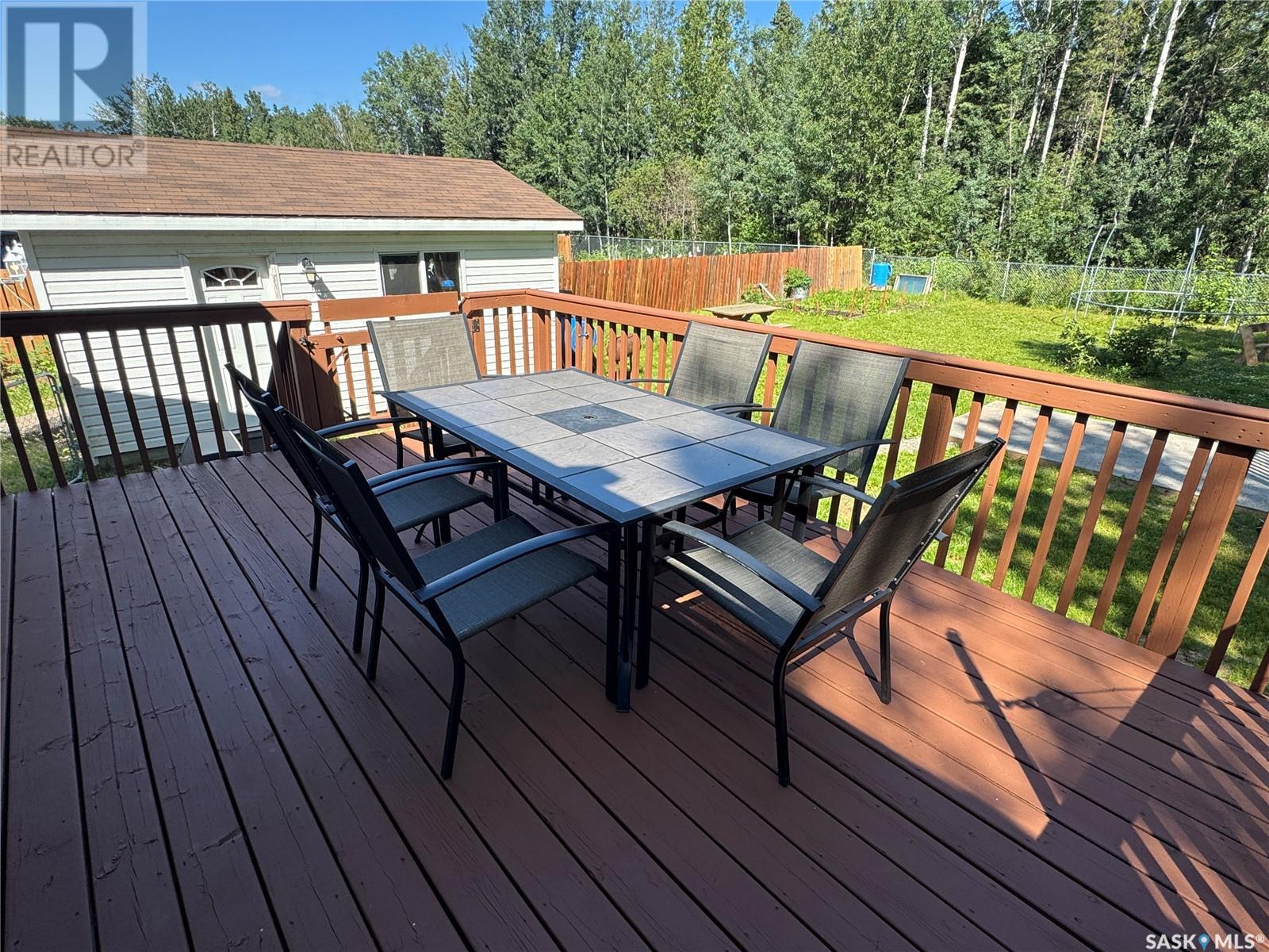 This move in ready home is waiting for you! Situated on a large lot in Air Ronge, this 4 bedroom & 2 bathroom home has everything a family needs! The white kitchen features a large window looking out to your beautiful backyard and includes a Bosch dishwasher and microwave hood fan that is vented outside. There are two bedrooms on the main level and a lovely bathroom that was recently renovated top to bottom. Downstairs you will find a massive family room, 2 more spacious bedrooms with brand new egress windows and another full bathroom with recent upgrades. The shingles are only about 10 years old and the natural gas furnace was replaced in 2024. The sale will also include a GenerLink and generator - so handy for short or long power outages. Almost a garage, the oversized storage shed is 16x20 and has room for all of your toys - quad/snowmobile/bikes - they will all fit through the overhead door no proble. With a brand new back door, you step out from your dining room on your back deck that is perfect for entertaining! The massive fenced backyard includes a garden area, fire pit, clothesline, and kids playhouse. With no neighbours behind you and an easement to your right, you could create the private backyard oasis of your dreams. You are only a block away from the spray park, outdoor rink, and soccer fields in one direction and one block from the Montreal River in the other, this house is perfectly located in Air Ronge to enjoy all Village life has to offer. There isn't a thing you need to do to this house - just move in and enjoy! (id:43042)