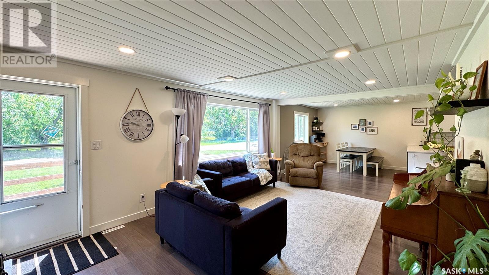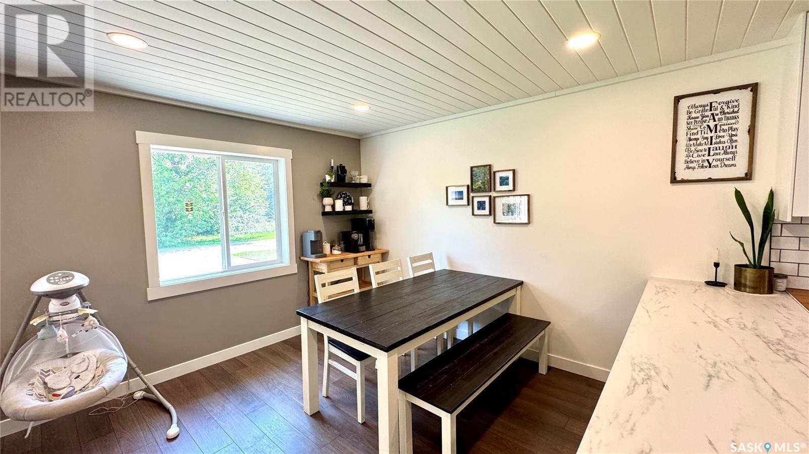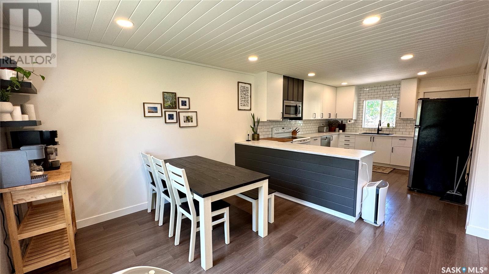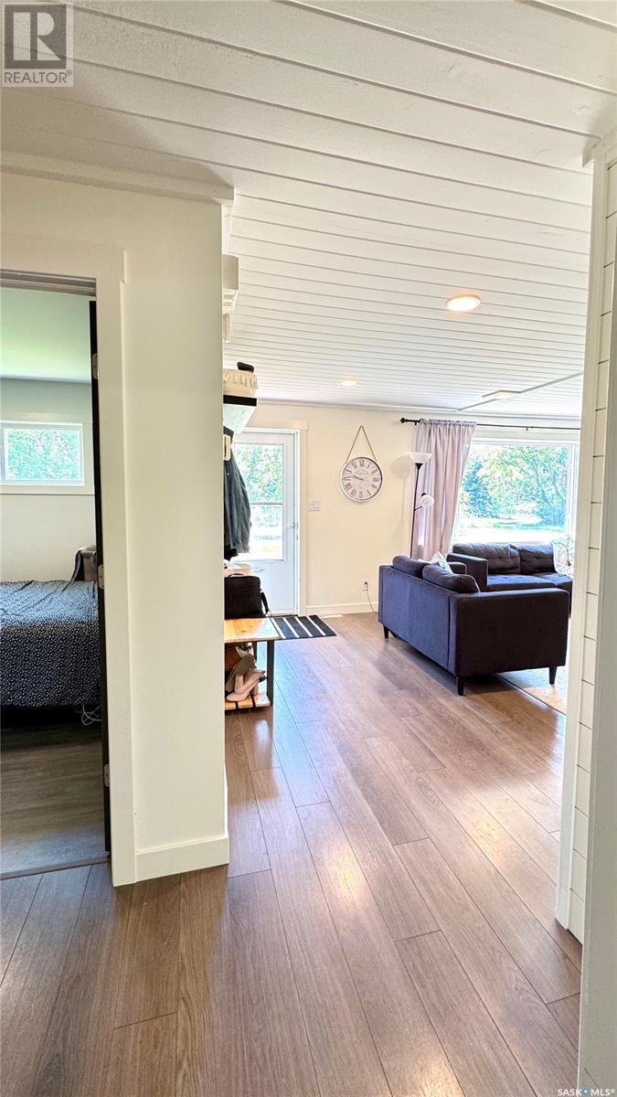 1144 Sq Ft Bungalow on 5 Lots – 219 KING ST BRODERICK, SASKATCHEWAN. This charming 4-bedroom, 1-bath bungalow sits on a spacious 65' x 125' lot in the quiet community of Broderick. The basement includes a large family/playroom, along with a rough-in for a second bathroom, offering room to grow. Extensively renovated, this home features a modern kitchen with new cabinetry, an updated bathroom, new flooring and trim throughout, composite siding (2020), and metal roof, windows, and exterior doors (2010). The lower level's exterior cement walls have been spray-foamed for improved energy efficiency, creating a warm and cozy interior. Furnace and hot water heater were updated in 2007/2008. Outside, the fully fenced yard spans 5 landscaped lots with mature trees, shrubs, garden space, and a back patio deck off the kitchen-ideal for outdoor living. The single garage has a new concrete floor. Located just 6 minutes east of Outlook and under an hour to Saskatoon via Highway 219, Broderick offers quiet living with easy access to amenities. Don’t miss this opportunity-call today to book your showing! (id:43042)