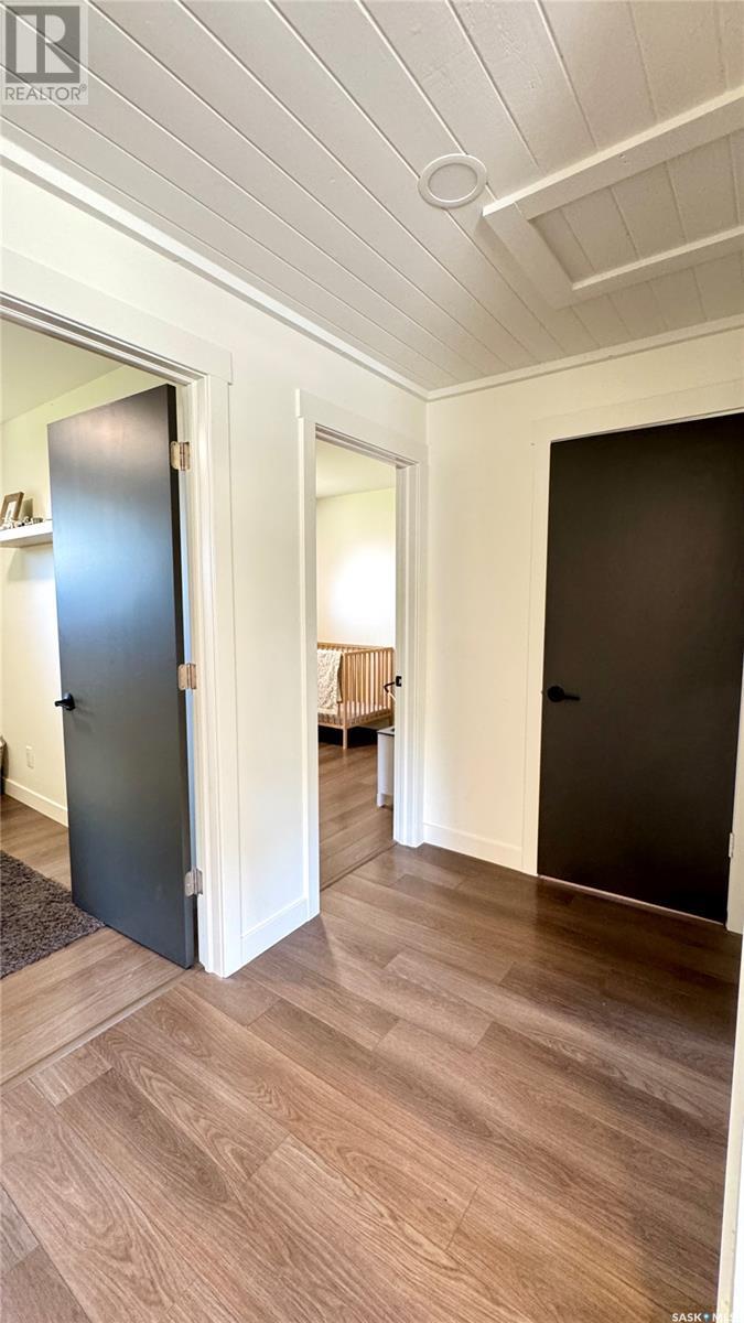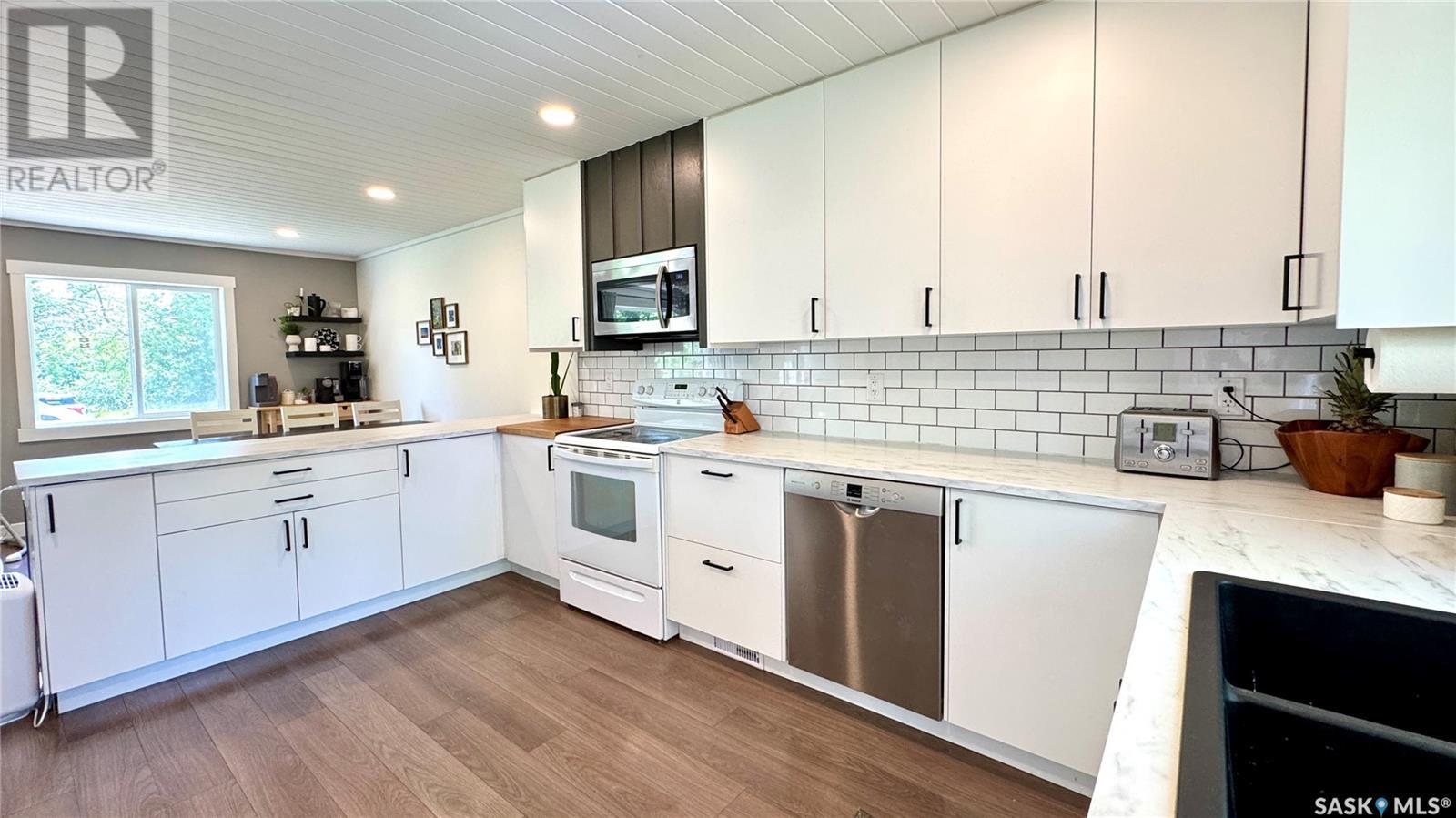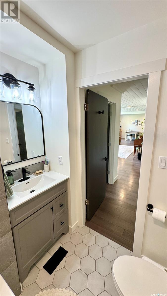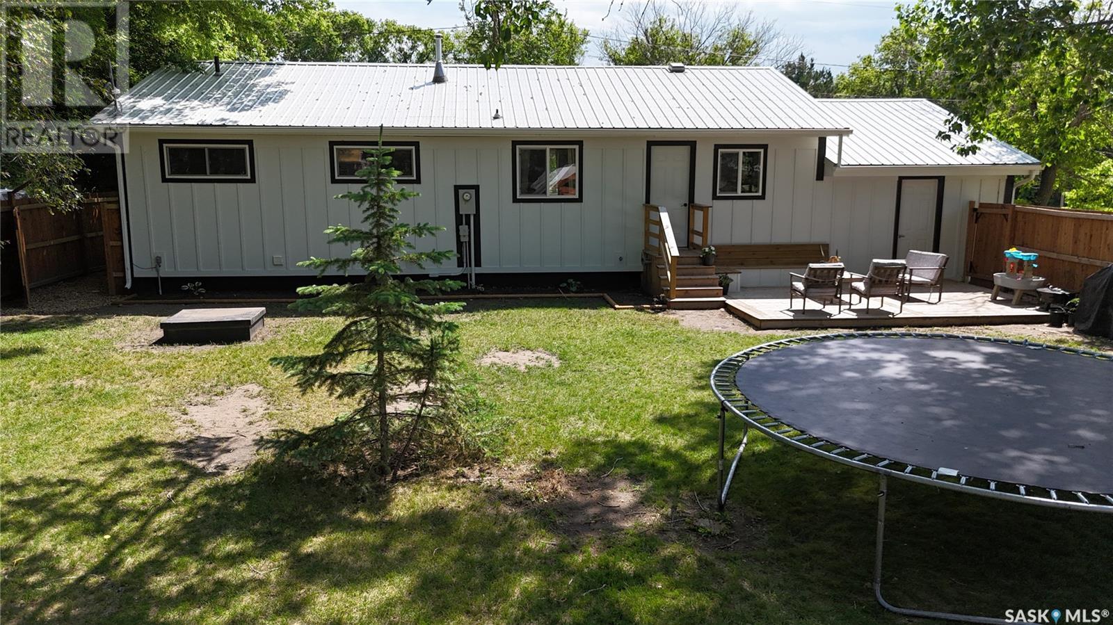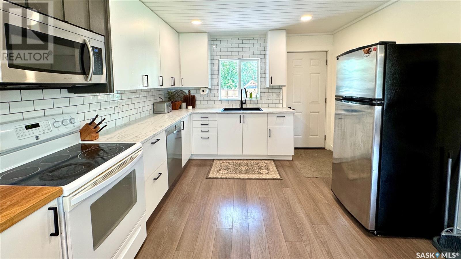 1144 Sq Ft Bungalow on 5 Lots – 219 KING ST BRODERICK, SASKATCHEWAN. This charming 4-bedroom, 1-bath bungalow sits on a spacious 65' x 125' lot in the quiet community of Broderick. The basement includes a large family/playroom, along with a rough-in for a second bathroom, offering room to grow. Extensively renovated, this home features a modern kitchen with new cabinetry, an updated bathroom, new flooring and trim throughout, composite siding (2020), and metal roof, windows, and exterior doors (2010). The lower level's exterior cement walls have been spray-foamed for improved energy efficiency, creating a warm and cozy interior. Furnace and hot water heater were updated in 2007/2008. Outside, the fully fenced yard spans 5 landscaped lots with mature trees, shrubs, garden space, and a back patio deck off the kitchen-ideal for outdoor living. The single garage has a new concrete floor. Located just 6 minutes east of Outlook and under an hour to Saskatoon via Highway 219, Broderick offers quiet living with easy access to amenities. Don’t miss this opportunity-call today to book your showing! (id:43042)