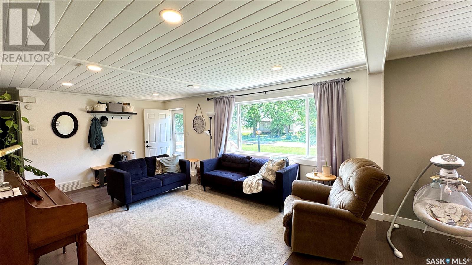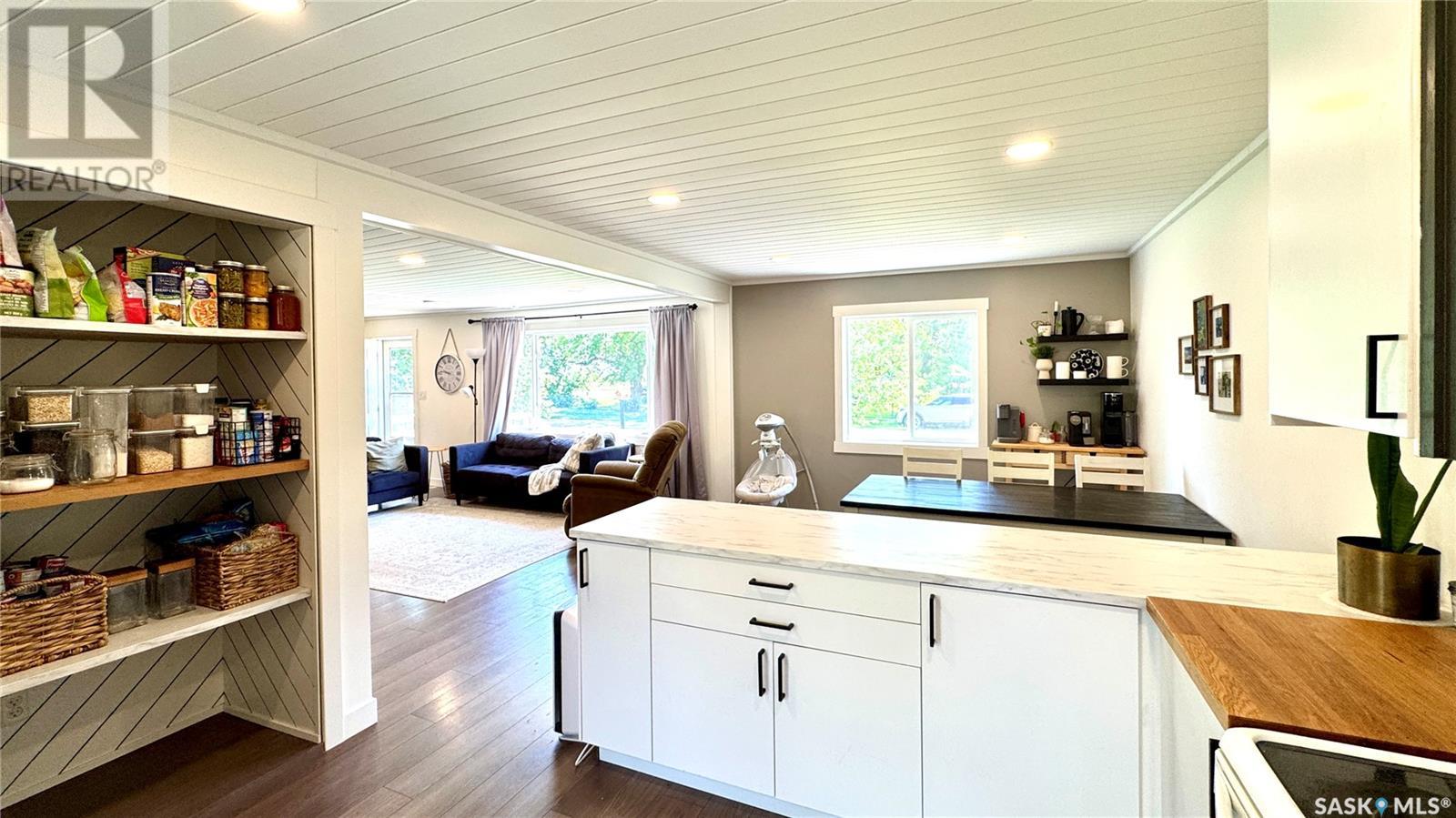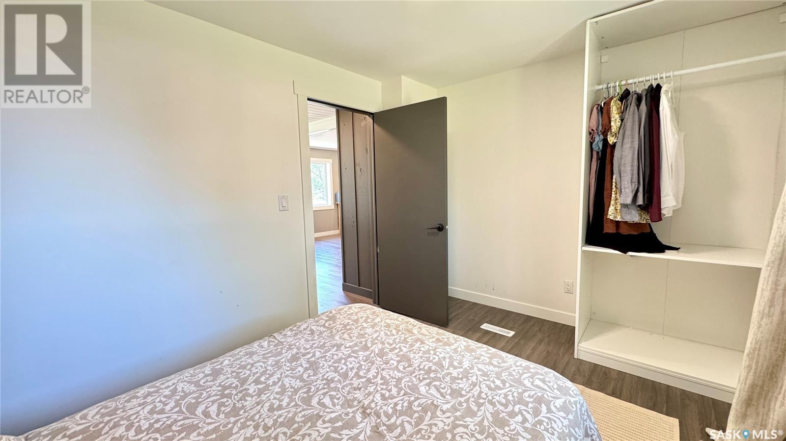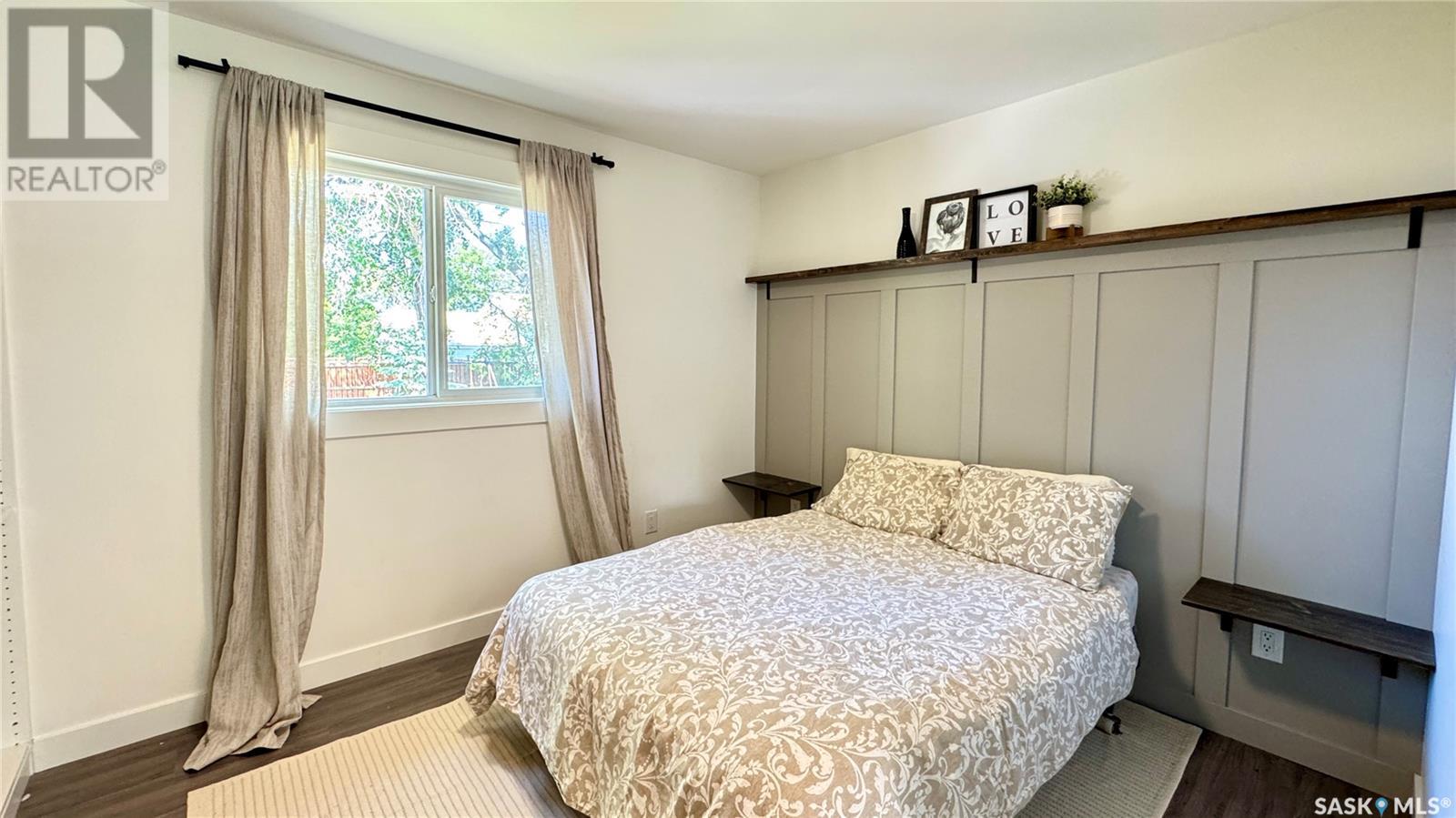 1144 Sq Ft Bungalow on 5 Lots – 219 KING ST BRODERICK, SASKATCHEWAN. This charming 4-bedroom, 1-bath bungalow sits on a spacious 65' x 125' lot in the quiet community of Broderick. The basement includes a large family/playroom, along with a rough-in for a second bathroom, offering room to grow. Extensively renovated, this home features a modern kitchen with new cabinetry, an updated bathroom, new flooring and trim throughout, composite siding (2020), and metal roof, windows, and exterior doors (2010). The lower level's exterior cement walls have been spray-foamed for improved energy efficiency, creating a warm and cozy interior. Furnace and hot water heater were updated in 2007/2008. Outside, the fully fenced yard spans 5 landscaped lots with mature trees, shrubs, garden space, and a back patio deck off the kitchen-ideal for outdoor living. The single garage has a new concrete floor. Located just 6 minutes east of Outlook and under an hour to Saskatoon via Highway 219, Broderick offers quiet living with easy access to amenities. Don’t miss this opportunity-call today to book your showing! (id:43042)