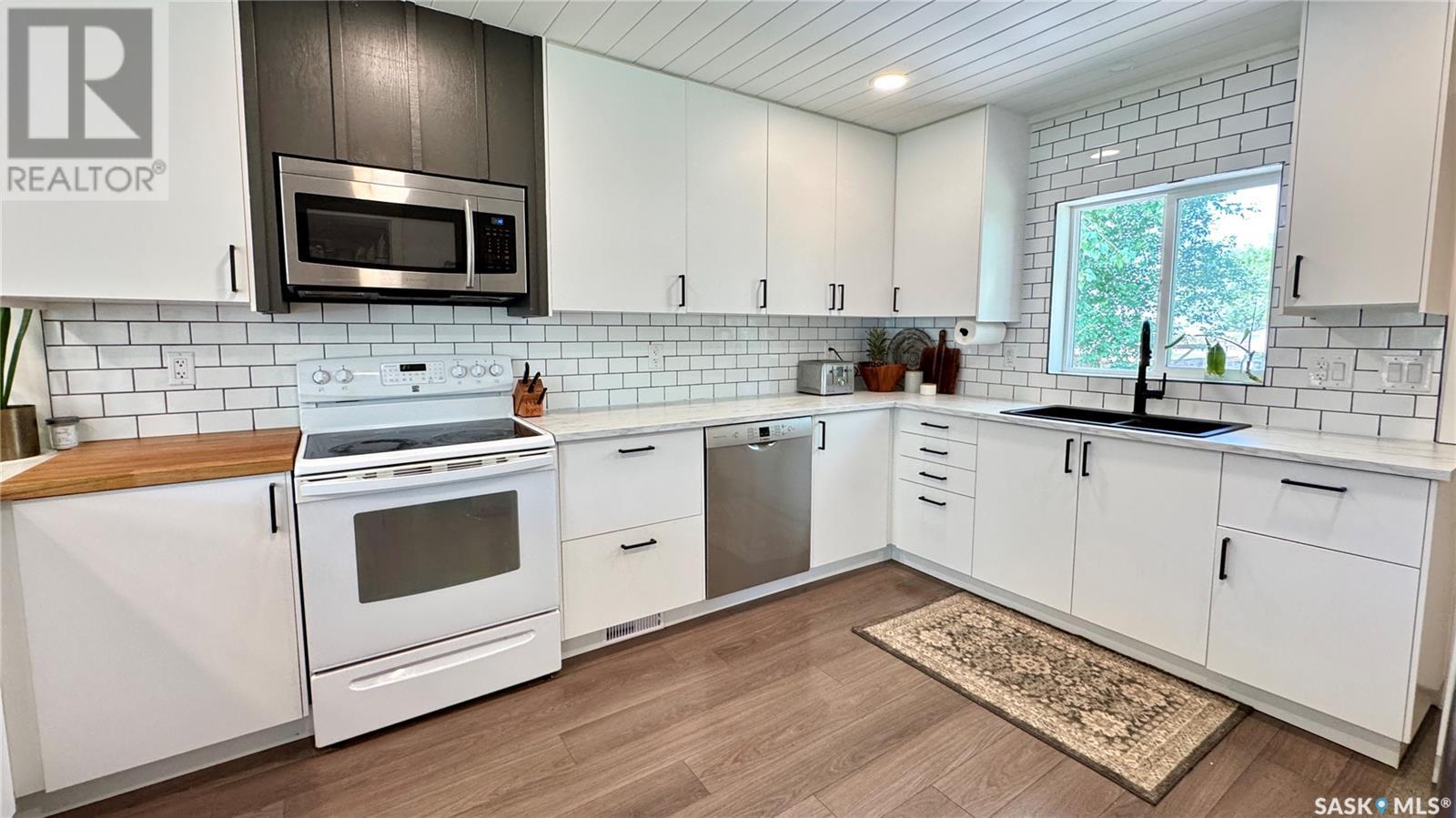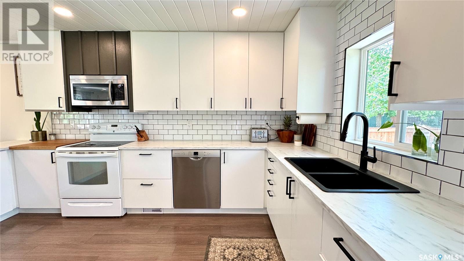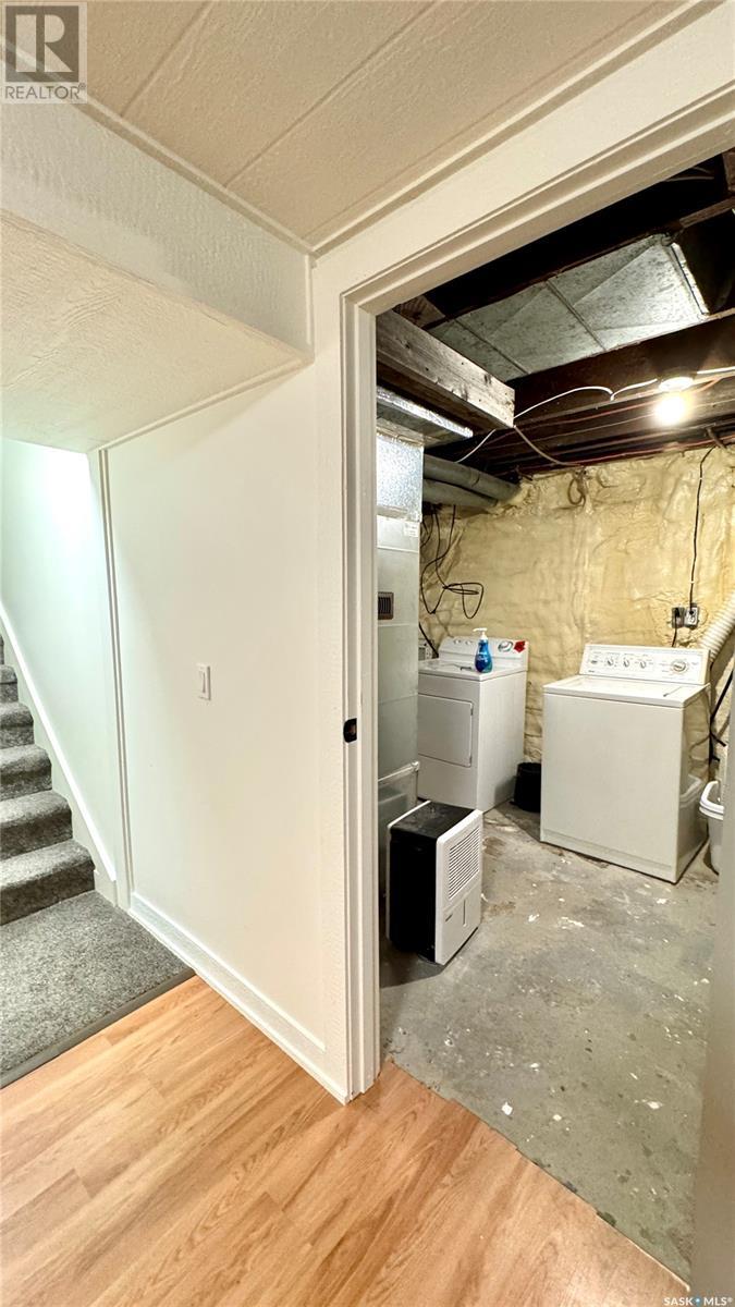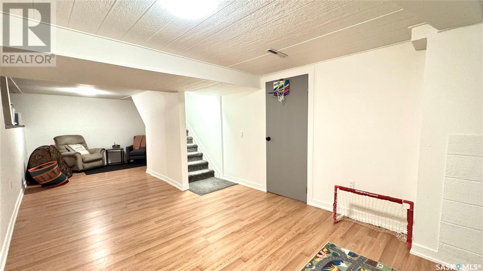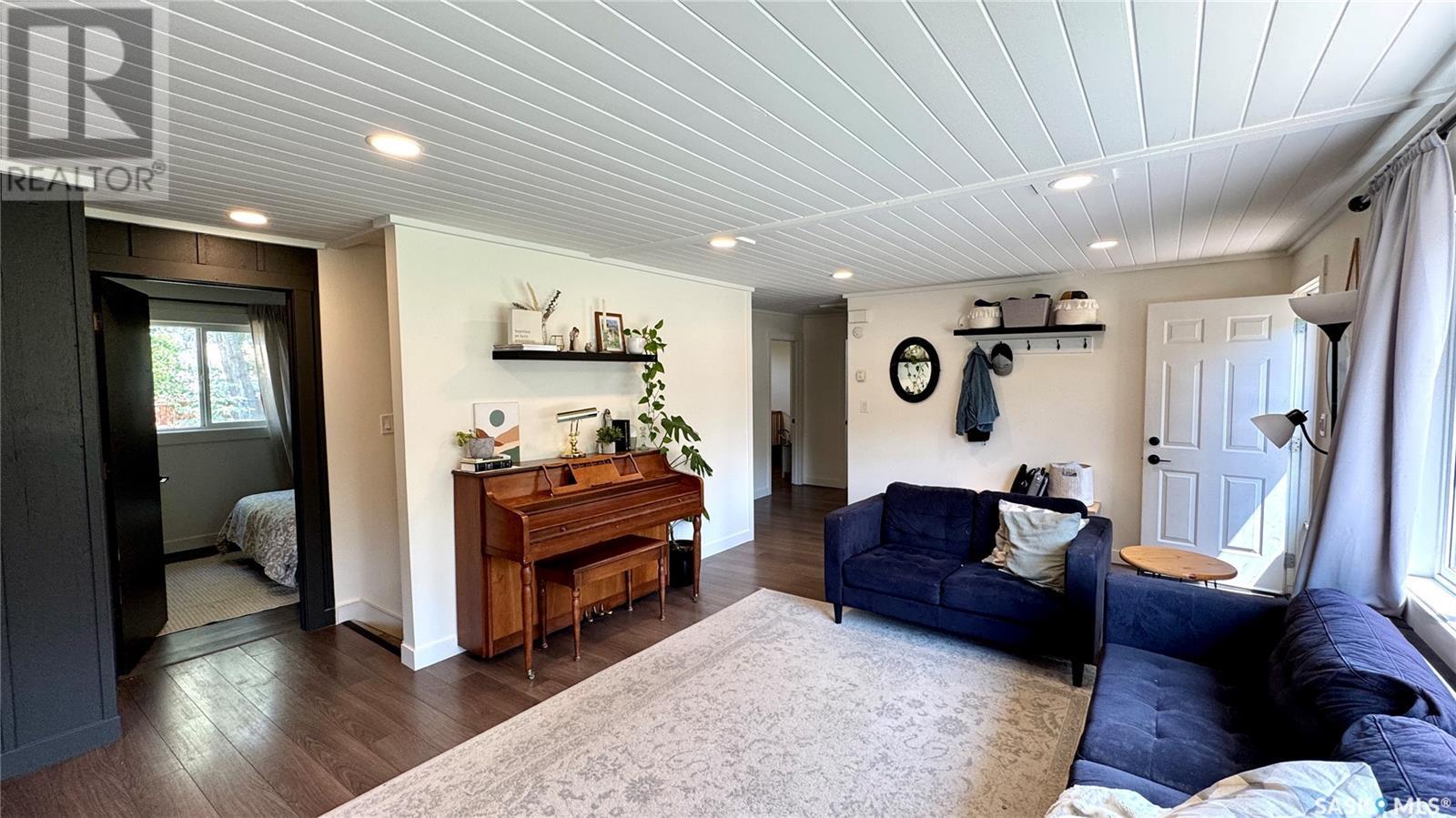 1144 Sq Ft Bungalow on 5 Lots – 219 KING ST BRODERICK, SASKATCHEWAN. This charming 4-bedroom, 1-bath bungalow sits on a spacious 65' x 125' lot in the quiet community of Broderick. The basement includes a large family/playroom, along with a rough-in for a second bathroom, offering room to grow. Extensively renovated, this home features a modern kitchen with new cabinetry, an updated bathroom, new flooring and trim throughout, composite siding (2020), and metal roof, windows, and exterior doors (2010). The lower level's exterior cement walls have been spray-foamed for improved energy efficiency, creating a warm and cozy interior. Furnace and hot water heater were updated in 2007/2008. Outside, the fully fenced yard spans 5 landscaped lots with mature trees, shrubs, garden space, and a back patio deck off the kitchen-ideal for outdoor living. The single garage has a new concrete floor. Located just 6 minutes east of Outlook and under an hour to Saskatoon via Highway 219, Broderick offers quiet living with easy access to amenities. Don’t miss this opportunity-call today to book your showing! (id:43042)