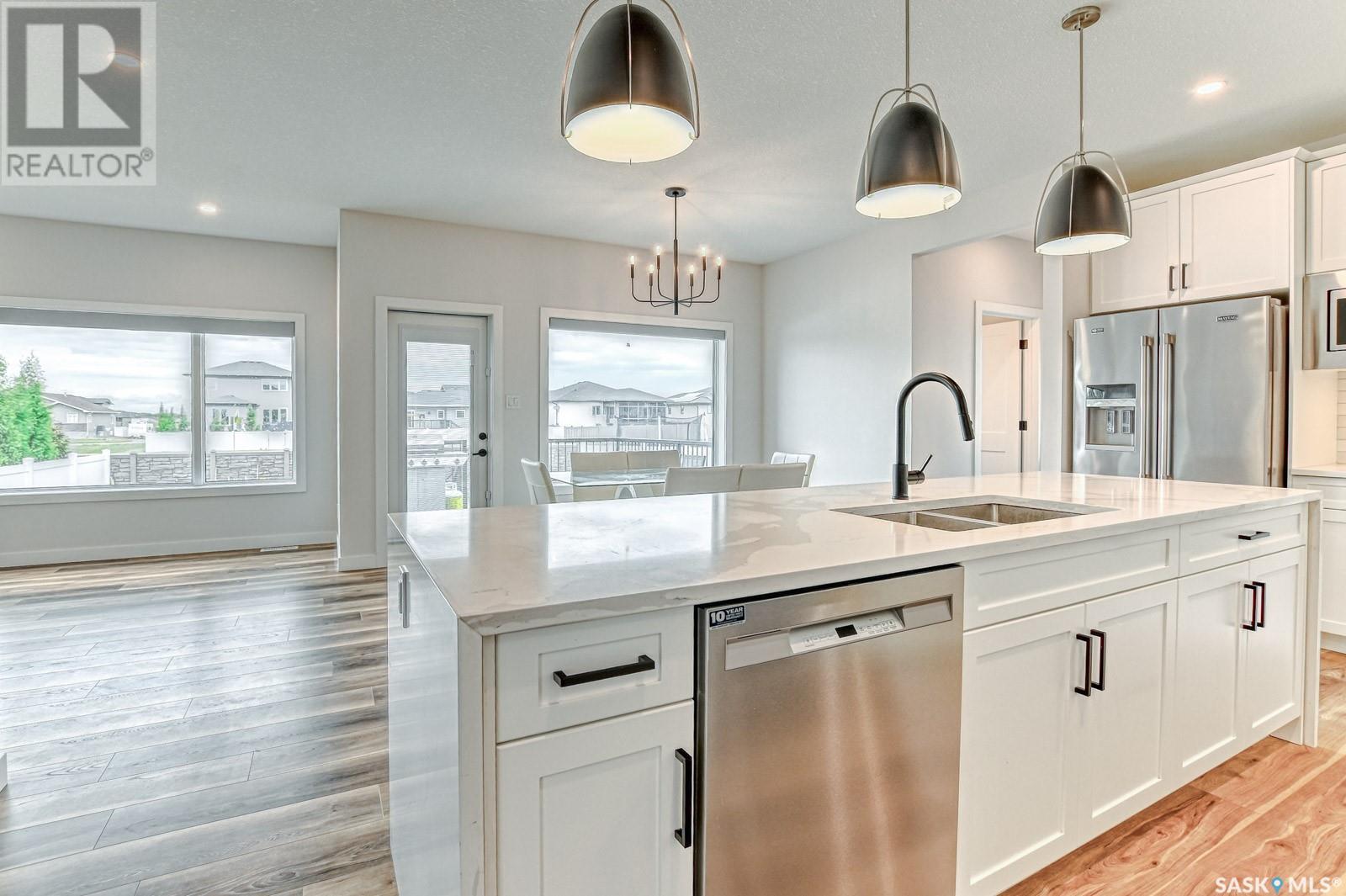 Spacious and well-designed, this beautiful former North Ridge show home in Pilot Butte is loaded with desirable features throughout. As you step inside, you're greeted by an inviting open-concept layout, featuring a generous living area adorned with an abundance of natural light and stylish finishes throughout. The gourmet kitchen is a chef's dream, equipped with modern stainless steel appliances, quartz countertops, tiled backsplash, corner pantry, ample cabinet space and a centre island perfect for gathering around with loved ones. The living room features an attractive gas fireplace. A two piece bath completes the main level. The second level features a bright, south facing bonus room built over the garage, two good size bedrooms, four piece bathroom and a laundry room. The spacious primary bedroom offers a large walk in closet, five piece ensuite with a tub, separate shower and a quartz counter top on the massive vanity with dual sinks. The outdoor space features a composite deck and provides endless opportunities for outdoor relaxation and entertainment, whether you're hosting summer barbecues or simply enjoying a quiet evening under the stars. The insulated basement is open and ready for development. A three car attached garage offers plenty of room for vehicles and storage. Don't miss out on the opportunity to make it yours, call today to book your viewing!... As per the Seller’s direction, all offers will be presented on 2025-07-21 at 6:30 PM (id:43042)