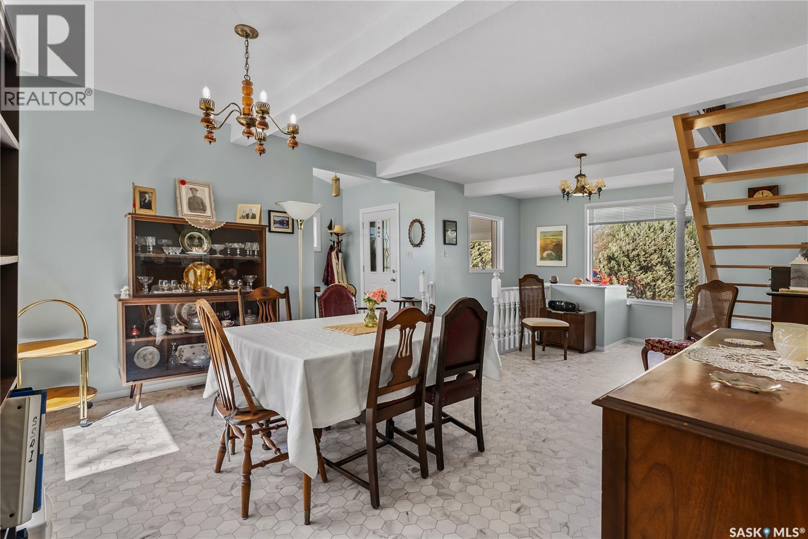 Pride of ownership shines in this warm and inviting home, lovingly cared for by the same family for the past 48 years. Nestled on a generous 100' x 125' lot, this unique property offers over 2,200 sq. ft. of bright and spacious living. You're welcomed by a spacious front entry that leads into a large dining room, perfectly situated just off the kitchen—ideal for gatherings and everyday meals. Abundant windows throughout the home fill the space with natural light, creating a cheerful and uplifting atmosphere. The main floor features a well-sized bedroom across from a fully renovated 4-piece bathroom. The impressive living room boasts vaulted ceilings and striking beams, adding character and charm. Just off the living room, a 4-seasons sunroom extends your living space—perfect for relaxing or growing your favorite plants year-round. Upstairs, a bonus room at the top of the stairs offers flexible space for a home office, reading nook, or play area. The large primary bedroom includes a private 5-piece ensuite. Flooring throughout both levels has been tastefully updated to blend comfort with style. Outside, you'll find a single detached garage at the back, along with two asphalt driveways in the front, providing plenty of parking options. This is more than just a house—it’s a well-loved home with a rich history and so much potential. Come see what makes it truly special! (id:43042)