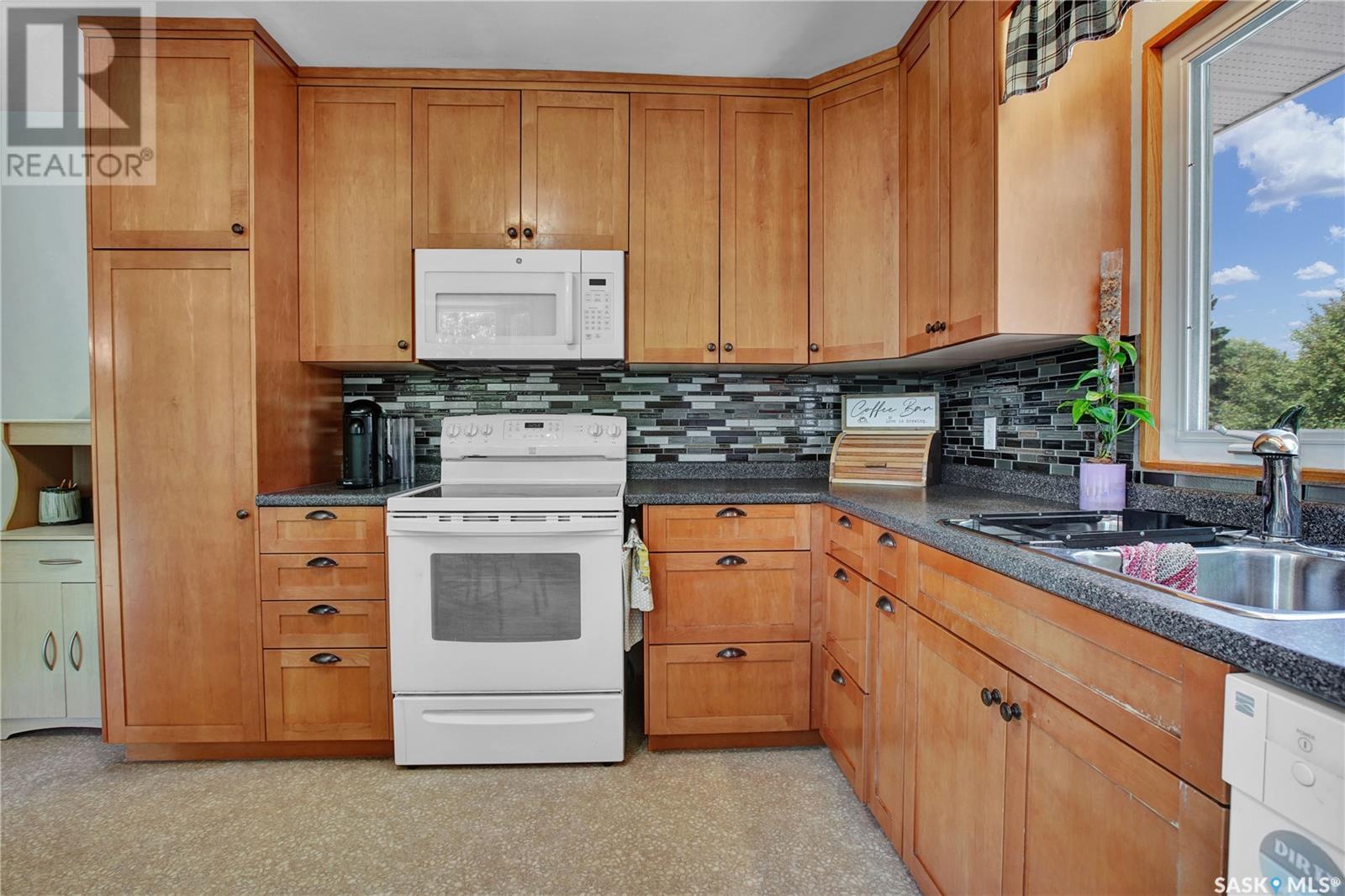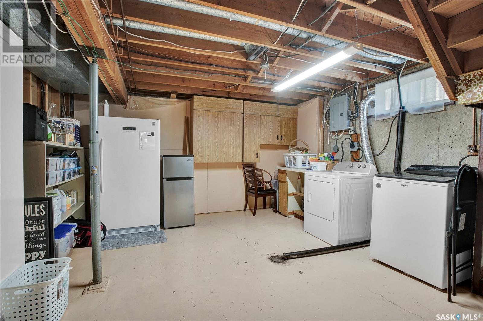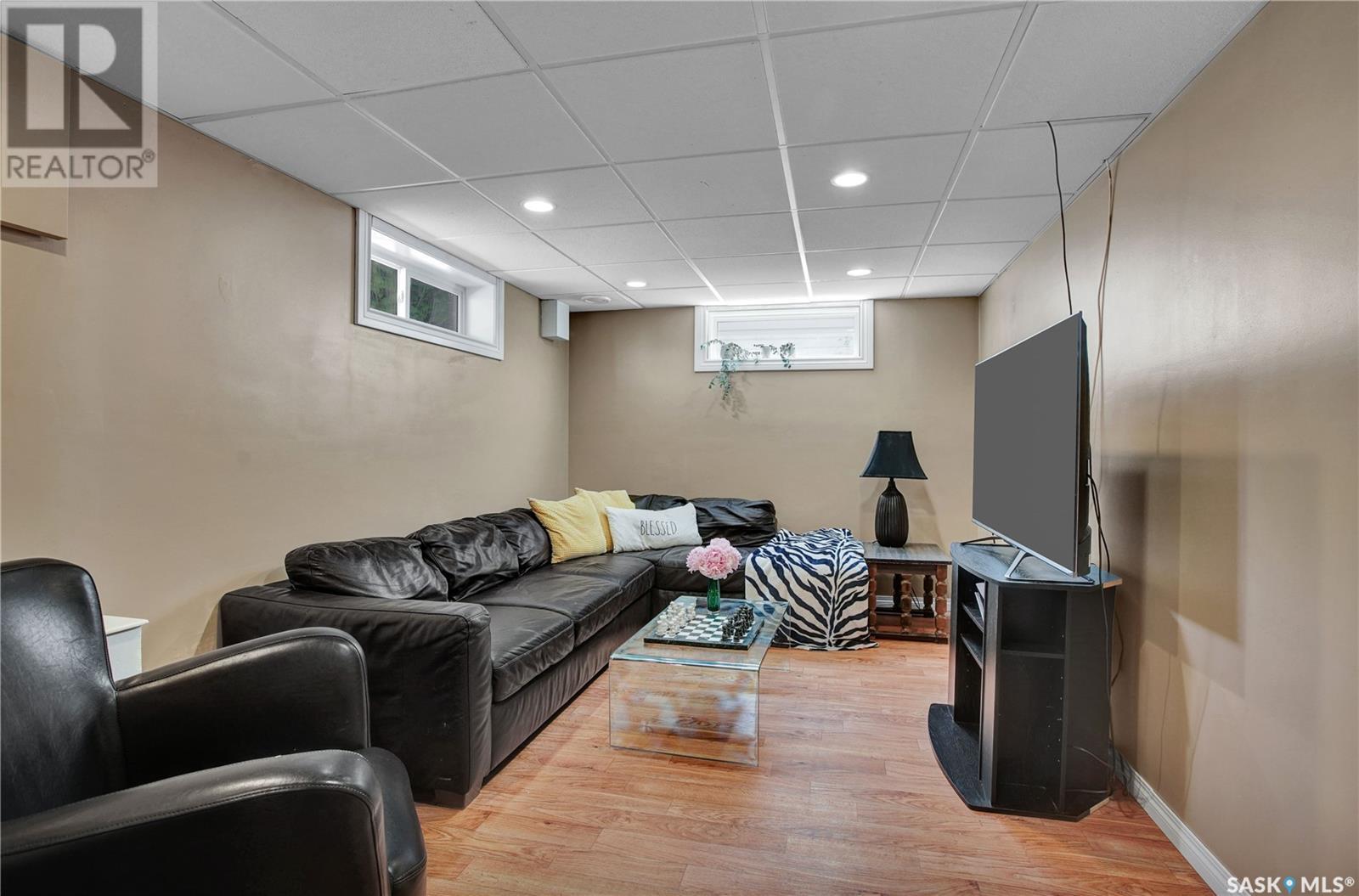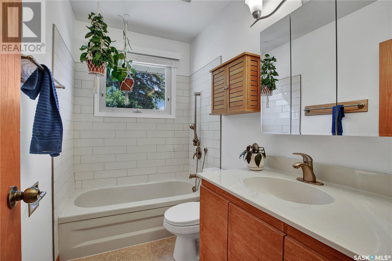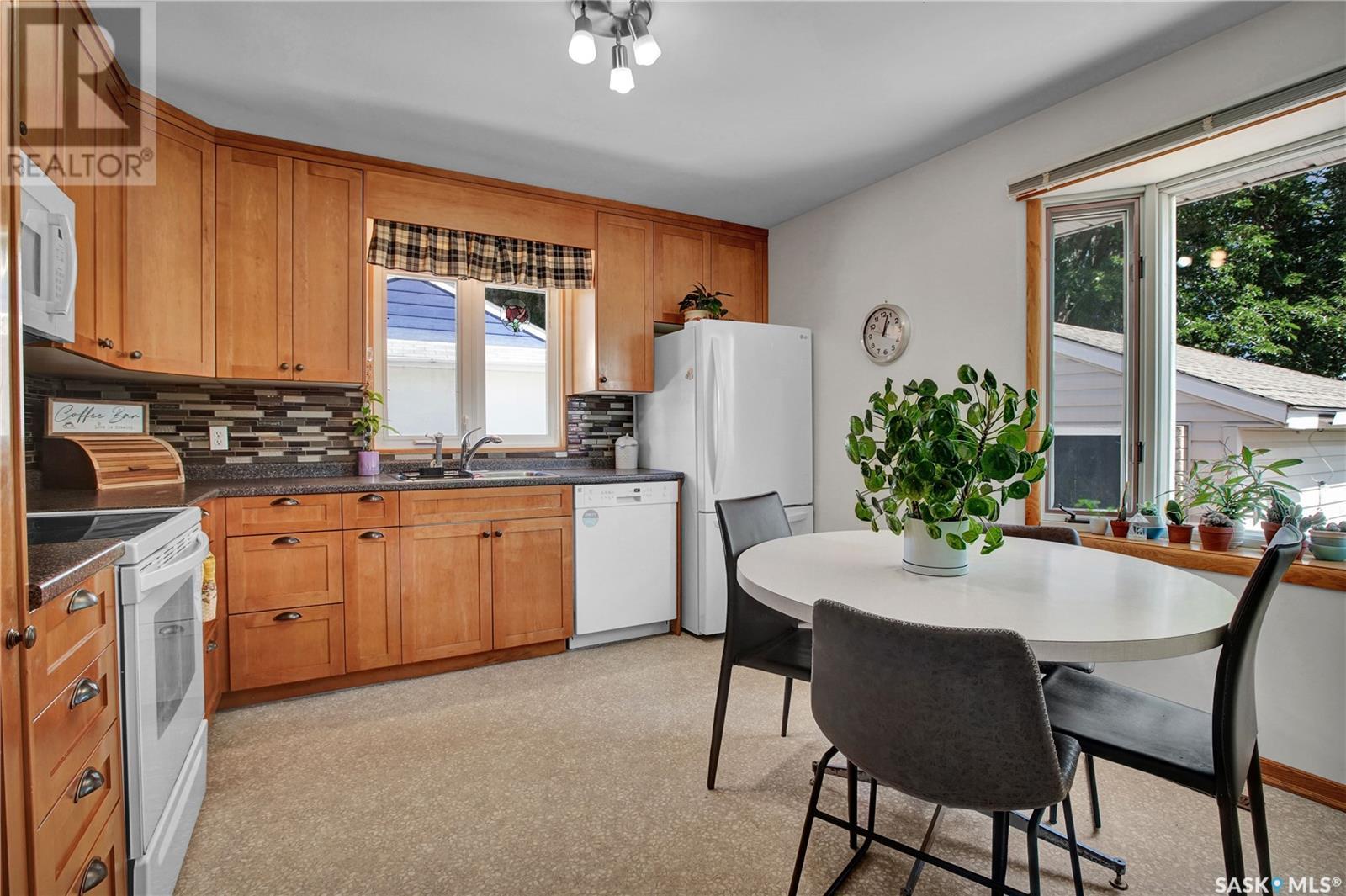 Great location for this excellent family home in the sought-after Adelaide Churchill neighbourhood. This thoughtfully updated property offers a welcoming and charming living space. The main floor features a comfortable living room with hardwood flooring and lovely bay window, an updated eat-in kitchen, complete with maple cabinetry and modern appliances plus there is an additional bay window overlooking the spacious and beautiful backyard! There are three bright bedrooms on the main floor plus a good size 3 piece bathroom. Downstairs, the basement adds more living space, perfect for guests or family movie nights, with a recreation room, family room area, a fourth bedroom, and a well appointed 3-piece bathroom. A large laundry room provides additional space for storage, extra appliances and has workshop potential. The windows have been upgraded, ensuring energy efficiency and style. Other updates include washer and dryer (2024), Fridge (2023), plus microwave and dishwasher in recent years. The mechanical upgrades include HE furnace, HE water heater, HRV and electric panel. Additionally, no need to worry about the sewer line, it was replaced in 2024. The spacious backyard includes a patio, garden area, trees, shrubs, and raspberry bushes, along with plenty of green space. Plus, there is a single detached garage and concrete driveway, providing dedicated off street parking for 3 vehicles. The property is located just minutes from St Phillips Elementary School and Aden Bowman High School. With Clarence and 8th Street nearby this home provides unbeatable access to shopping, dining, and amenities. This is a super home in a welcoming, family-friendly neighborhood. Don’t hesitate — book your private showing today. (id:43042)