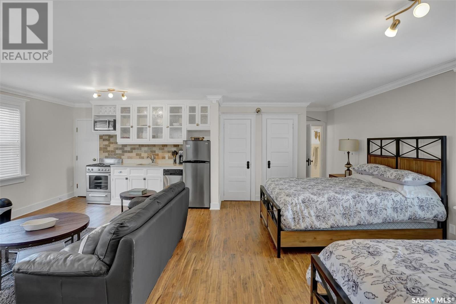 Checkout this beautifully renovated, super unique mixed use property. Property is located just a few blocks South of Regina's busy downtown center square neighborhood. The building is 3 storey's with a full basement and has been condominiumized to have separate titles for the main, 2nd, and 3rd levels. Each level has separate electrical and natural gas meters. Currently the building is divided into 6 separate units. (catering to both commercial, and some residential) there is a small office that could make a 7th rental unit. Behind the building, the lot is paved and provides ample on-site parking. The building has been renovated and updated with top quality in mind. Each unit (except for the small office) has access to its own private entrance, washroom, and kitchen. These spaces would make excellent Airbnb's, studio spaces, offices, or apartments. The location offers very flexible zoning which allows for dwelling units, residential homestay / bed & breakfast, day care centers, nursery schools, and supportive living homes as permitted uses. This is a great opportunity for you to run a main floor business and to increase your profitability, by renting out these gorgeous suites. Book your viewing today. (id:43042)