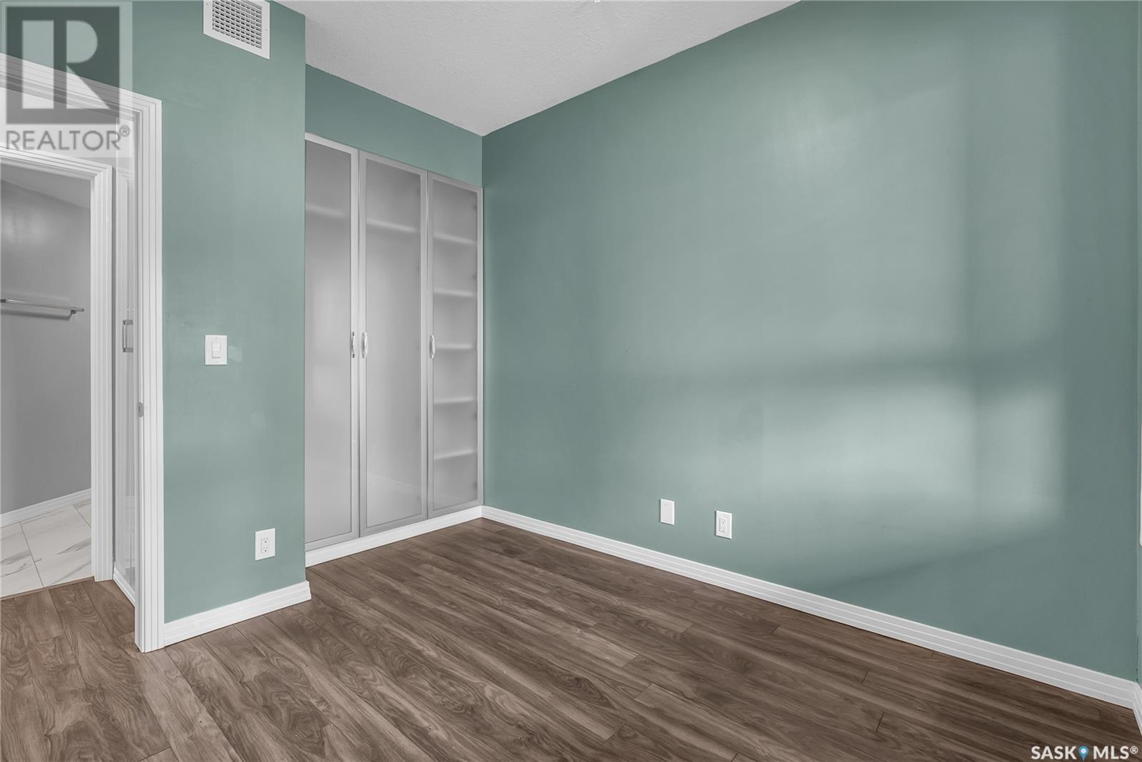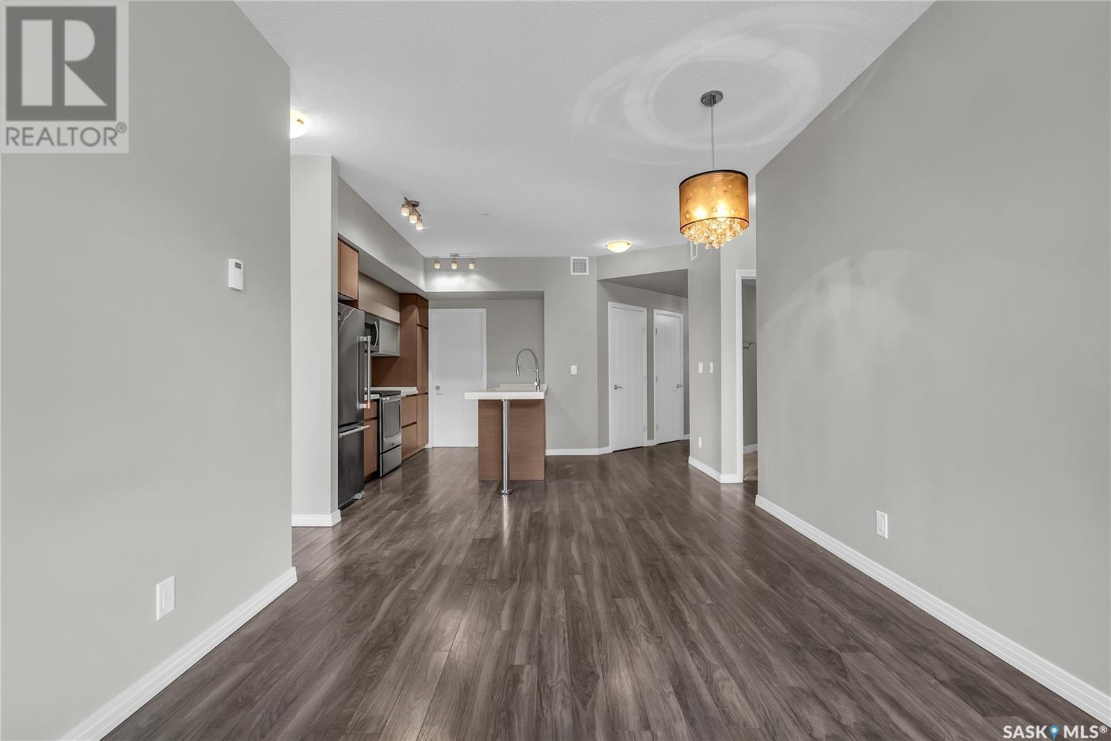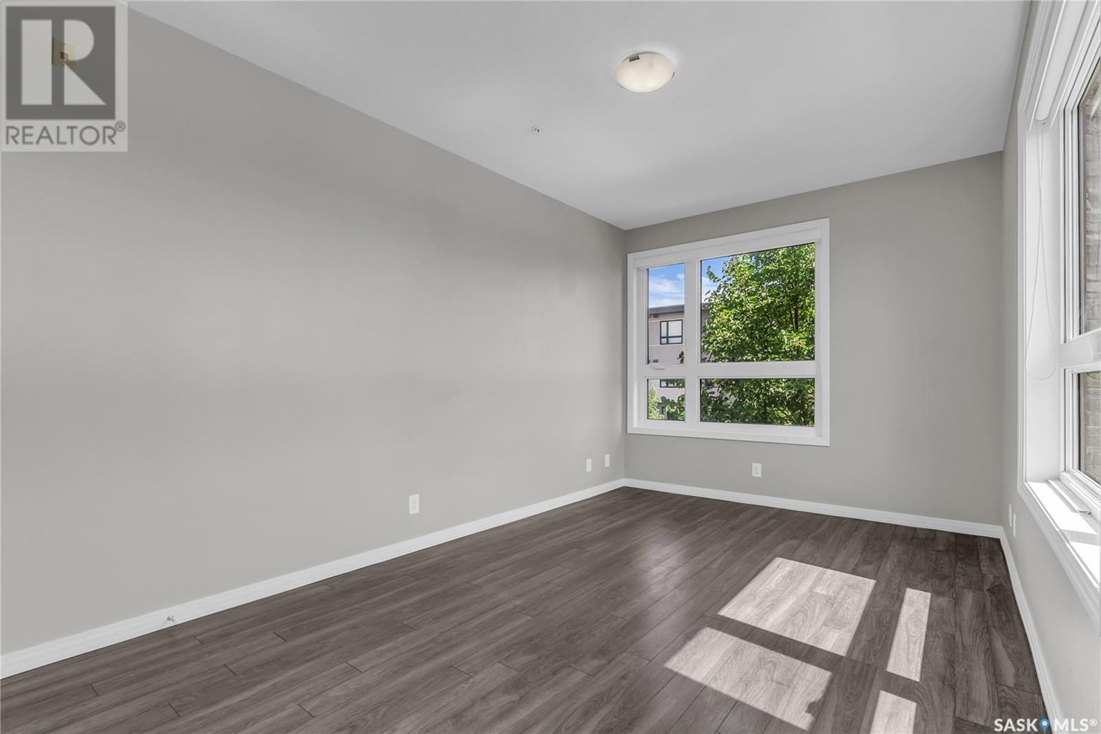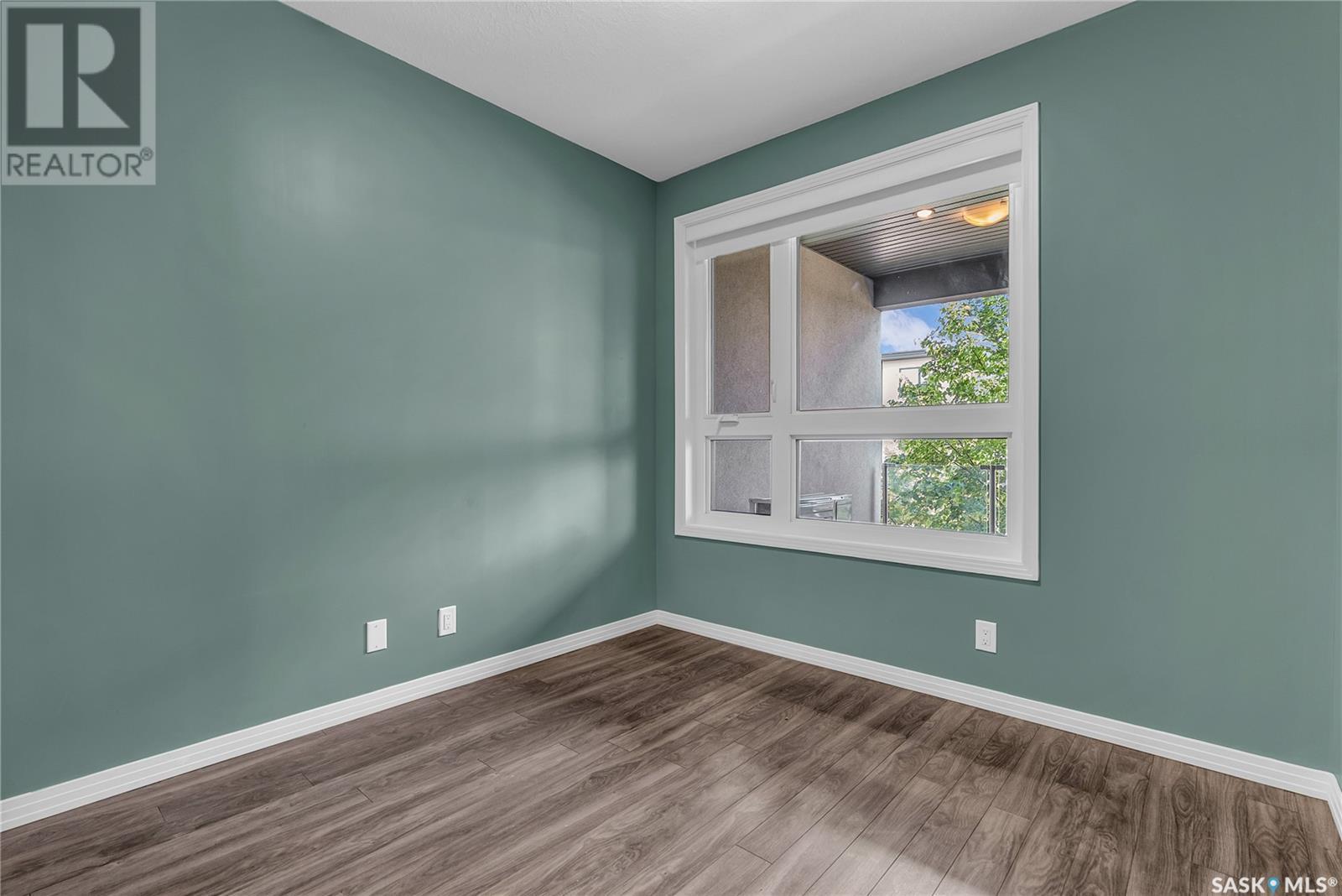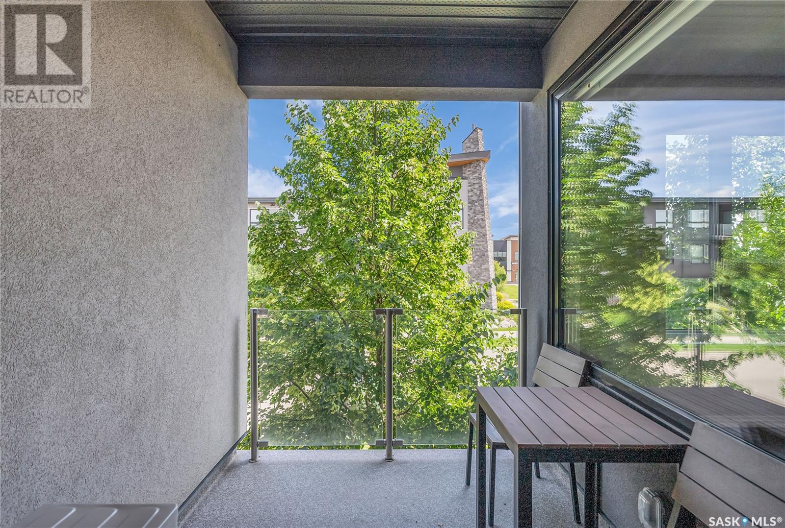 $526 MonthlyWelcome to unit #222 – 235 Evergreen Square, located in the heart of many amenities, clinics, restaurants, and quick access to schools, parks, and Circle Drive! The Sequia Rise complex features stunning curb appeal, yoga/exercise room, board room and elevator access. Stepping into the condo unit, you are met with plenty of natural light flowing throughout, 9ft ceilings, and warm laminate flooring coming into your kitchen. Kitchen features beautiful quartz countertops, tile backsplash, pantry, wood cabinets, and stainless-steel appliances. Coming to your living room, with blinds package and access to your balcony! Your luxurious primary bedroom is king accommodating, with plenty of closet space with custom organizers and shelving, as well as a 3-pc ensuite featuring glass shower, dual vanity with quartz counter, and tile flooring. An additional good-sized bedroom, 4-pc bath with matching tile floors and quartz countertops, and in-suite laundry complete this unit. Additionally, two parking stalls are included, visitor parking, and central air. Must see, beautiful condo in the desirable neighborhood of Evergreen! (id:43042)