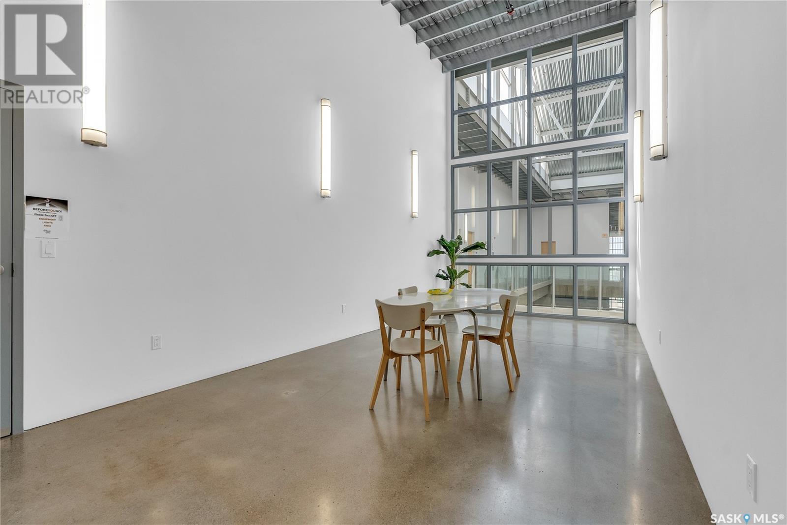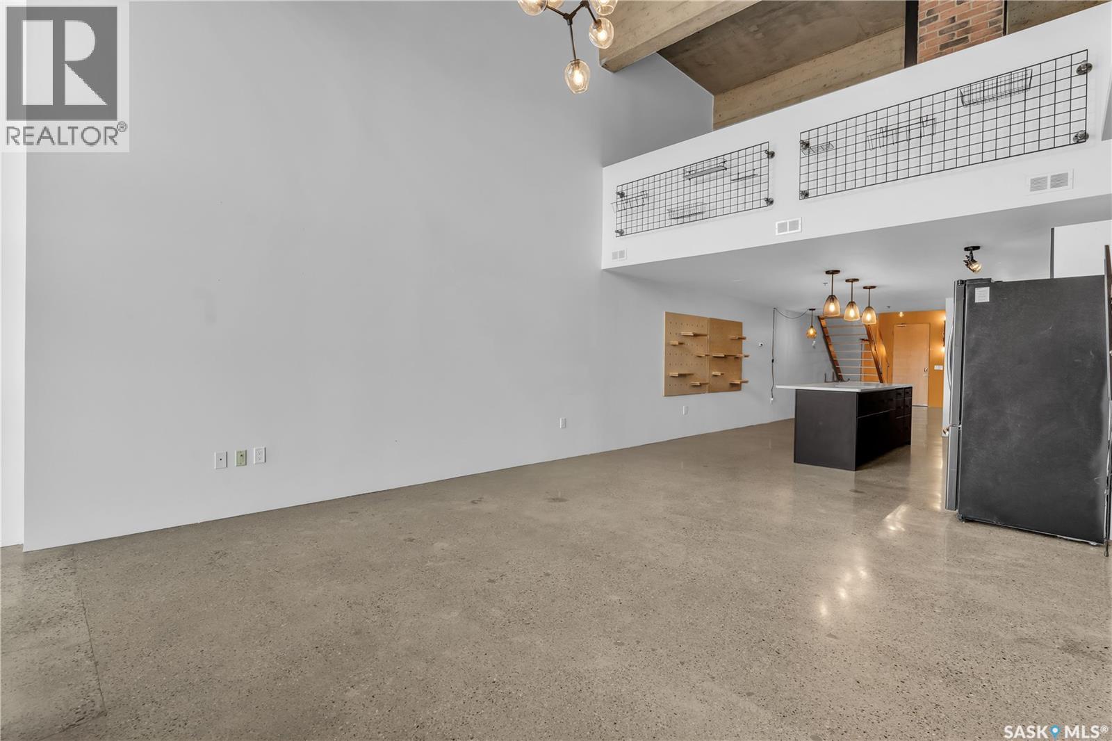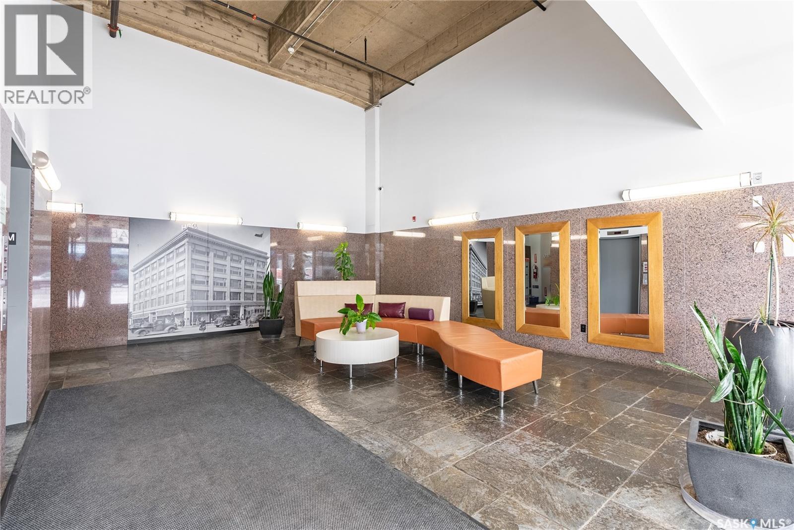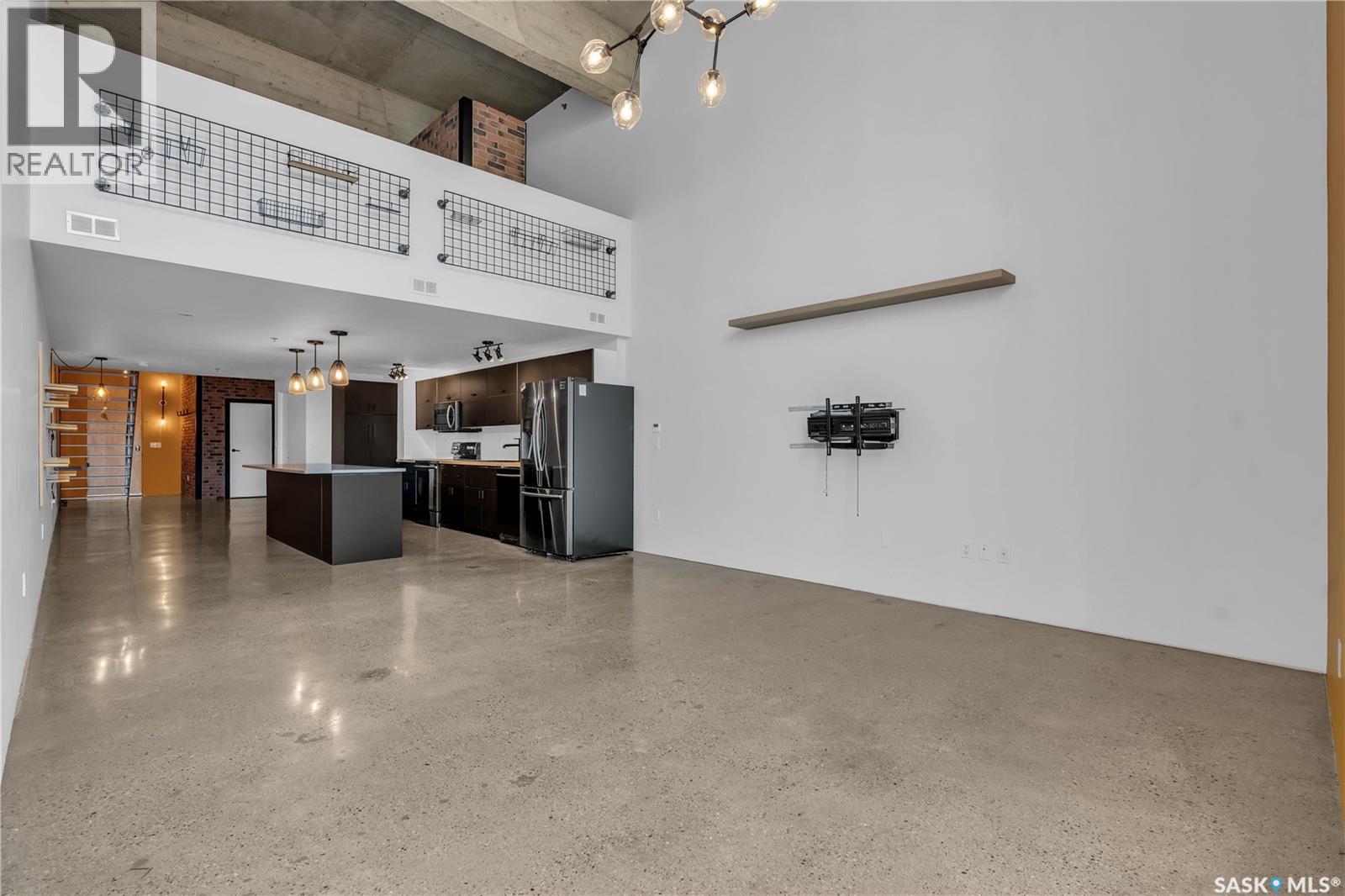 Indulge in upscale urban living with this stunning 1,268 sq ft, 2-bedroom, 2-bathroom condo in the iconic 2nd Avenue Lofts in the heart of vibrant downtown Saskatoon. Housed in the historic Hudson’s Bay Company building, reimagined in 2004 with an Award of Excellence for its innovative design, this pet-friendly loft blends industrial-chic charm with modern sophistication, boasting 17’-18’ ceilings, 15’-high windows with blackout electric blinds ($3000), and polished concrete floors. The open-concept main floor features a sleek kitchen with matte black cabinetry, stainless steel appliances, and a large quartz countertop island, perfect for entertaining, while a steel-framed mezzanine houses a second bedroom with spacious closet space and full bathroom. Complete with in-suite laundry and one heated underground parking spot. Residents enjoy a rooftop patio with BBQs, a weight room, cardio room, bookable meeting room, and 24-hour security and live-in caretaker. Condo fees cover heat, water, electricity, garbage, recycling, and reserve fund contributions, making budgeting effortless. You’re steps from the Remai Modern, Persephone Theatre, TCU Place, restaurants, shops, and Meewasin Park, with a main bus stop at your doorstep for easy access to the University of Saskatchewan and hospitals. Ideal for professionals, creatives, or investors. Don’t miss your chance to own a piece of Saskatoon’s history and experience the vibrant lifestyle of 2nd Avenue Lofts today! (id:43042)