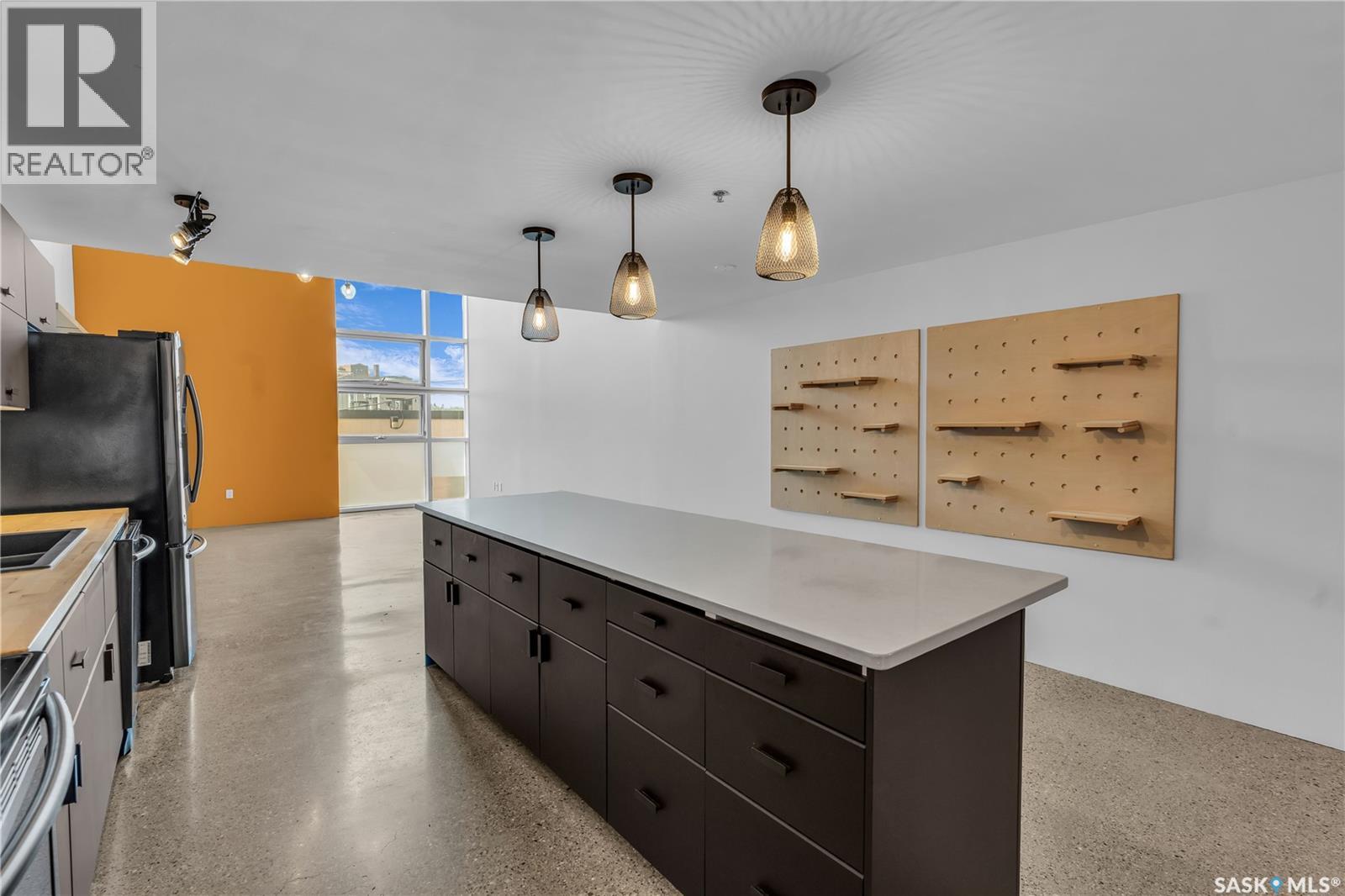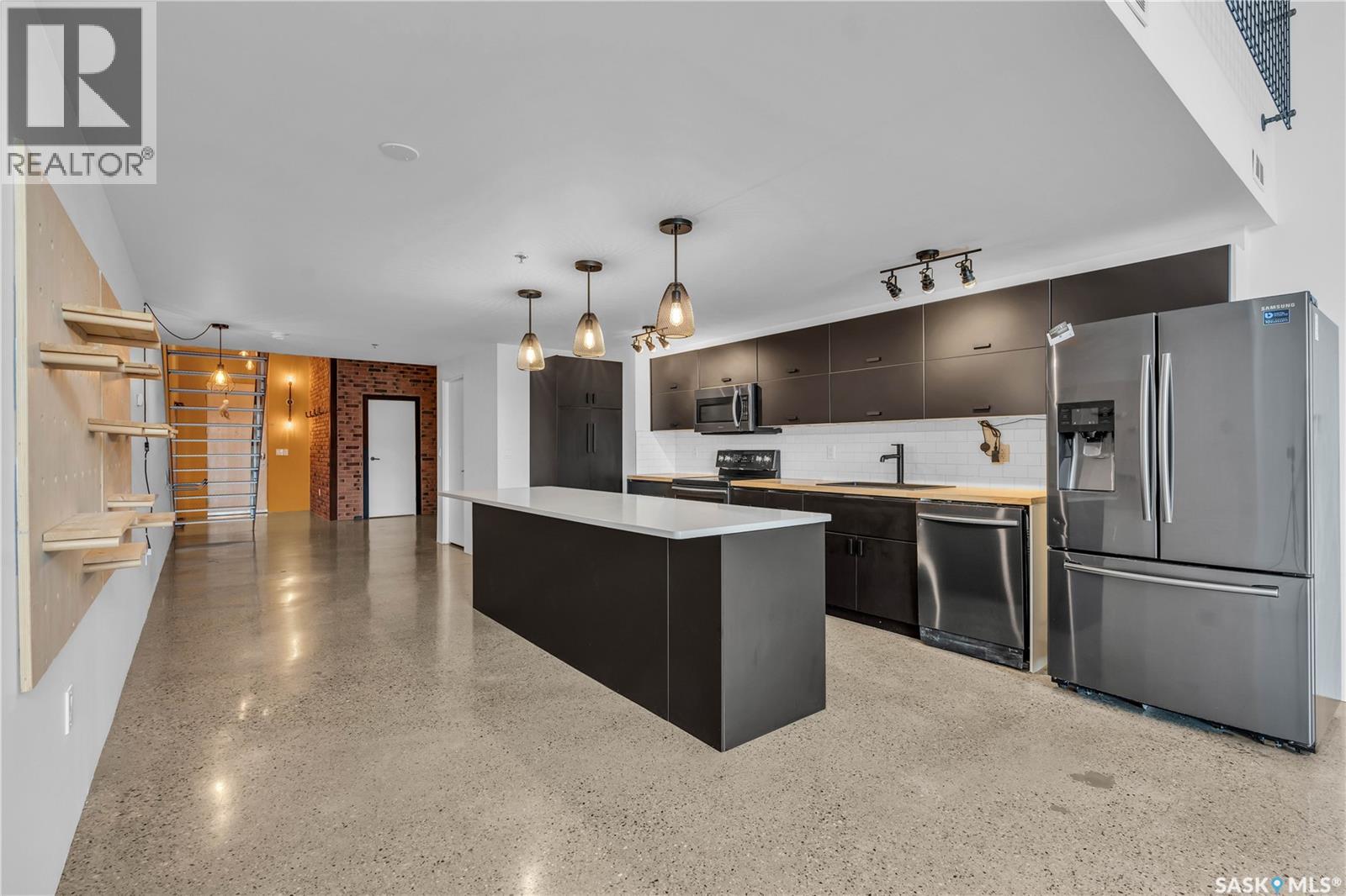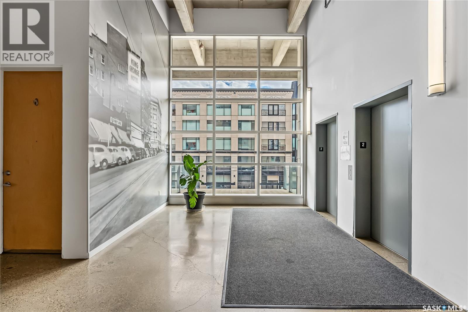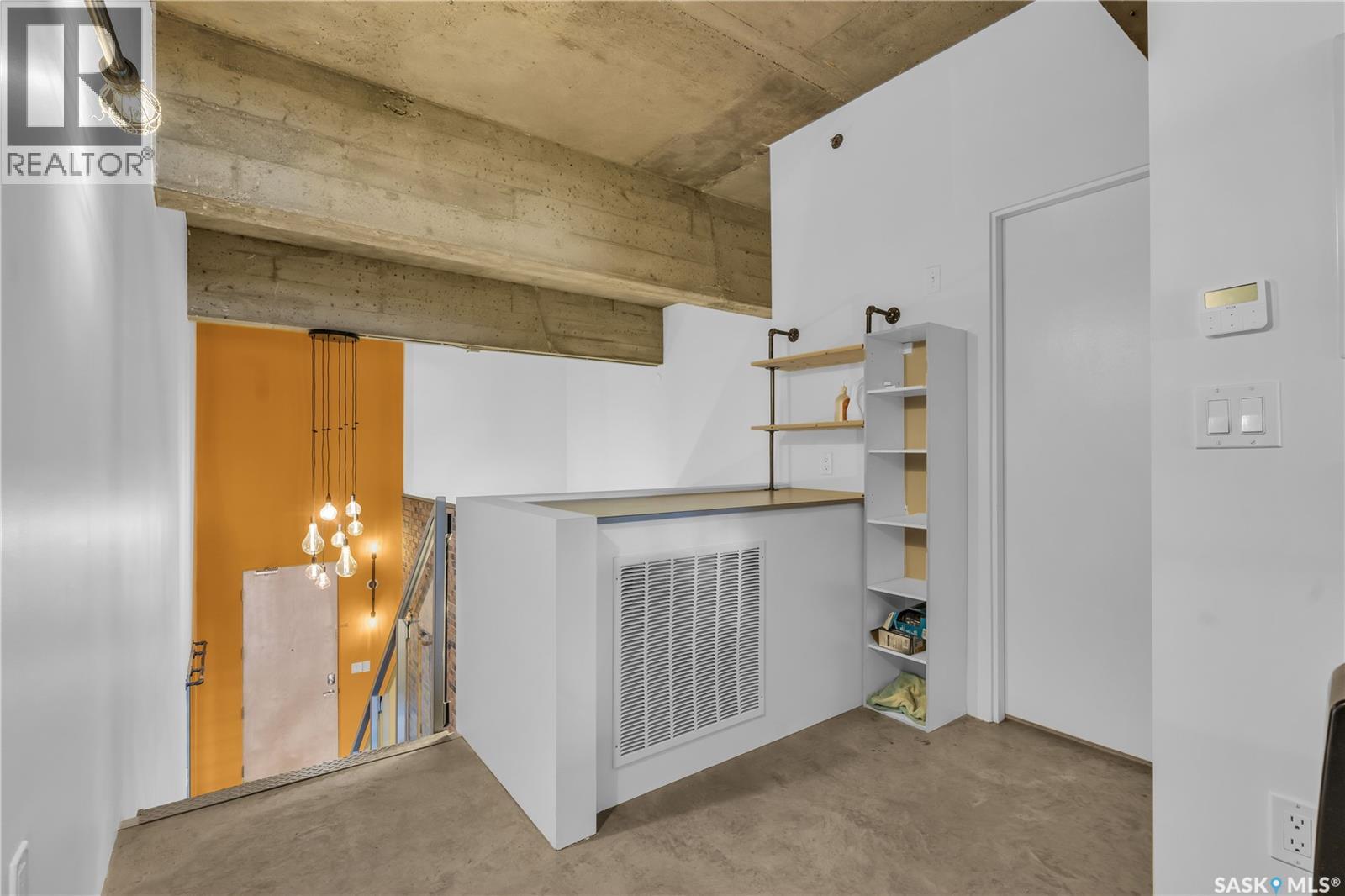 Indulge in upscale urban living with this stunning 1,268 sq ft, 2-bedroom, 2-bathroom condo in the iconic 2nd Avenue Lofts in the heart of vibrant downtown Saskatoon. Housed in the historic Hudson’s Bay Company building, reimagined in 2004 with an Award of Excellence for its innovative design, this pet-friendly loft blends industrial-chic charm with modern sophistication, boasting 17’-18’ ceilings, 15’-high windows with blackout electric blinds ($3000), and polished concrete floors. The open-concept main floor features a sleek kitchen with matte black cabinetry, stainless steel appliances, and a large quartz countertop island, perfect for entertaining, while a steel-framed mezzanine houses a second bedroom with spacious closet space and full bathroom. Complete with in-suite laundry and one heated underground parking spot. Residents enjoy a rooftop patio with BBQs, a weight room, cardio room, bookable meeting room, and 24-hour security and live-in caretaker. Condo fees cover heat, water, electricity, garbage, recycling, and reserve fund contributions, making budgeting effortless. You’re steps from the Remai Modern, Persephone Theatre, TCU Place, restaurants, shops, and Meewasin Park, with a main bus stop at your doorstep for easy access to the University of Saskatchewan and hospitals. Ideal for professionals, creatives, or investors. Don’t miss your chance to own a piece of Saskatoon’s history and experience the vibrant lifestyle of 2nd Avenue Lofts today! (id:43042)