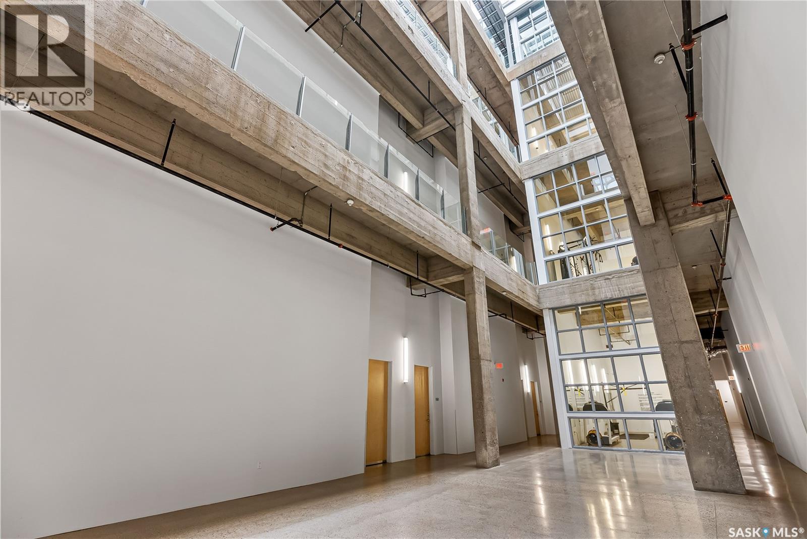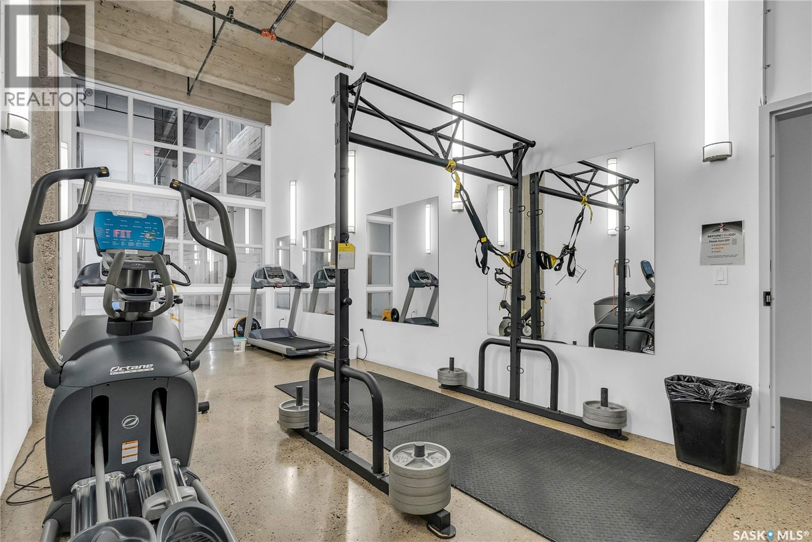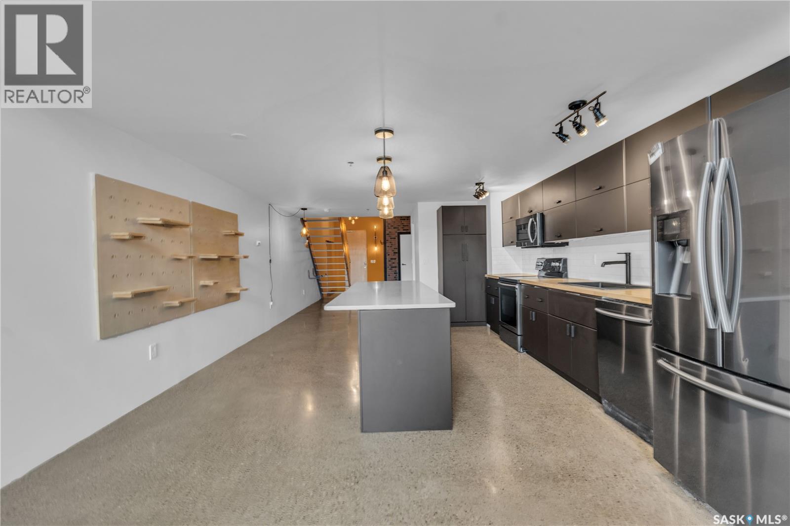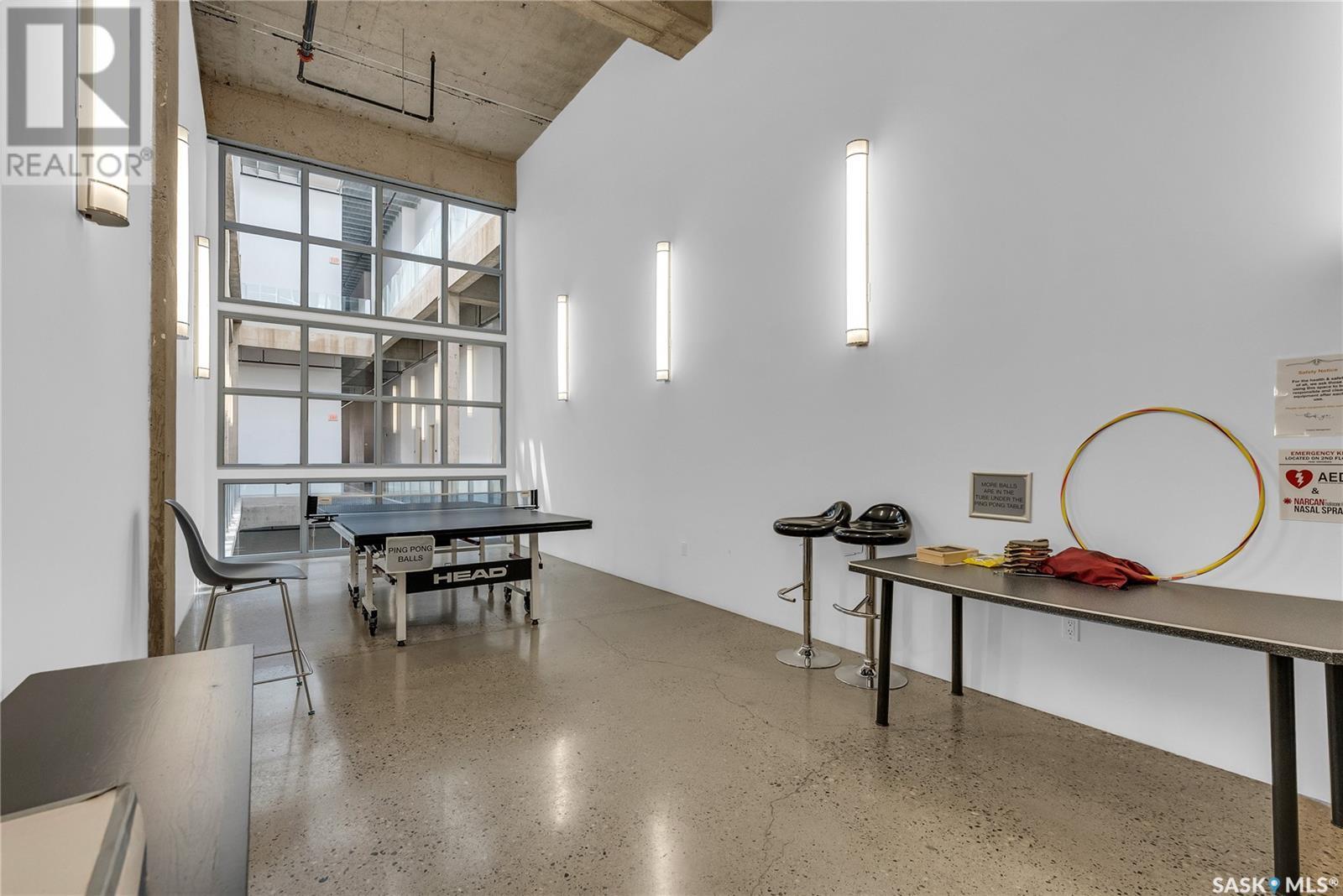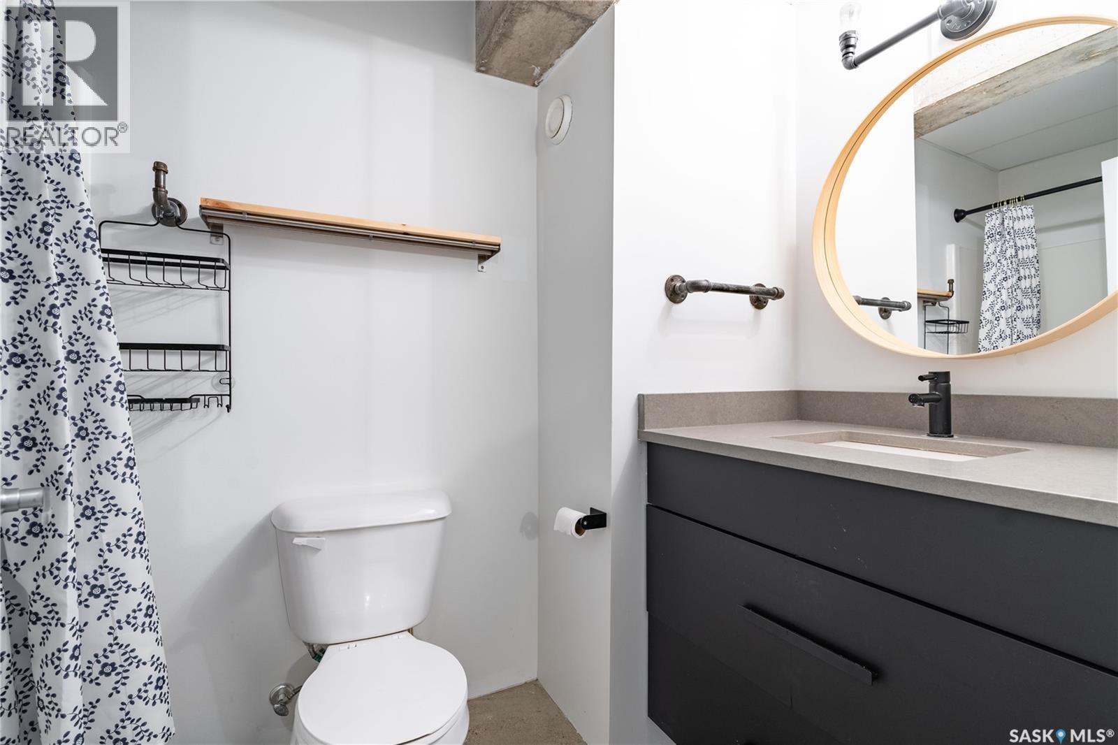 Indulge in upscale urban living with this stunning 1,268 sq ft, 2-bedroom, 2-bathroom condo in the iconic 2nd Avenue Lofts in the heart of vibrant downtown Saskatoon. Housed in the historic Hudson’s Bay Company building, reimagined in 2004 with an Award of Excellence for its innovative design, this pet-friendly loft blends industrial-chic charm with modern sophistication, boasting 17’-18’ ceilings, 15’-high windows with blackout electric blinds ($3000), and polished concrete floors. The open-concept main floor features a sleek kitchen with matte black cabinetry, stainless steel appliances, and a large quartz countertop island, perfect for entertaining, while a steel-framed mezzanine houses a second bedroom with spacious closet space and full bathroom. Complete with in-suite laundry and one heated underground parking spot. Residents enjoy a rooftop patio with BBQs, a weight room, cardio room, bookable meeting room, and 24-hour security and live-in caretaker. Condo fees cover heat, water, electricity, garbage, recycling, and reserve fund contributions, making budgeting effortless. You’re steps from the Remai Modern, Persephone Theatre, TCU Place, restaurants, shops, and Meewasin Park, with a main bus stop at your doorstep for easy access to the University of Saskatchewan and hospitals. Ideal for professionals, creatives, or investors. Don’t miss your chance to own a piece of Saskatoon’s history and experience the vibrant lifestyle of 2nd Avenue Lofts today! (id:43042)
