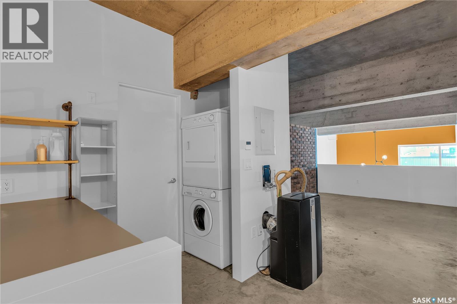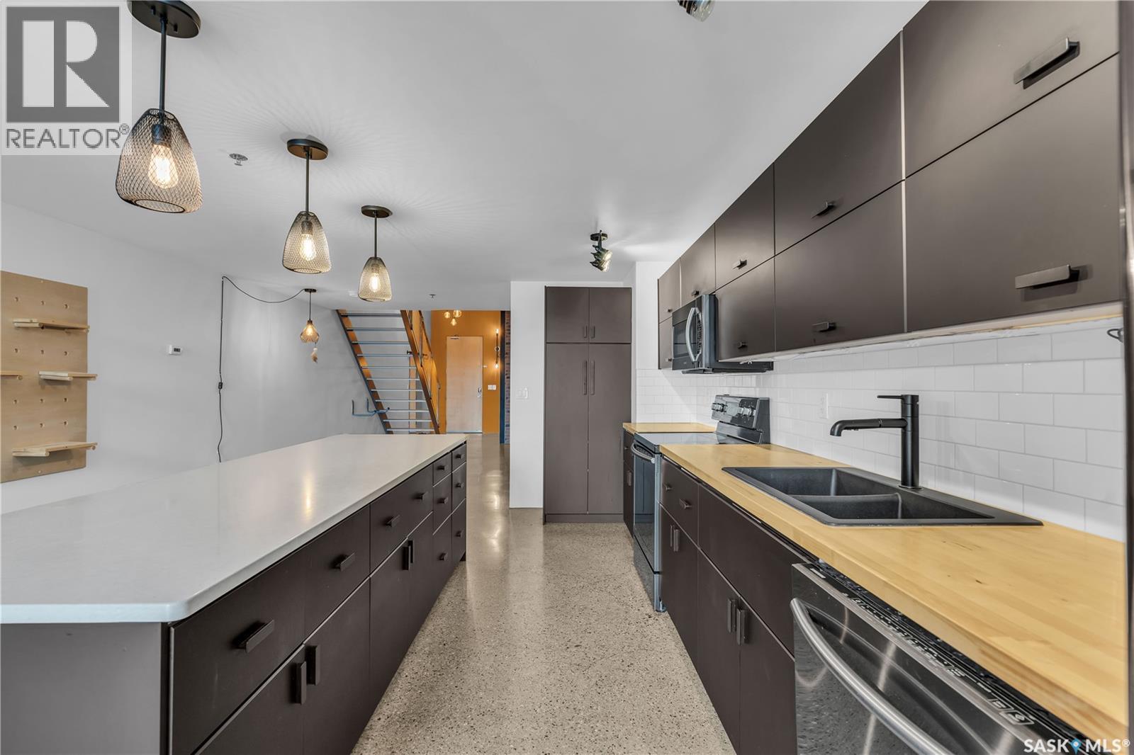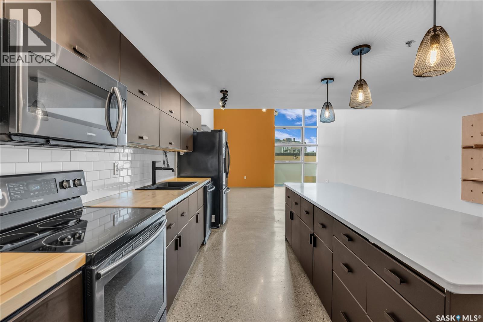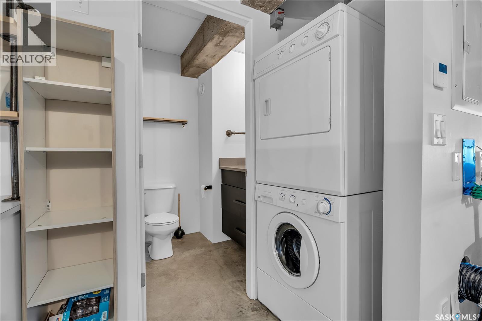 Indulge in upscale urban living with this stunning 1,268 sq ft, 2-bedroom, 2-bathroom condo in the iconic 2nd Avenue Lofts in the heart of vibrant downtown Saskatoon. Housed in the historic Hudson’s Bay Company building, reimagined in 2004 with an Award of Excellence for its innovative design, this pet-friendly loft blends industrial-chic charm with modern sophistication, boasting 17’-18’ ceilings, 15’-high windows with blackout electric blinds ($3000), and polished concrete floors. The open-concept main floor features a sleek kitchen with matte black cabinetry, stainless steel appliances, and a large quartz countertop island, perfect for entertaining, while a steel-framed mezzanine houses a second bedroom with spacious closet space and full bathroom. Complete with in-suite laundry and one heated underground parking spot. Residents enjoy a rooftop patio with BBQs, a weight room, cardio room, bookable meeting room, and 24-hour security and live-in caretaker. Condo fees cover heat, water, electricity, garbage, recycling, and reserve fund contributions, making budgeting effortless. You’re steps from the Remai Modern, Persephone Theatre, TCU Place, restaurants, shops, and Meewasin Park, with a main bus stop at your doorstep for easy access to the University of Saskatchewan and hospitals. Ideal for professionals, creatives, or investors. Don’t miss your chance to own a piece of Saskatoon’s history and experience the vibrant lifestyle of 2nd Avenue Lofts today! (id:43042)