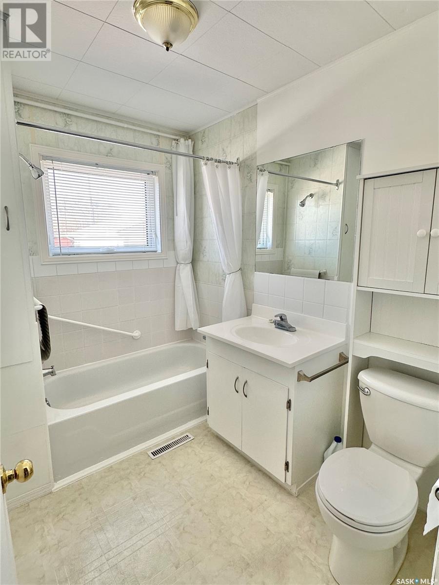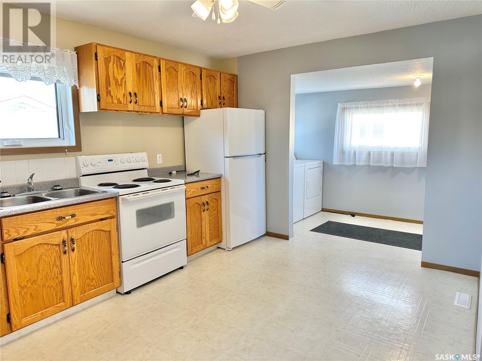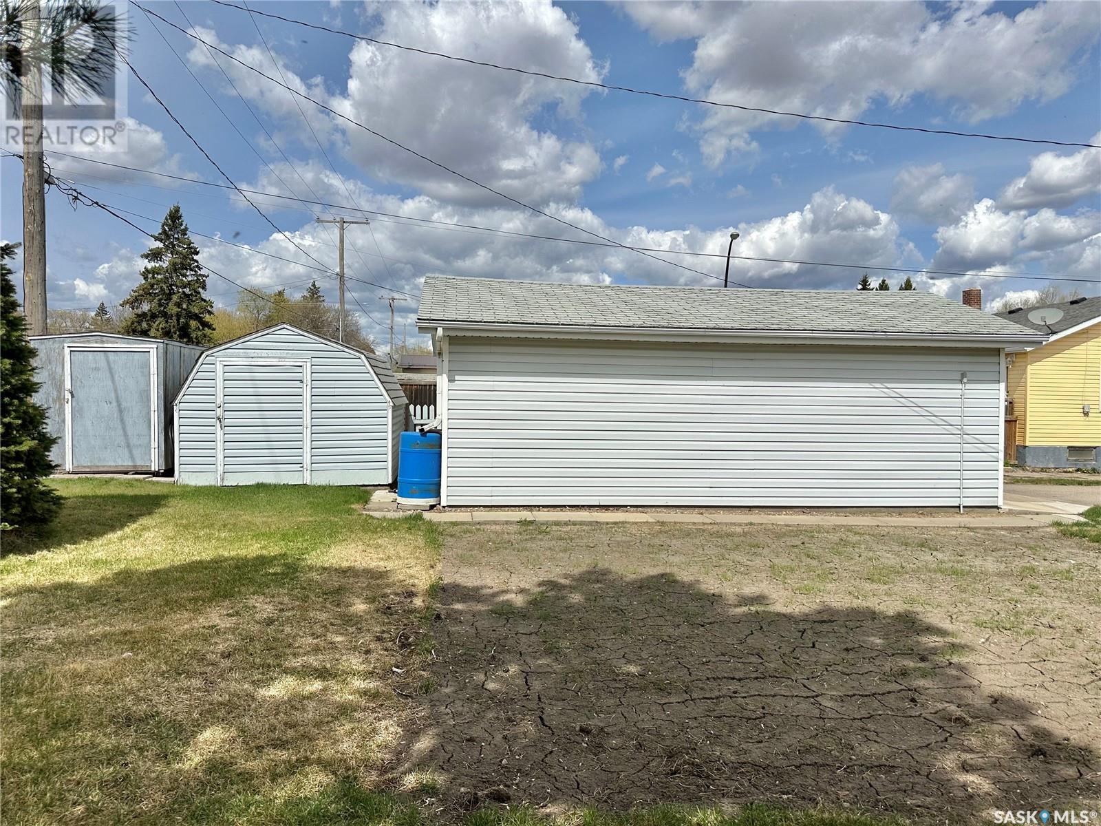 This delightful property features 2 bedrooms and 1 bathroom on the upper level, along with convenient main floor laundry. The spacious living room boasts large windows that let in plenty of natural light. Ideally located near the school and arena, this home also includes a detached single-car garage and a lovely yard with garden space. It has been well maintained and cared for. The partially finished basement offers a roomy family area and two additional bedrooms, which can also serve as office space. Plus, there's a generous storage room perfect for your garden produce, along with two storage sheds in the backyard and back alley access. (id:43042)