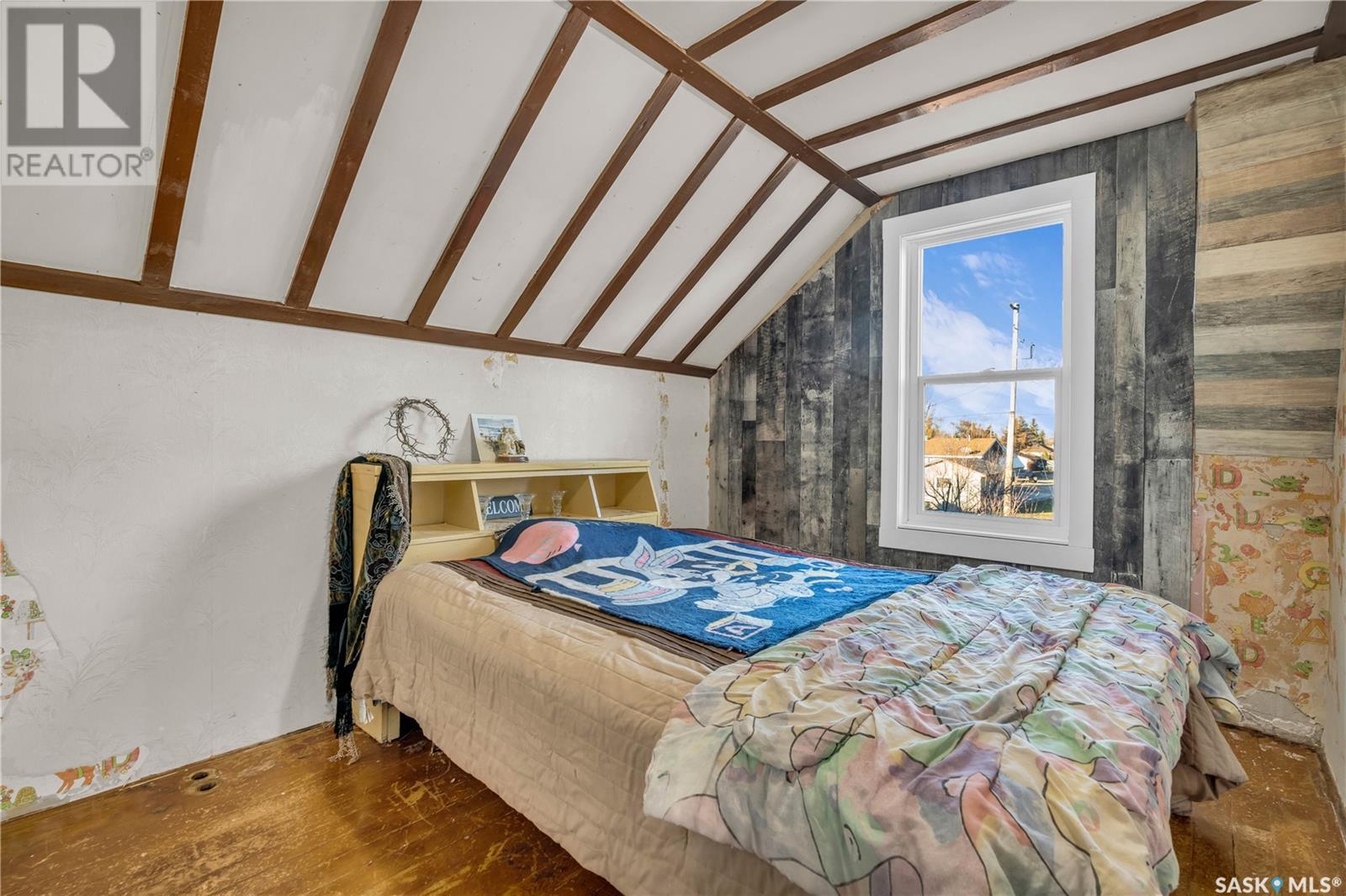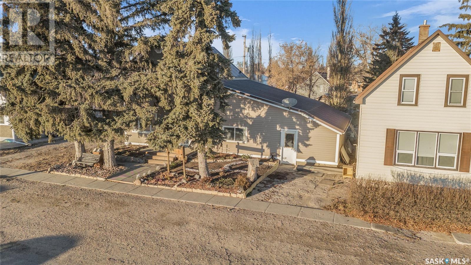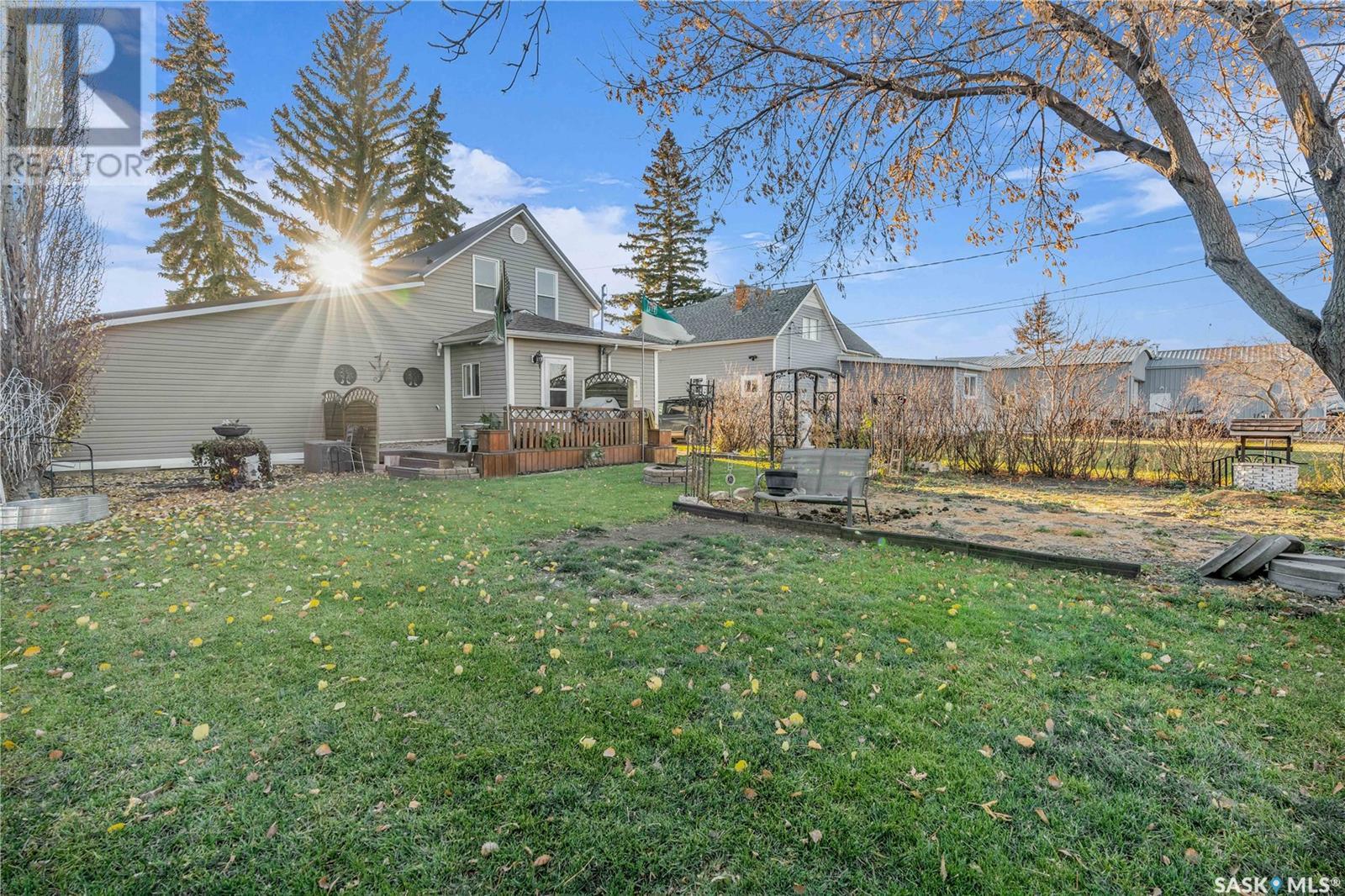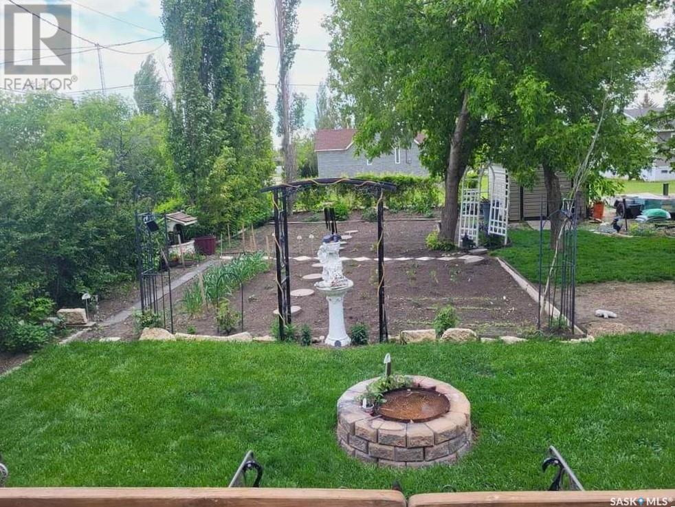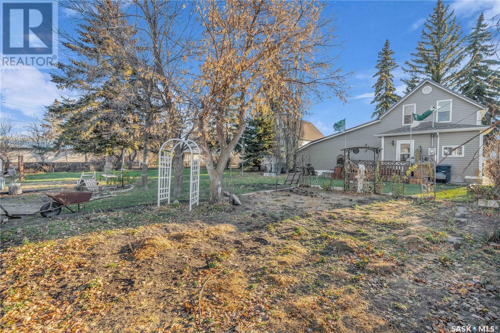 With 4 bedrooms – 3 up and 1 on the main floor, this is a great home with a beautiful yard, and a tonne of potential. The main floor features an eat-in kitchen, spacious living room, primary bedroom, and updated 4 pc bath. The original attached garage was converted into living space and a workshop. One could easily add in an overhead door again if indoor parking is what you are after to restore the garage. Or leave it as it is, and create the woodworking/craft space of you dreams. Upstairs are 3 bedrooms featuring the original hardwood of this 1910 build. Access the backyard from the kitchen and step out on to the yard’s deck. This double lot features a garden shed for additional storage, large garden space, firepit, and mature trees. The sellers will be leaving the garden arbour. With lane access, one would have room to add a large double detached garage if one so desired as well. Only 45 km from Regina, Vibank is very conveniently located on Highway # 48 with easy access to White City, Regina, and the Highway #1 East corridor. Vibank is a great little community with a K-12 School, licensed daycare, rink, credit union, post office, library, grocery store, meat market, lounge, gas station, hair salon and much more! It is also home to the famous “Grotto” Mexican restaurant. Contact your REALTOR ® today for more information and to schedule a showing. (id:43042)