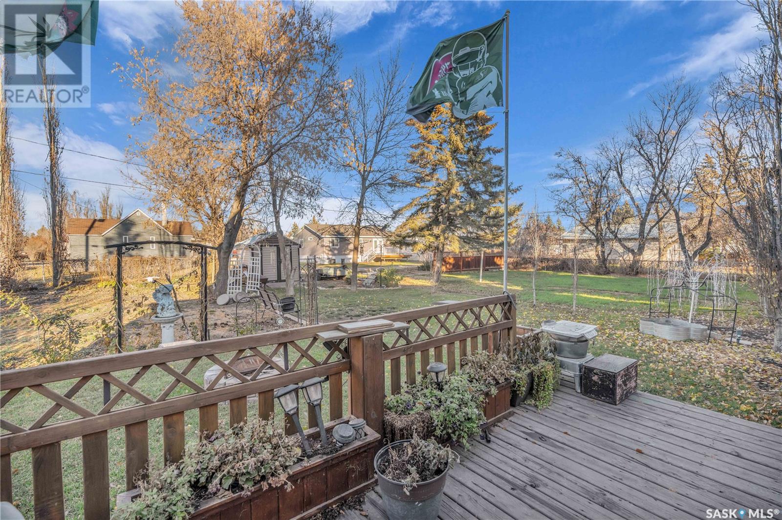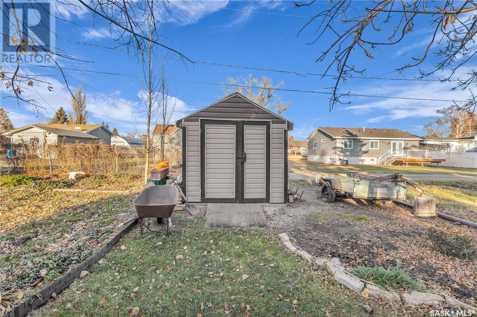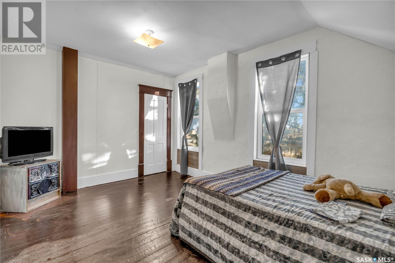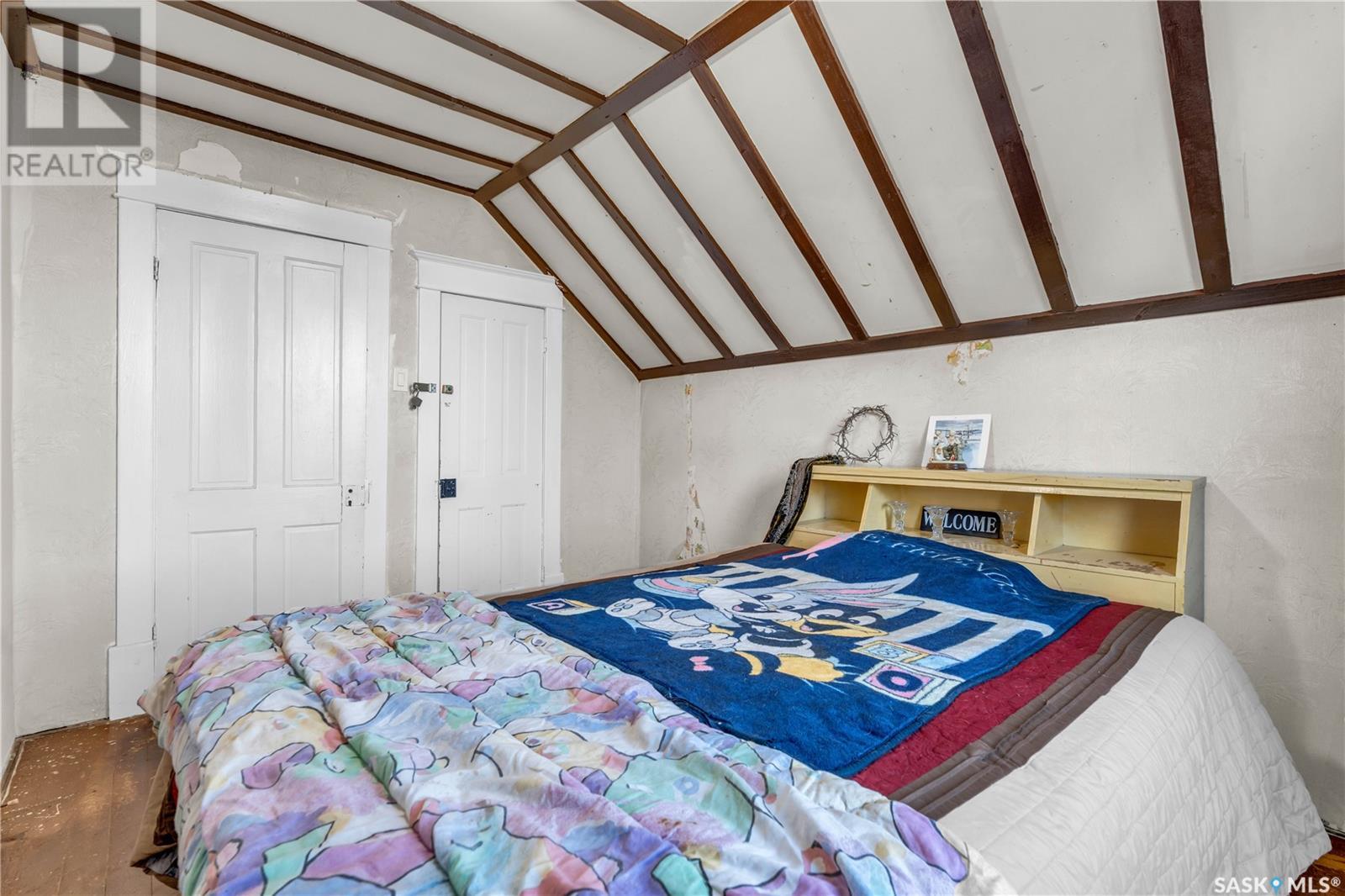 With 4 bedrooms – 3 up and 1 on the main floor, this is a great home with a beautiful yard, and a tonne of potential. The main floor features an eat-in kitchen, spacious living room, primary bedroom, and updated 4 pc bath. The original attached garage was converted into living space and a workshop. One could easily add in an overhead door again if indoor parking is what you are after to restore the garage. Or leave it as it is, and create the woodworking/craft space of you dreams. Upstairs are 3 bedrooms featuring the original hardwood of this 1910 build. Access the backyard from the kitchen and step out on to the yard’s deck. This double lot features a garden shed for additional storage, large garden space, firepit, and mature trees. The sellers will be leaving the garden arbour. With lane access, one would have room to add a large double detached garage if one so desired as well. Only 45 km from Regina, Vibank is very conveniently located on Highway # 48 with easy access to White City, Regina, and the Highway #1 East corridor. Vibank is a great little community with a K-12 School, licensed daycare, rink, credit union, post office, library, grocery store, meat market, lounge, gas station, hair salon and much more! It is also home to the famous “Grotto” Mexican restaurant. Contact your REALTOR ® today for more information and to schedule a showing. (id:43042)