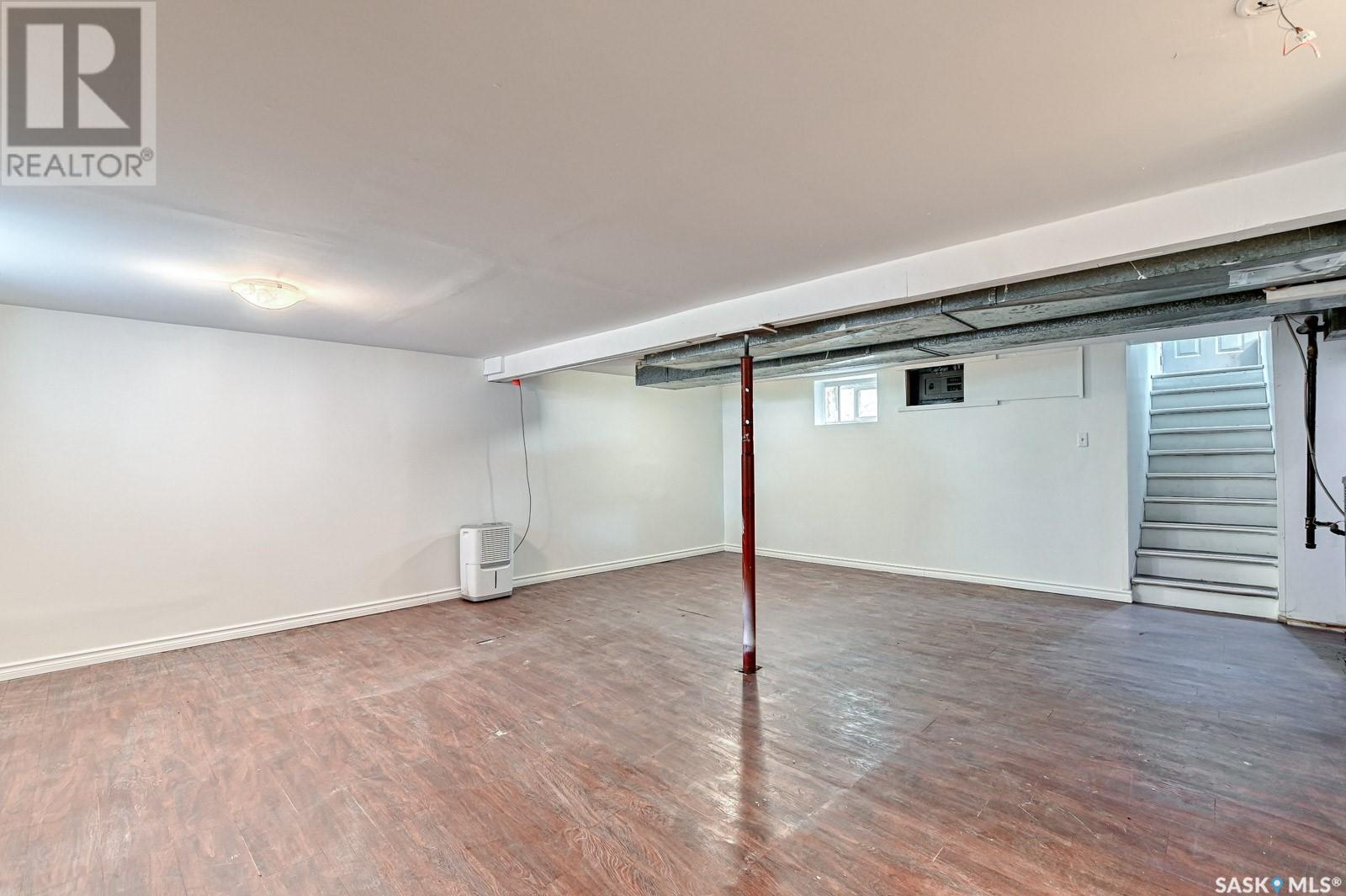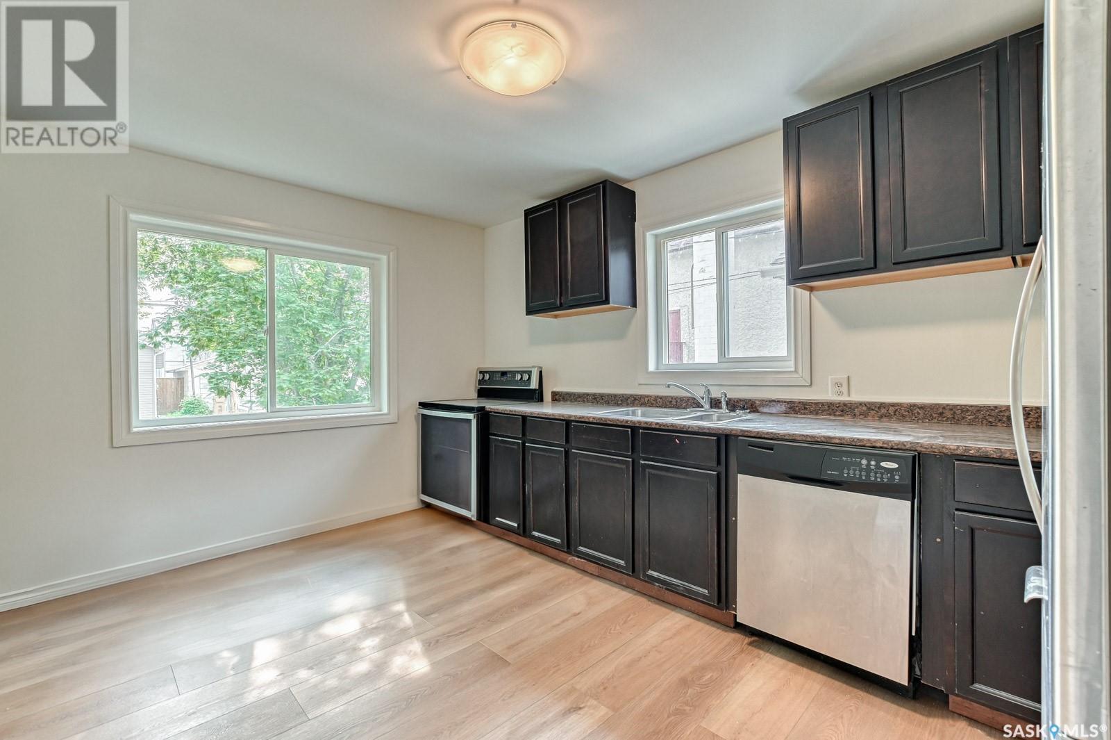 Ideal investment opportunity or for first time buyers, this Broders Annex bungalow is ready for immediate possession. The main floor features new vinyl plank flooring throughout the spacious living room, large kitchen, three bedrooms and an updated four piece bathroom. The kitchen offers newer dark cabinetry, stainless steel appliances including a built in dishwasher and has ample space for dining. The basement is completely finished featuring a recreation room, den and a three piece bathroom. The large backyard features many mature trees for privacy. Back lane access to the single detached garage allows for off street parking. Located in a quiet, friendly neighbourhood, this home is just minutes from shopping and schools. (id:43042)