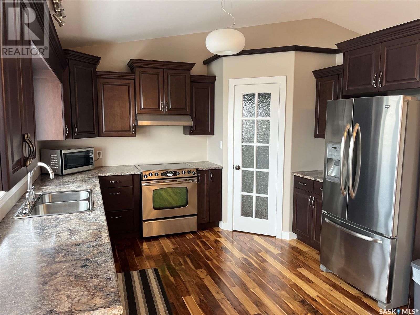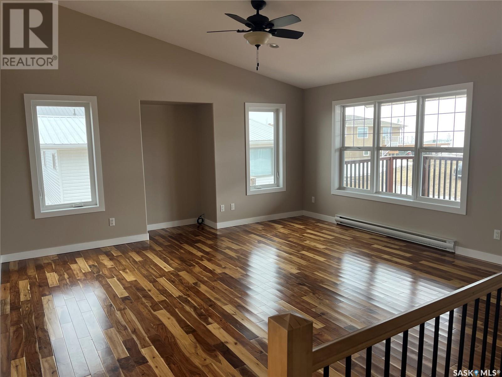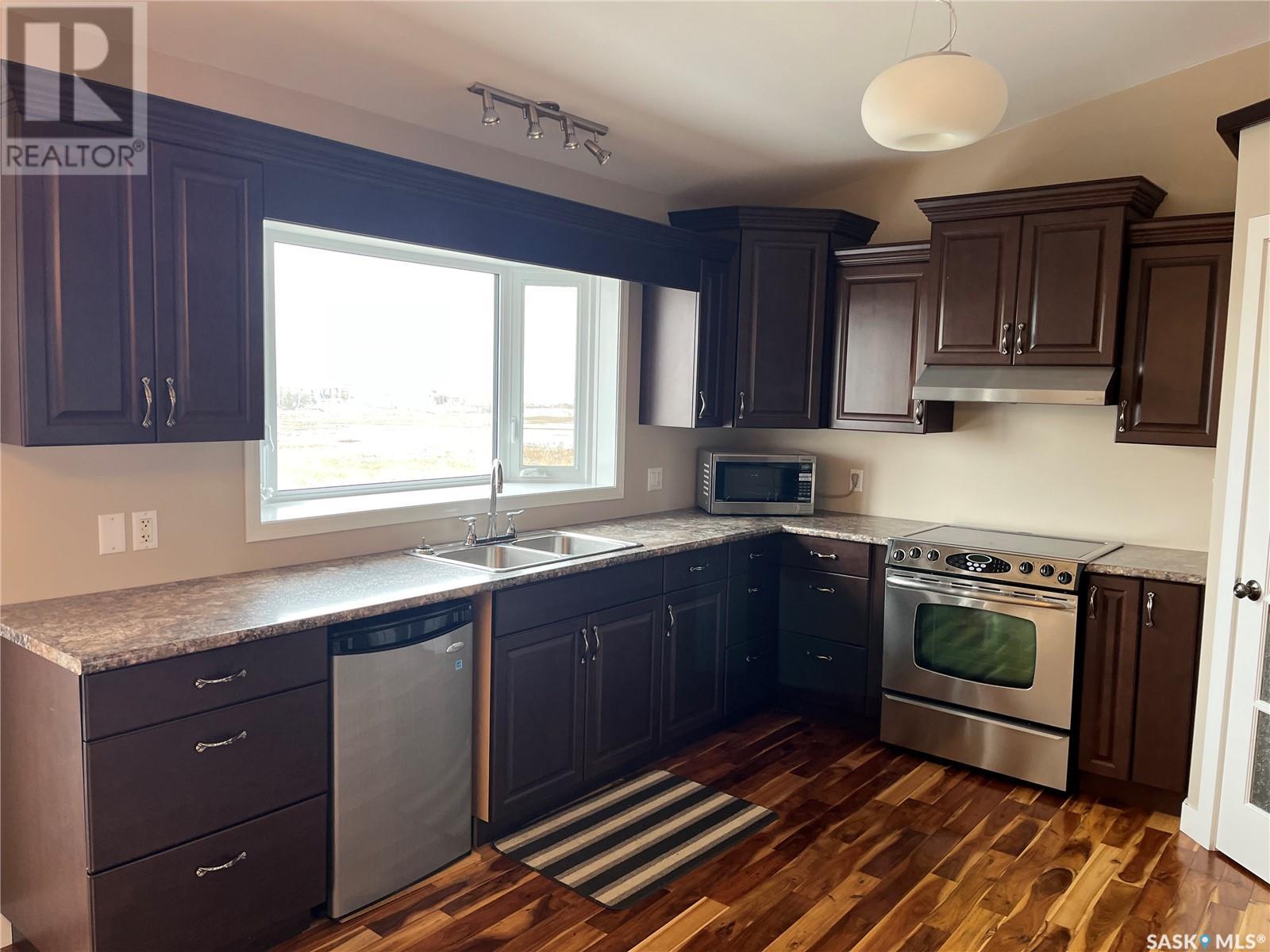 227 Lakeshore Drive Leslie Beach Fishing Lake is a 1280 Square foot raised bungalow with a full unfinished basement. The three bedroom bungalow has a full bath and 3-piece ensuite off the primary bedroom. The home features a large eat in kitchen with modern cabinets, and hardwood floors that flow into the large living room with a view of the lake. The home offers a small composite deck off the dining area and a larger composite deck on the lake side spanning the width of the home. The larger deck is accessed from living room and primary bedroom. The property is able to be used year round with a water tank and pressure system as the current water source. The basement is a blank slate with a door leading to the back yard of the cabin, cement floor and large windows. (id:43042)