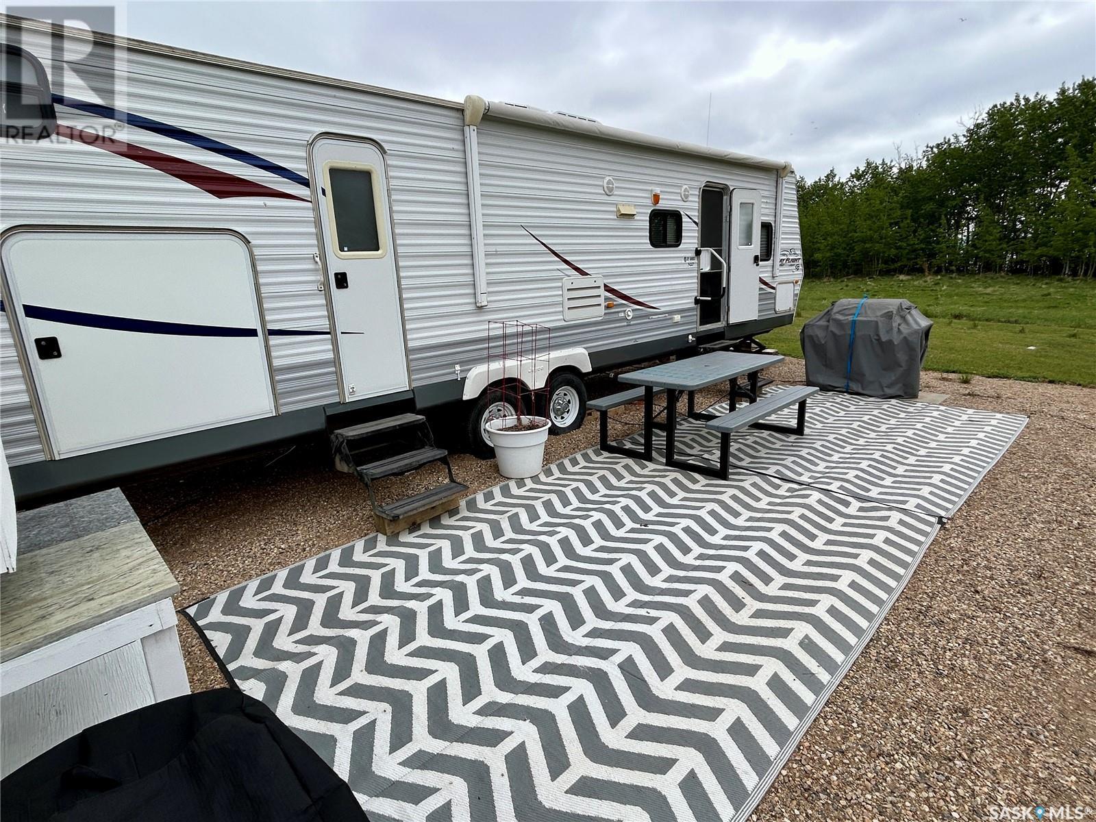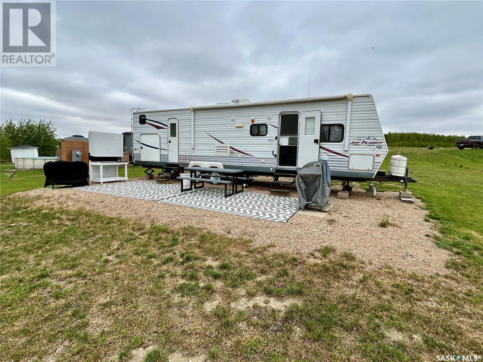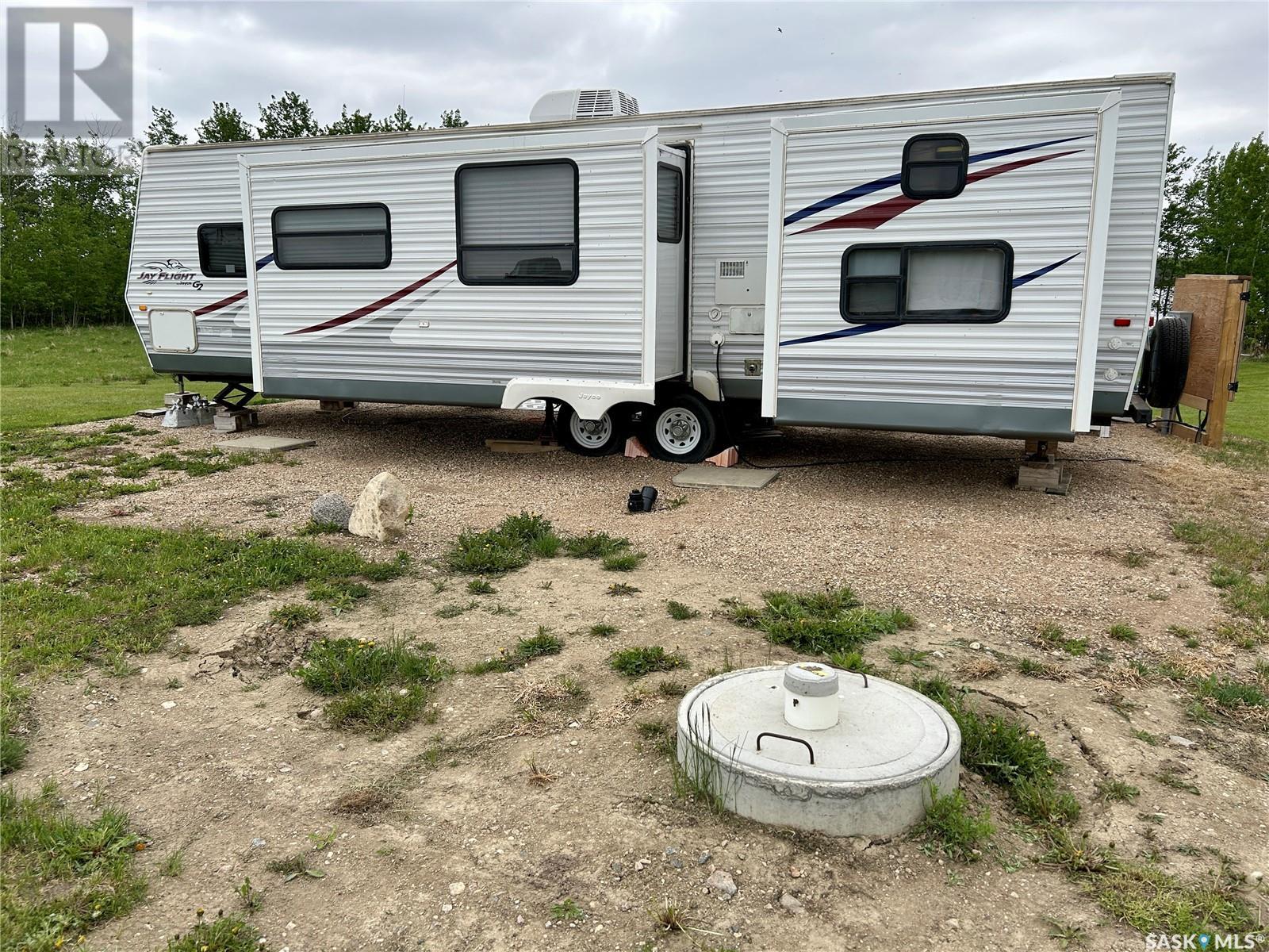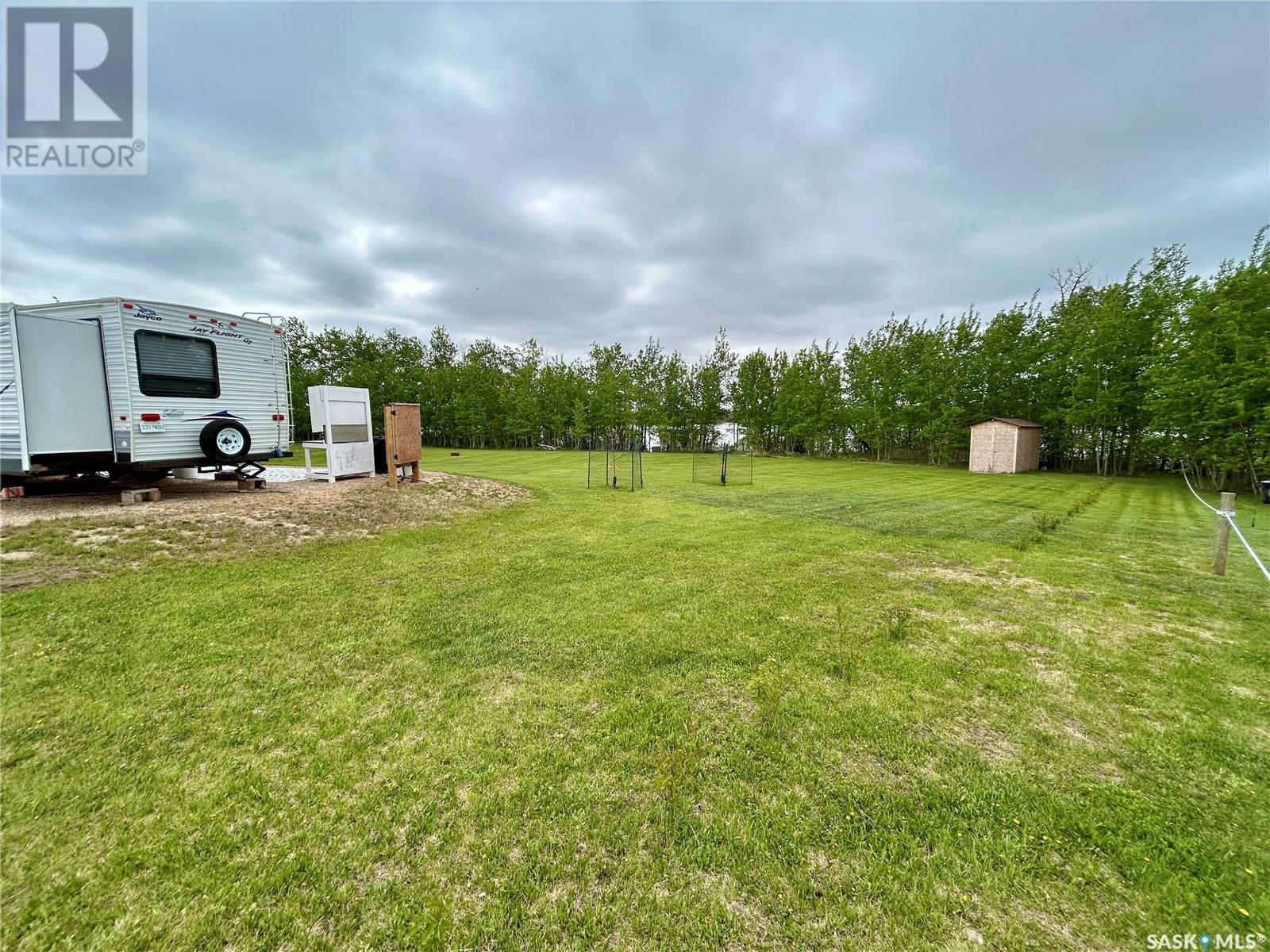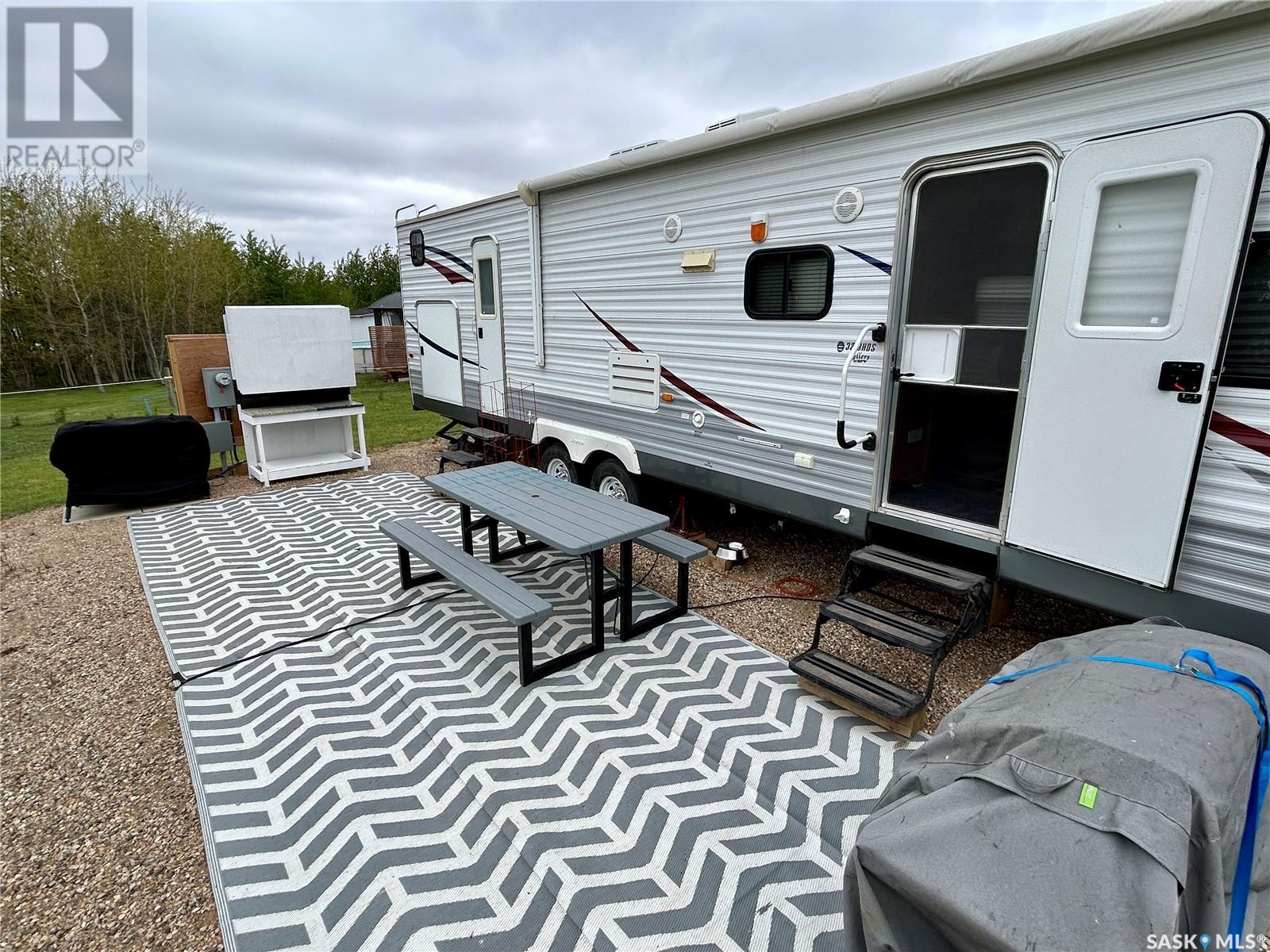 Lakefront getaway at Dixon Lake, just past Wakaw, SK! This spacious 0.6-acre pie-shaped lot offers 191 feet of private lake frontage with no stairs or drop-offs—walk straight to the water and your private dock. The lot includes a 1000-gallon septic tank, power with 220 trailer plug, gravel driveway, 30'x26' building/trailer pad, deck area, shed with kayak hangers, fire pit, and lilac tree lines. Phone line is accessible at the road. A well-maintained 2009 32' Jayco trailer is included—sleeps 10, with a walk-around queen bed (newer mattress), bunk room, and two slides. Like-new condition. Peaceful and quiet with great neighbors. Year-round road maintenance. Just down the road: a boat launch, beach, and playground. Enjoy boating (no restrictions), fishing, sunrises, water sports, and wildlife like pelicans. Only 1.25 hrs from Saskatoon, 30 min from PA and 15 mins from Birchhills—your lakefront retreat awaits! (id:43042)