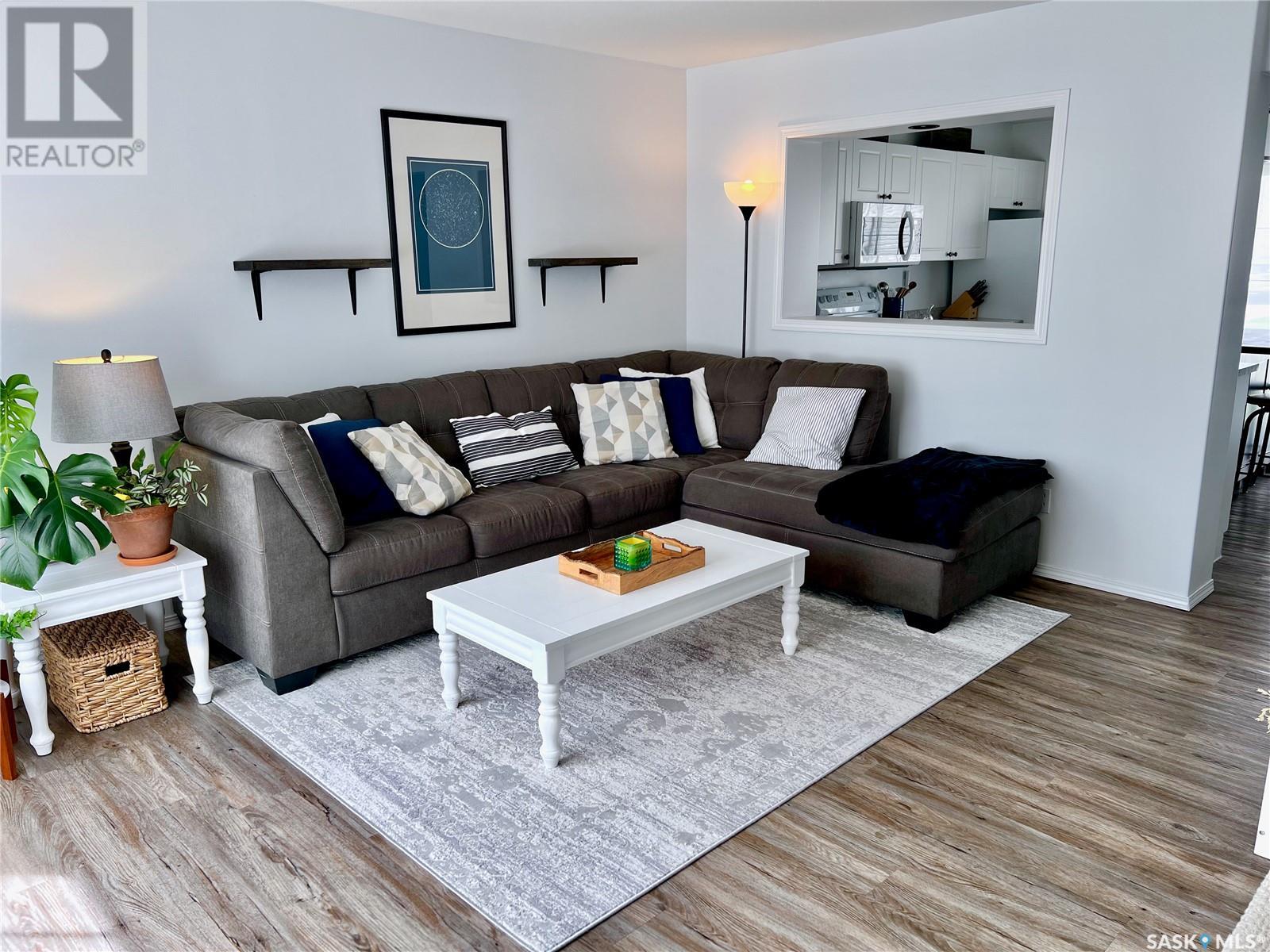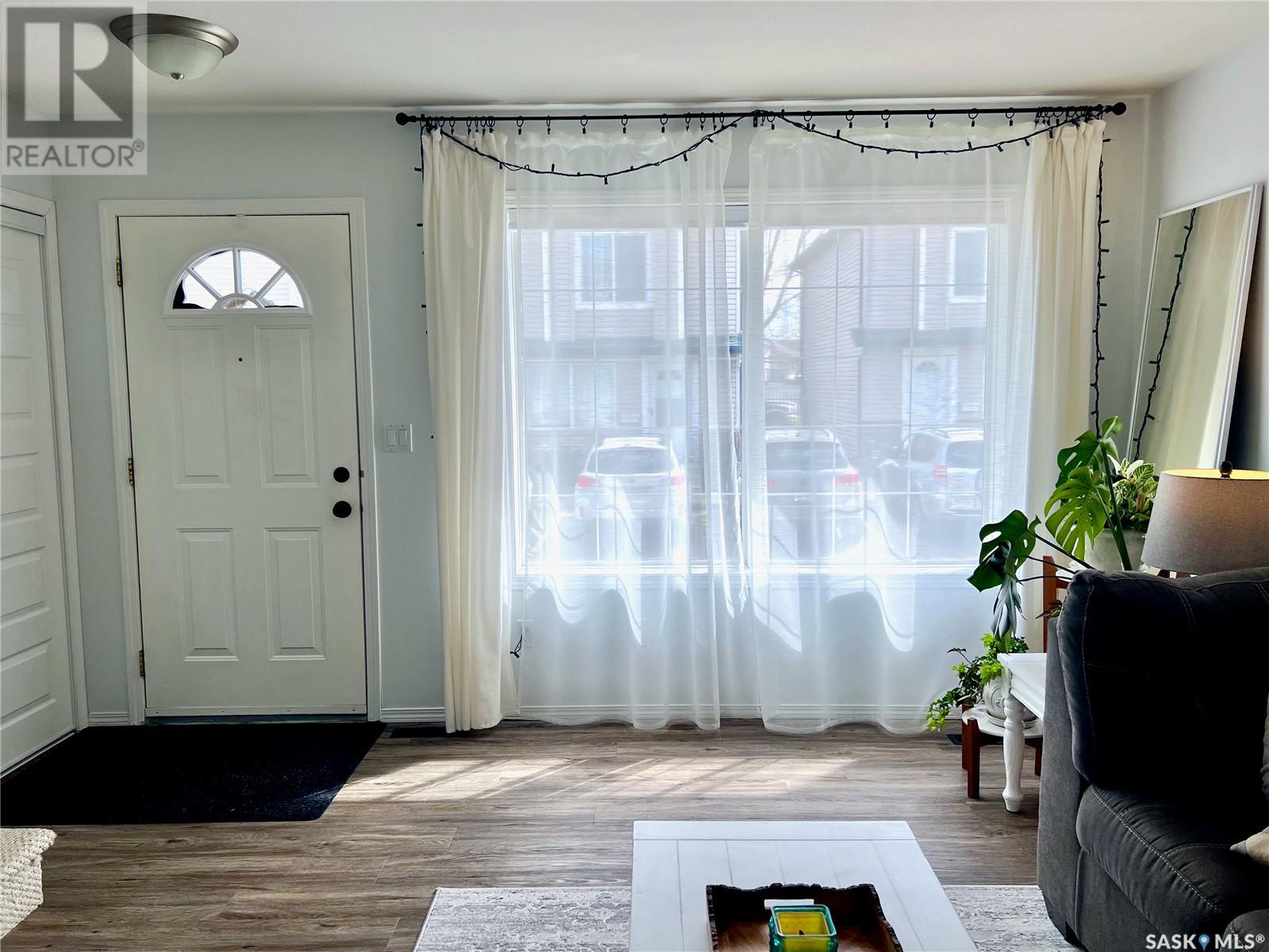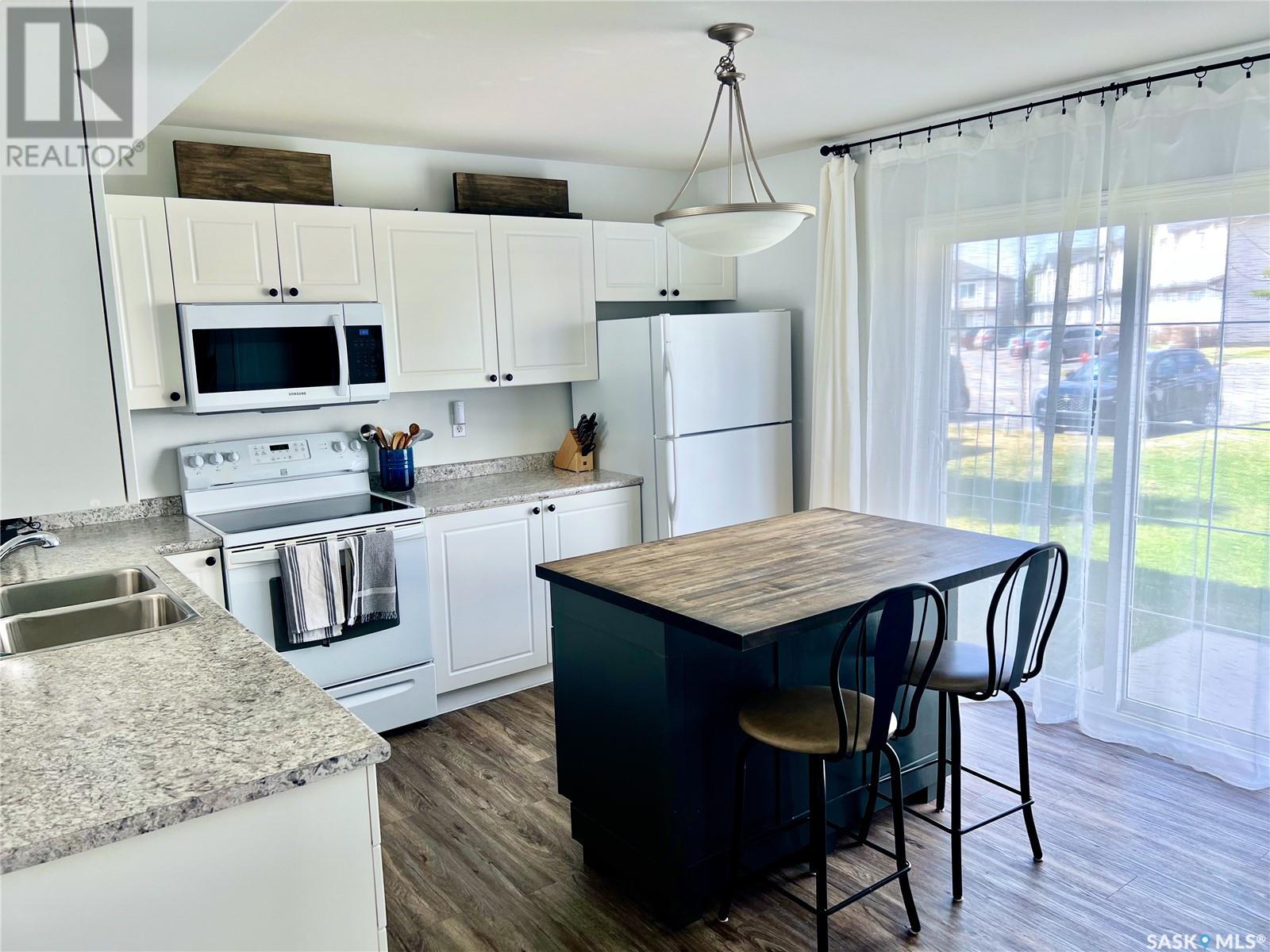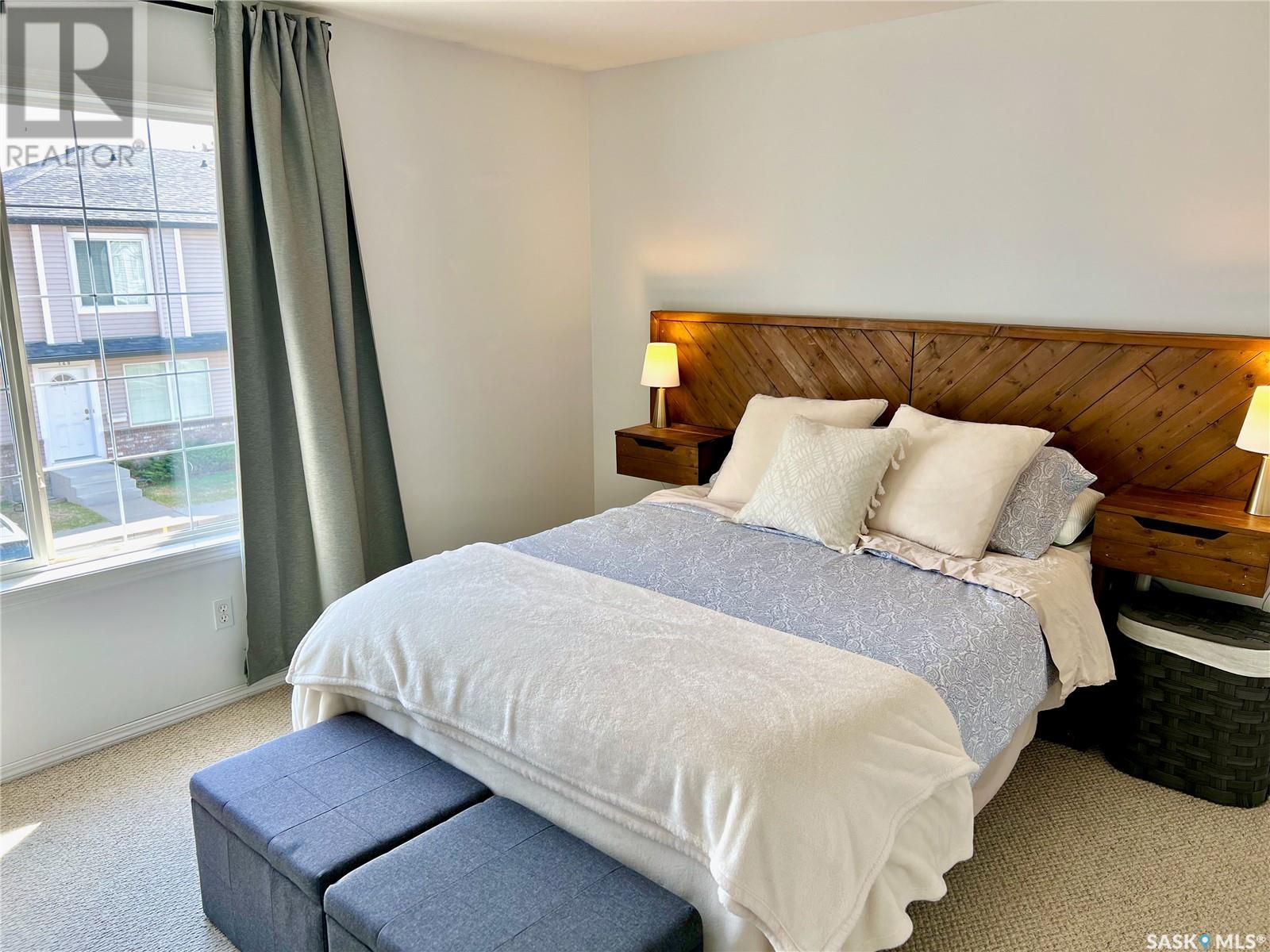 Updated, modern, move in ready townhouse in fabulous location. This 2 bedroom, 2 bath home features a bright, functional floor plan with living room, kitchen with access to patio and half bath on main floor, spacious master bedroom, full bath, and second bedroom on upper level. The basement is fully finished with a rec room, laundry/utility area and lots of storage. Recent updates include new LVP flooring on main floor and counter tops in kitchen and bathrooms. Two parking stalls are included. Perfect location in the established neighbourhood of Arbor Creek, close to parks, schools, all amenities and bus routes to the University of Saskatchewan and city centre. Note: island in kitchen is not included. Check it out, open house on July 12th and 13th from 12-2 pm. (id:43042)