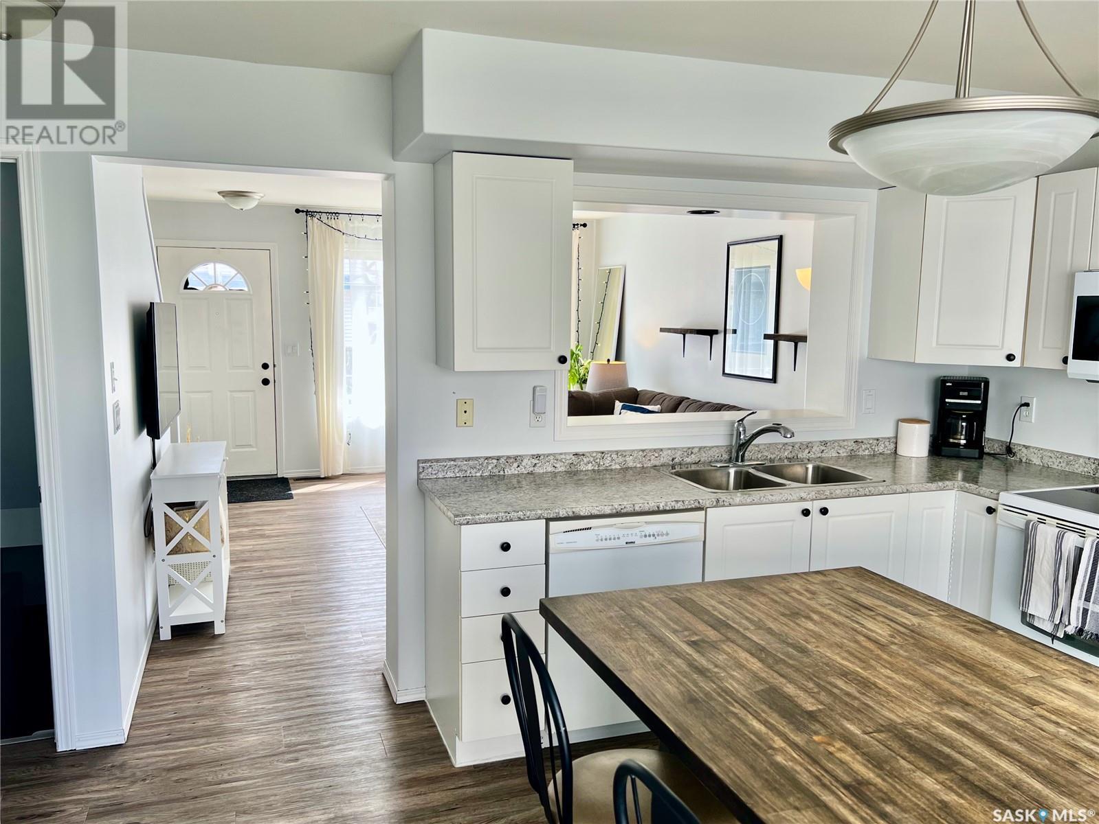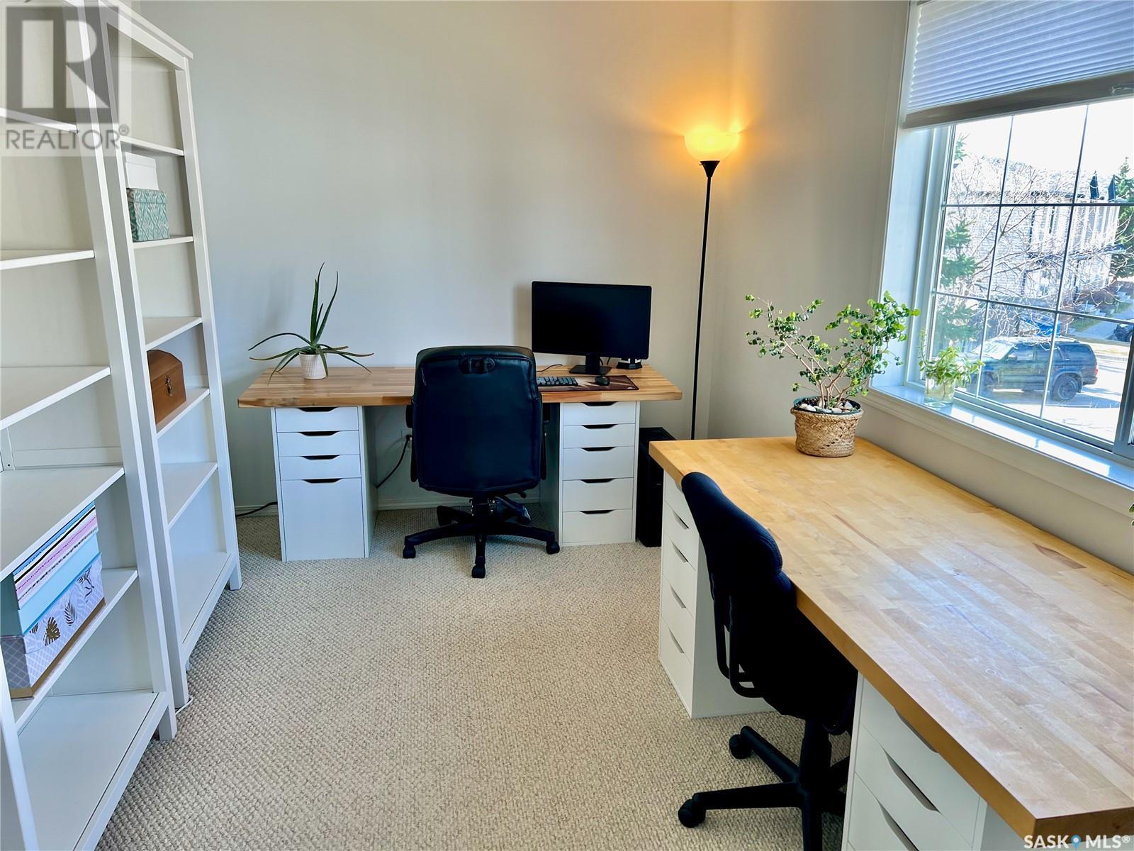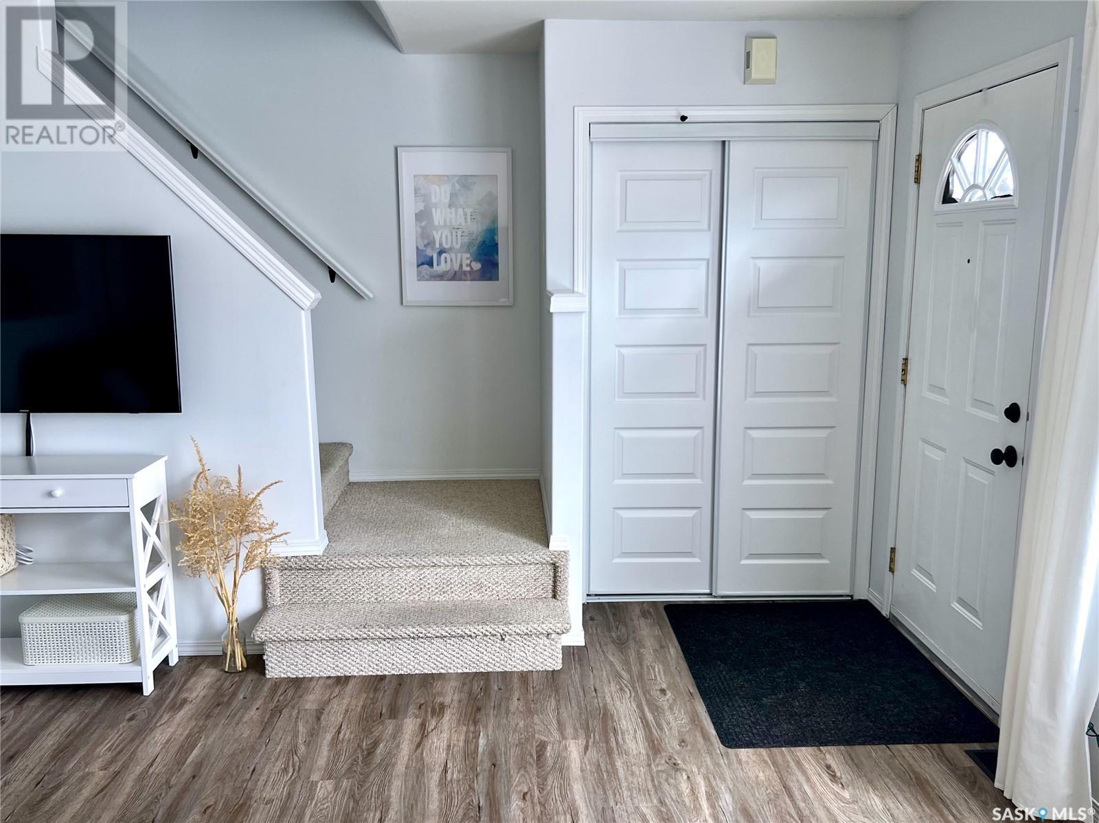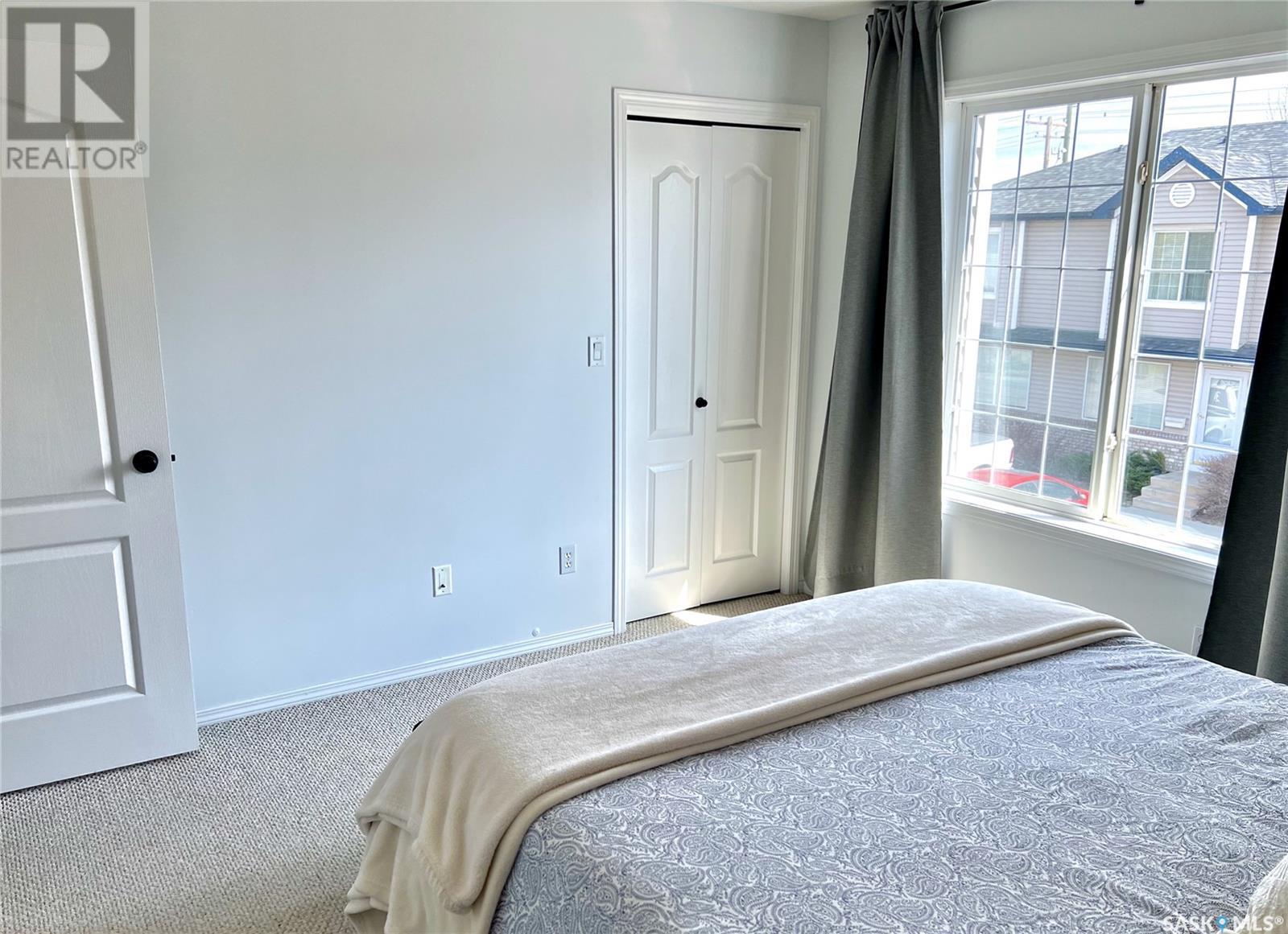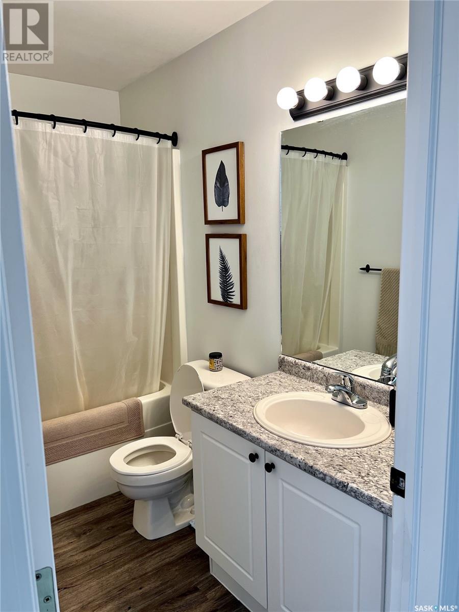 Updated, modern, move in ready townhouse in fabulous location. This 2 bedroom, 2 bath home features a bright, functional floor plan with living room, kitchen with access to patio and half bath on main floor, spacious master bedroom, full bath, and second bedroom on upper level. The basement is fully finished with a rec room, laundry/utility area and lots of storage. Recent updates include new LVP flooring on main floor and counter tops in kitchen and bathrooms. Two parking stalls are included. Perfect location in the established neighbourhood of Arbor Creek, close to parks, schools, all amenities and bus routes to the University of Saskatchewan and city centre. Note: island in kitchen is not included. Check it out, open house on July 12th and 13th from 12-2 pm. (id:43042)