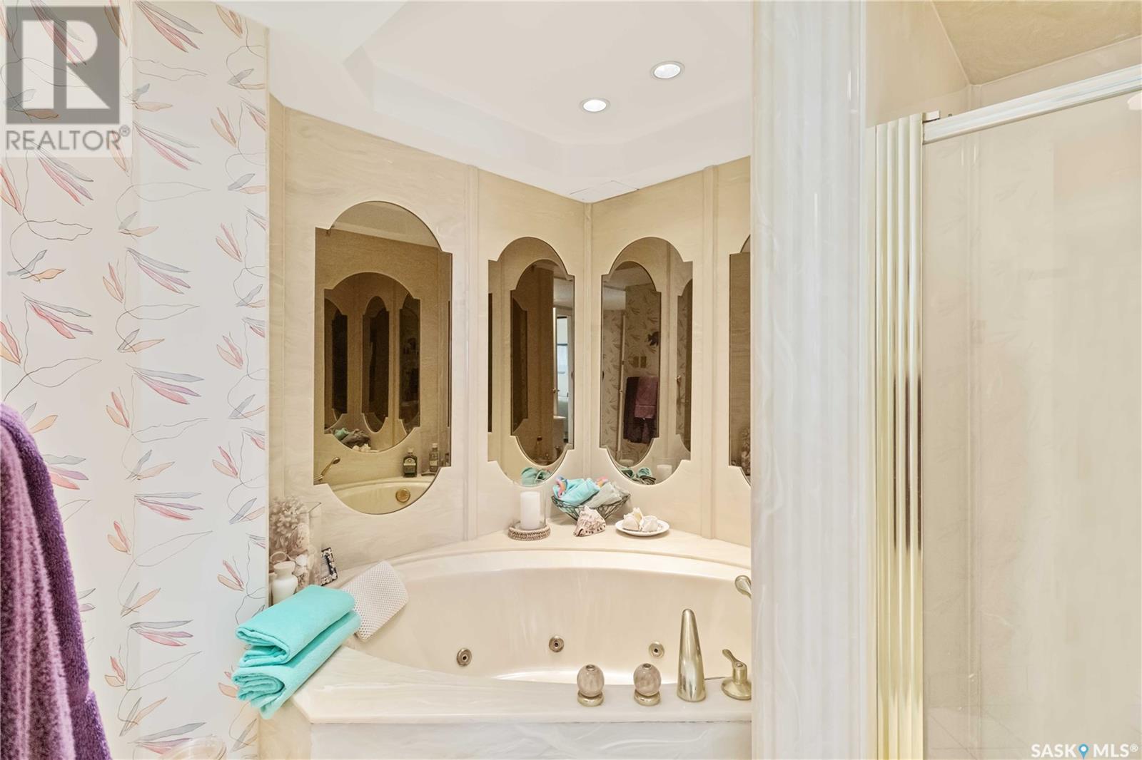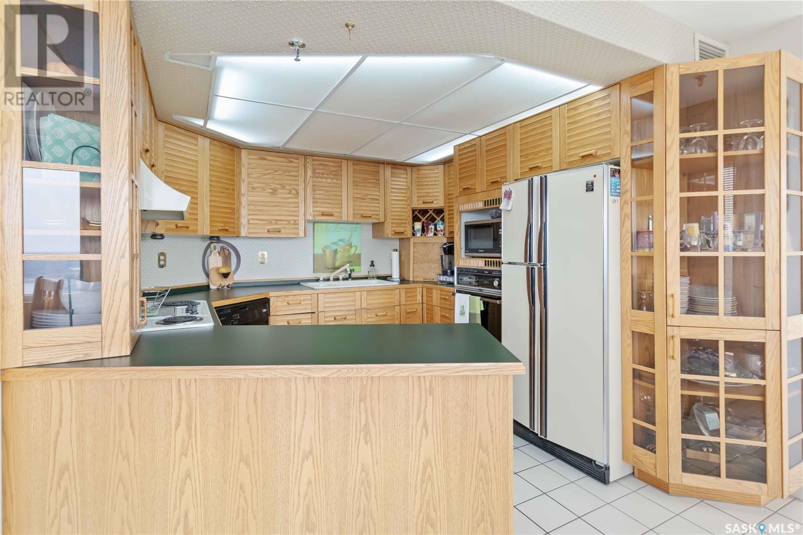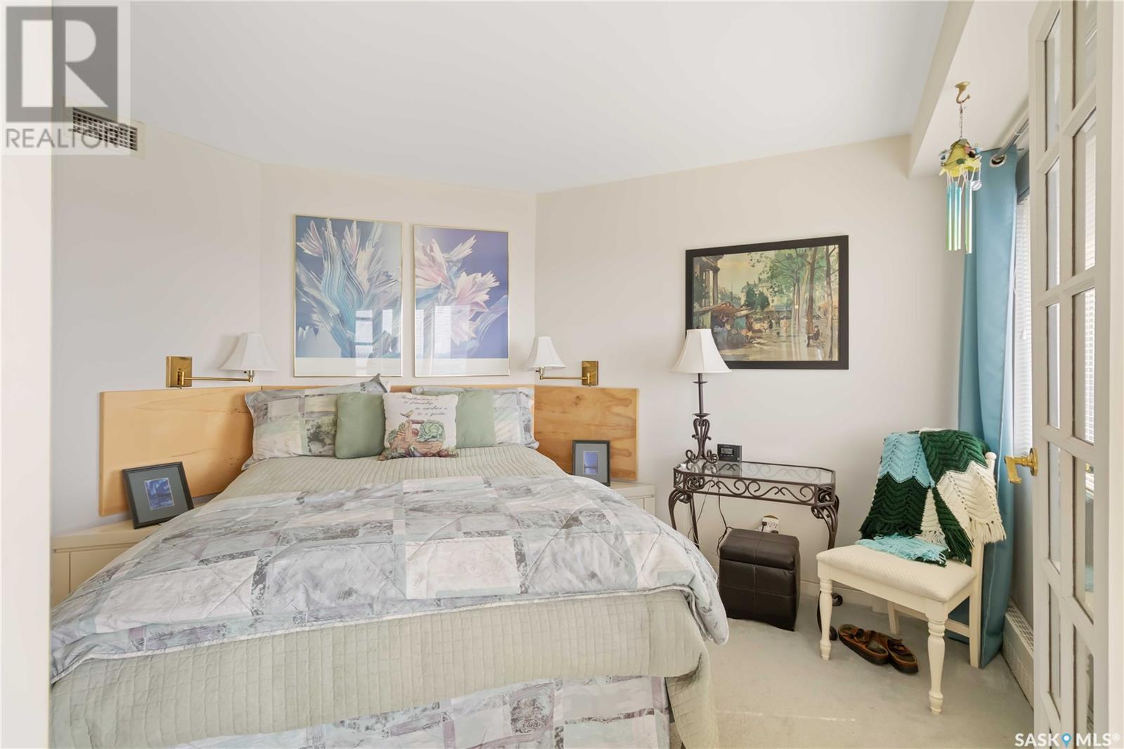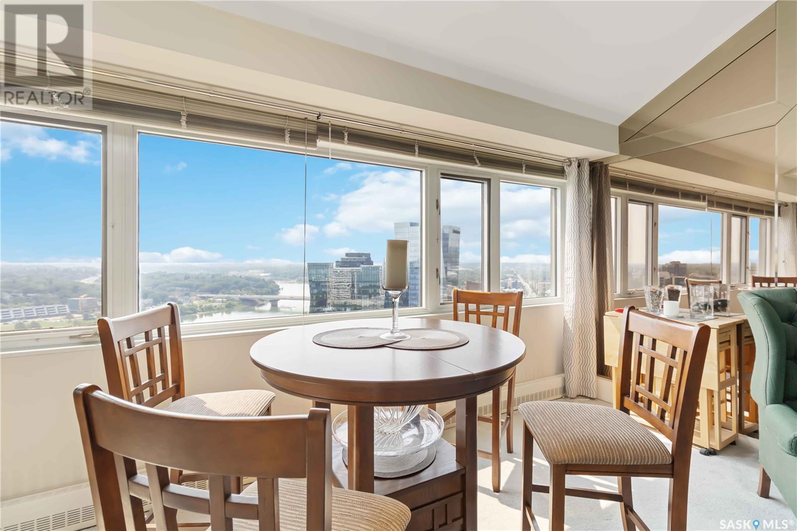 Penthouse suite! Absolutely one of a kind condo with some of the most amazing views in Saskatoon. This luxurious condo has gorgeous vaulted ceilings which offer the most spectacular framing of the incredible view. The master bedroom also has an unparalleled view and offers a large walk through closet and 5 piece bath complete with bidet and cultured marble jetted tub. The kitchen features built-in appliances and oak cabinetry, all of which display pride of ownership at its finest. This condominium provides the owner with access to the amenities at the hotel, including swimming pool, exercise area and discounts for owners in the restaurant. Also included is an underground parking stall and storage unit. Prepare yourself to experience this unique and rare opportunity! (id:43042)