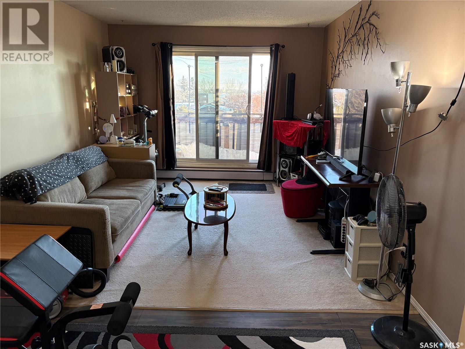 $481 MonthlyWelcome to #25 – 2309 17th St W. This 816 sq ft condo in the heart of Meadowgreen is well kept and is perfect as a starter home or as an income property. This bright and airy top-floor corner unit includes a walk-through kitchen, upgraded bathroom, two bedrooms, spacious living room, private balcony, and parking space. A/C and appliances are included. Close to schools, parks and multiple green spaces. Shared laundry in the building but owner has a portable washer & dryer inside the unit. (id:43042)