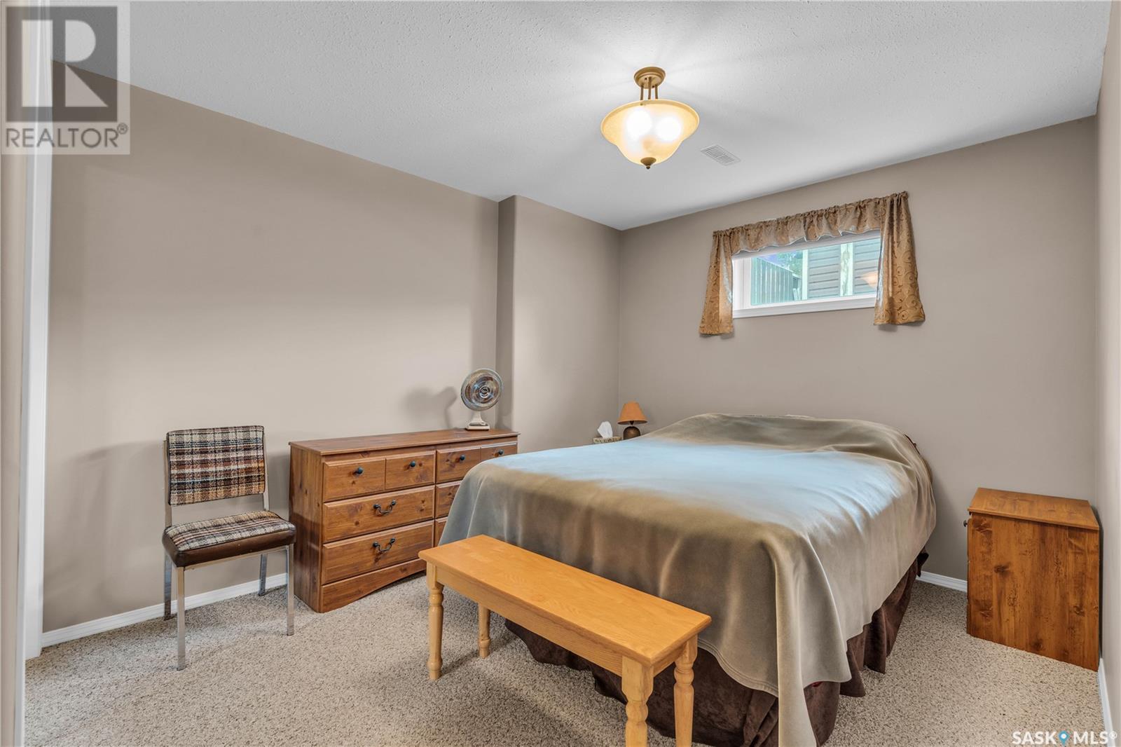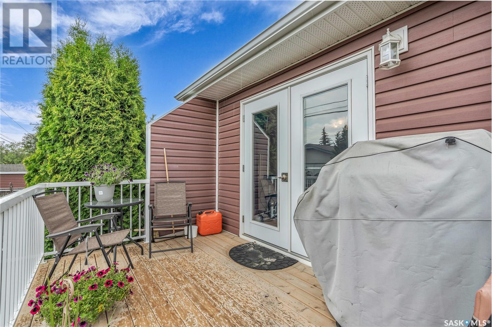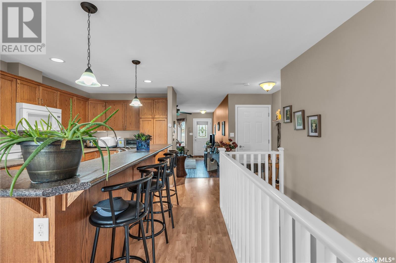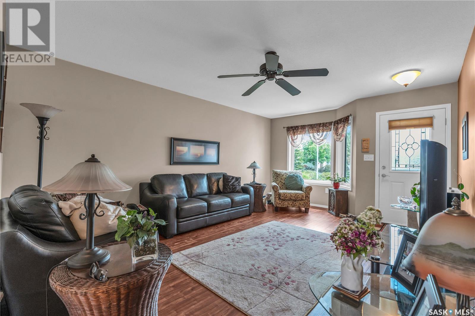$250 MonthlyThis well-maintained and thoughtfully customized condo is located on a quiet, well-established street in the Town of Battleford. The property offers comfortable and functional living in a prime location, ideal for those looking to downsize without sacrificing space or convenience. The main level features a bright and open layout, with a custom staircase design that sets this unit apart from others in the development. By reversing the stair orientation, the main living area feels more spacious and functional. The large kitchen offers ample cabinetry, updated appliances, and an eat-up island that flows seamlessly into the dining area. From the dining room, step out into a fully landscaped backyard complete with a deck, stone patio, and large storage shed. The home includes main floor laundry, a generous primary suite with a 5-piece ensuite and walk-in closet, and direct entry to an attached garage that’s fully insulated and finished with clean metal walls, great for year-round use, storage, or projects. The fully developed basement offers two additional bedrooms and an abundance of storage space, making this unit an excellent option for those needing extra room for guests, hobbies, or long-term organization. Lovingly cared for and in move-in ready condition, this condo offers low-maintenance living in a quiet, desirable location in Battleford. (id:43042)