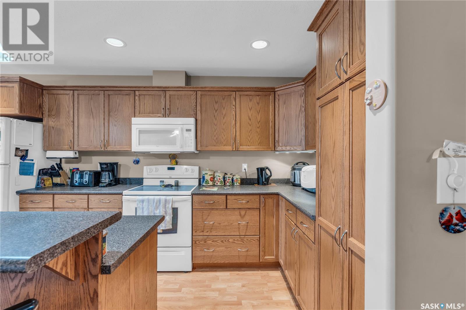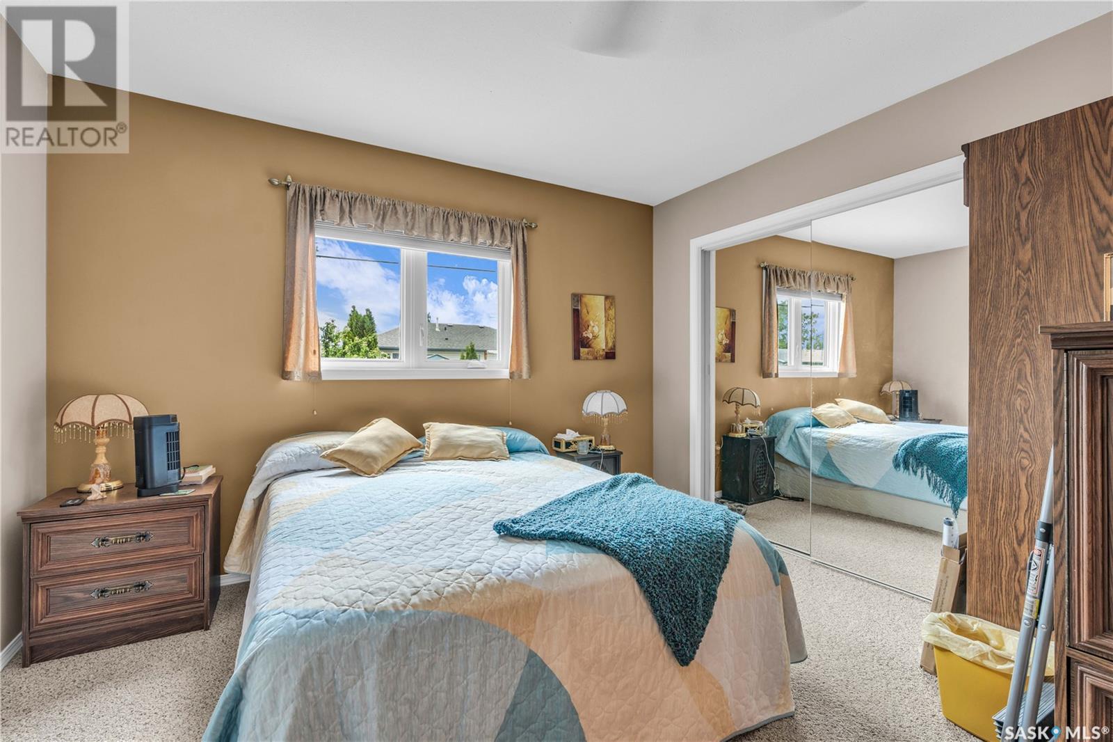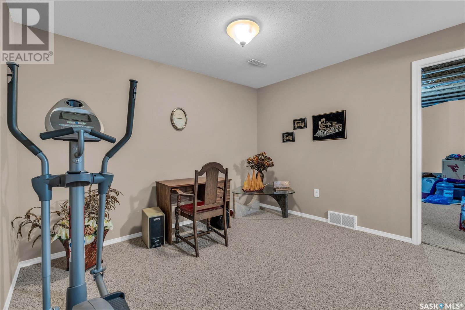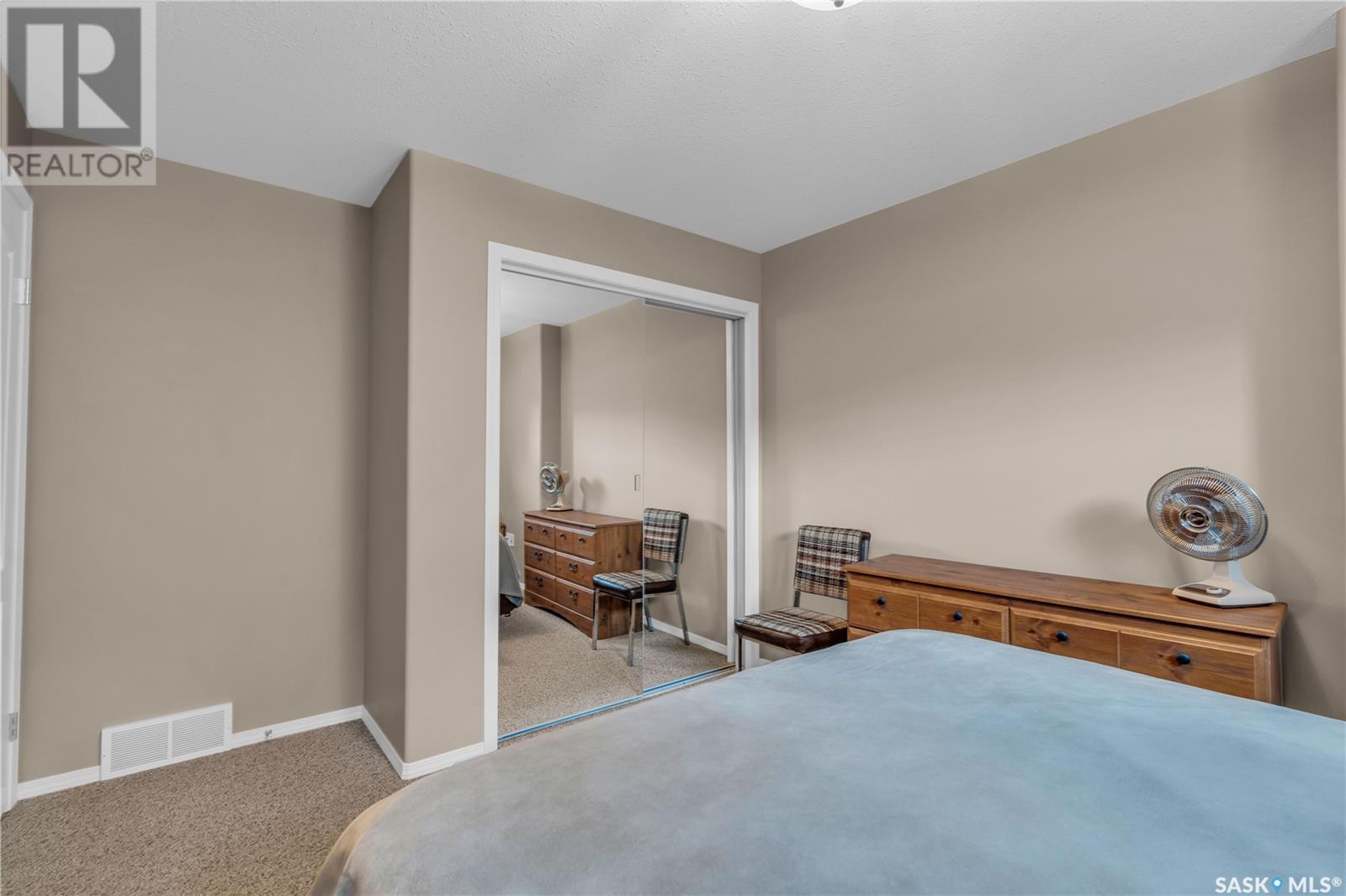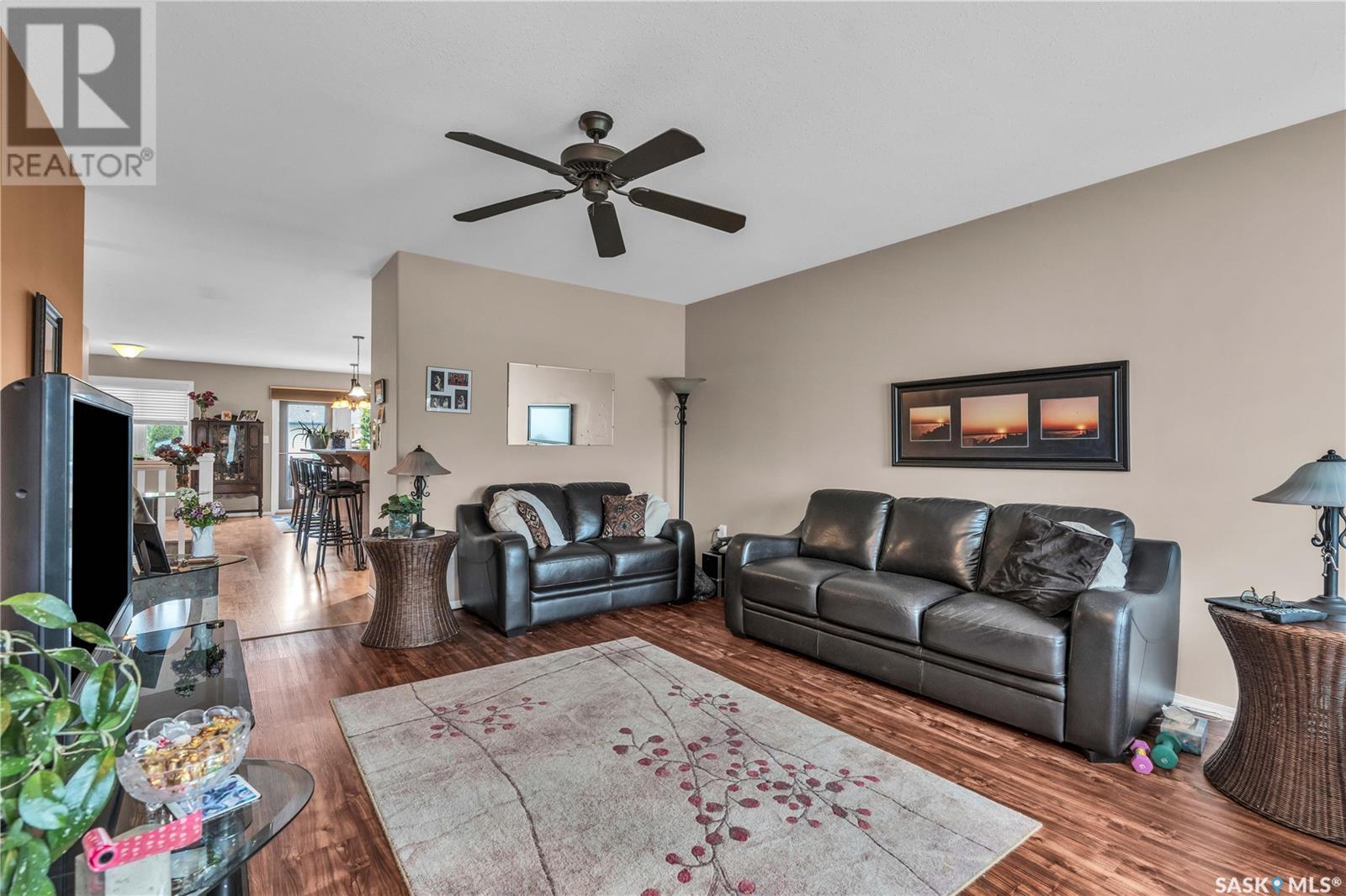 $250 MonthlyThis well-maintained and thoughtfully customized condo is located on a quiet, well-established street in the Town of Battleford. The property offers comfortable and functional living in a prime location, ideal for those looking to downsize without sacrificing space or convenience. The main level features a bright and open layout, with a custom staircase design that sets this unit apart from others in the development. By reversing the stair orientation, the main living area feels more spacious and functional. The large kitchen offers ample cabinetry, updated appliances, and an eat-up island that flows seamlessly into the dining area. From the dining room, step out into a fully landscaped backyard complete with a deck, stone patio, and large storage shed. The home includes main floor laundry, a generous primary suite with a 5-piece ensuite and walk-in closet, and direct entry to an attached garage that’s fully insulated and finished with clean metal walls, great for year-round use, storage, or projects. The fully developed basement offers two additional bedrooms and an abundance of storage space, making this unit an excellent option for those needing extra room for guests, hobbies, or long-term organization. Lovingly cared for and in move-in ready condition, this condo offers low-maintenance living in a quiet, desirable location in Battleford. (id:43042)