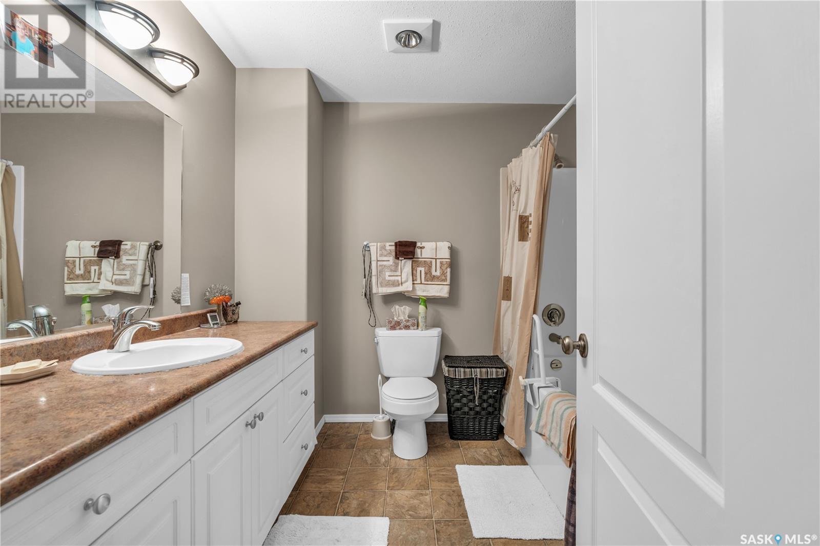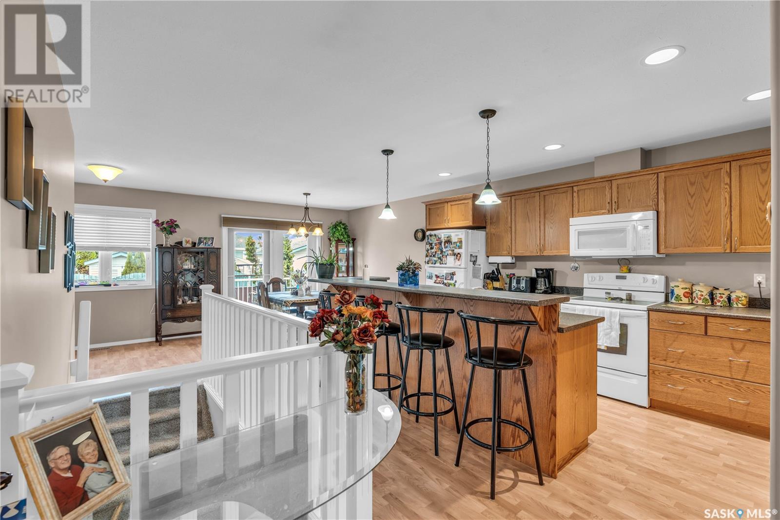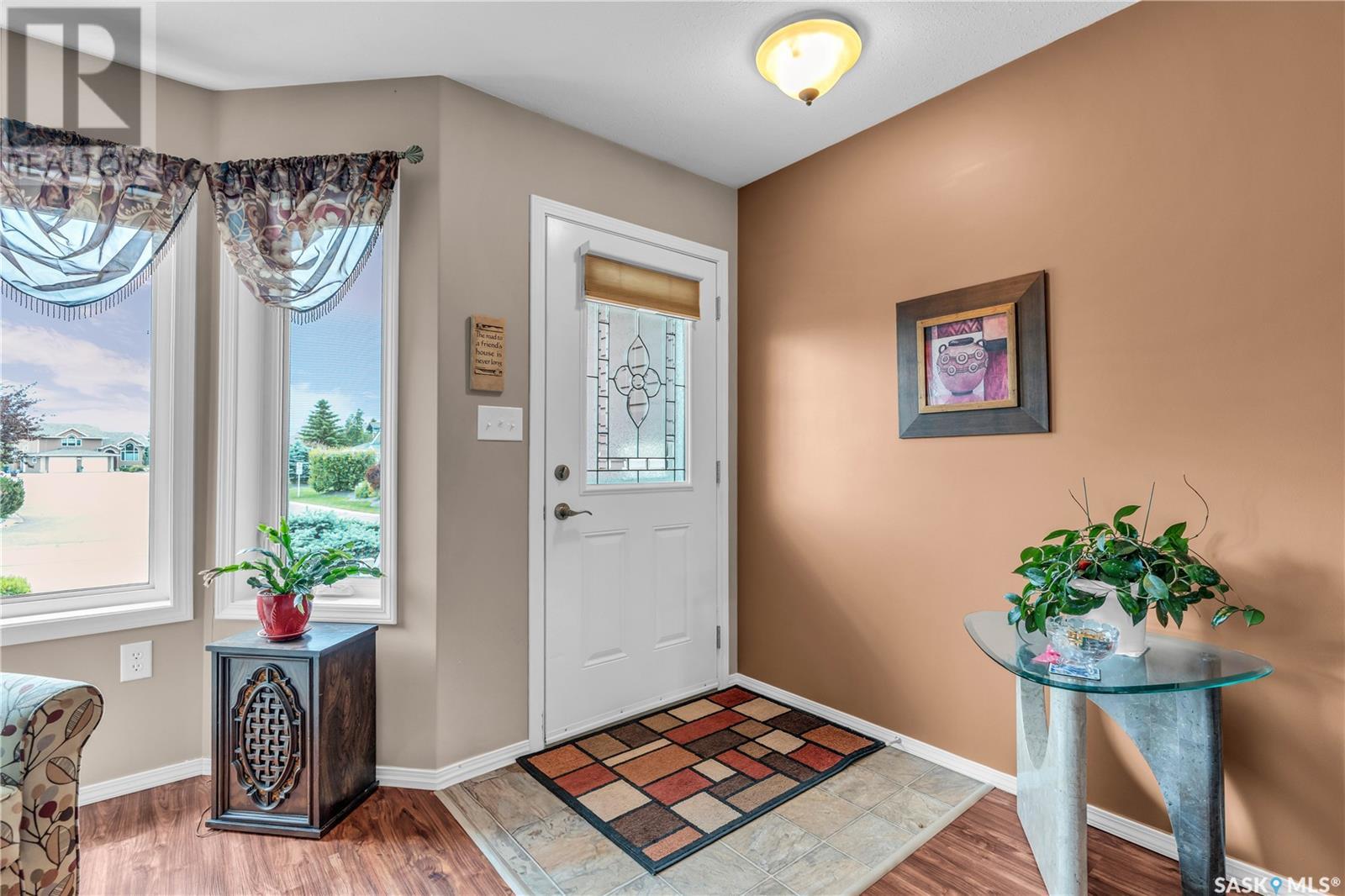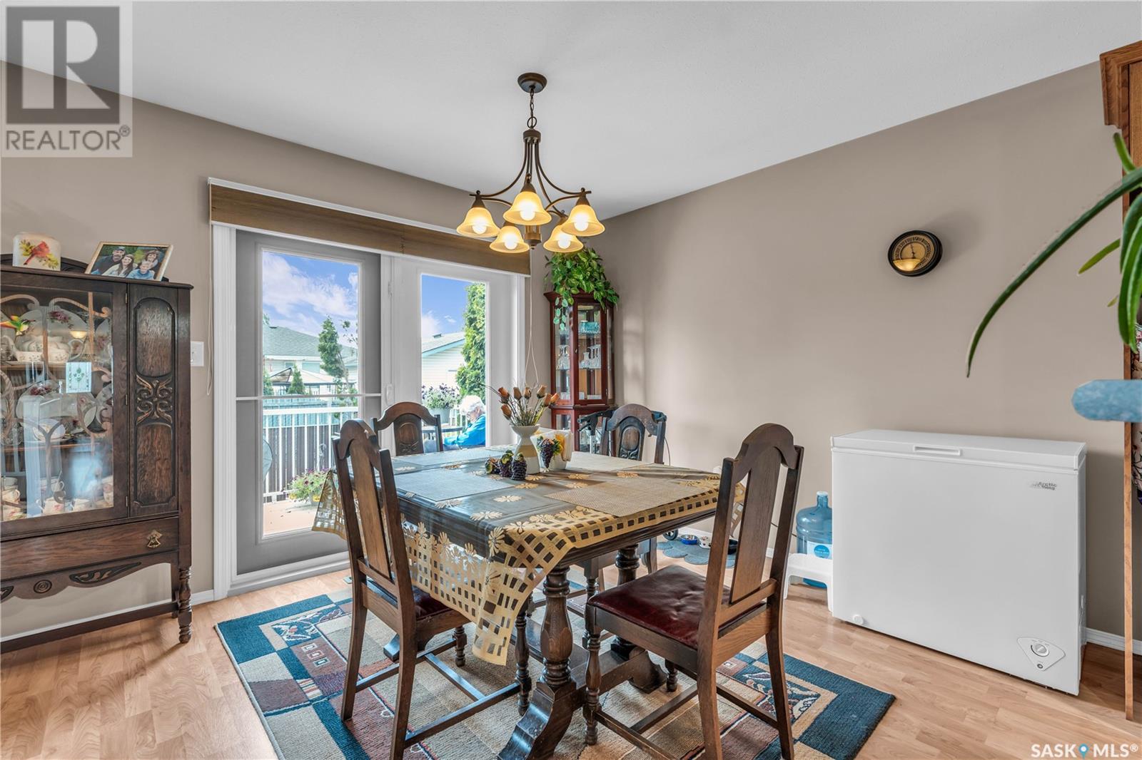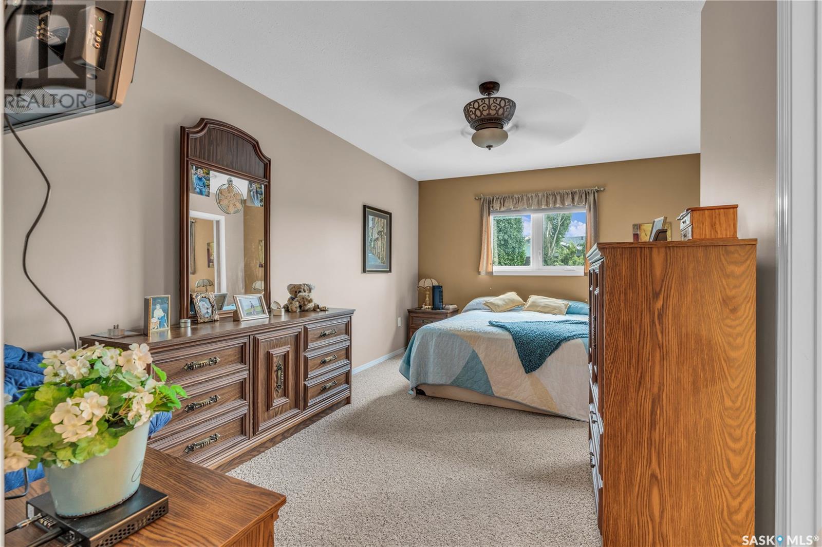 $250 MonthlyThis well-maintained and thoughtfully customized condo is located on a quiet, well-established street in the Town of Battleford. The property offers comfortable and functional living in a prime location, ideal for those looking to downsize without sacrificing space or convenience. The main level features a bright and open layout, with a custom staircase design that sets this unit apart from others in the development. By reversing the stair orientation, the main living area feels more spacious and functional. The large kitchen offers ample cabinetry, updated appliances, and an eat-up island that flows seamlessly into the dining area. From the dining room, step out into a fully landscaped backyard complete with a deck, stone patio, and large storage shed. The home includes main floor laundry, a generous primary suite with a 5-piece ensuite and walk-in closet, and direct entry to an attached garage that’s fully insulated and finished with clean metal walls, great for year-round use, storage, or projects. The fully developed basement offers two additional bedrooms and an abundance of storage space, making this unit an excellent option for those needing extra room for guests, hobbies, or long-term organization. Lovingly cared for and in move-in ready condition, this condo offers low-maintenance living in a quiet, desirable location in Battleford. (id:43042)