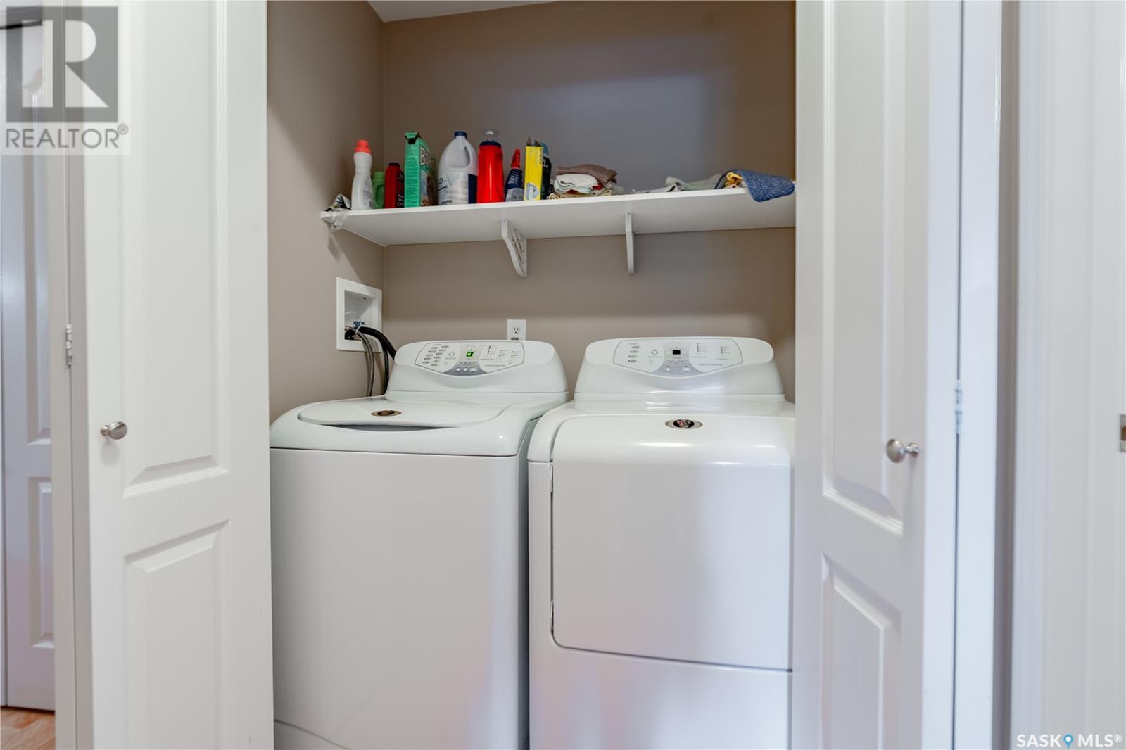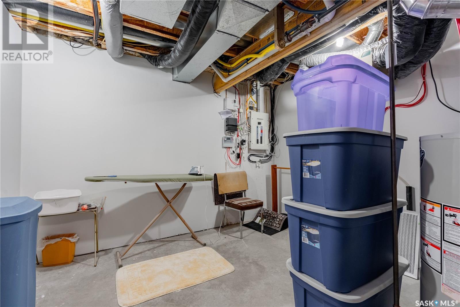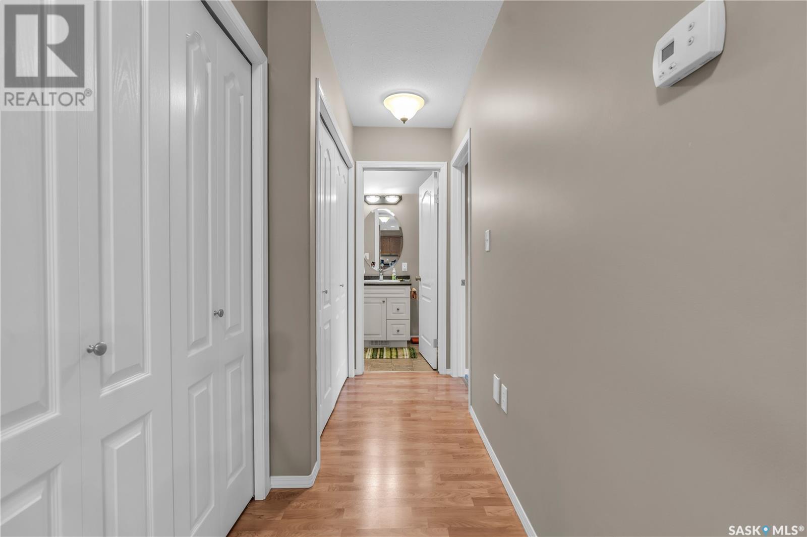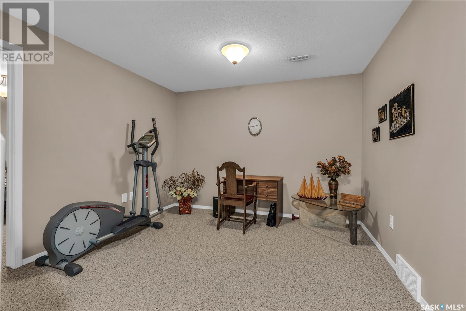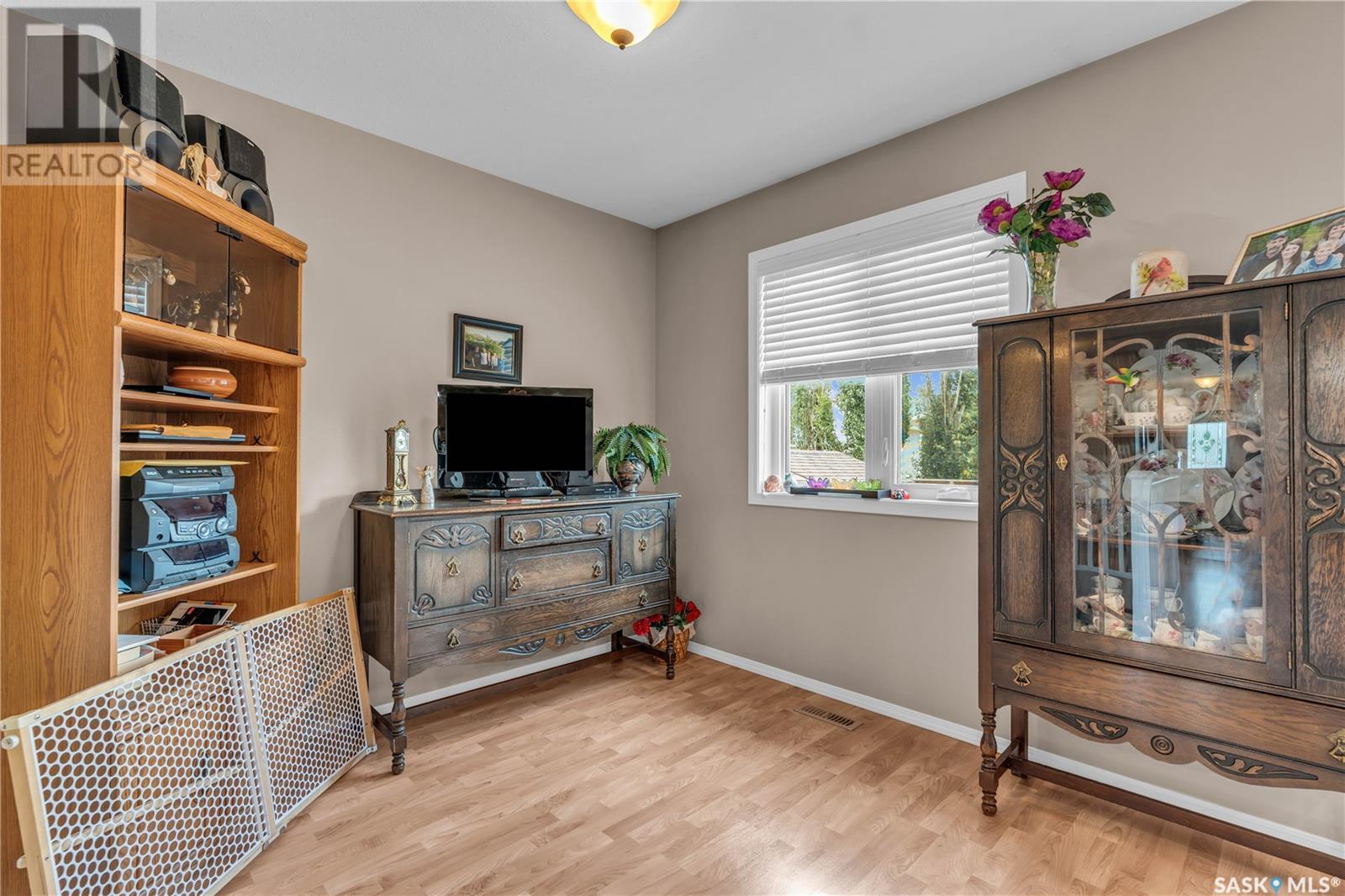 $250 MonthlyThis well-maintained and thoughtfully customized condo is located on a quiet, well-established street in the Town of Battleford. The property offers comfortable and functional living in a prime location, ideal for those looking to downsize without sacrificing space or convenience. The main level features a bright and open layout, with a custom staircase design that sets this unit apart from others in the development. By reversing the stair orientation, the main living area feels more spacious and functional. The large kitchen offers ample cabinetry, updated appliances, and an eat-up island that flows seamlessly into the dining area. From the dining room, step out into a fully landscaped backyard complete with a deck, stone patio, and large storage shed. The home includes main floor laundry, a generous primary suite with a 5-piece ensuite and walk-in closet, and direct entry to an attached garage that’s fully insulated and finished with clean metal walls, great for year-round use, storage, or projects. The fully developed basement offers two additional bedrooms and an abundance of storage space, making this unit an excellent option for those needing extra room for guests, hobbies, or long-term organization. Lovingly cared for and in move-in ready condition, this condo offers low-maintenance living in a quiet, desirable location in Battleford. (id:43042)