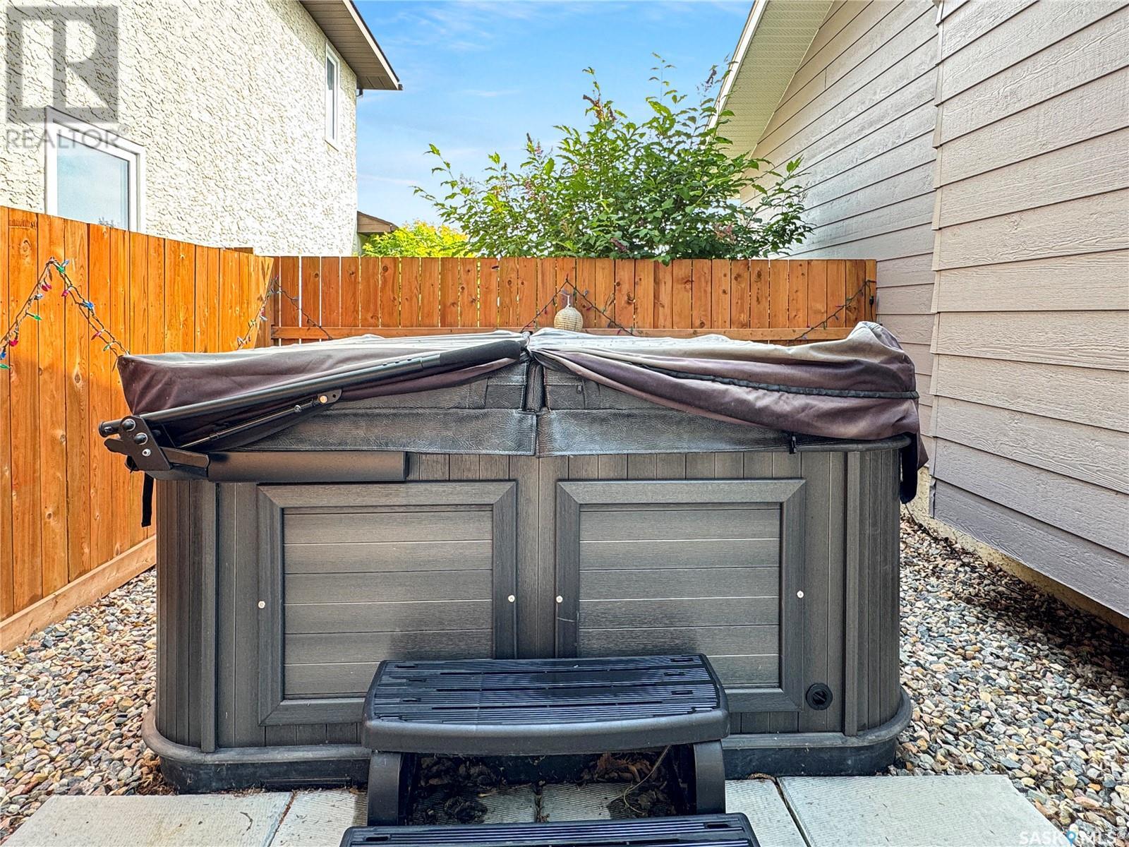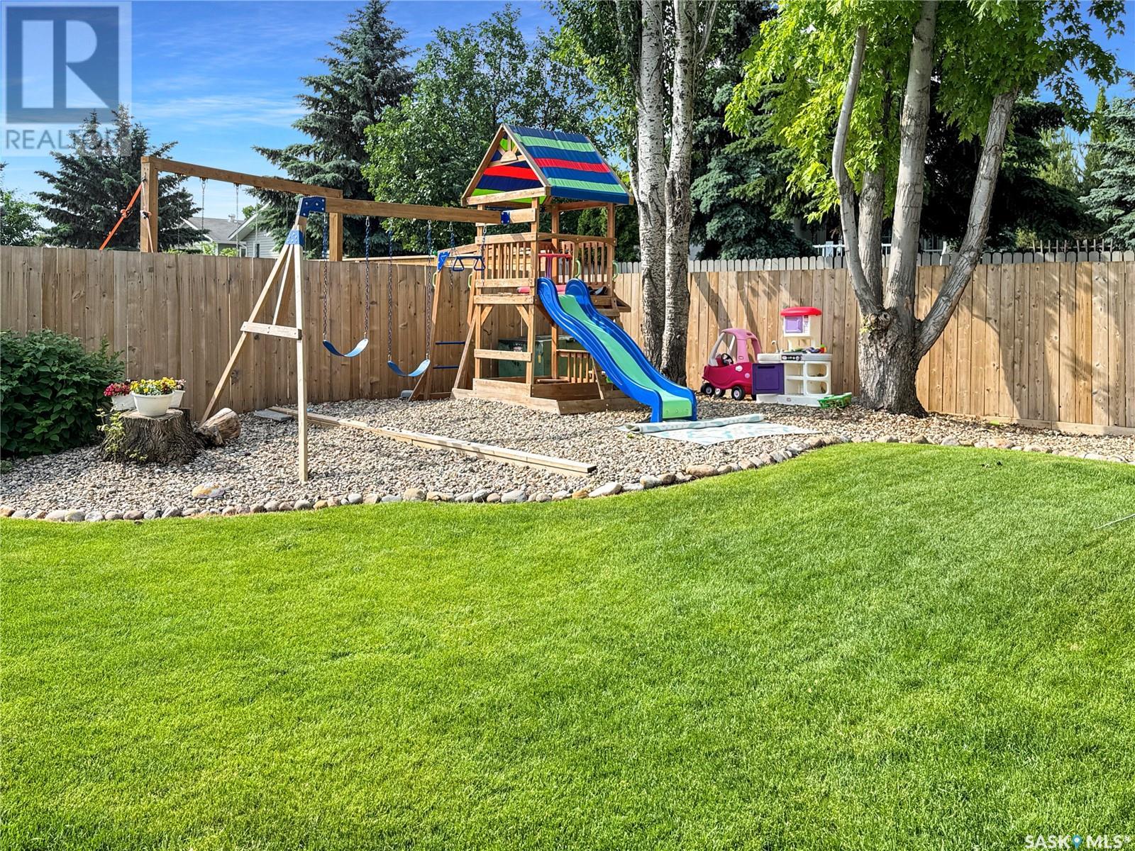 Welcome to this beautifully maintained and renovated 1,347 sq. ft. bungalow, ideally located in a quiet, sought-after neighbourhood in the Town of Battleford. With 4 bedrooms, 3 bathrooms, and a host of modern updates over the years, this move-in-ready home offers space, comfort, and convenience for the whole family. The main floor features a bright and spacious living room with a cozy natural gas fireplace and large windows that flood the space with natural light. The kitchen has been tastefully updated with newer cabinetry, ample counter space, and a view of the landscaped backyard from the sink — perfect for keeping an eye on the kids. The primary bedroom includes a private 3-piece ensuite as well as a walk in closet, and two additional bedrooms and a renovated 4-piece family bathroom complete the main level. Enjoy the convenience of direct entry to a double attached heated garage, ideal for Saskatchewan winters. The fully developed basement offers even more living space with a large family room, a designated recreation area, one bedroom, a 3-piece bathroom, and a generous laundry/flex room. A utility room with extra storage adds further functionality. Step outside to enjoy the private, fully fenced backyard oasis — complete with a deck, patio with hot tub, storage shed, and beautifully finished landscaping. Notable upgrades include: windows, flooring, shingles, soffit & fascia, furnace, hot water tank, interior paint, and more. Don’t miss your chance to own this great home in an amazing location. Call today to schedule your private viewing! (id:43042)
