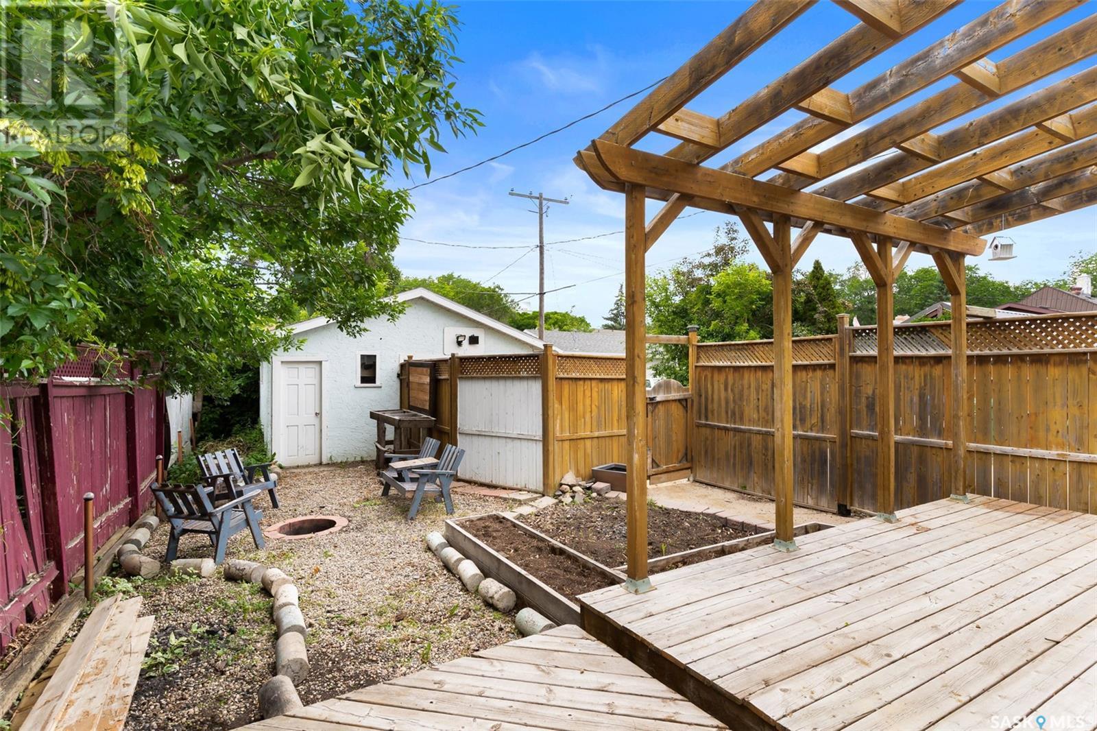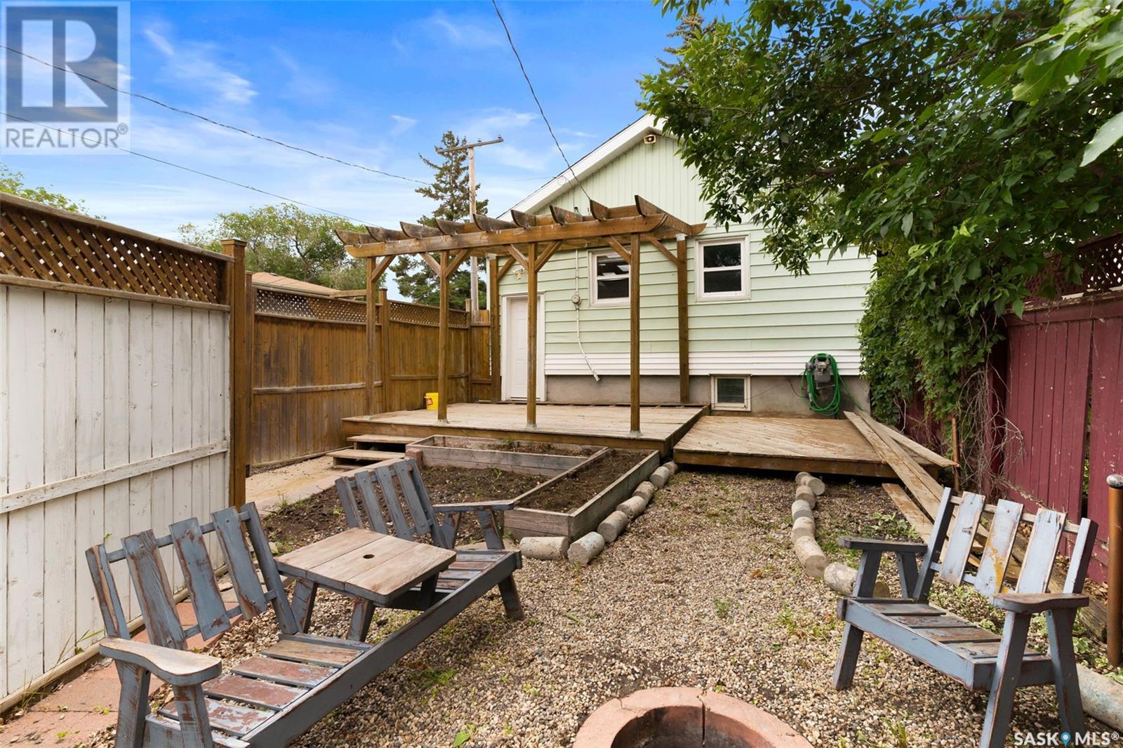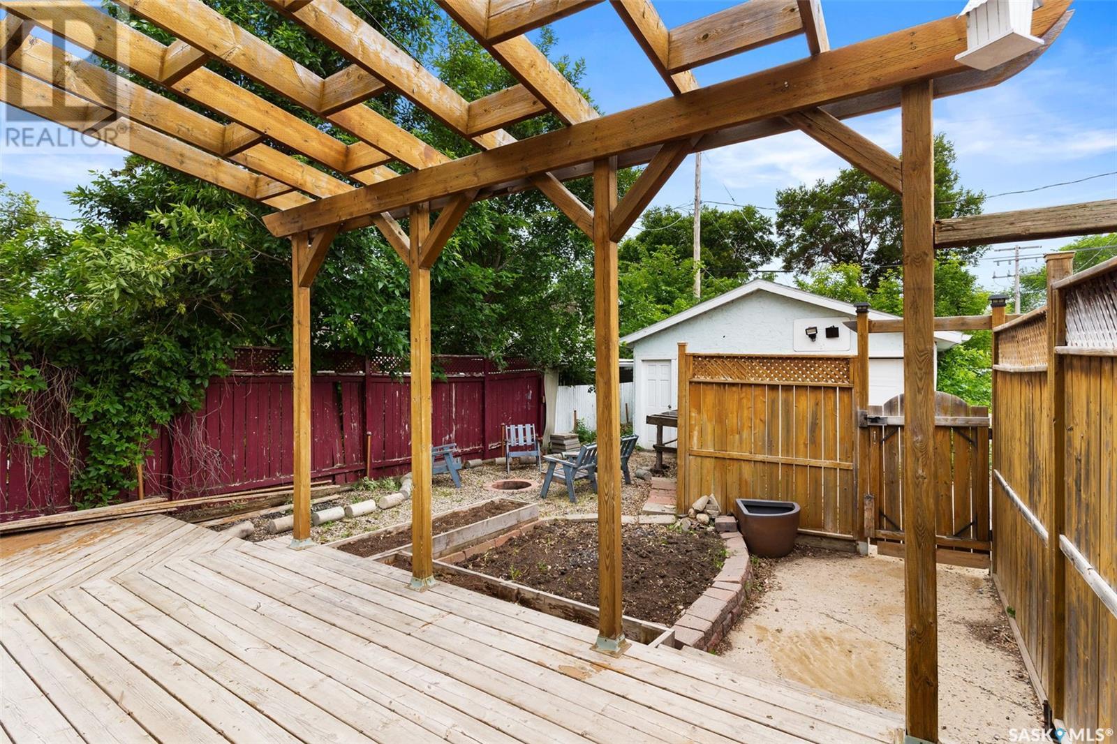 Welcome to 2622 Atkinson Street, a charming and move-in-ready bungalow nestled in the desirable Arnhem Place neighbourhood. Blending vintage character with modern updates, this 3-bedroom, 2-bathroom home also features a fully developed basement with a non-regulation suite—perfect for added living space or income potential. Step into a bright and welcoming front entry with ceramic tile flooring and built-in hooks for added convenience. The main living room is filled with natural light thanks to a large picture window, and is finished with updated vinyl plank flooring and a fresh neutral palette. The galley-style kitchen is both functional and stylish, offering white cabinetry, stainless steel fridge, tile backsplash, and a ceiling fan. A rough-in for a built-in dishwasher adds future value and flexibility. Two cozy bedrooms and a beautifully updated 4-piece bath round out the main floor, with the bath featuring rustic wood accents and a concrete vanity top that adds a modern touch of warmth. The basement offers even more versatility, with a spacious rec room, second kitchen area, a third bedroom, and an additional 3-piece bath with tiled shower. It's ideal for guests, a roommate, or a mortgage helper. Outside, the fully fenced backyard is designed for both function and relaxation—complete with a large wood deck and pergola, garden beds, a firepit area, and a detached single oversized garage with alley access. Located just minutes from downtown, Wascana Park, schools, and amenities, this home is perfect for first-time buyers, downsizers, or investors seeking great value in a prime location! (id:43042)