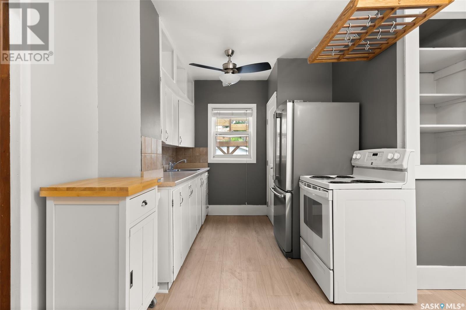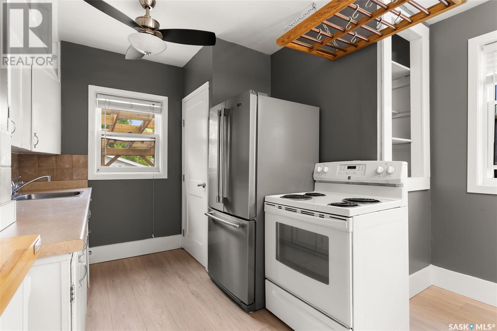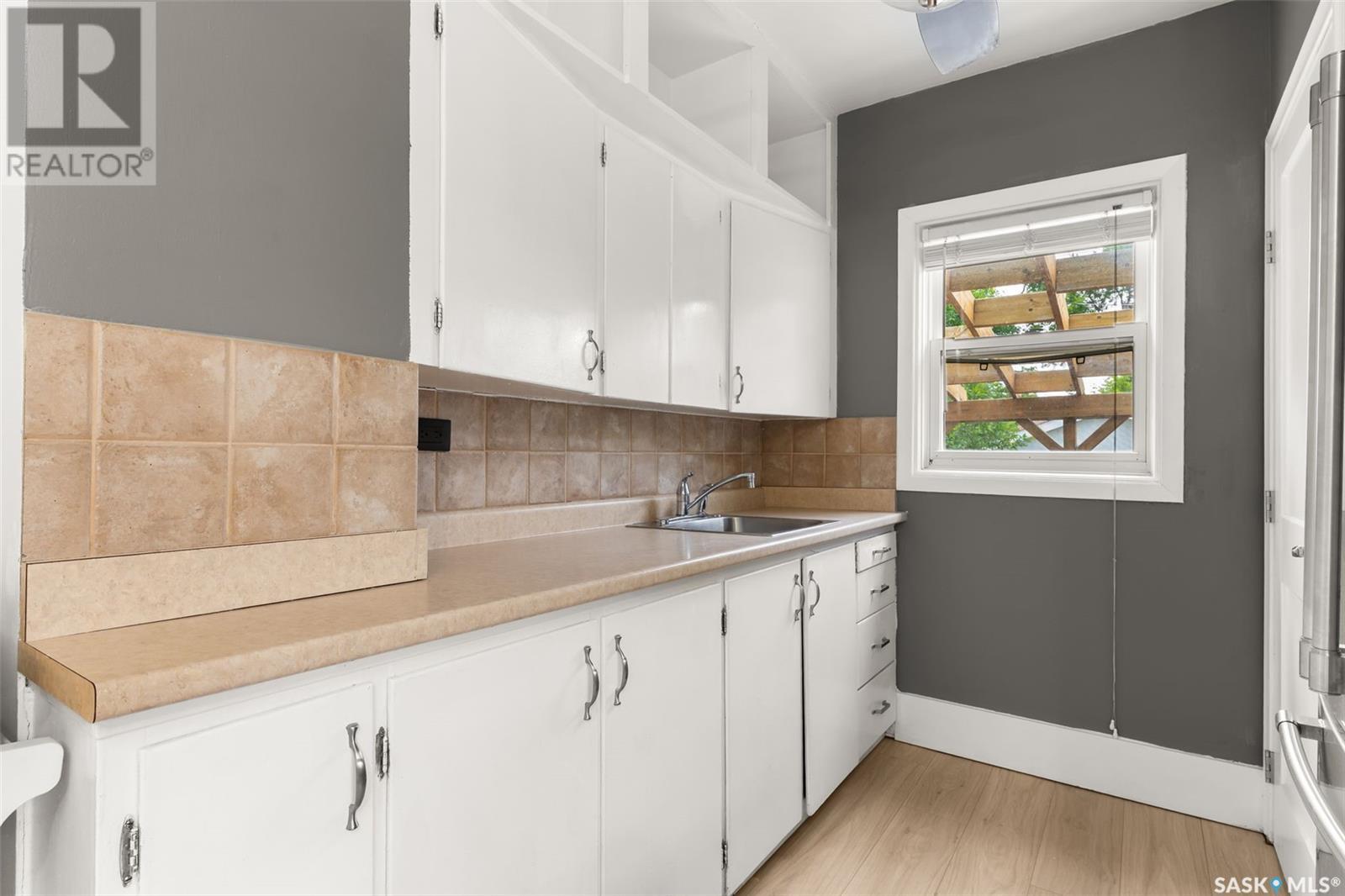 Welcome to 2622 Atkinson Street, a charming and move-in-ready bungalow nestled in the desirable Arnhem Place neighbourhood. Blending vintage character with modern updates, this 3-bedroom, 2-bathroom home also features a fully developed basement with a non-regulation suite—perfect for added living space or income potential. Step into a bright and welcoming front entry with ceramic tile flooring and built-in hooks for added convenience. The main living room is filled with natural light thanks to a large picture window, and is finished with updated vinyl plank flooring and a fresh neutral palette. The galley-style kitchen is both functional and stylish, offering white cabinetry, stainless steel fridge, tile backsplash, and a ceiling fan. A rough-in for a built-in dishwasher adds future value and flexibility. Two cozy bedrooms and a beautifully updated 4-piece bath round out the main floor, with the bath featuring rustic wood accents and a concrete vanity top that adds a modern touch of warmth. The basement offers even more versatility, with a spacious rec room, second kitchen area, a third bedroom, and an additional 3-piece bath with tiled shower. It's ideal for guests, a roommate, or a mortgage helper. Outside, the fully fenced backyard is designed for both function and relaxation—complete with a large wood deck and pergola, garden beds, a firepit area, and a detached single oversized garage with alley access. Located just minutes from downtown, Wascana Park, schools, and amenities, this home is perfect for first-time buyers, downsizers, or investors seeking great value in a prime location! (id:43042)