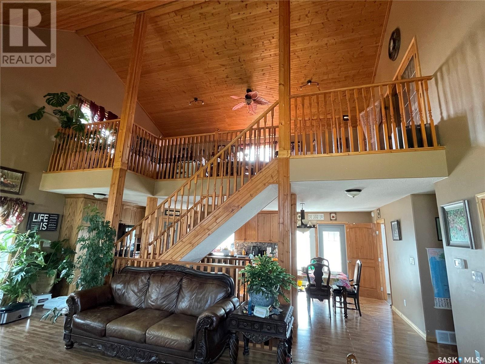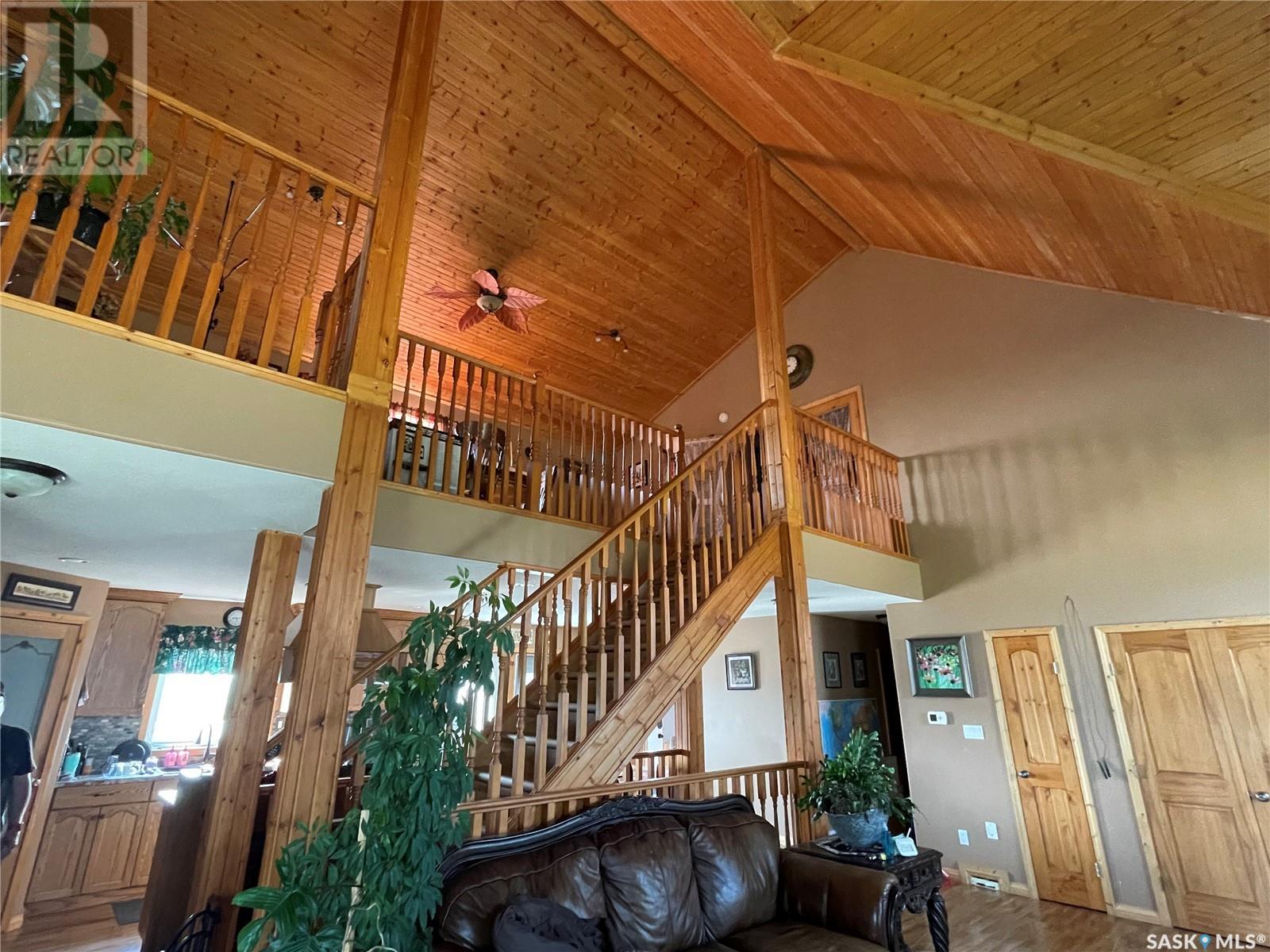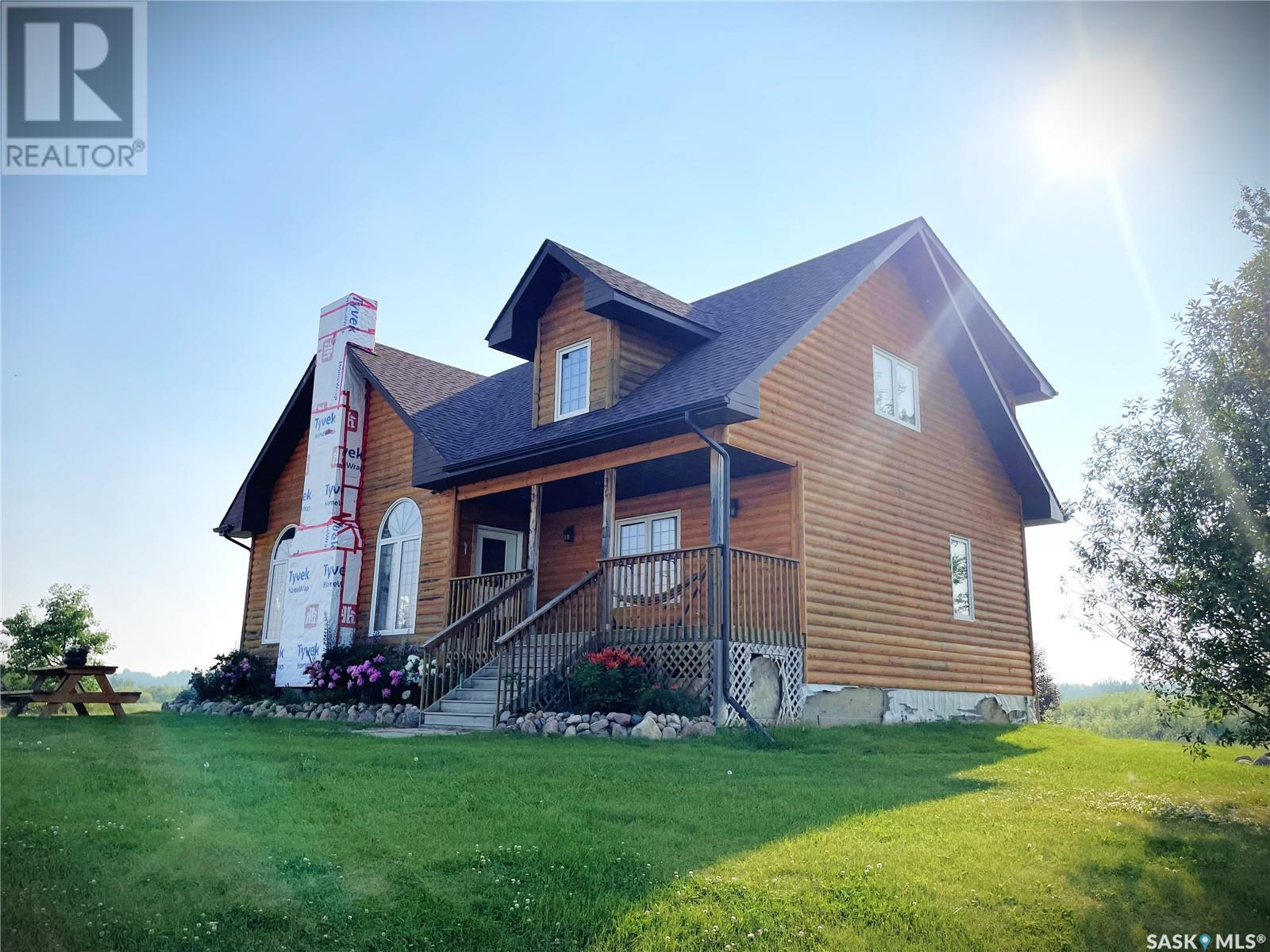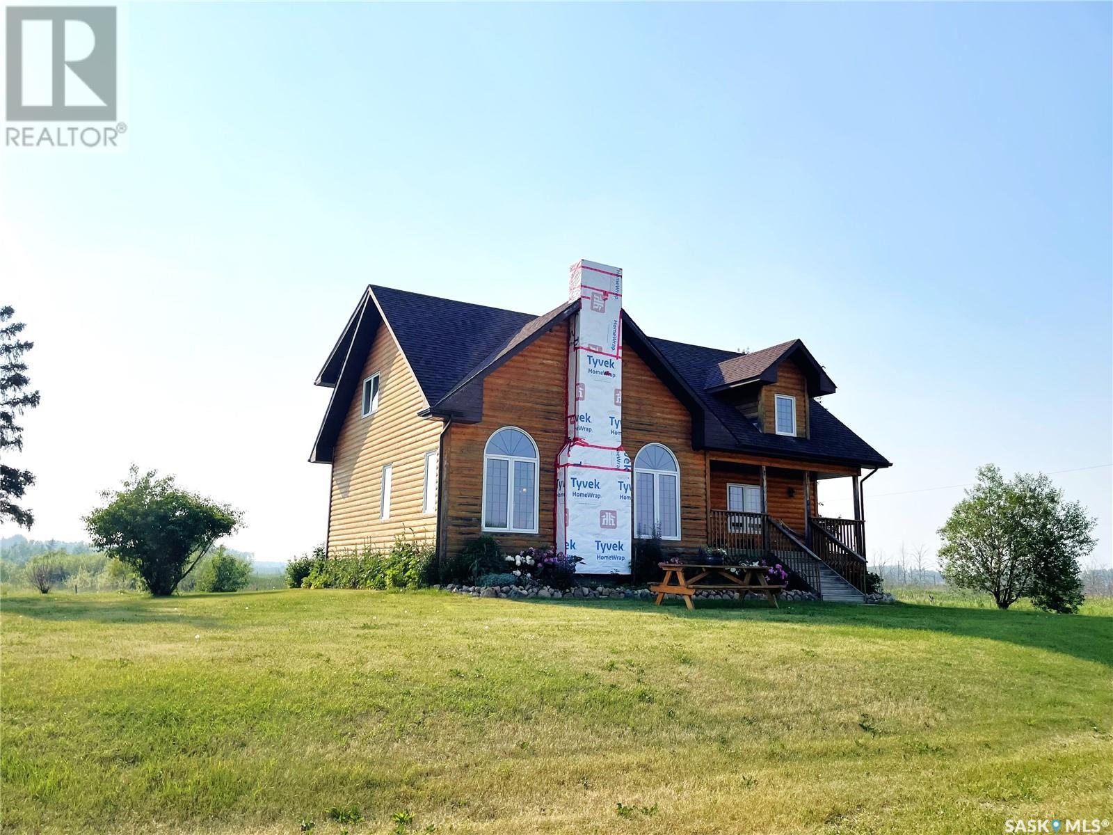 Take a look at this picturesque 1 and 3/4 storey home situated on 24.9 acres adjacent to Hwy 55 and only 20 mins East of Meadow Lake. It has 2252 sq. ft. on the main floor and upstairs plus a fully finished basement. 5 bedrooms, 3 full bathrooms, main floor laundry, beautiful kitchen with large corner pantry, and spacious living room with gorgeous ceilings open to the 2nd level. Upstairs you will find the primary bedroom of your dreams with vaulted ceilings, large walk-in closet and 4pc ensuite with soaker tub. Adjoining this is a large study/office area. The basement hosts a family room with bar area, 2 good sized bedrooms, 5pc bathroom plus a large storage room, all with 9' ceilings. This home is heated and cooled with forced air geothermal energy. Out buildings include a 12' x 14' barn shed plus a 9' x 10' shed currently being used for chickens, and if you have a green thumb you will love the 6' x 8' greenhouse. The 36' x 60' shop will give you all the room you need to store your RV, boat, recreational vehicles, or heavy equipment. It is also plumbed for geothermal if you are wanting to add it in the future. This is definitely one to look at! (id:43042)