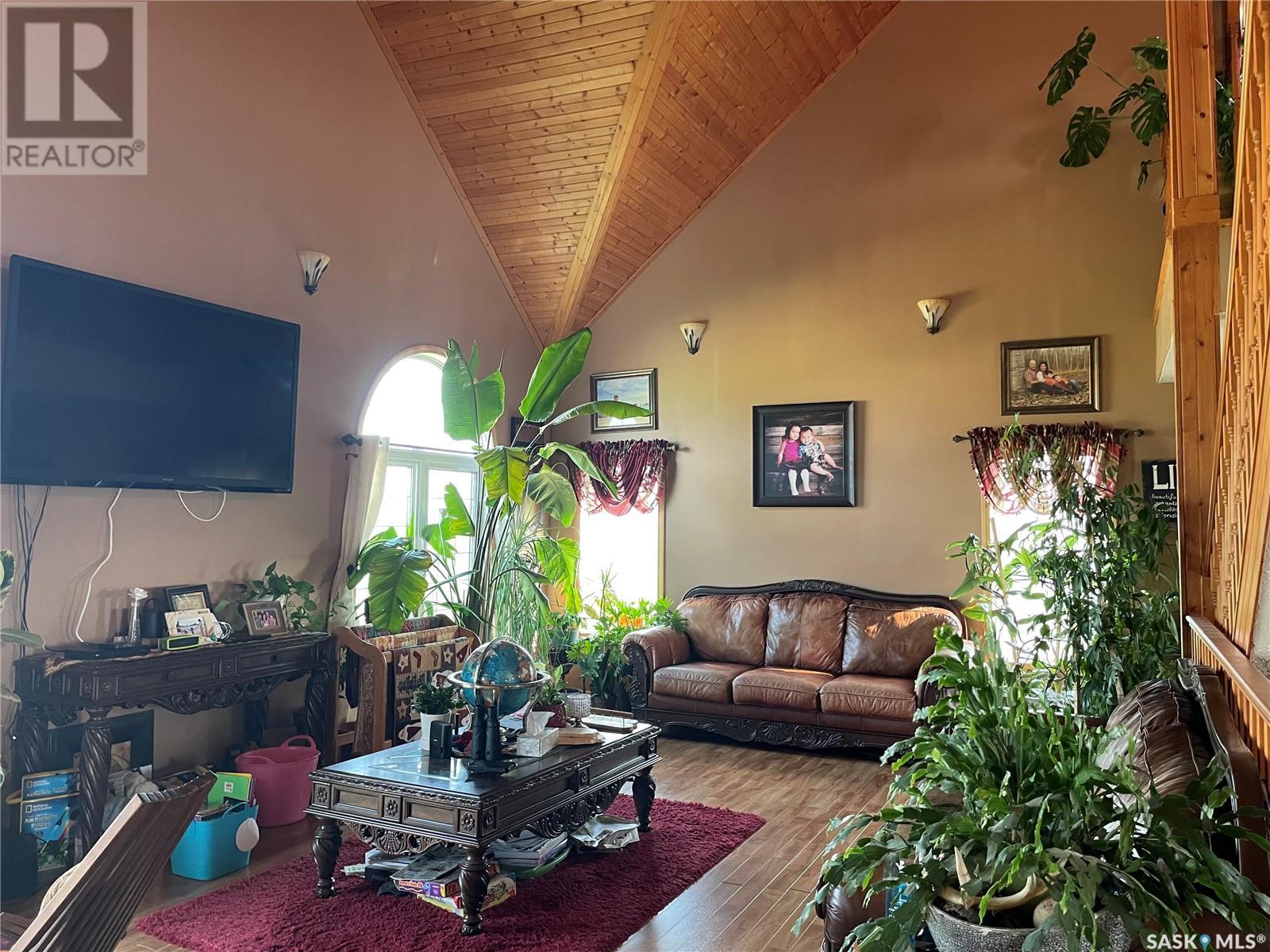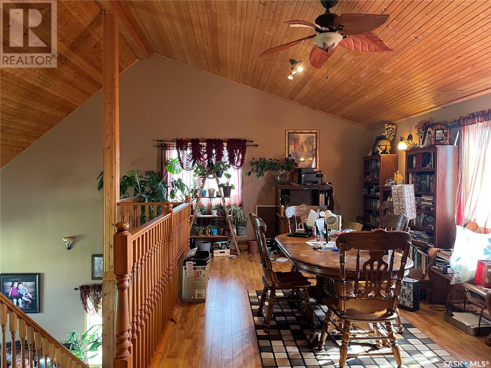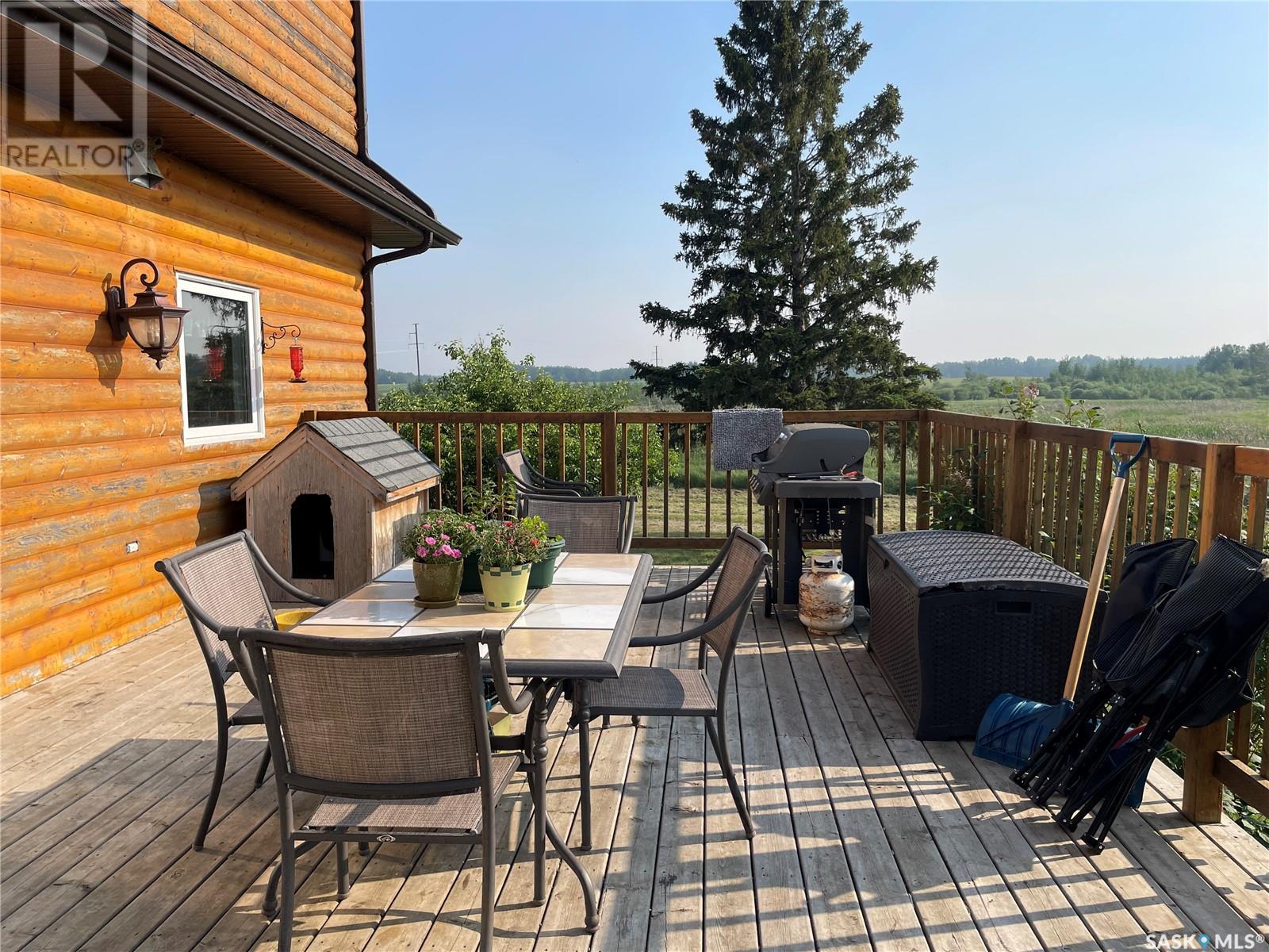Take a look at this picturesque 1 and 3/4 storey home situated on 24.9 acres adjacent to Hwy 55 and only 20 mins East of Meadow Lake. It has 2252 sq. ft. on the main floor and upstairs plus a fully finished basement. 5 bedrooms, 3 full bathrooms, main floor laundry, beautiful kitchen with large corner pantry, and spacious living room with gorgeous ceilings open to the 2nd level. Upstairs you will find the primary bedroom of your dreams with vaulted ceilings, large walk-in closet and 4pc ensuite with soaker tub. Adjoining this is a large study/office area. The basement hosts a family room with bar area, 2 good sized bedrooms, 5pc bathroom plus a large storage room, all with 9' ceilings. This home is heated and cooled with forced air geothermal energy. Out buildings include a 12' x 14' barn shed plus a 9' x 10' shed currently being used for chickens, and if you have a green thumb you will love the 6' x 8' greenhouse. The 36' x 60' shop will give you all the room you need to store your RV, boat, recreational vehicles, or heavy equipment. It is also plumbed for geothermal if you are wanting to add it in the future. This is definitely one to look at! (id:43042)