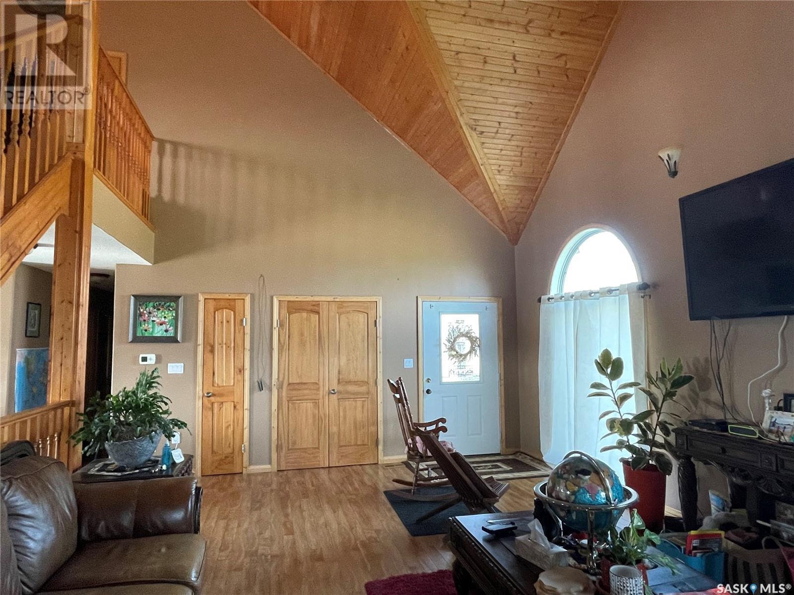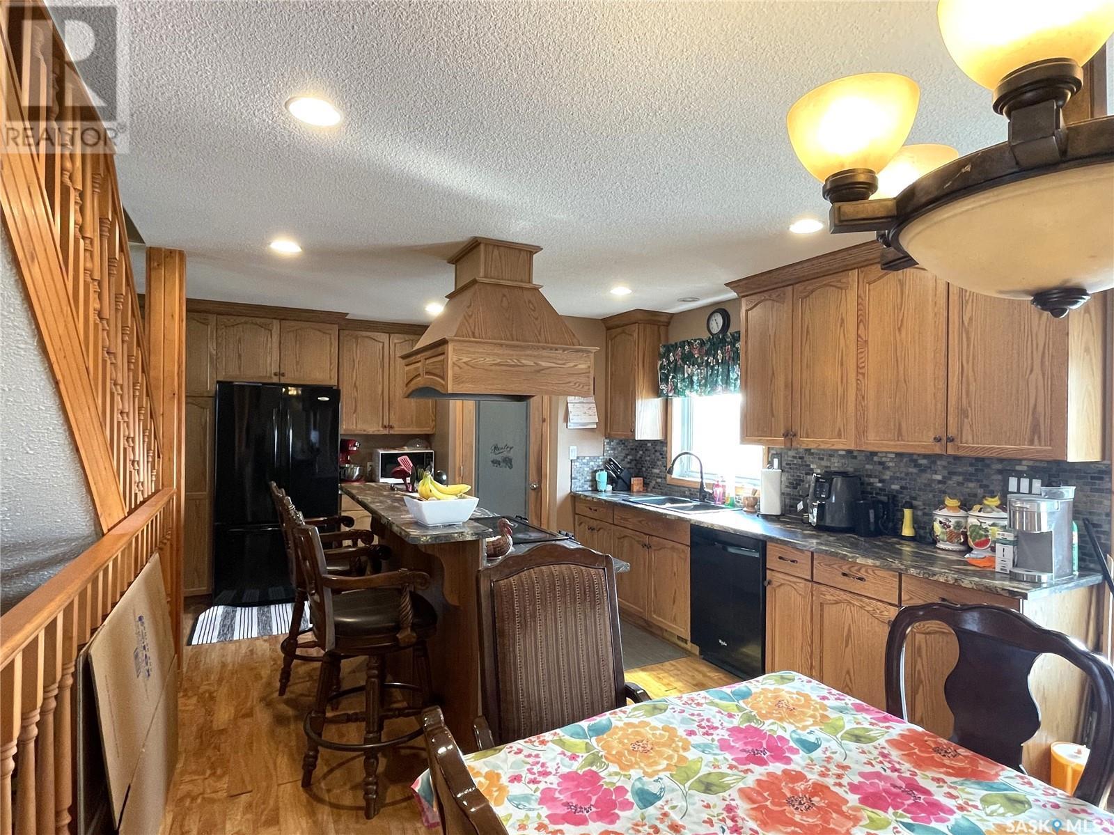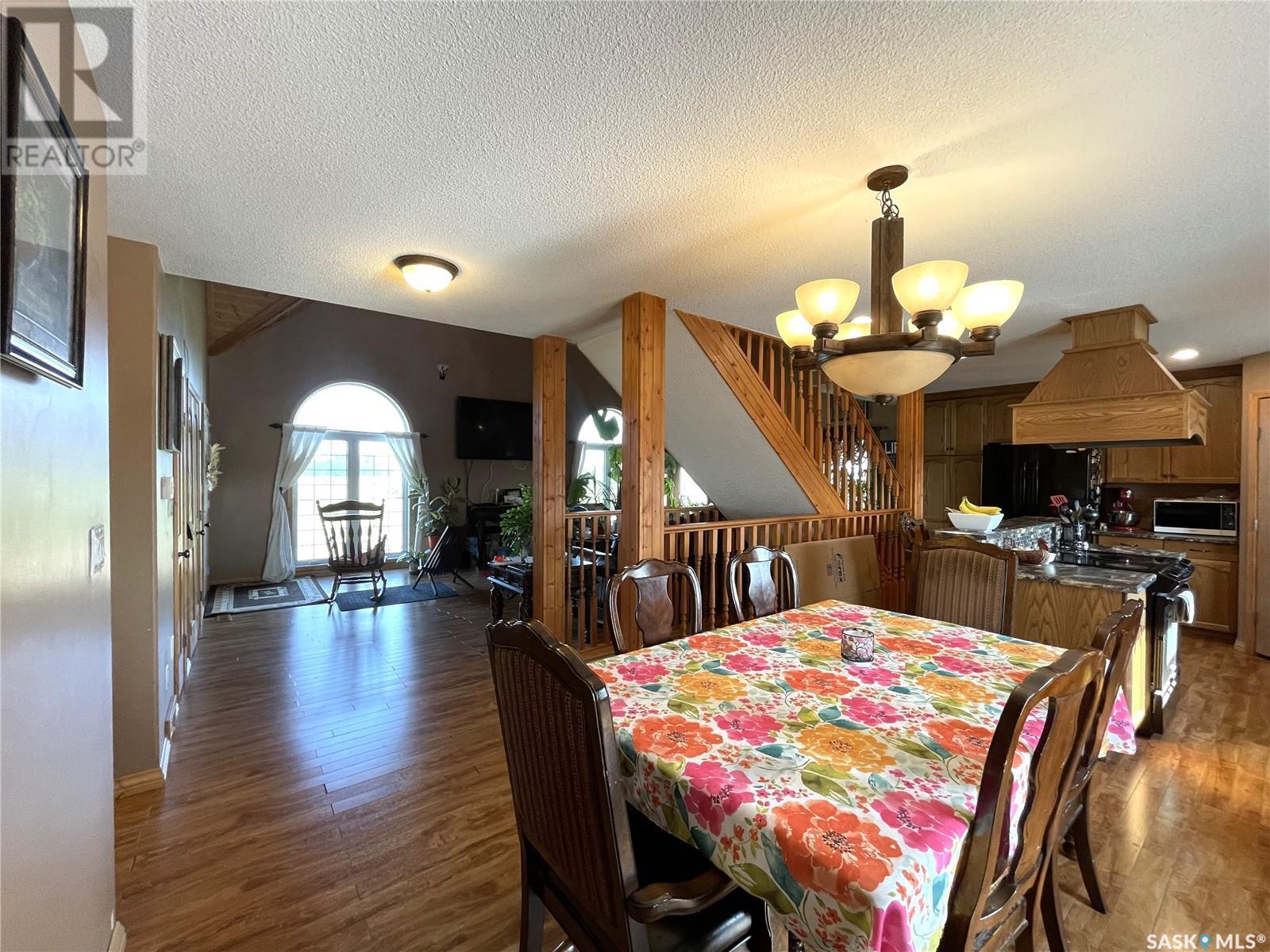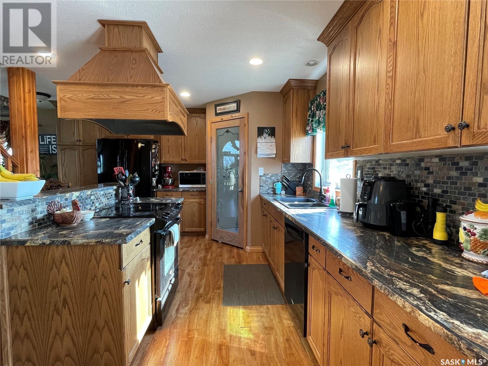 Take a look at this picturesque 1 and 3/4 storey home situated on 24.9 acres adjacent to Hwy 55 and only 20 mins East of Meadow Lake. It has 2252 sq. ft. on the main floor and upstairs plus a fully finished basement. 5 bedrooms, 3 full bathrooms, main floor laundry, beautiful kitchen with large corner pantry, and spacious living room with gorgeous ceilings open to the 2nd level. Upstairs you will find the primary bedroom of your dreams with vaulted ceilings, large walk-in closet and 4pc ensuite with soaker tub. Adjoining this is a large study/office area. The basement hosts a family room with bar area, 2 good sized bedrooms, 5pc bathroom plus a large storage room, all with 9' ceilings. This home is heated and cooled with forced air geothermal energy. Out buildings include a 12' x 14' barn shed plus a 9' x 10' shed currently being used for chickens, and if you have a green thumb you will love the 6' x 8' greenhouse. The 36' x 60' shop will give you all the room you need to store your RV, boat, recreational vehicles, or heavy equipment. It is also plumbed for geothermal if you are wanting to add it in the future. This is definitely one to look at! (id:43042)