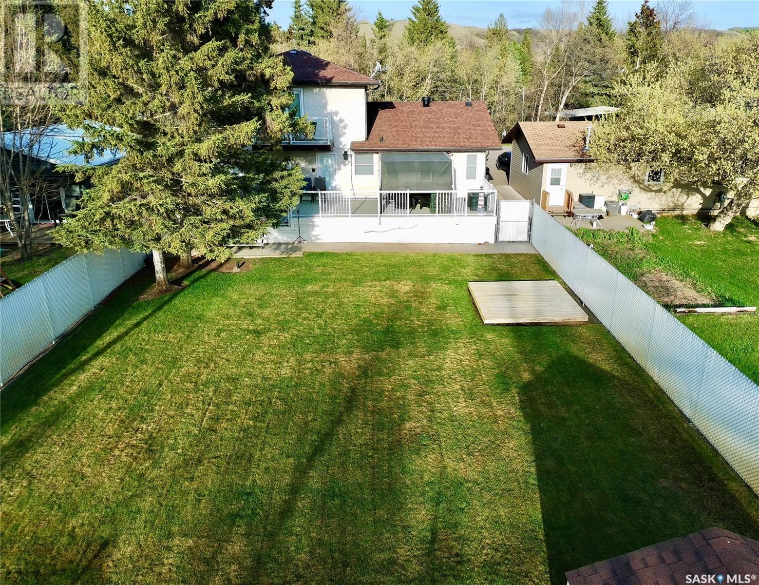 Imagine waking up to the sound of birds chirping and the gentle rustle of leaves, then heading out for a morning swim or round of golf. It's like living in a vacation resort, but without the check-out time. Located in the beachy Village of Katepwa just steps away from, Rocco's store, Main Beach Bar and Provincial Park with its long stretch of beach, park, boat launch, picnic areas, and disc golf. Two golf courses within a short golf cart cruise away and the TransCanada Trail spans along the 56 highway. The well maintained home boasts multiple chill out zones, including a front patio with a covered space near the entrance, a master bedroom balcony, deck accessible from the kitchen and living room and a ground level deck in the giant, fully fenced back yard. Also included are the she and he sheds. The deck offers enclosed storage with partial cement pad. Back double gate swings open from the laneway to park all your toys; there's enough space here to park a small fleet of boats, RVs or spaceship. Since owning the property, the seller has done more upgrades than you can shake a stick at, including: deck rails, plywood and dura deck covering, shingles and eaves, a backyard fence compliant with the survey certificate obtained by the seller, both sheds, sidewalk resurfacing, backup generator plug installation, water heater, double door and single doors that access the deck and front exterior doors, sump pump, air conditioning, flooring, windows, complete full main and second floor bathroom renovations, interior paint job, blinds throughout, trim and baseboards, interior doors, and sump pump. The home features numerous windows, flooding the space with natural light and bringing the beauty of the outdoors inside, minus the dirt, feathers, and fur. School bus service to Indian Head schools, full service towns of Indian Head and Fort Qu’Appelle are each approx. a 20 minute drive. Seller is moving overseas, so almost all items in the home could be yours, if the price is right. (id:43042)
