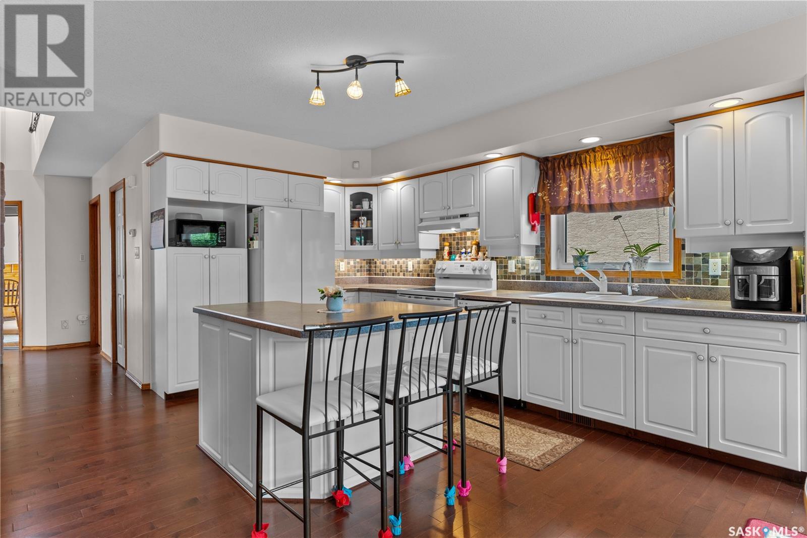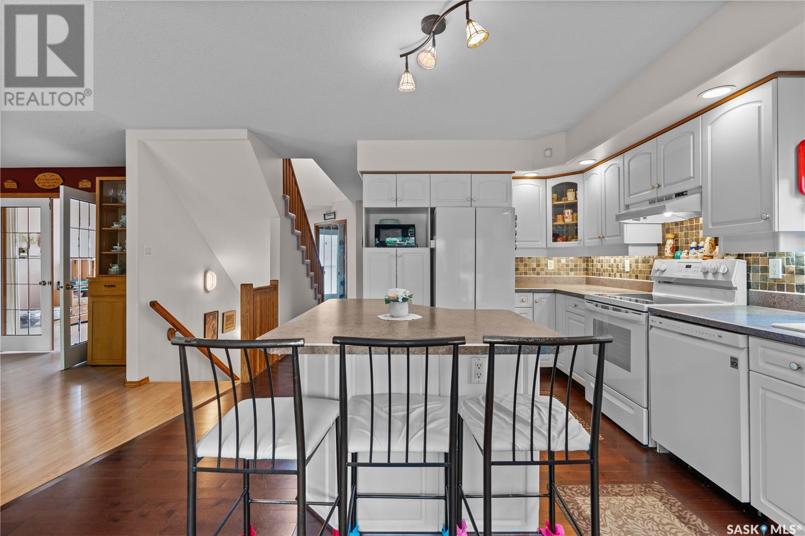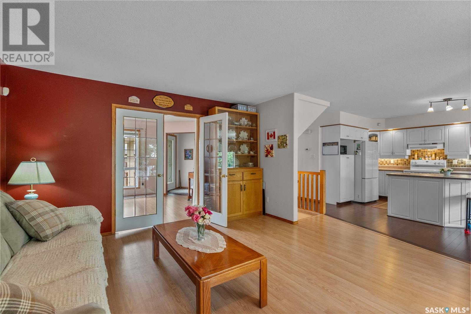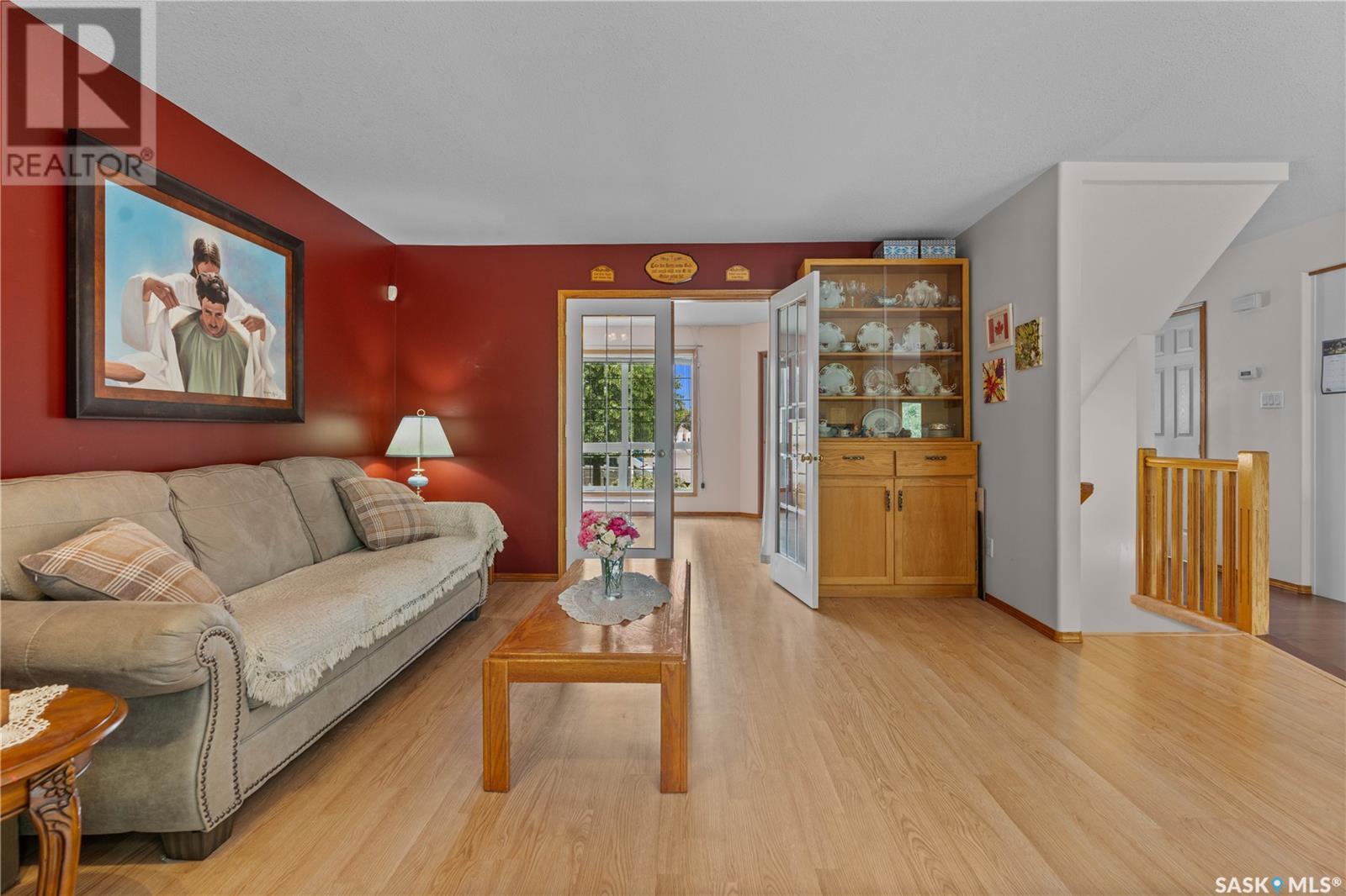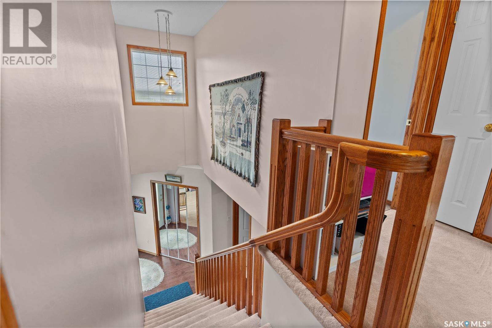 This 1700 Sq ft home offers the following: kitchen, dining, and living rooms are open to each other with abundant natural light from the large east facing windows that provide a view of the back yard. The Living room features a gas fireplace and French doors leading to the front sitting room/office. Main floor laundry and 1/2 bath complete the main level. The 2nd story hosts the master suite complete with 4 piece ensuite bathroom, and spacious walk-in closet, main 4 piece bathroom, and two additional bedrooms. The basement has a large finished rec room, and bedroom. From the dining area access the maintenance free tiered deck and backyard that has an apple tree and two ornamental pair trees. The attached 21'X21' garage provides space for two vehicles plus storage. E & O.E. (id:43042)