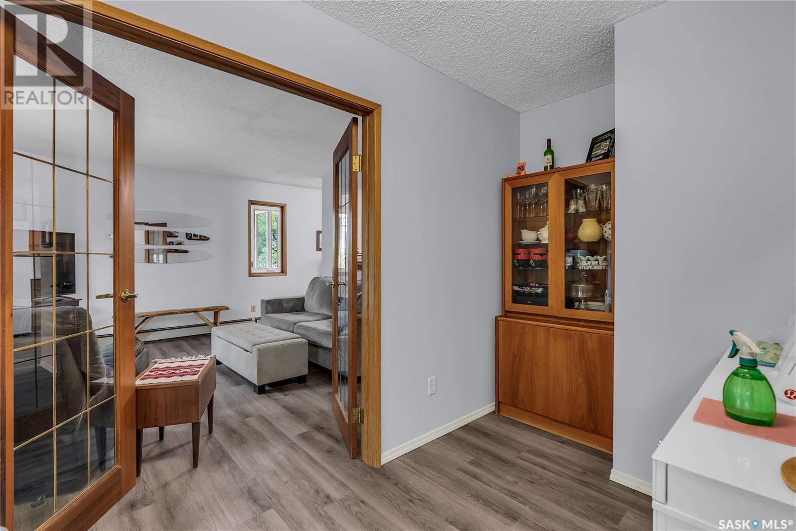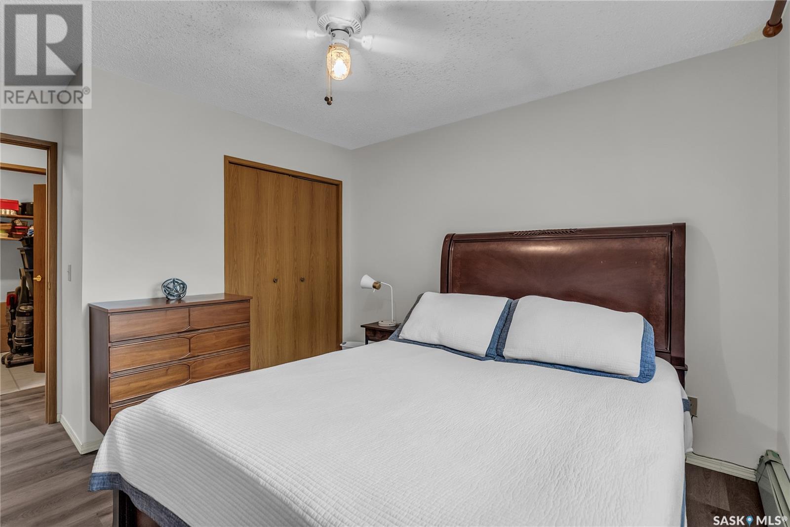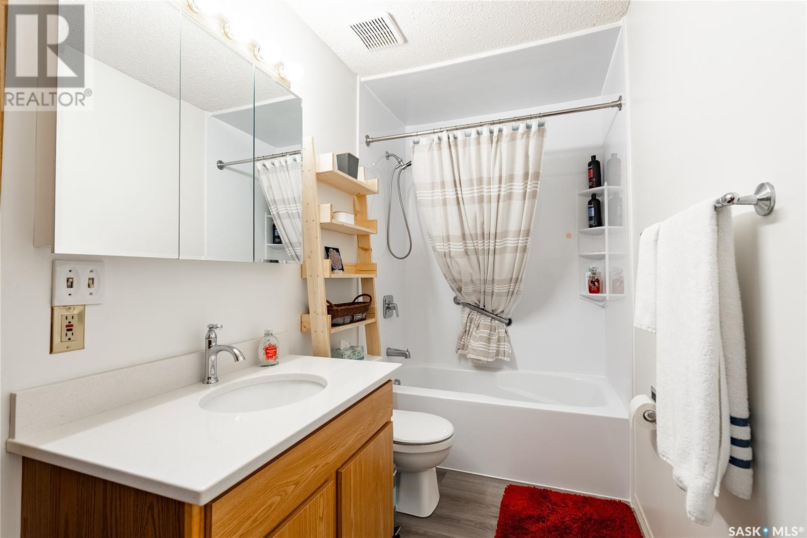 Located in the desirable Varsity View neighborhood, this nicely updated and spotlessly clean top-floor corner condo at 302 – 1006 9th Street East offers an inviting and spacious living area just minutes from the University of Saskatchewan. The open concept layout features a large living room with patio door leading to a private balcony, and just off the living room are garden doors to a versatile den, ideal for use as an office or extra bedroom. The bright, modern kitchen boasts newer quartz counter tops, a vented hood fan, appliances, and a generous eating area. The sizable master bedroom sits next to a full bathroom with a recent newer Bath Fitter tub surround and quartz vanity top. Additional highlights include in-suite laundry with plenty of storage, many recent upgrades such as vinyl plank flooring, paint, lighting, plumbing, and an air conditioner. The building offers convenient amenities like underground parking, an elevator, and visitor parking and its prime location provides easy access to the U of S, parks, shopping, the Broadway district, public transit and all conveniences, making it a perfect place to call home. (id:43042)