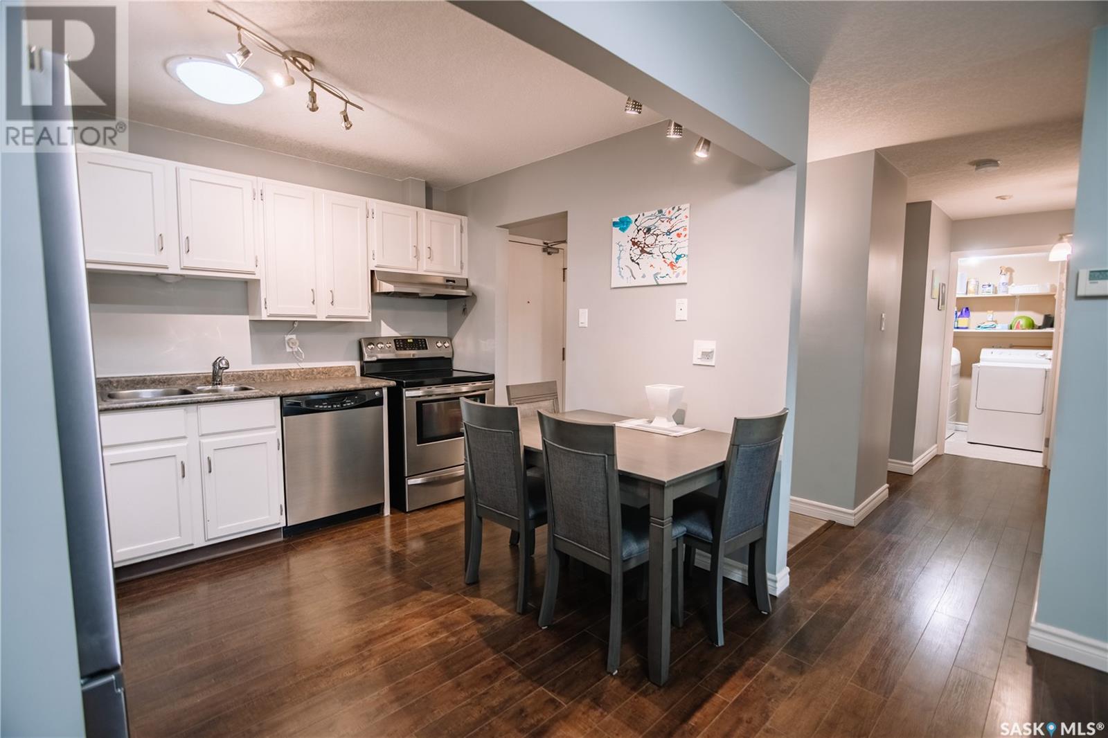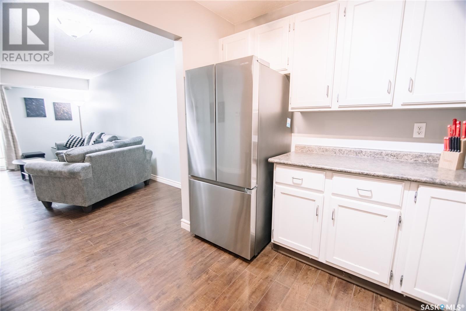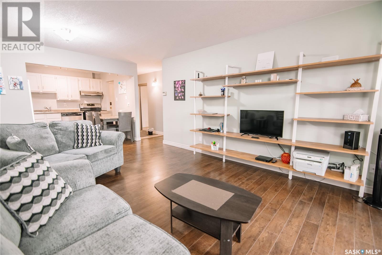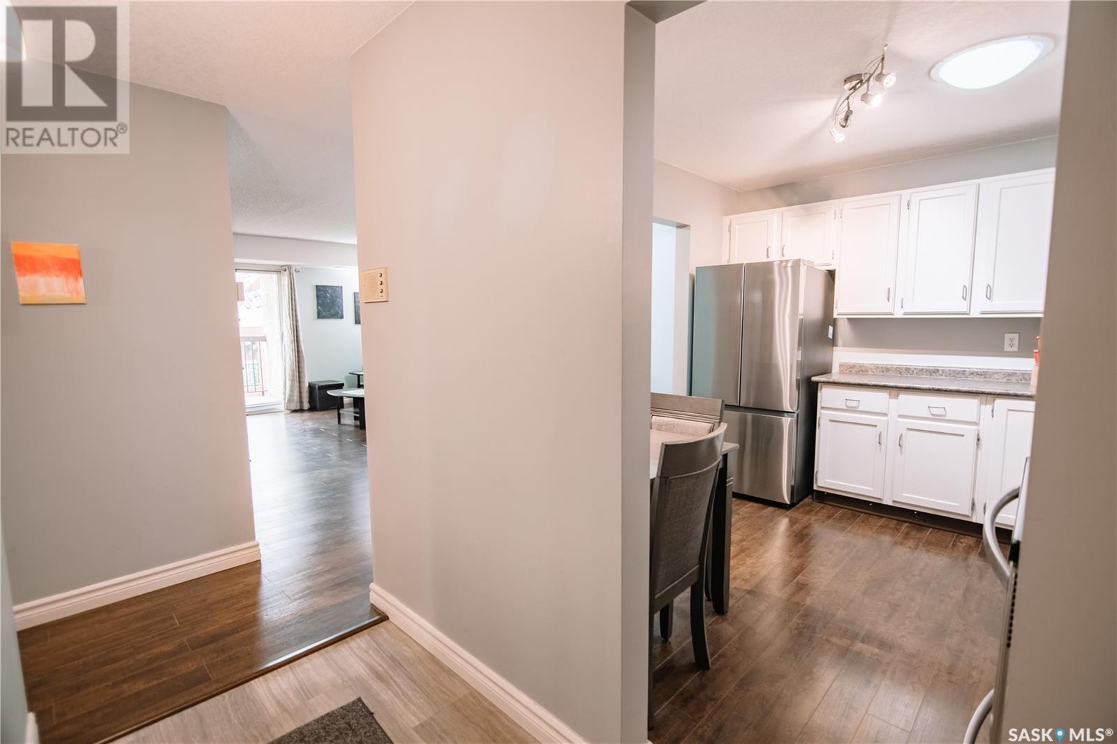 Discover this spacious top-floor, east-facing condo ideally situated within walking distance to Wascana Park, the Saskatchewan Legislature, downtown Regina, and City Hall—offering the perfect blend of convenience and neighborhood charm. This well-maintained two bedroom one bathroom apartment style condo features a bright and airy living room with large east-facing windows, flooding the space with natural light. Step out onto the generous 20' x 6' balcony to enjoy your morning coffee or unwind while taking in views of the city. The open-concept design seamlessly connects the kitchen, dining, and living areas, all adorned with upgraded laminate flooring throughout for a modern touch. The kitchen boasts functional space ideal for entertaining or casual meals, complemented by a contemporary bathroom equipped with an upgraded BathFitter tub, granite countertop vanity, and fresh vinyl tile flooring. Two spacious bedrooms provide comfortable retreats, while the central air and natural gas furnace in the utility room ensure year-round comfort. The condo also includes a heated underground parking stall and a large storage room off the opposite end of the balcony for additional convenience. Monthly condo fees cover water, sewer, garbage collection, reserve fund contributions, insurance (common areas), general maintenance, snow removal, lawn care, and exterior building upkeep—offering peace of mind and hassle-free living. Don't miss the opportunity to make this wonderful condo your new home in Regina! (id:43042)