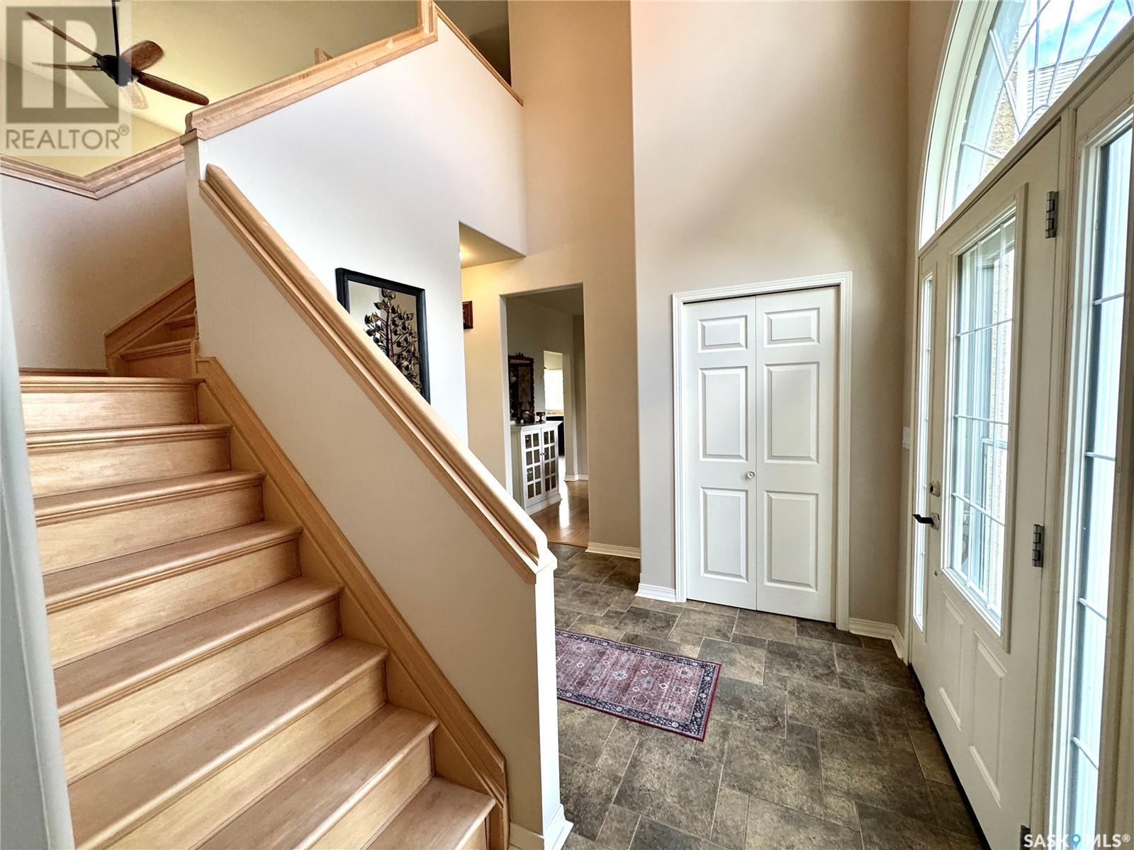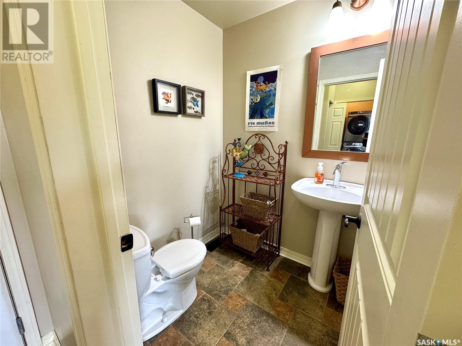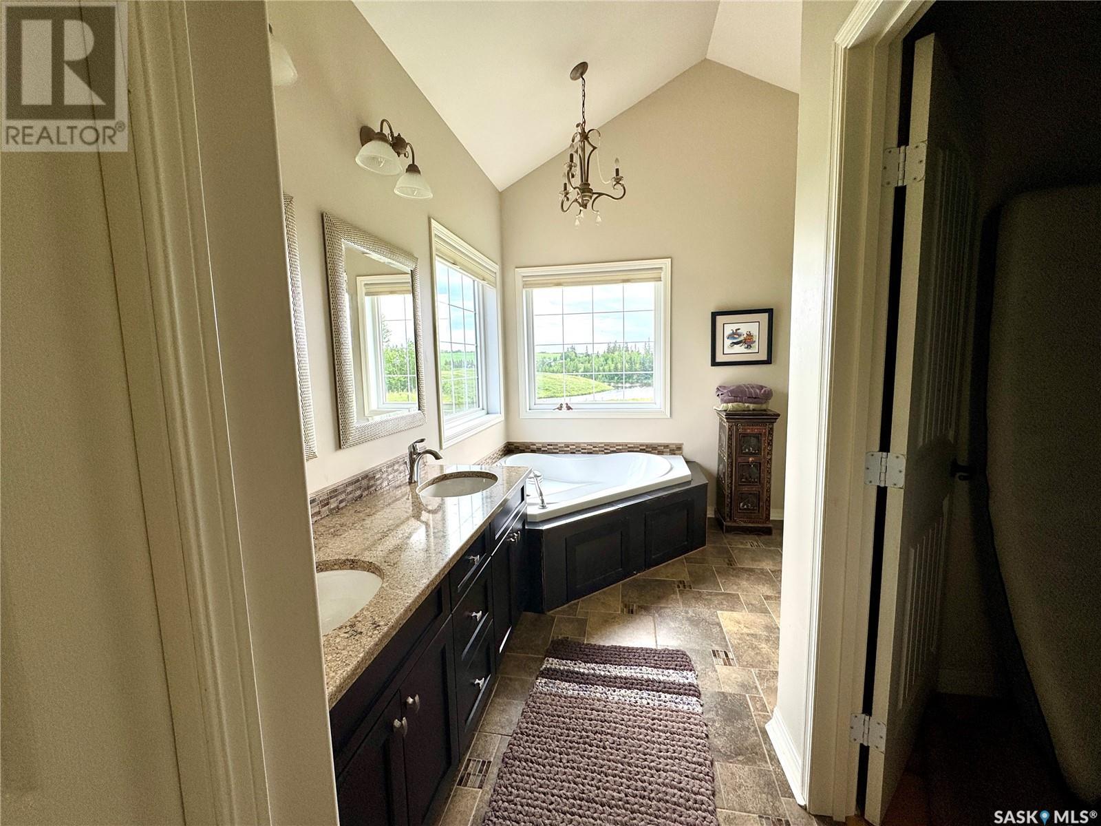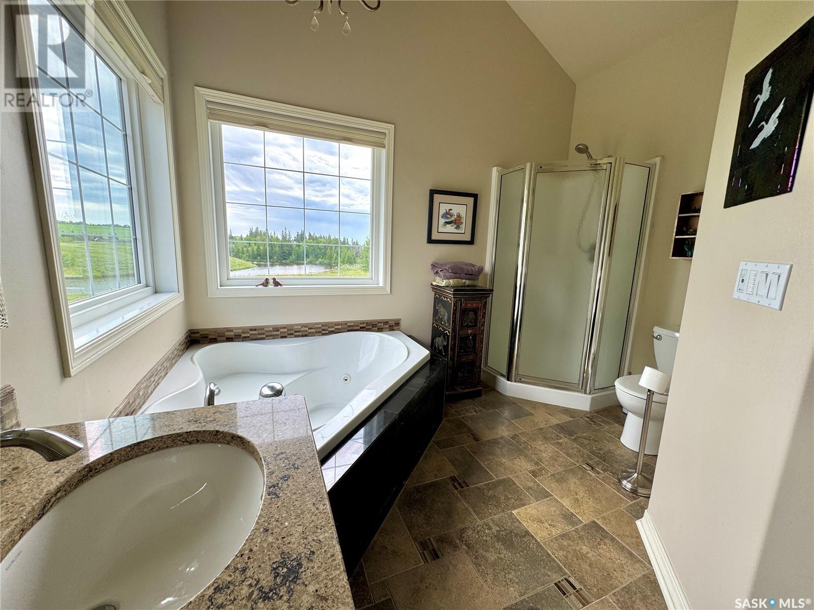 Set in the corner of a cul de sac up on the hill in Turtleford, this property is arguably the best in town with almost an acre of land and an amazing view of water and hills with a feeling of privacy while still being close to everything you need. The 1845 sq ft home, not including the walkout basement, is well built with an ICF foundation, an attached two car garage, a generac generator, hardwood and tile floors throughout the main and second floors, a gas stove, water softener, gas fireplace, air to air exchange and so much more. The entry and living area feel spacious with 18’ vaulted ceilings and tons of natural light from the many windows. On the main floor is a master suite including a large bathroom with a jet tub and a corner shower, a double sink vanity with solid countertops and a walk in closet. There’s a room just off the master suite that would be perfect for an office, music or sitting room. Entering from the garage you’ll find a laundry room and a half bath. The kitchen, dining room and living room are open with a separate formal dining room. Enjoy your morning coffee and watch the sun rise from the deck which has a natural gas bbq. On the second floor there are two bedrooms and a 4 piece bathroom. The walkout basement is spacious at over 1400 sq ft, with patio doors and large windows, and the plumbing is roughed in for a bathroom so you can finish it however you’d like. The outside space is beautifully treed with many shrubs and perennials to enjoy. Most furniture/ contents are negotiable. This unique and gorgeous property is a must see! Call today for your private showing. (id:43042)