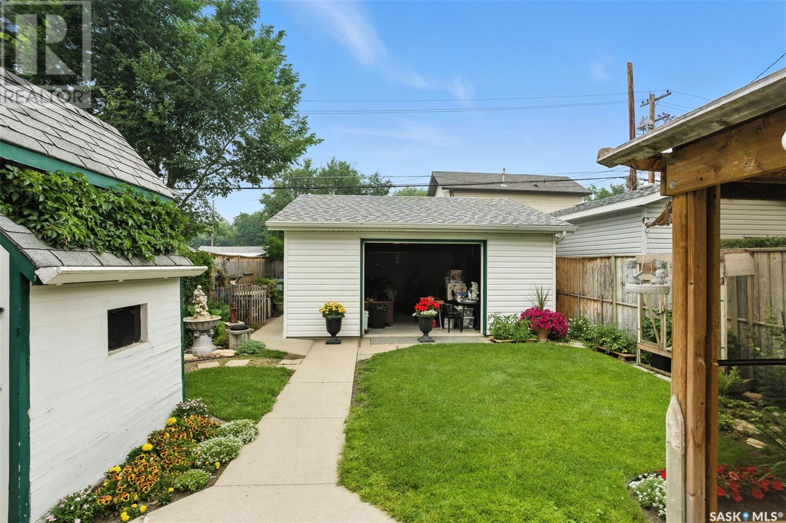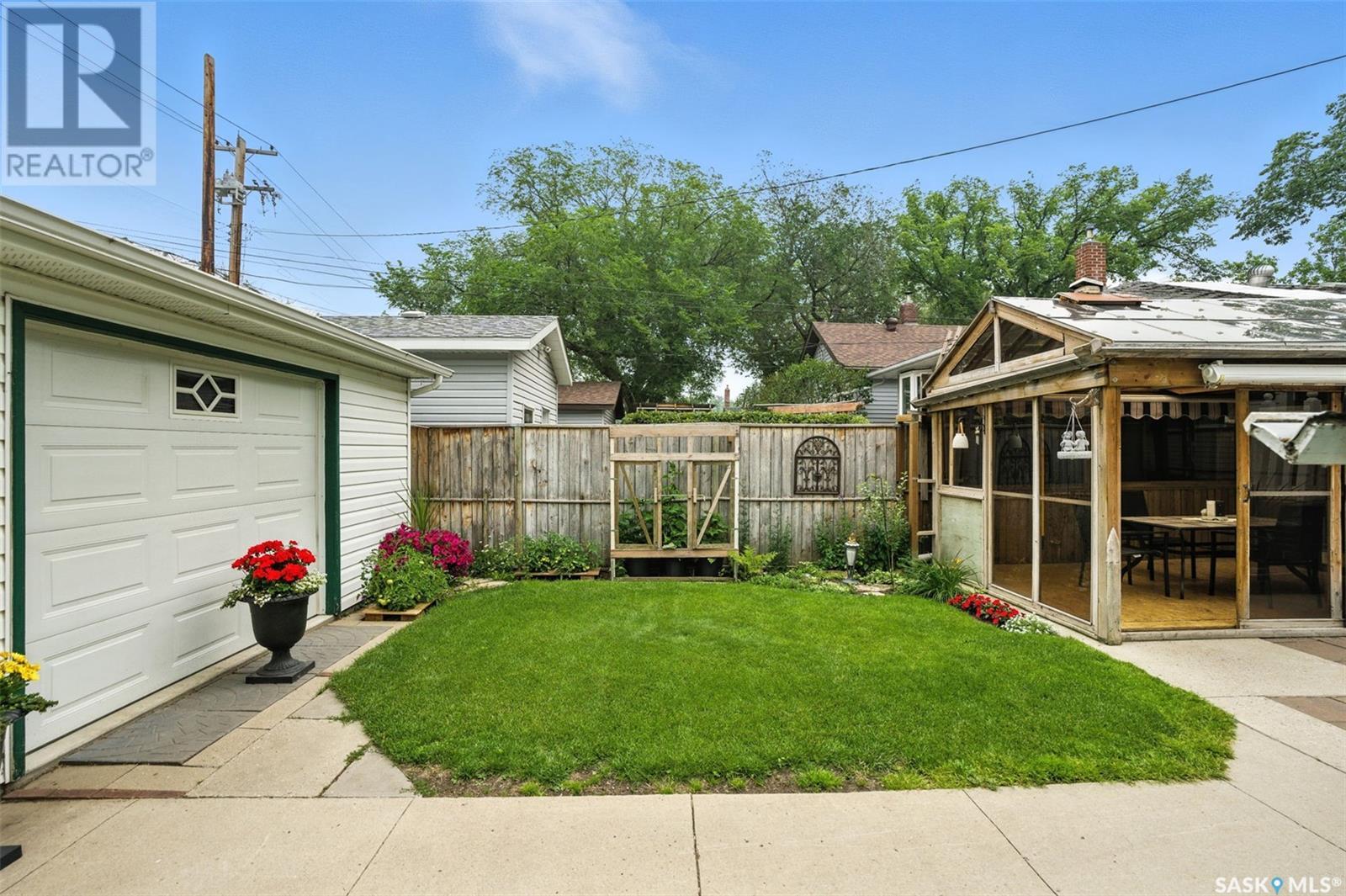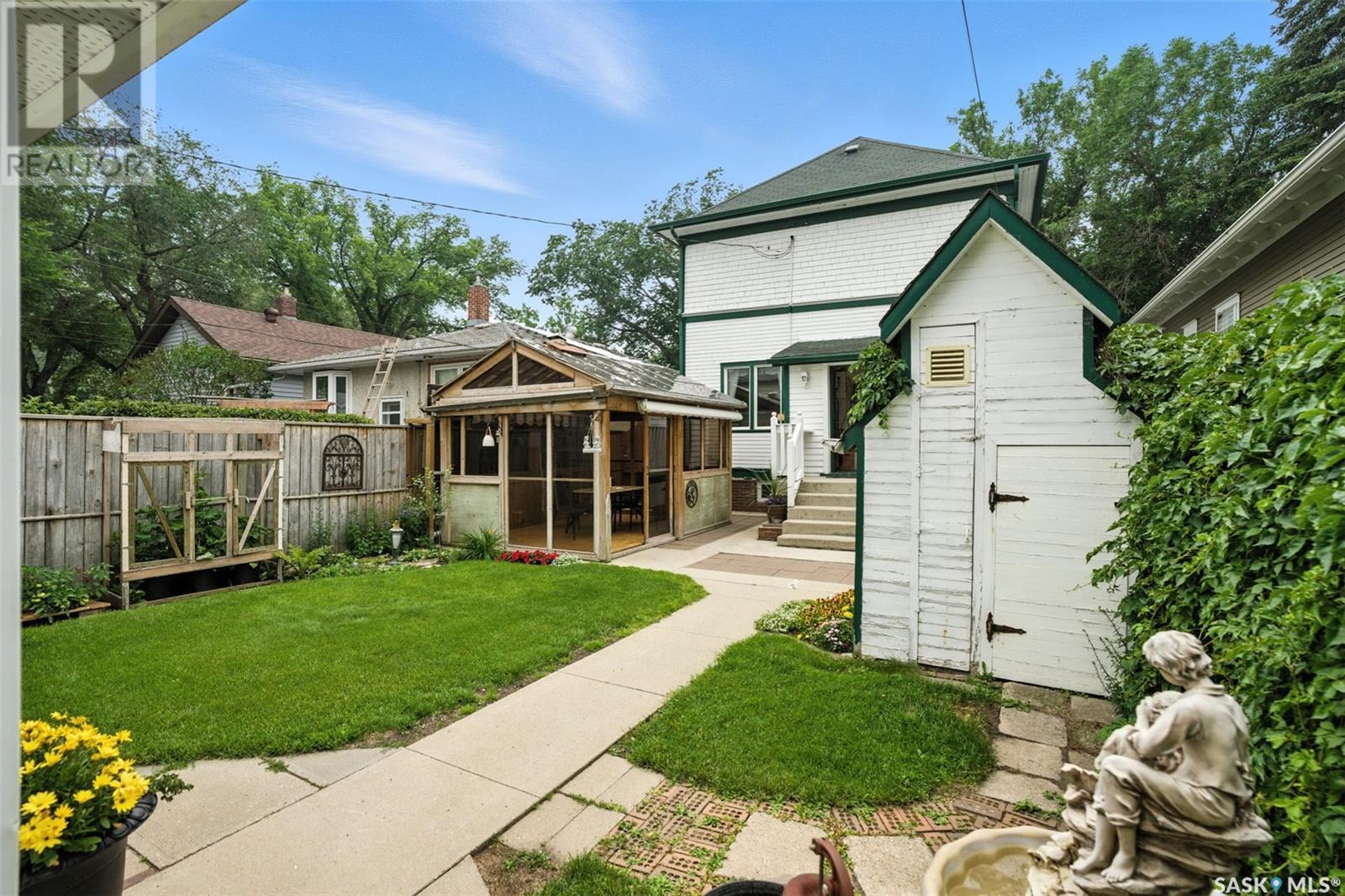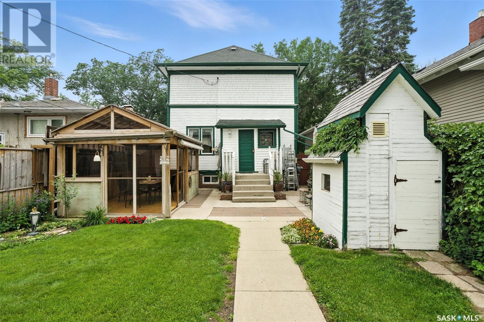 Welcome to 306 31st Street West—a truly special home that beautifully blends historic charm with thoughtful updates in one of Saskatoon’s most beloved neighbourhoods. Located just half a block from Ashworth Holmes Park and one block from Caswell Hill School, this well-maintained two-storey home is full of character and pride of ownership. Built in 1921 and offering over 1,332 sq. ft. of above-grade space, this property stands out with its inviting curb appeal, mostly updated vinyl windows, and 9-foot ceilings on the main floor, which add both space and charm. The main living areas comprise a bright and spacious living room, a formal dining room, and a warm, inviting parquet-floored kitchen. Upstairs, the primary bedroom was thoughtfully reconfigured by combining two bedrooms into one expansive retreat, while two additional bedrooms provide space for family or guests. There’s also an undeveloped full-height attic space offering the exciting potential for future development—perfect for a studio, loft, or additional living area. The basement includes a cozy family room featuring a built-in Murphy bed, an additional bedroom, a 4-piece bathroom, and a laundry area—making the lower level ideal for guests, teens, or flexible multi-use living. The outdoor space continues the home's story, featuring a fully fenced yard and a unique, repurposed grain elevator playhouse that now serves as a quirky and functional garden shed. Additionally, there is a large enclosed gazebo with awnings, perfect for entertaining. A 20' x 24' detached garage offers alley access and features an overhead door opening into the backyard—ideal for projects, storage, or hosting gatherings. From the tree-lined street to the vintage architectural details, this home is a rare find for buyers who appreciate quality craftsmanship and timeless character. Whether you're looking to settle in a family-friendly area or embrace the unique vibe of Caswell Hill, 306 31st Street W is a must-see. (id:43042)