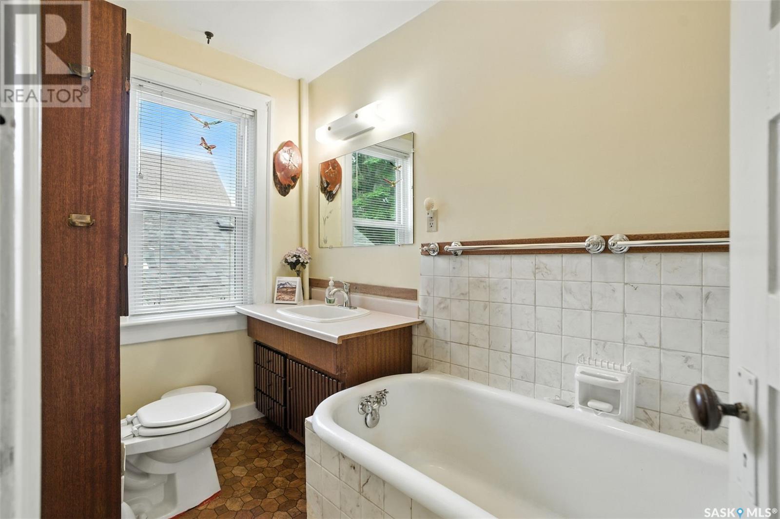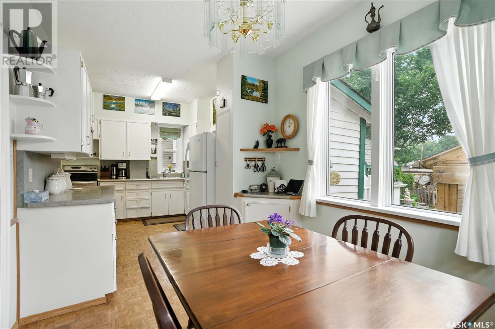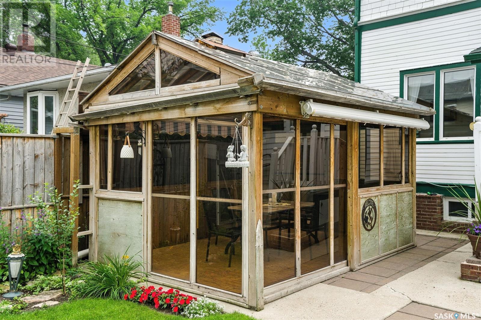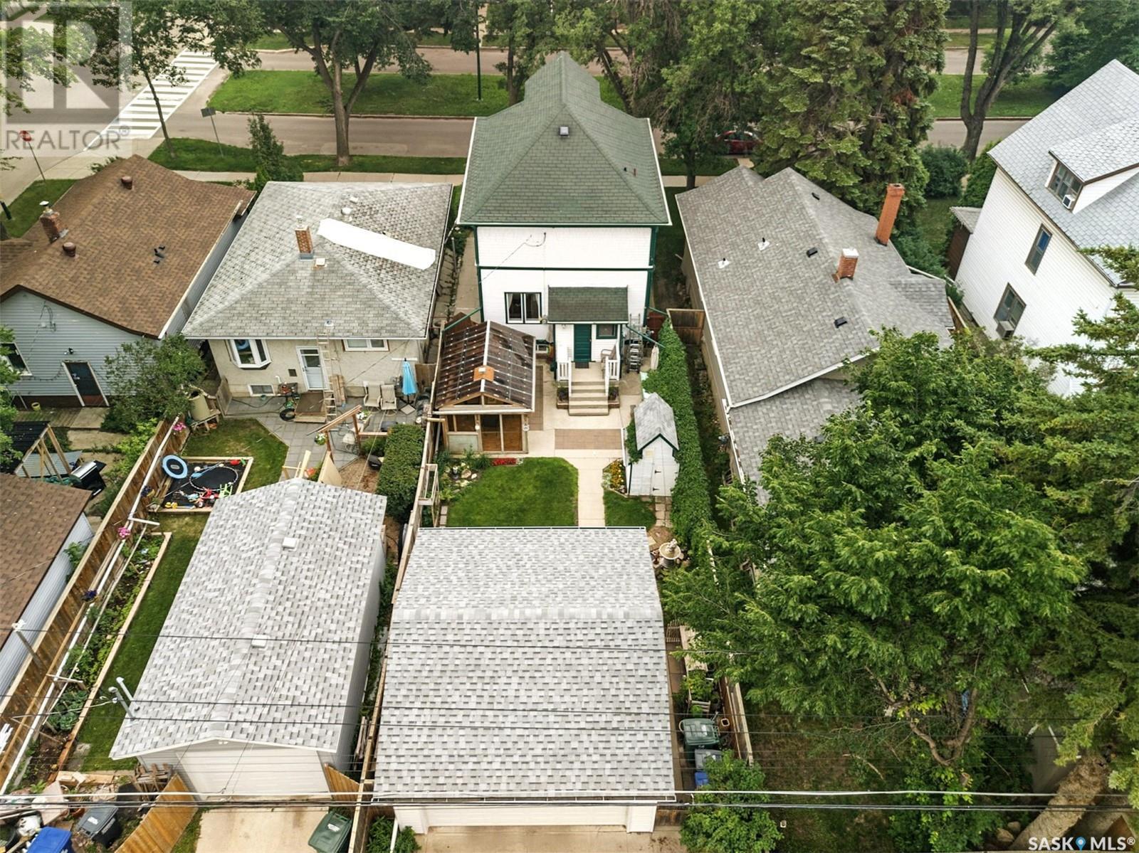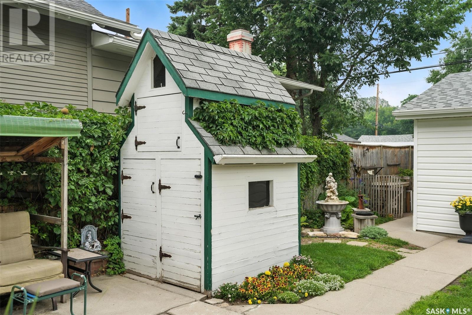 Welcome to 306 31st Street West—a truly special home that beautifully blends historic charm with thoughtful updates in one of Saskatoon’s most beloved neighbourhoods. Located just half a block from Ashworth Holmes Park and one block from Caswell Hill School, this well-maintained two-storey home is full of character and pride of ownership. Built in 1921 and offering over 1,332 sq. ft. of above-grade space, this property stands out with its inviting curb appeal, mostly updated vinyl windows, and 9-foot ceilings on the main floor, which add both space and charm. The main living areas comprise a bright and spacious living room, a formal dining room, and a warm, inviting parquet-floored kitchen. Upstairs, the primary bedroom was thoughtfully reconfigured by combining two bedrooms into one expansive retreat, while two additional bedrooms provide space for family or guests. There’s also an undeveloped full-height attic space offering the exciting potential for future development—perfect for a studio, loft, or additional living area. The basement includes a cozy family room featuring a built-in Murphy bed, an additional bedroom, a 4-piece bathroom, and a laundry area—making the lower level ideal for guests, teens, or flexible multi-use living. The outdoor space continues the home's story, featuring a fully fenced yard and a unique, repurposed grain elevator playhouse that now serves as a quirky and functional garden shed. Additionally, there is a large enclosed gazebo with awnings, perfect for entertaining. A 20' x 24' detached garage offers alley access and features an overhead door opening into the backyard—ideal for projects, storage, or hosting gatherings. From the tree-lined street to the vintage architectural details, this home is a rare find for buyers who appreciate quality craftsmanship and timeless character. Whether you're looking to settle in a family-friendly area or embrace the unique vibe of Caswell Hill, 306 31st Street W is a must-see. (id:43042)